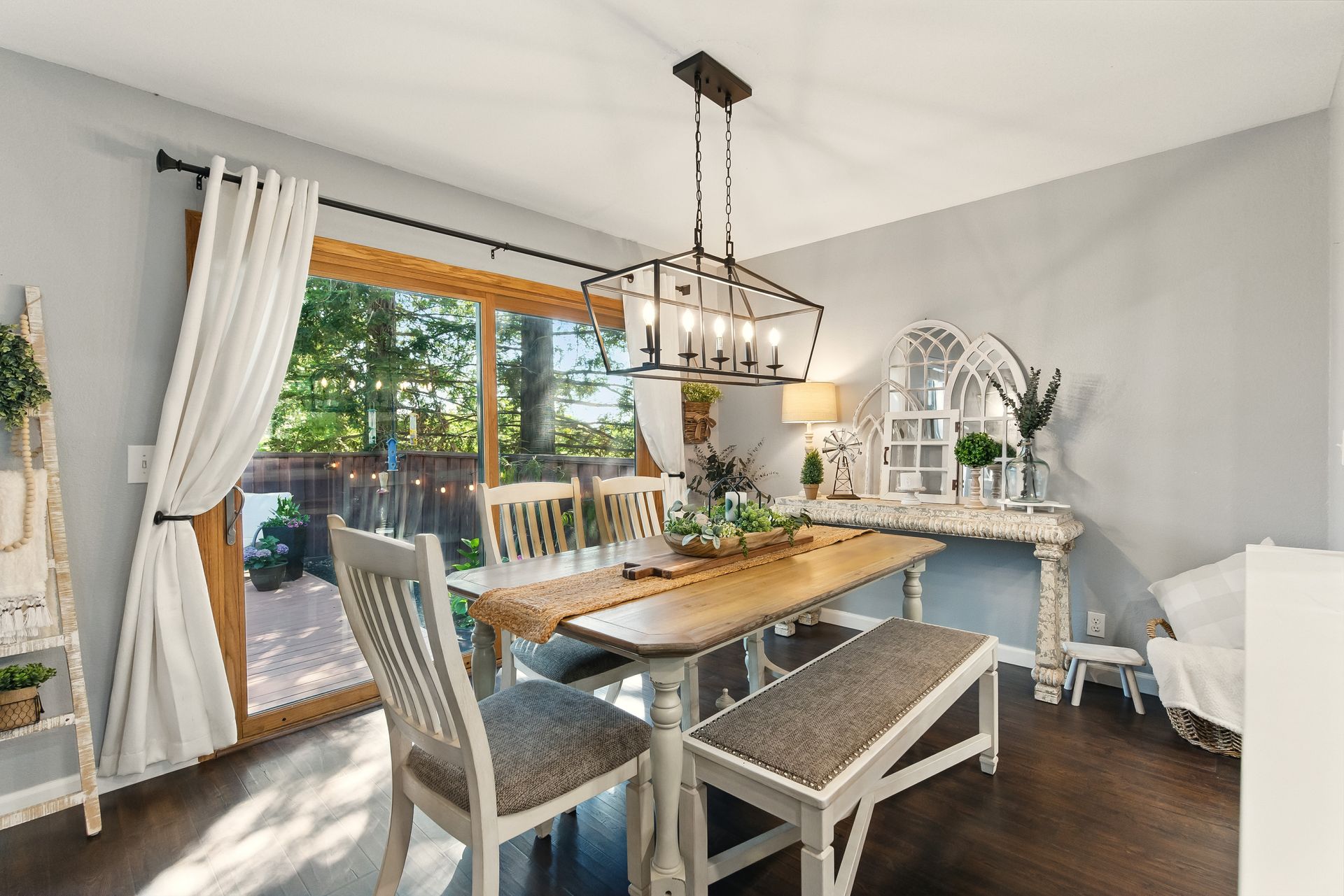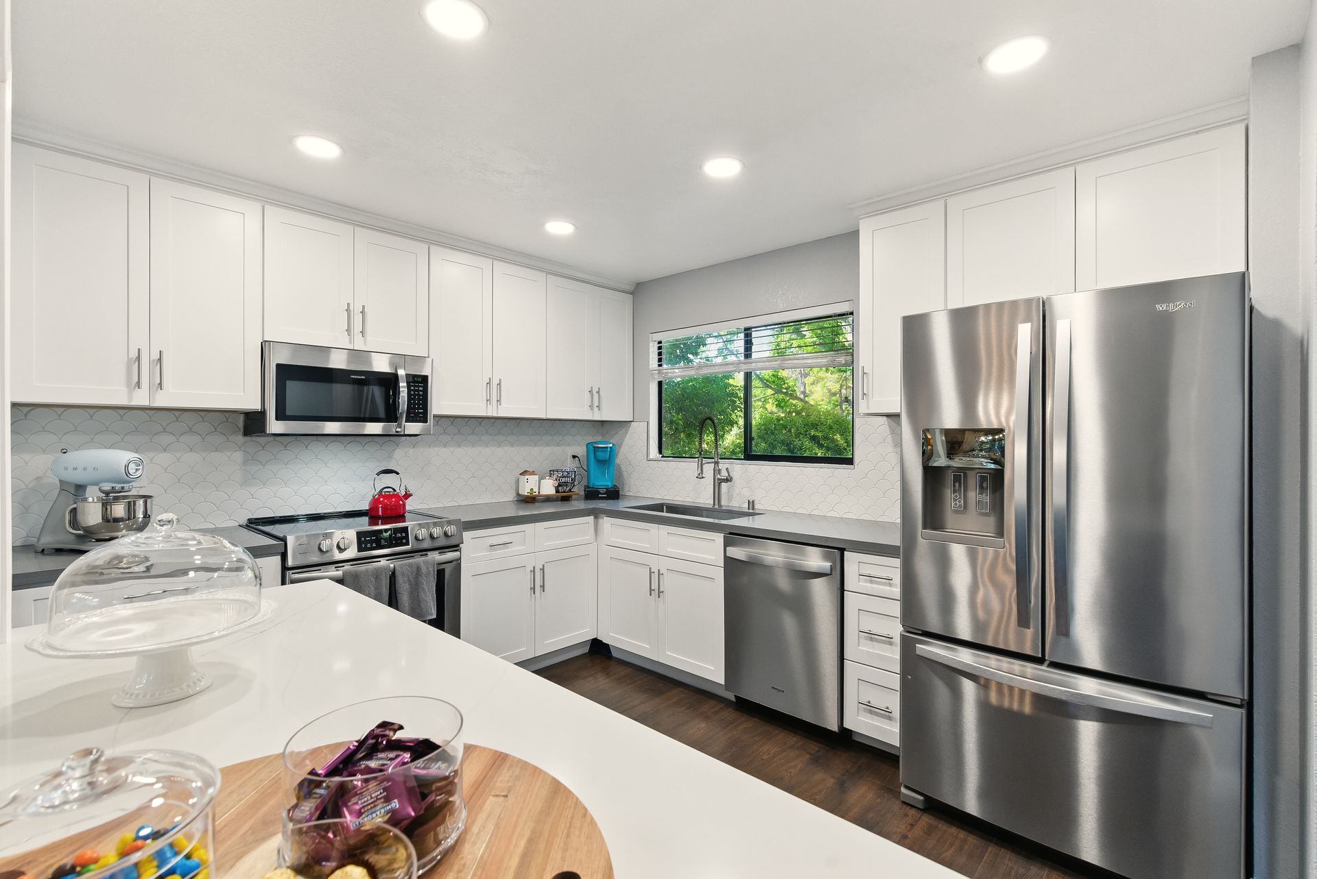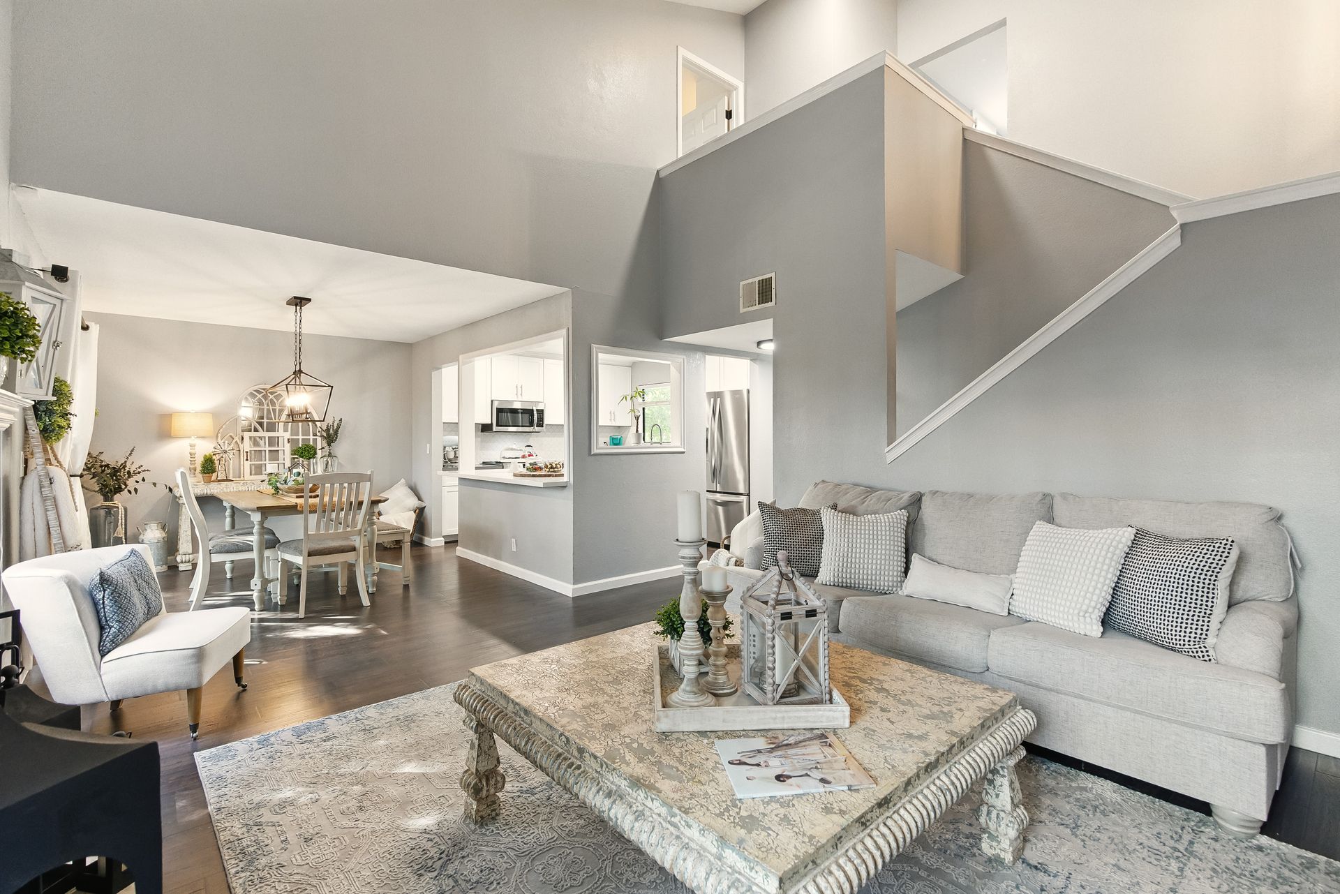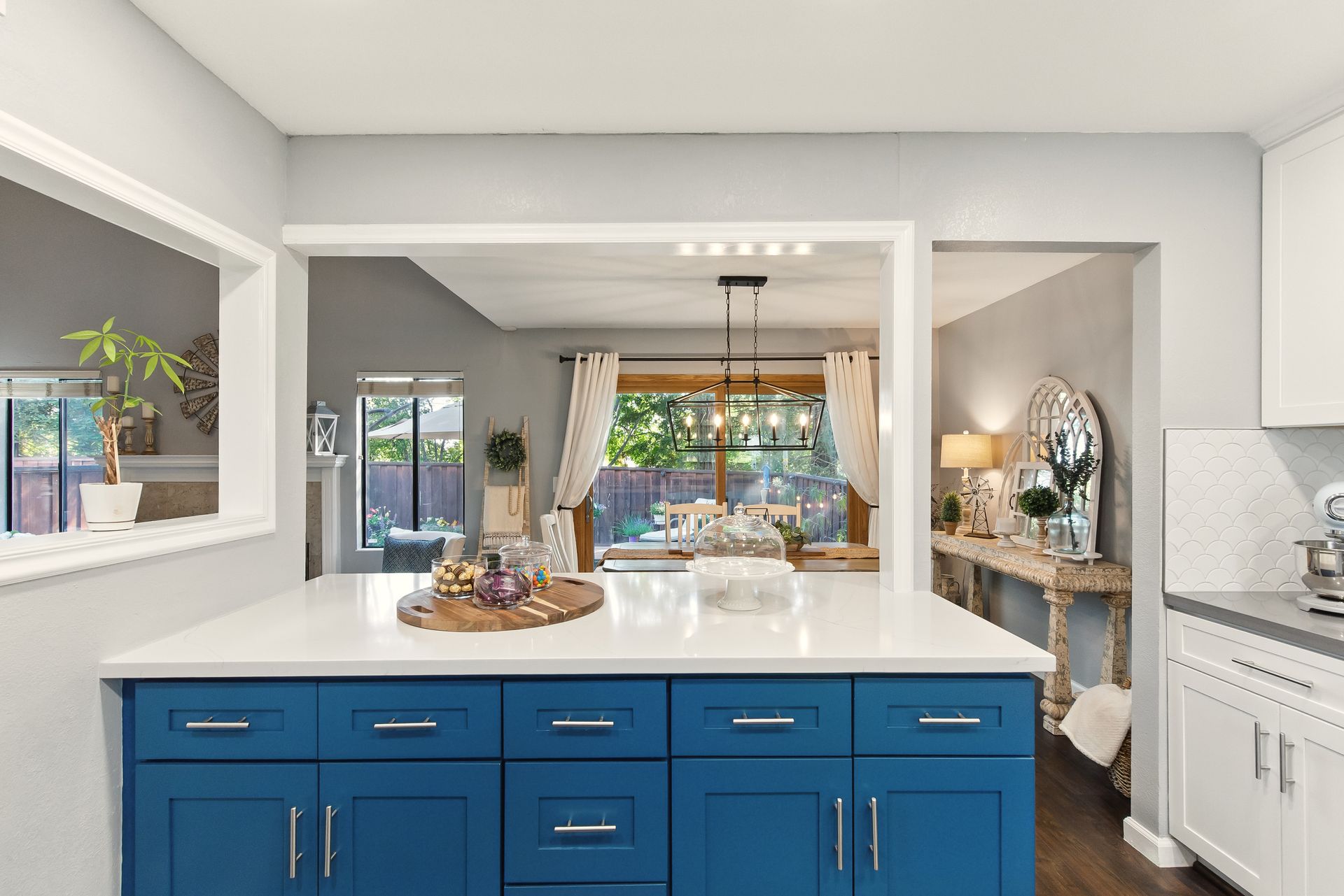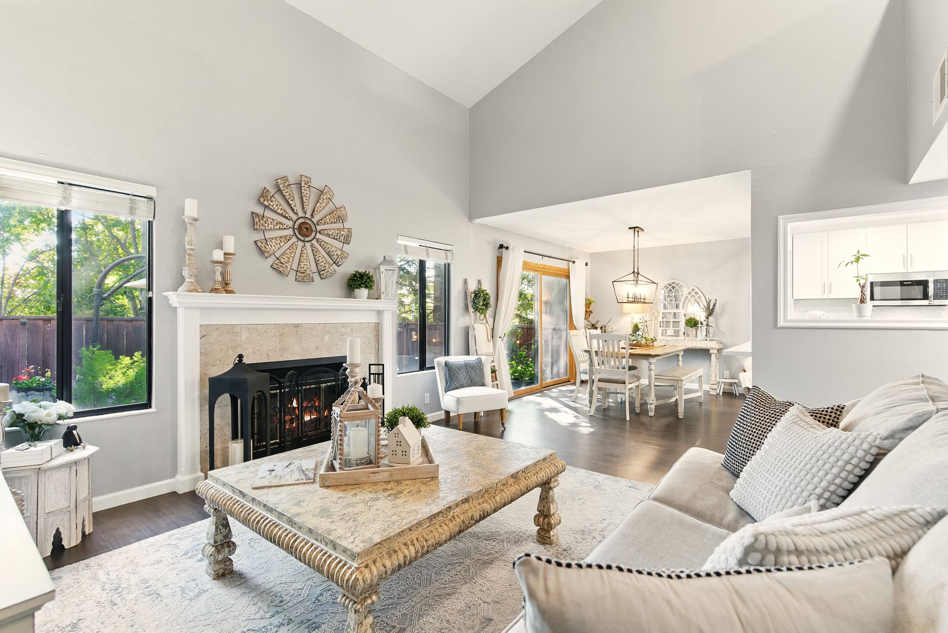 Inside, the remodeled kitchen is both stylish and functional, with modern quartz surfaces, stainless steel appliances, and a seamless connection to the dining and living areas. Whether you're preparing a casual weeknight meal or hosting a dinner party, the layout feels inclusive and inviting.
