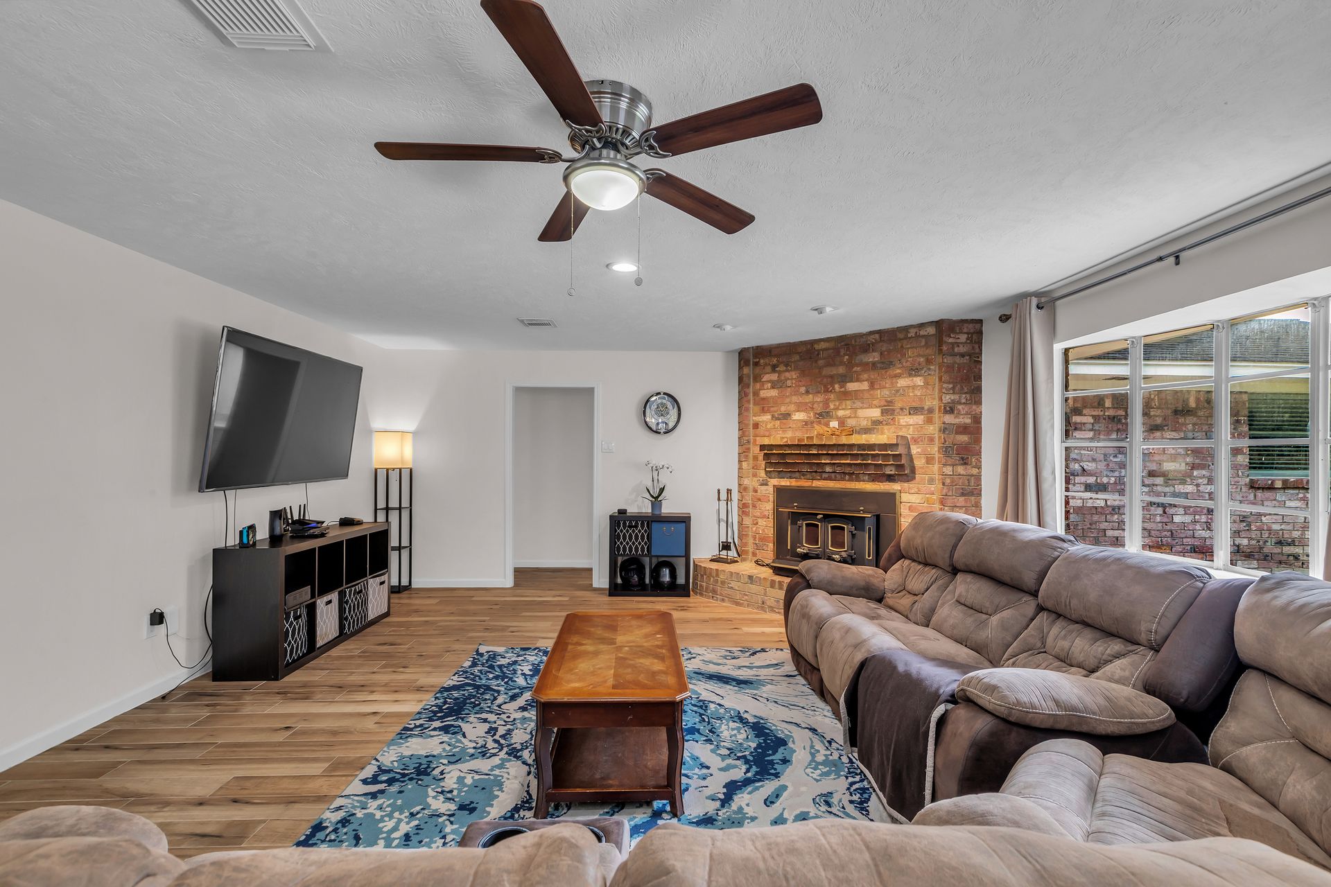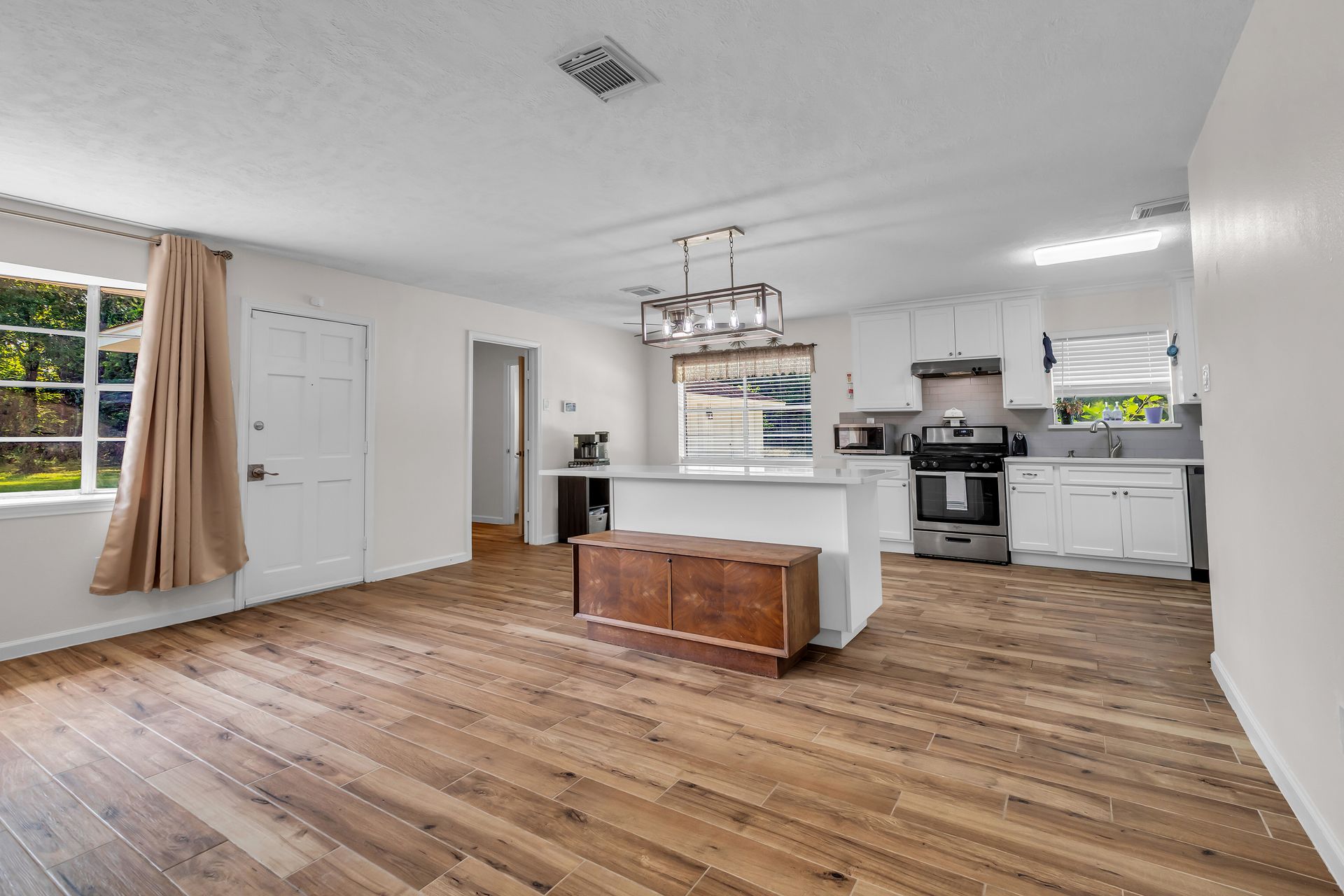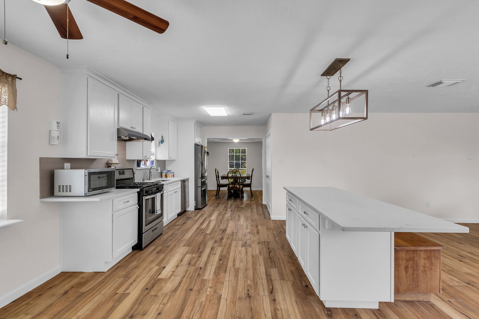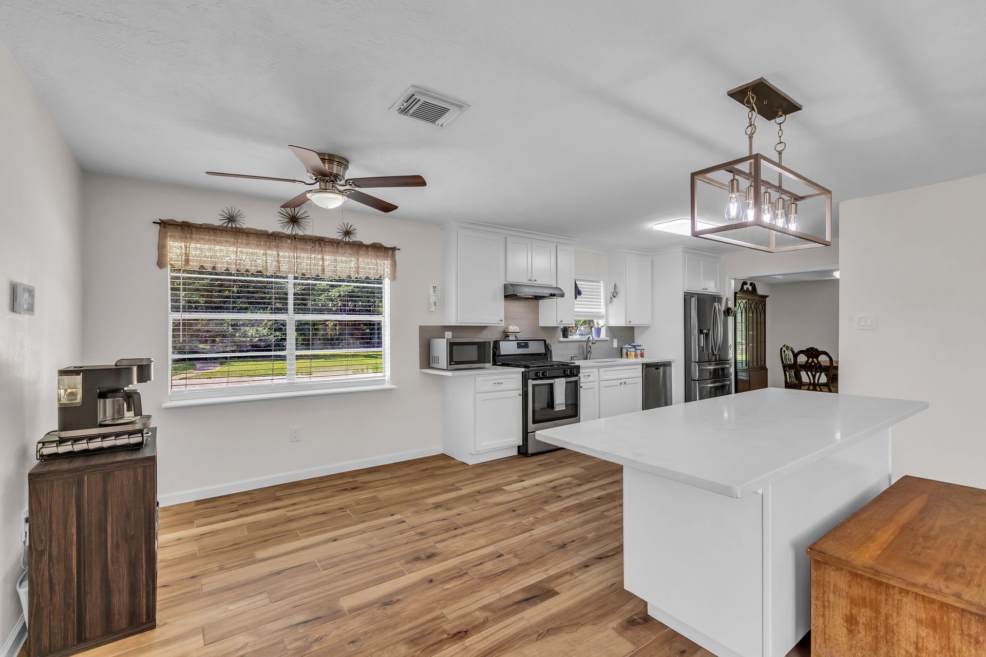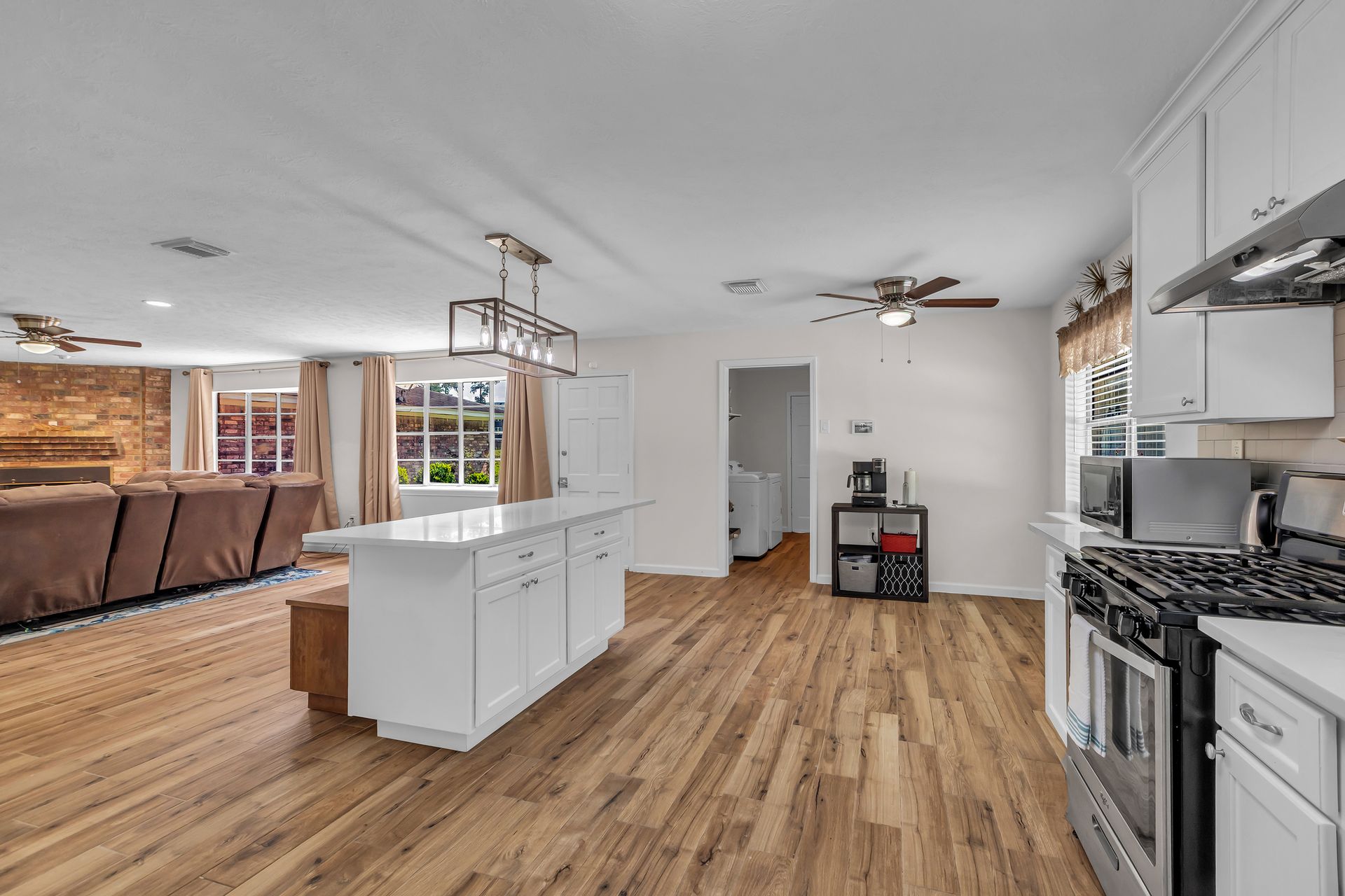 Retreat to peaceful surroundings and to this home on a partially wooded two-and-a-half-acre lot, with no restrictions! This home offers the ultimate country living and freedom to create your dream lifestyle. Venture inside this thoughtfully designed home, which lives larger than its size, as it boasts open and spacious rooms throughout. An entry foyer welcomes you to the formal living and dining areas, which could easily convert to a home office/study or adapt to your needs. An island kitchen features crisp white cabinets, elegant quartz countertops, stainless steel appliances, and overlooks a spacious family room with tons of light and a wood-burning fireplace. Popular wood-look ceramic throughout main areas for seamless flow. Enjoy the luxury of a detached three-car garage, offering room for vehicles, hobbies, and your outdoor toys. Endless possibilities for your garden, play area, or workshop! Situated between Grand Parkway and Hwy 59 to get you around easily to shopping, dining, and nearby schools!