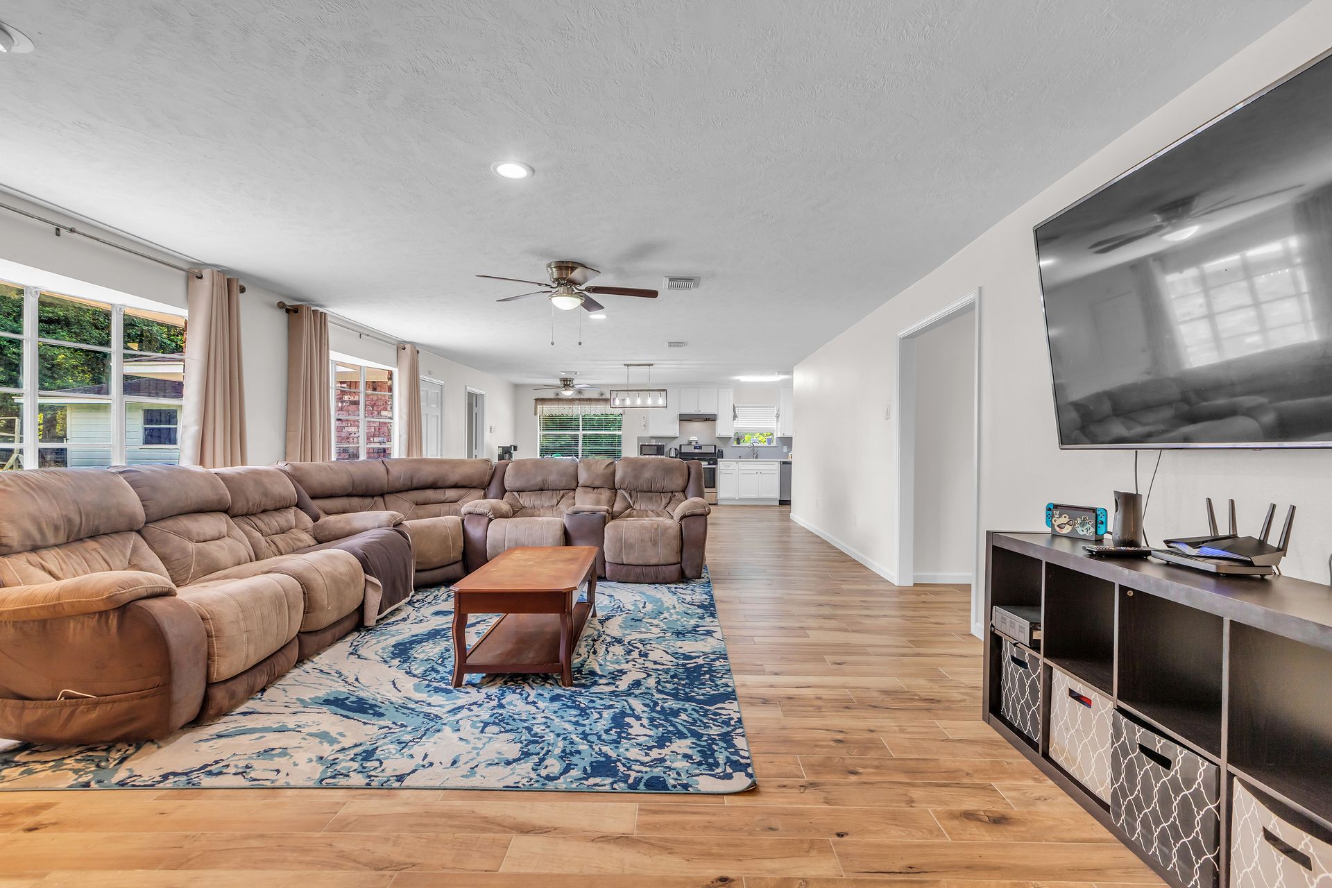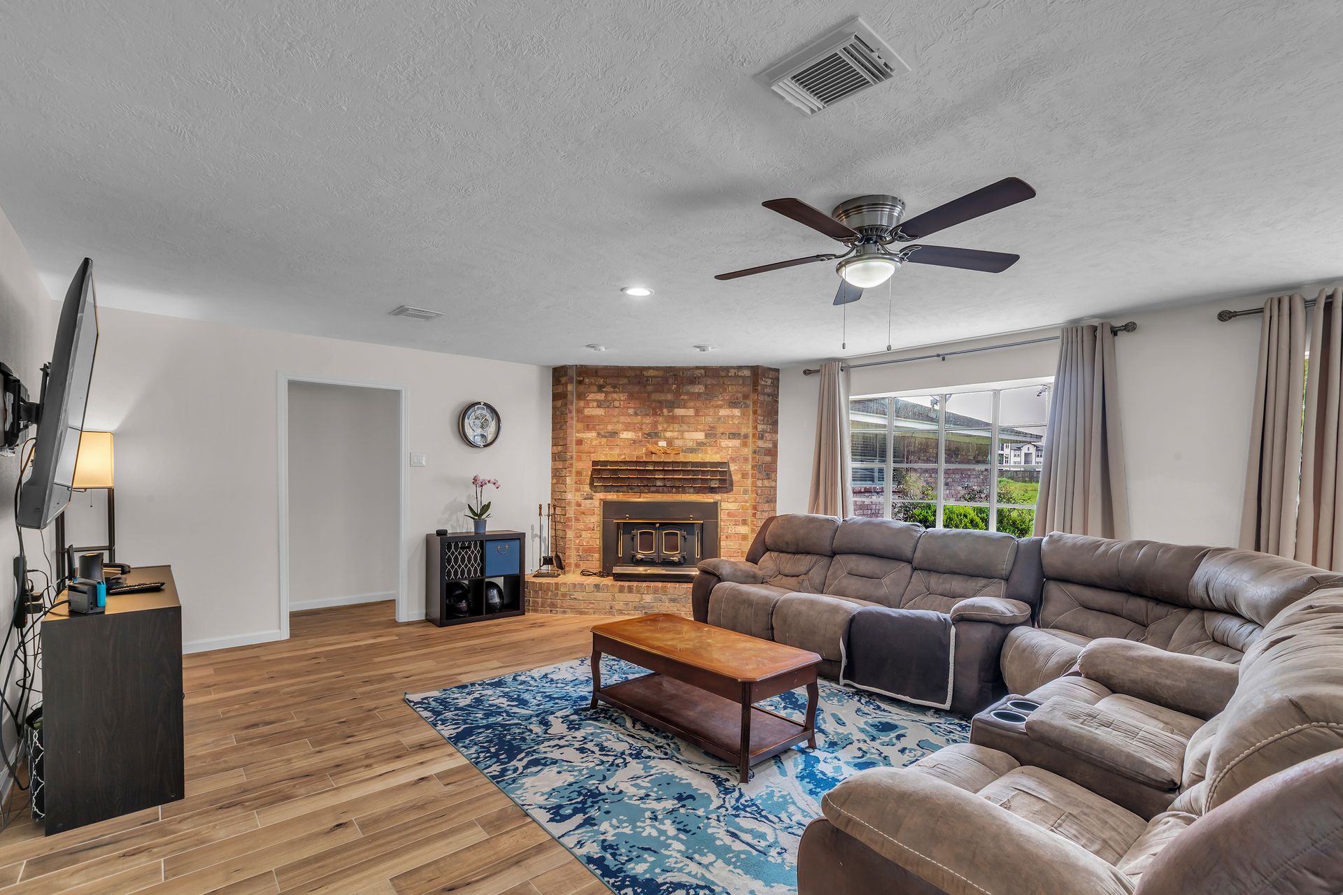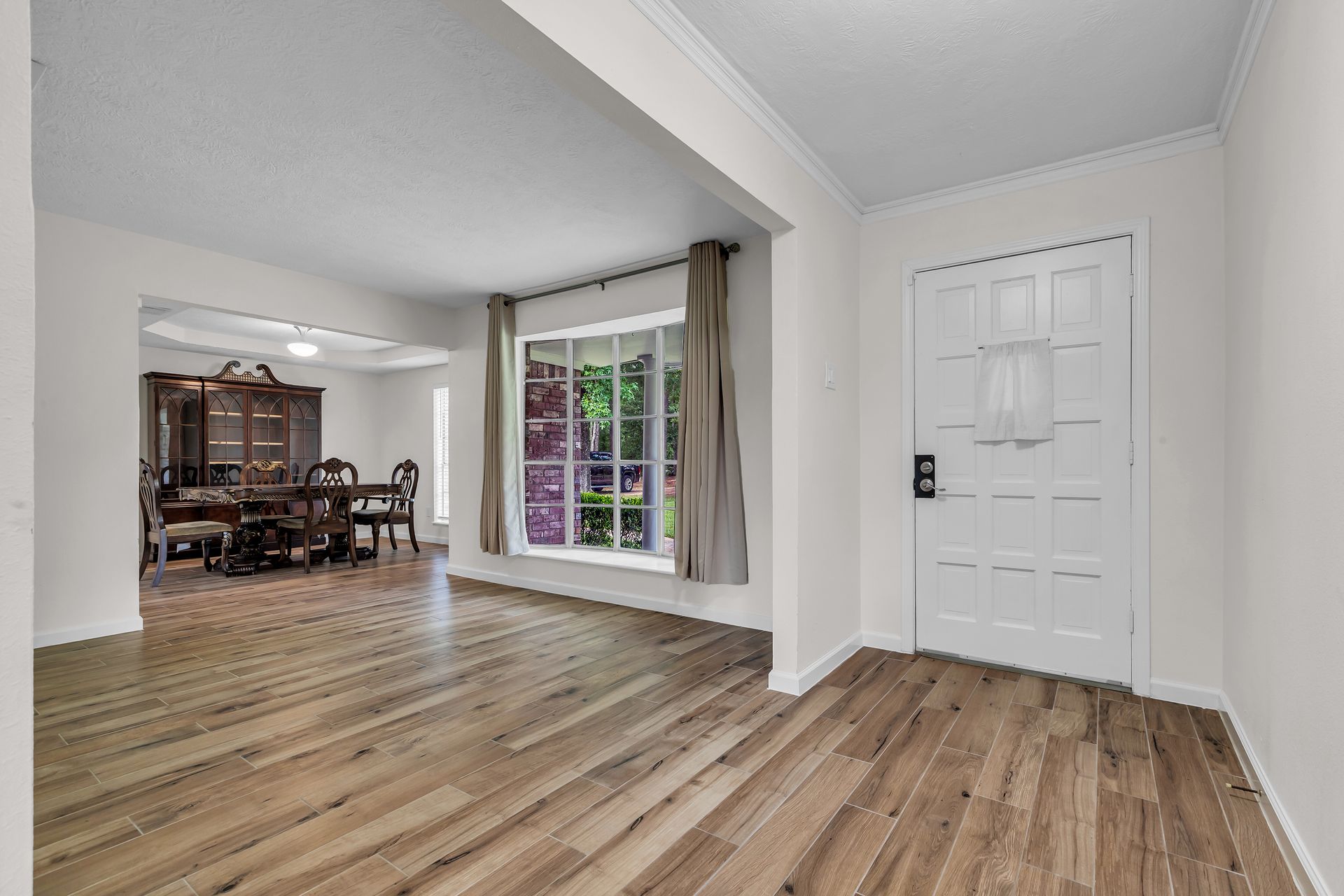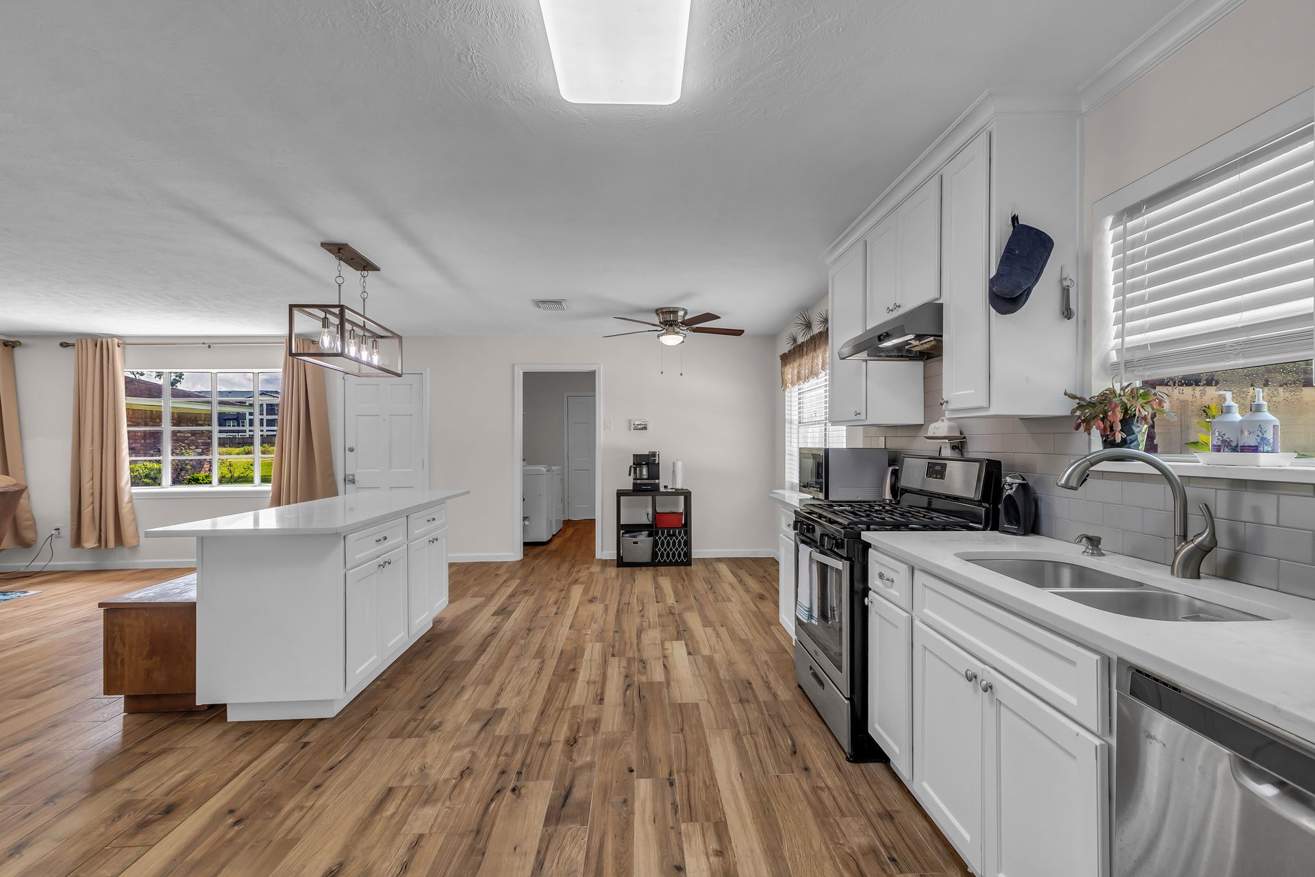 Retreat to peaceful surroundings and to this home on a partially wooded two-and-a-half-acre lot, with no restrictions! This home offers the ultimate country living and freedom to create your dream lifestyle. Venture inside this thoughtfully designed home, which lives larger than its size, as it boasts open and spacious rooms throughout. An entry foyer welcomes you to the formal living and dining areas, which could easily convert to a home office/study or adapt to your needs. An island kitchen features crisp white cabinets, elegant quartz countertops, stainless steel appliances, and overlooks a spacious family room with tons of light and a wood-burning fireplace. Popular wood-look ceramic throughout main areas for seamless flow. Enjoy the luxury of a detached three-car garage, offering room for vehicles, hobbies, and your outdoor toys. Endless possibilities for your garden, play area, or workshop! Situated between Grand Parkway and Hwy 59 to get you around easily to shopping, dining, and nearby schools!