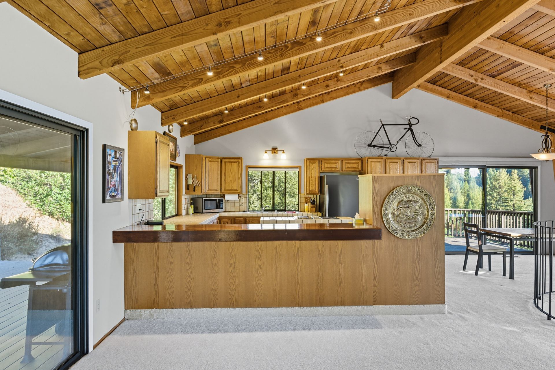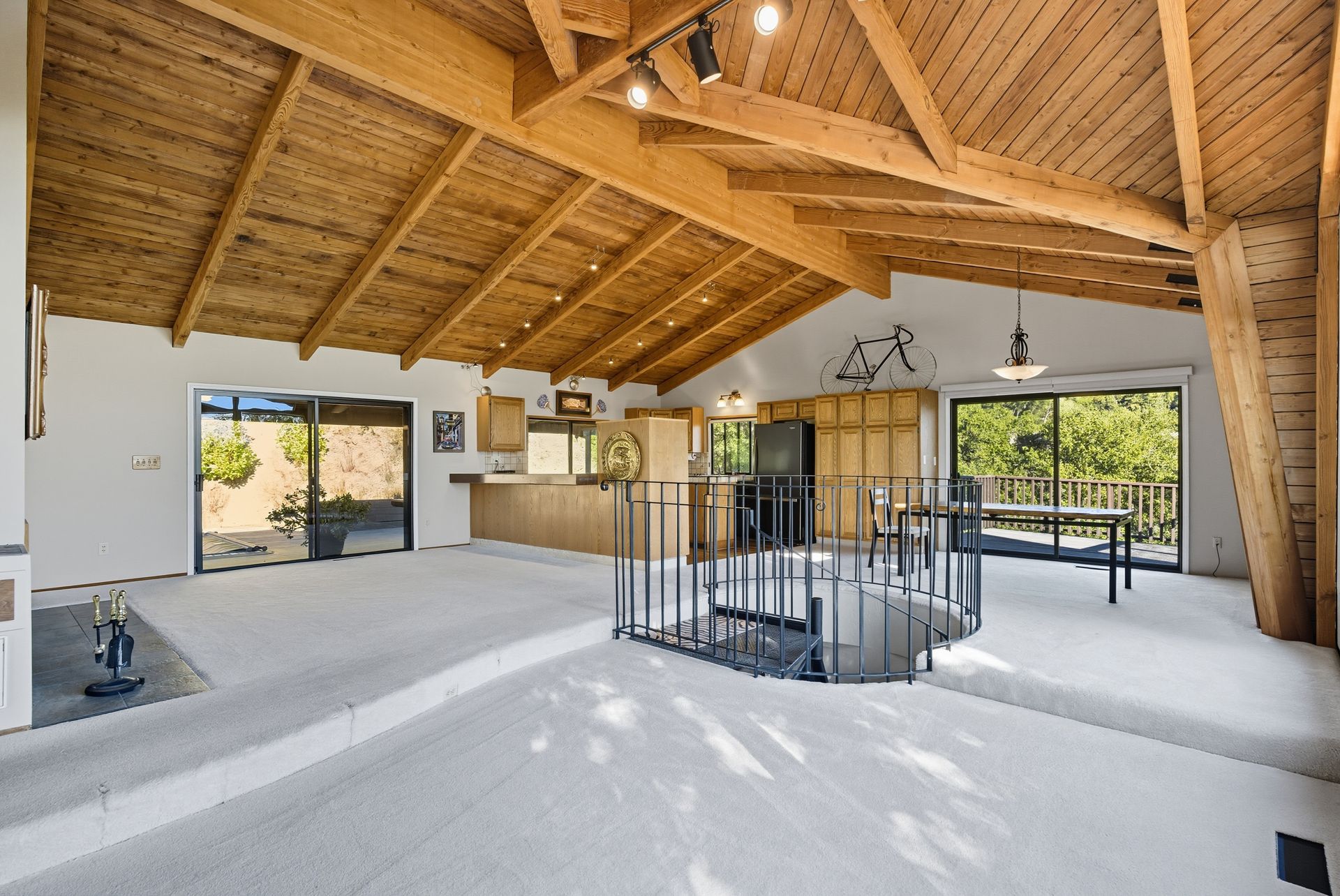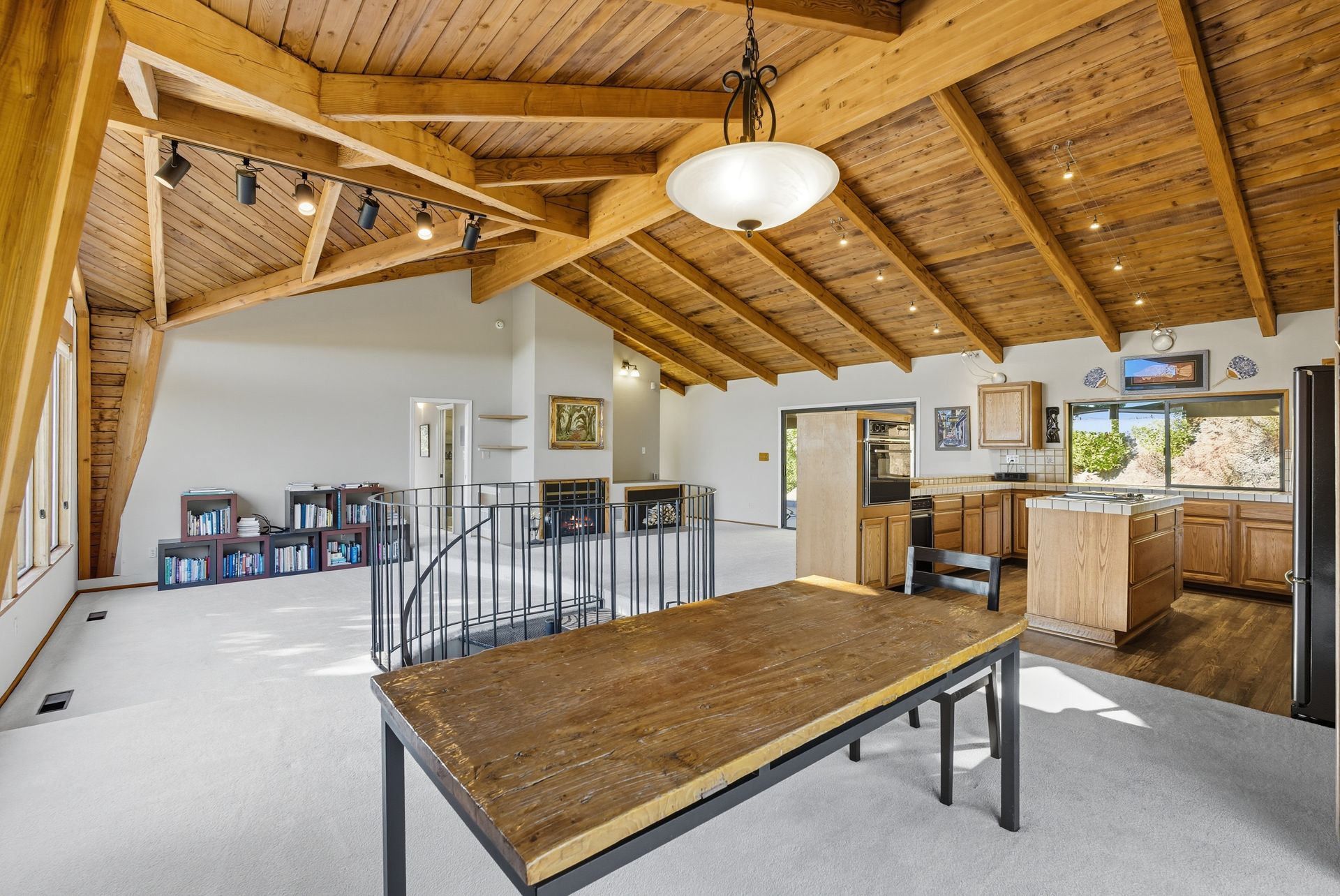 Thoughtfully designed to embrace its dramatic setting, the home features expansive decks and patios that frame expansive views across the ridgelines—ideal for morning coffee, sunset dinners, or stargazing under clear mountain skies. The distinctive architecture blends warm wood accents, bold structural lines, and inviting communal spaces ideal for entertaining or unwinding in peaceful solitude.