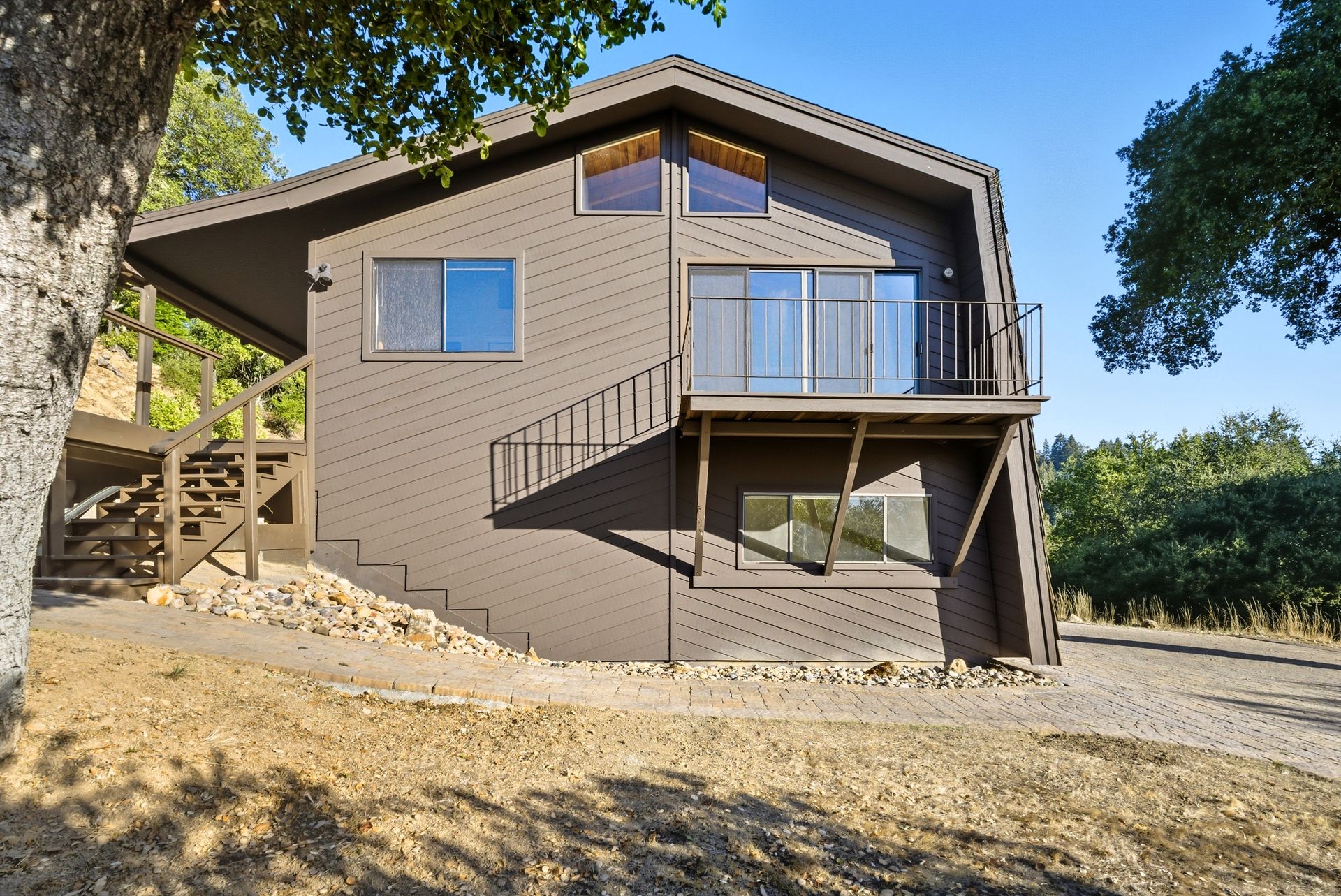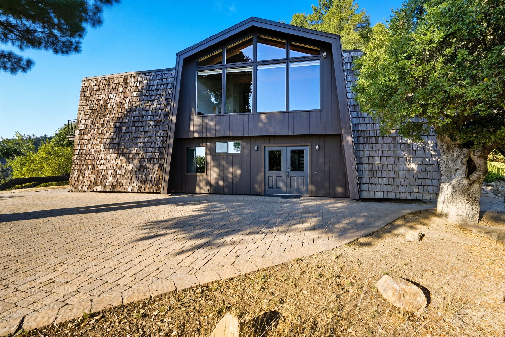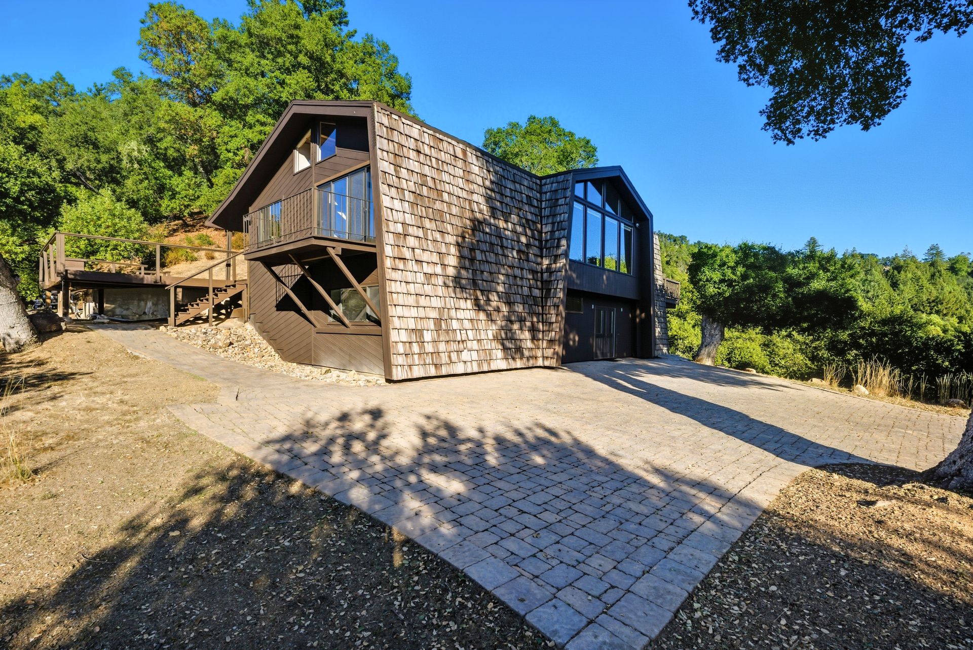 Perched high above the Los Gatos Mountains, this stunning four-bedroom, two-bath architectural retreat offers over 3.3 acres of privacy, beauty, and timeless design. Walls of glass, soaring vaulted ceilings, and an open-concept layout bathe the home in natural light, creating seamless indoor-outdoor flow and a sense of spacious tranquility.