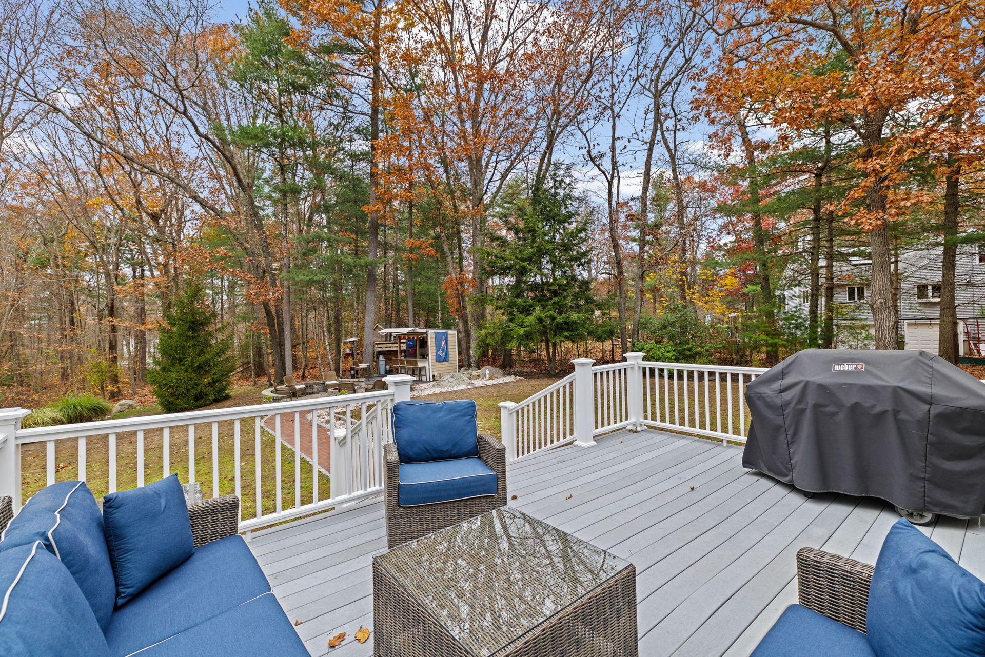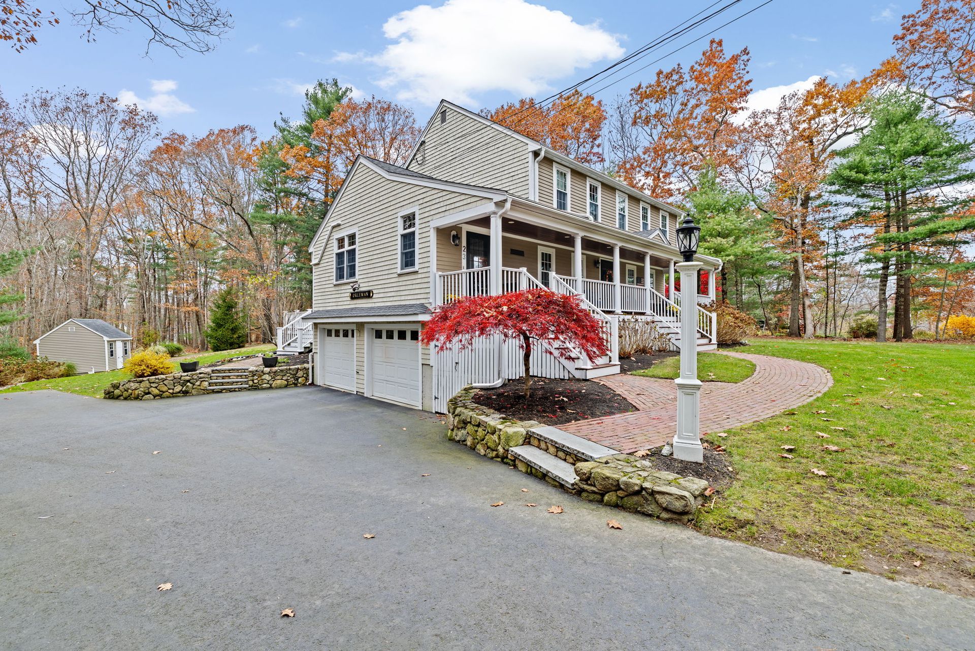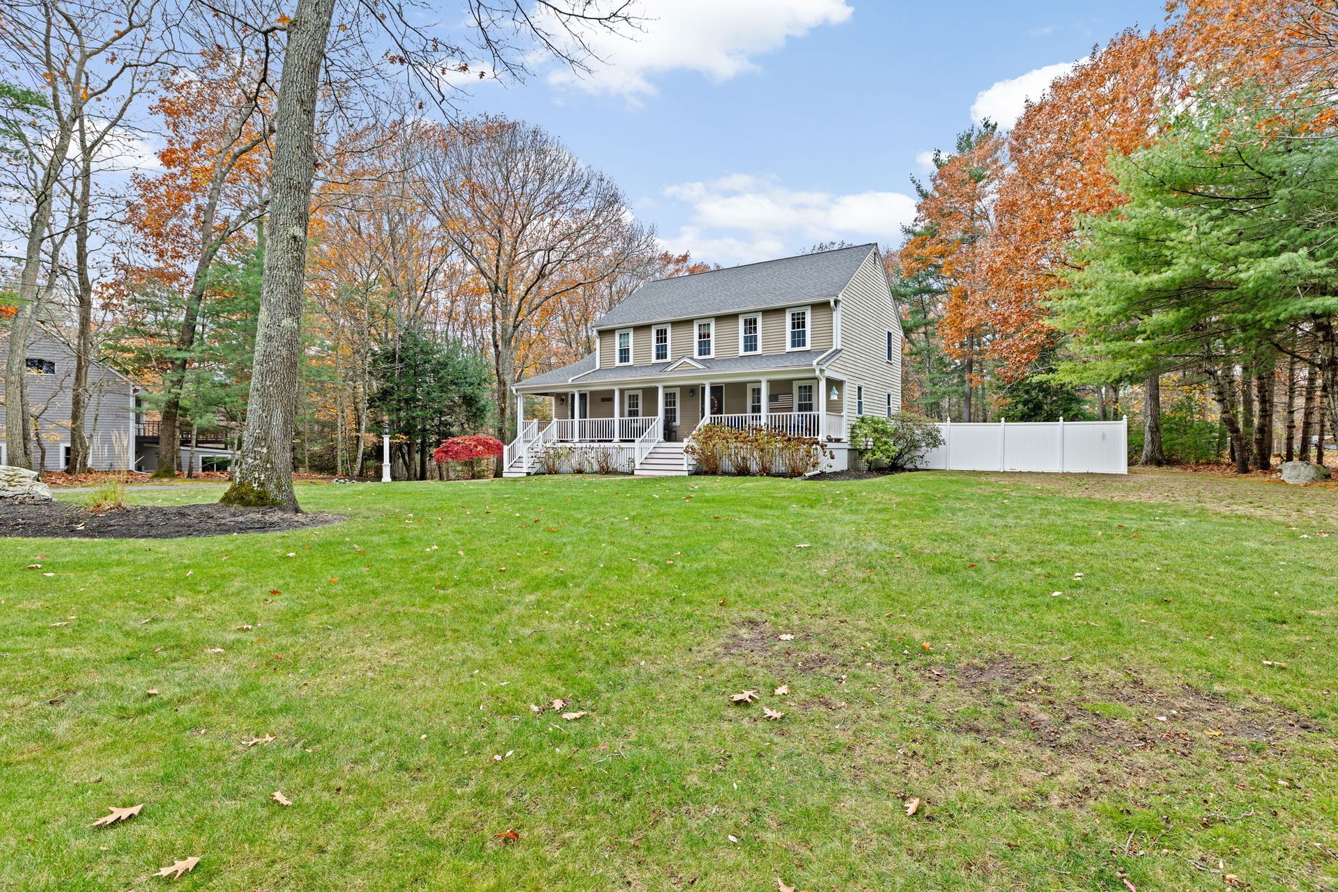 A farmer’s porch welcomes you to this classic four-bedroom Colonial, located in one of Norwell’s most sought-after neighborhoods and set on a private 1.23-acre lot. Sunlight fills the open floor plan, highlighted by a gourmet kitchen featuring stainless steel appliances, granite countertops, and a center island. The stunning family room offers cathedral beamed ceilings and a fireplace, opening directly to a low-maintenance, entertainment-sized deck — perfect for indoor-outdoor living. The first floor also includes a private office for dedicated workspace, formal living and dining rooms, and a convenient mudroom off the kitchen. Upstairs, the primary bedroom includes a half bath, along with three additional well-proportioned bedrooms and a full bath. The lower level features a playroom, providing flexible space for recreation or hobbies. The backyard oasis is designed for relaxation and entertaining, complete with a stone patio, outdoor fire pit, and bar shed— the perfect place to unwind.