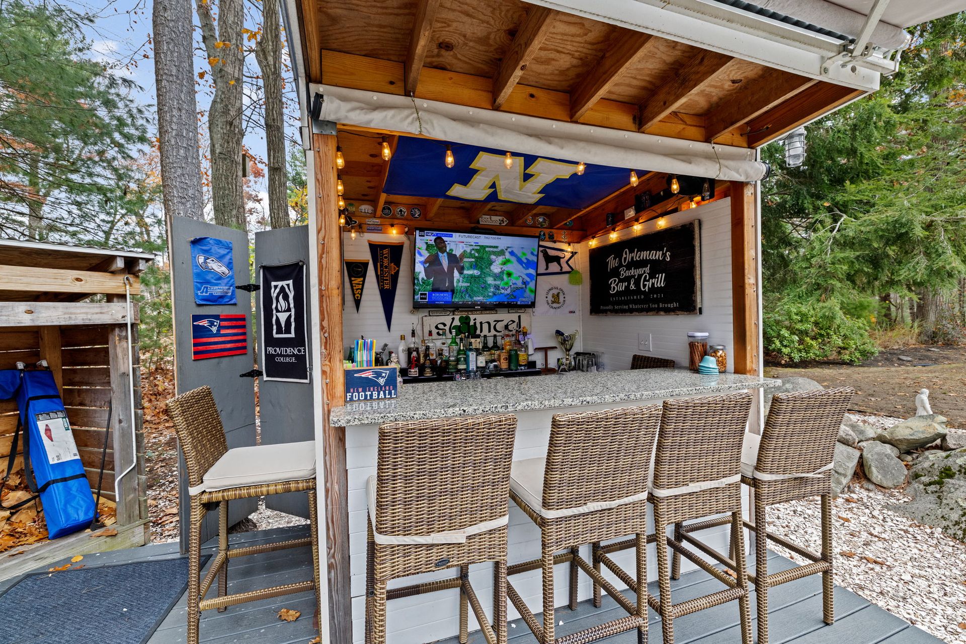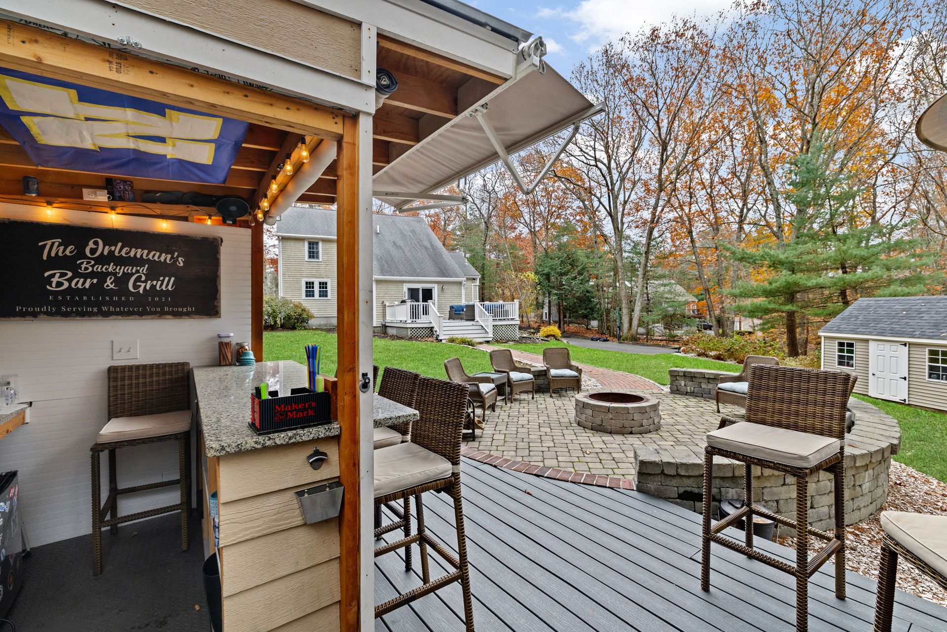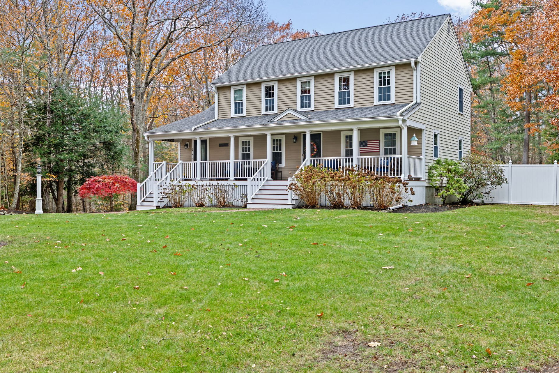 A farmer’s porch welcomes you to this classic four-bedroom Colonial, located in one of Norwell’s most sought-after neighborhoods and set on a private 1.23-acre lot. Sunlight fills the open floor plan, highlighted by a gourmet kitchen featuring stainless steel appliances, granite countertops, and a center island. The stunning family room offers cathedral beamed ceilings and a fireplace, opening directly to a low-maintenance, entertainment-sized deck — perfect for indoor-outdoor living. The first floor also includes a private office for dedicated workspace, formal living and dining rooms, and a convenient mudroom off the kitchen. Upstairs, the primary bedroom includes a half bath, along with three additional well-proportioned bedrooms and a full bath. The lower level features a playroom, providing flexible space for recreation or hobbies. The backyard oasis is designed for relaxation and entertaining, complete with a stone patio, outdoor fire pit, and bar shed— the perfect place to unwind.