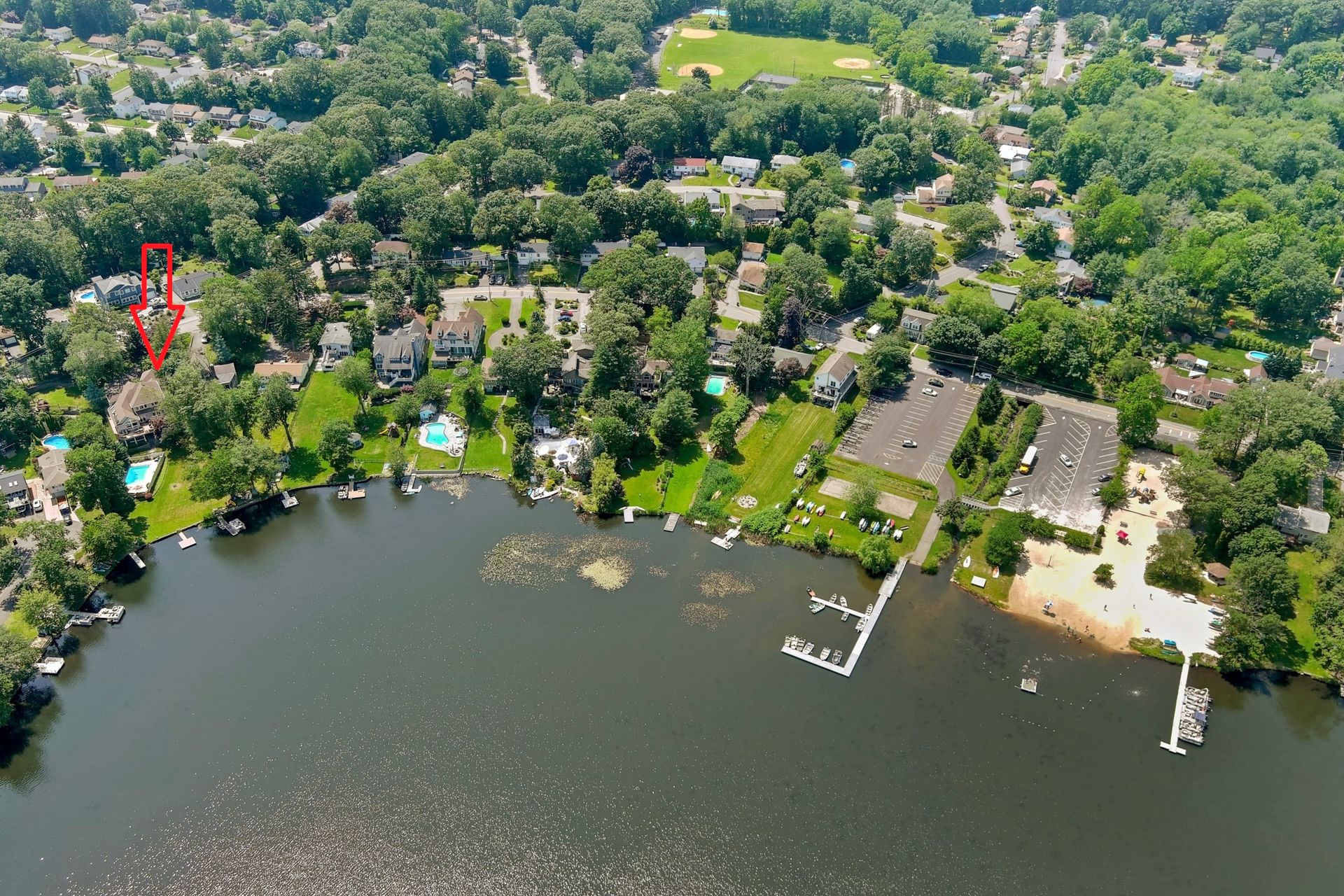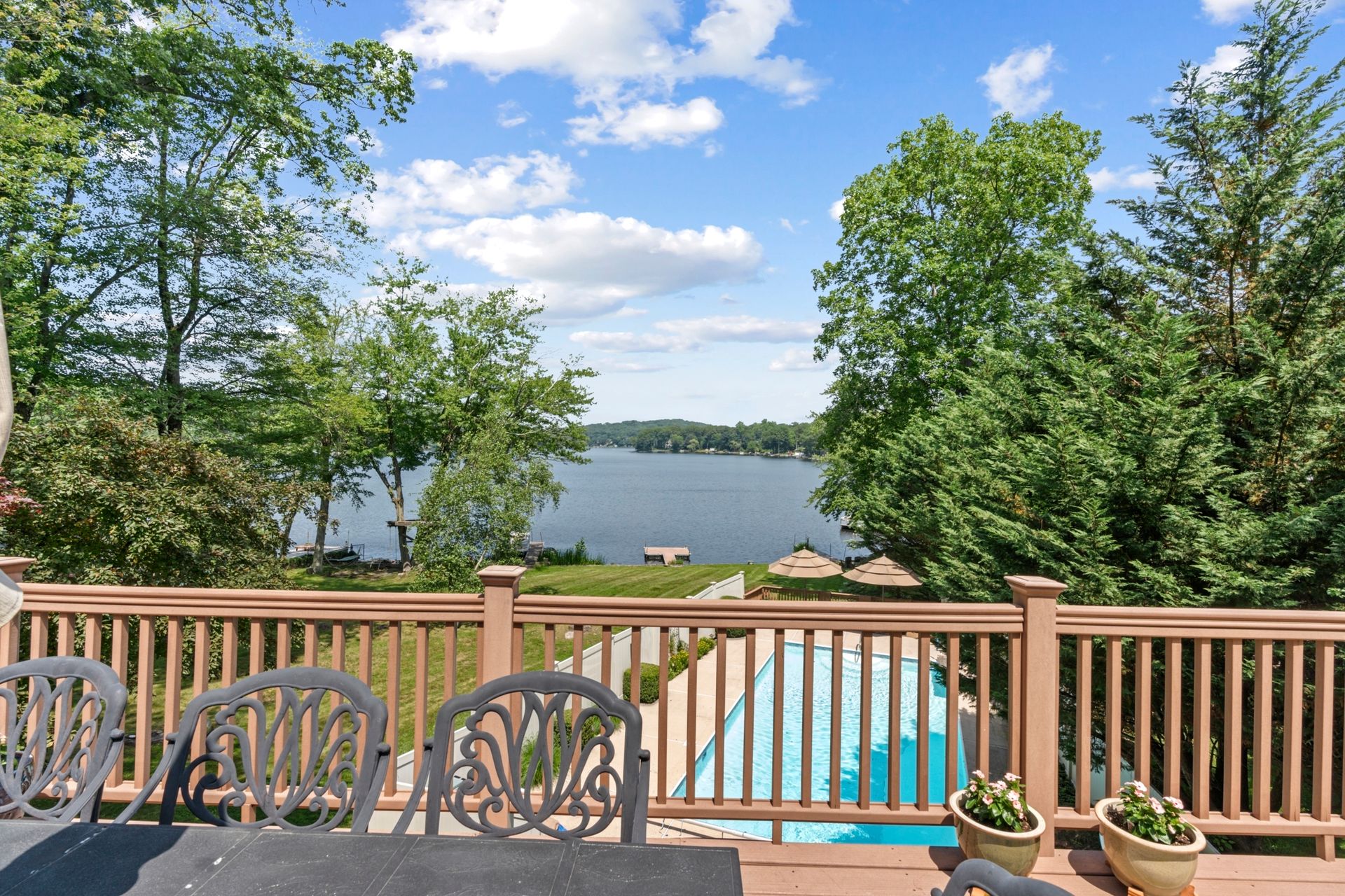 Stunning Lakefront Luxury in White Meadow Lake. This spectacular lakefront home offers some of the best views in the community. From the moment you enter, panoramic water vistas set the tone for an extraordinary custom residence designed for beauty, comfort, and easy living. The fabulous eat-in kitchen features custom cabinetry, great storage, and a layout ideal for cooking and gathering. Everything about this home is an entertainer's dream. The open floor plan flows seamlessly into the impressive great room with soaring ceilings, custom beams, and breathtaking year-round lake views, sunrises, sunsets, and tranquil winter scenes, all of which feel like your own private paradise. A luxurious main-level primary suite provides convenience with elegant finishes and custom walk-in closets. Upstairs, additional bedrooms, a loft, and flexible spaces offer room for everyone. Step outside to your private pool for summer relaxation, or enjoy your own dock for fishing, kayaking, and lakeside unwinding, true year-round vacation living. The walk-out basement adds incredible versatility for hobbies, fitness, storage, or creative pursuits. White Meadow Lake offers beaches, boating, fishing, a clubhouse, sports courts, playgrounds, and a vibrant community lifestyle. A rare opportunity to own an exceptional lakefront home.