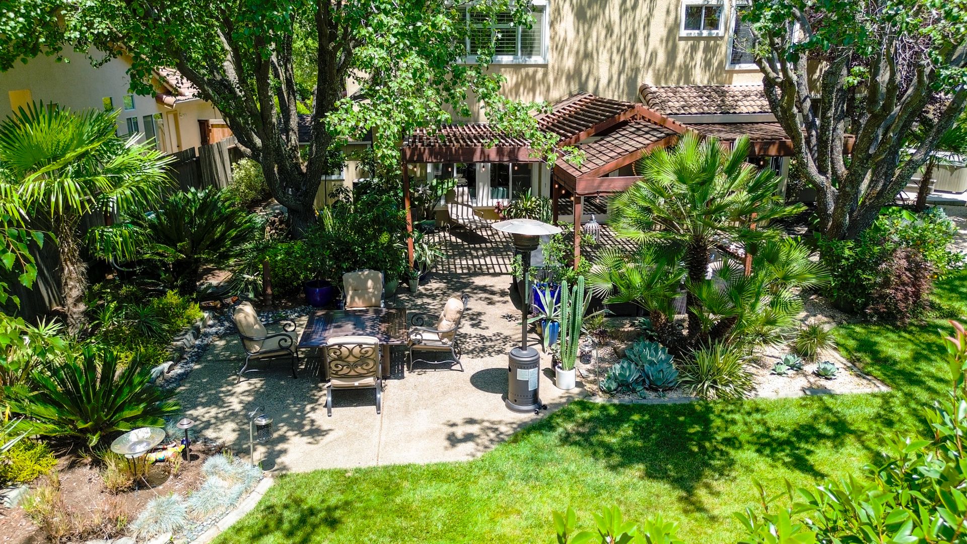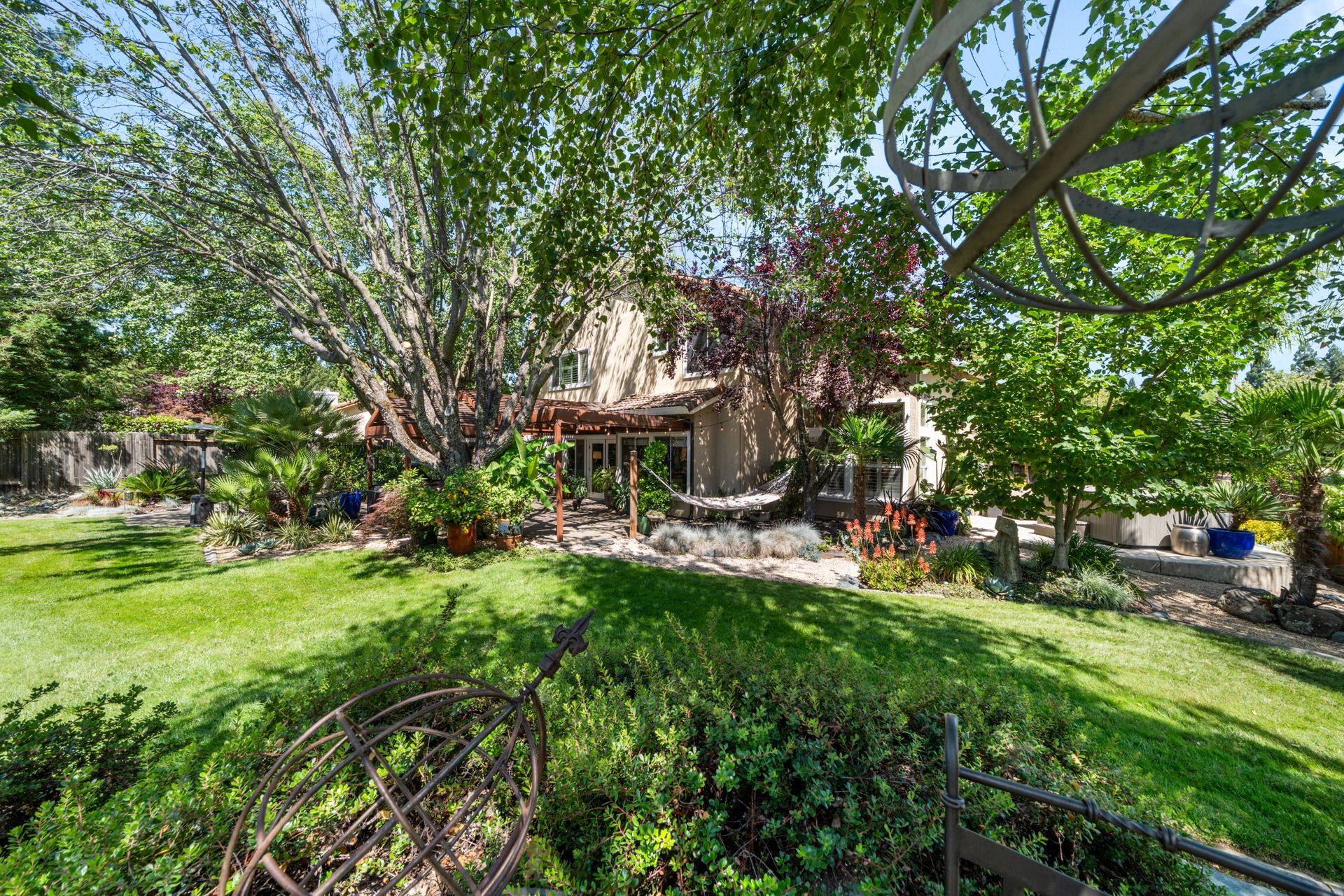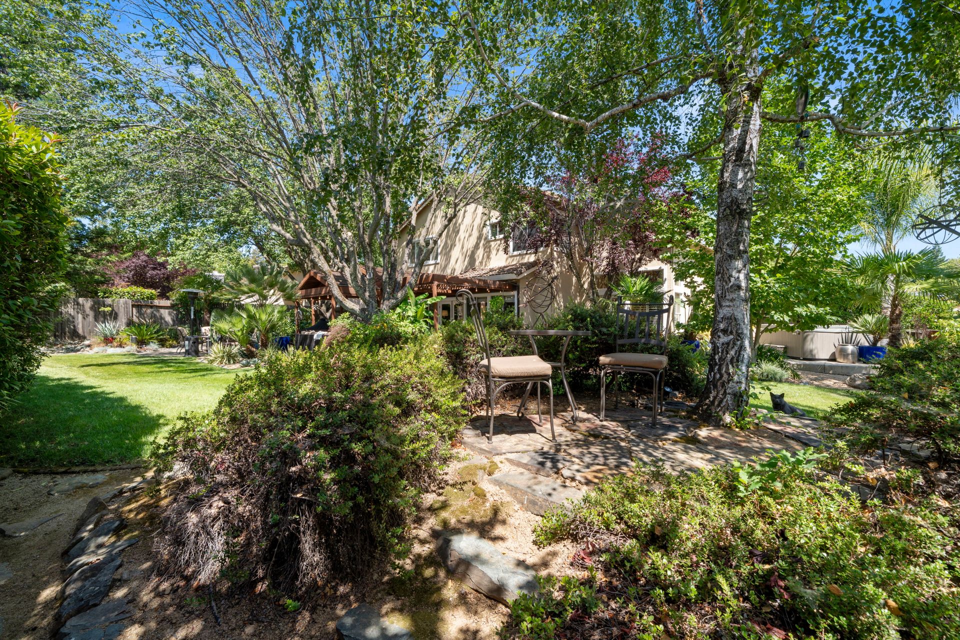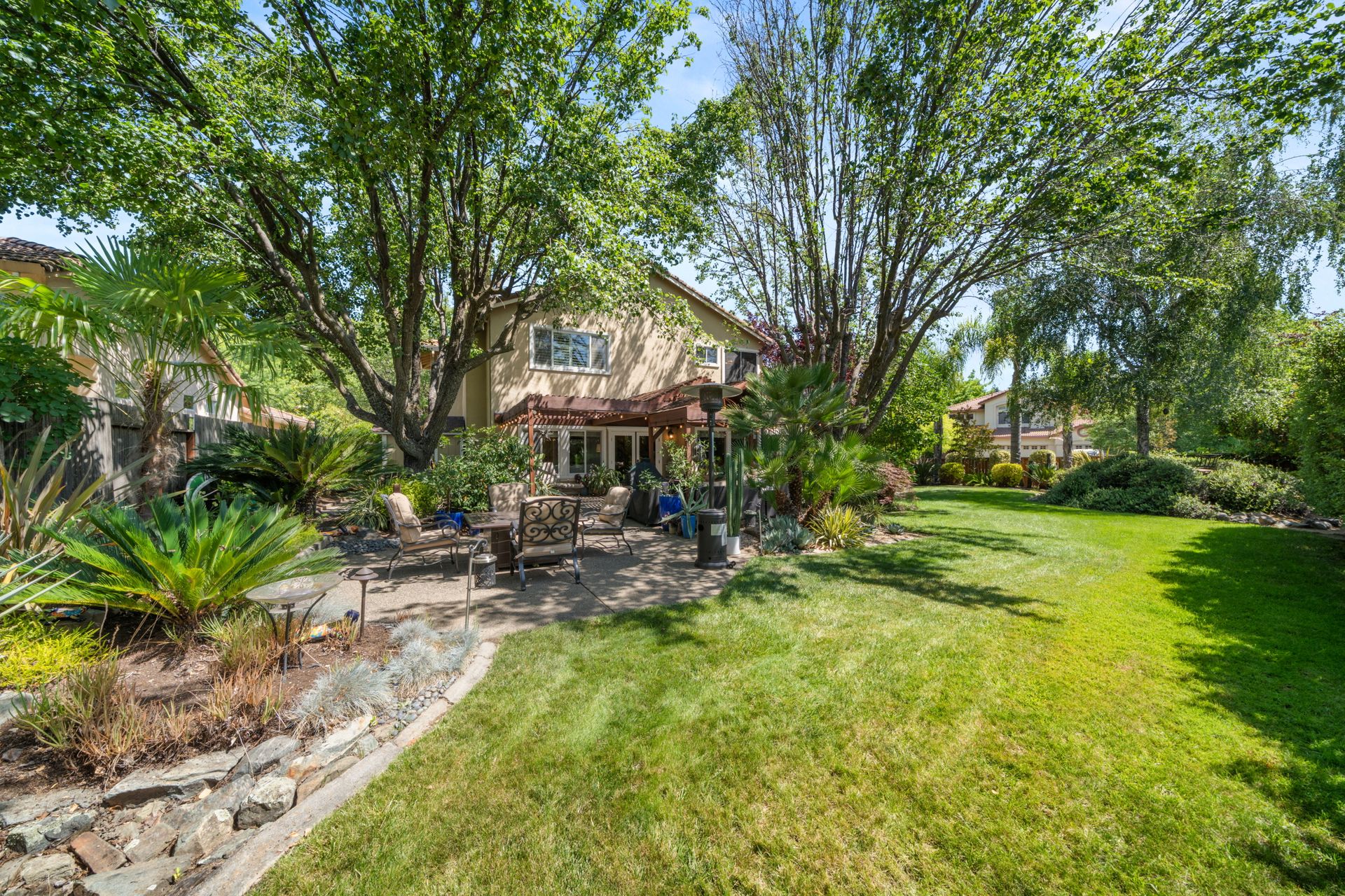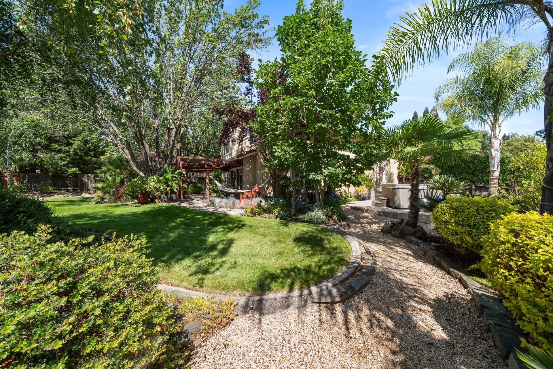 This stylish corner-lot home in Green Valley Hills offers privacy, location, and lifestyle. Just minutes from Folsom Lake and near top-rated schools, this home offers a balance of nature and convenience. With soaring ceilings and sunlit spaces, bay windows & bright rooms create a warm, welcoming vibe. The open layout invites movement from the living & dining areas. The kitchen and family room connect openly for everyday family living, and the breakfast nook offers serene backyard views. The landscaped yard feels like your own private park—complete with a large shady pergola, lush lawn, palm trees, peaceful walking path to a relaxing spa, and plenty of areas to BBQ and gather. The large primary suite is a relaxing retreat with scenic views and a spacious en-suite bath. It’s the ideal home base for your next adventure. No HOA, no Mello Roos. Near Folsom Lake, parks, shopping, restaurants, and top schools.