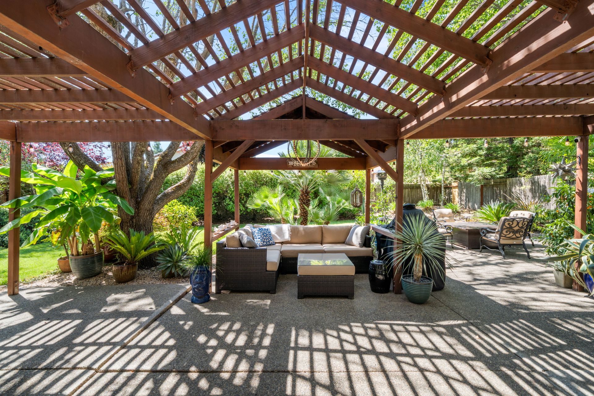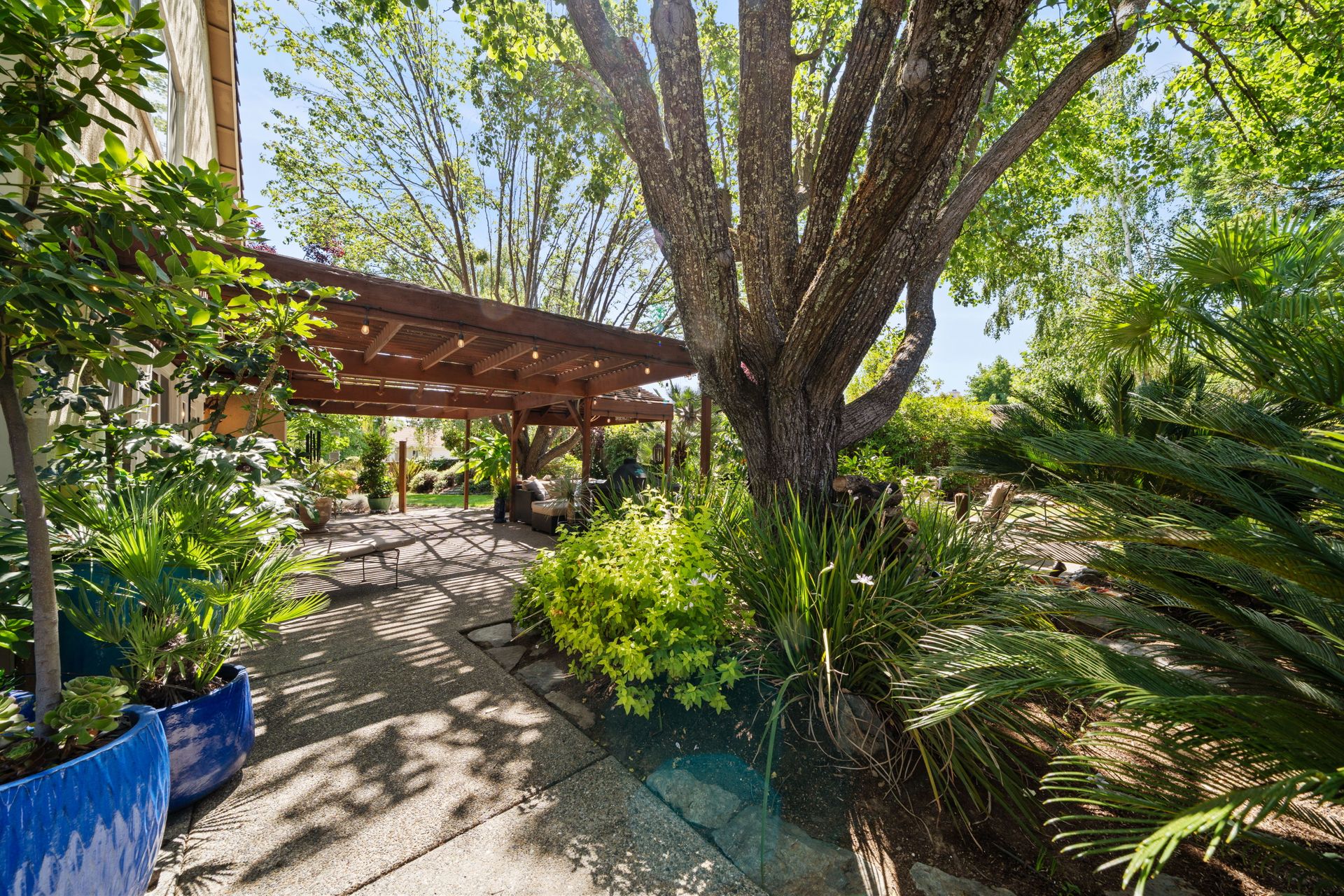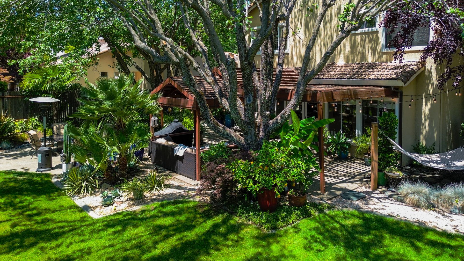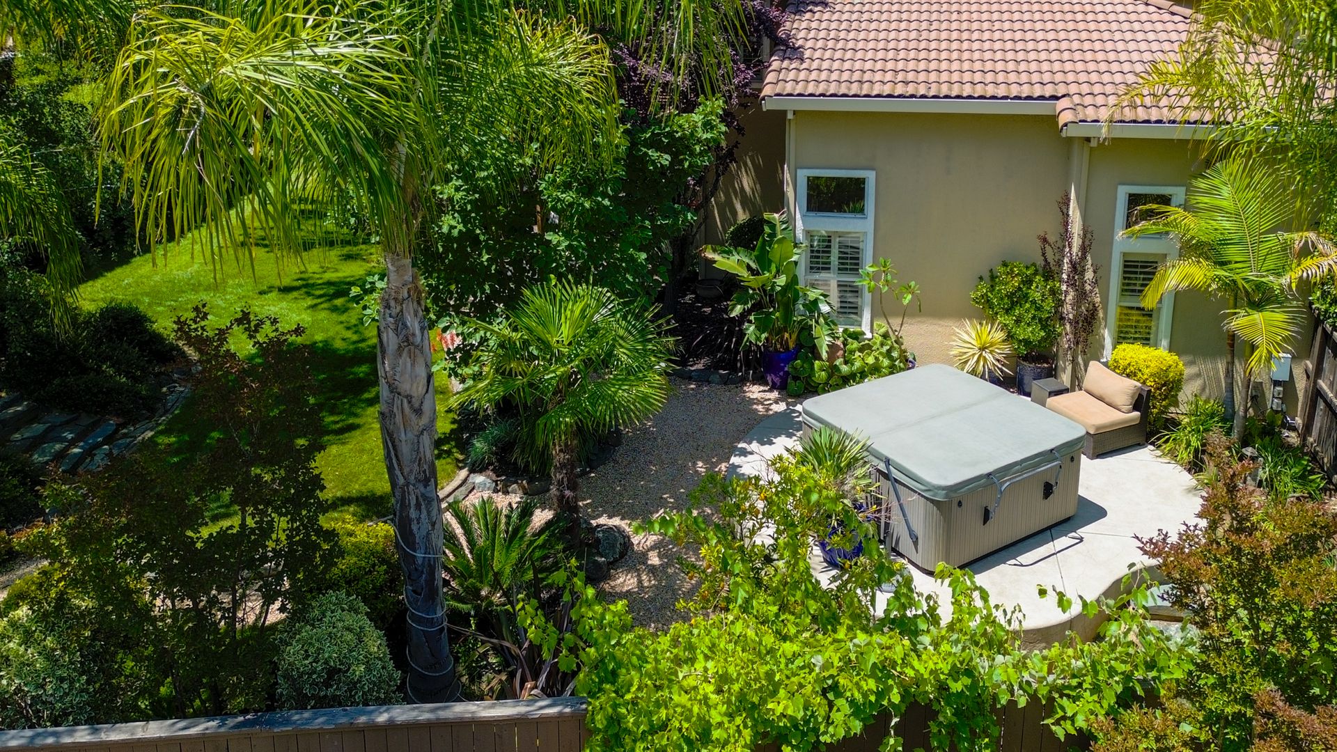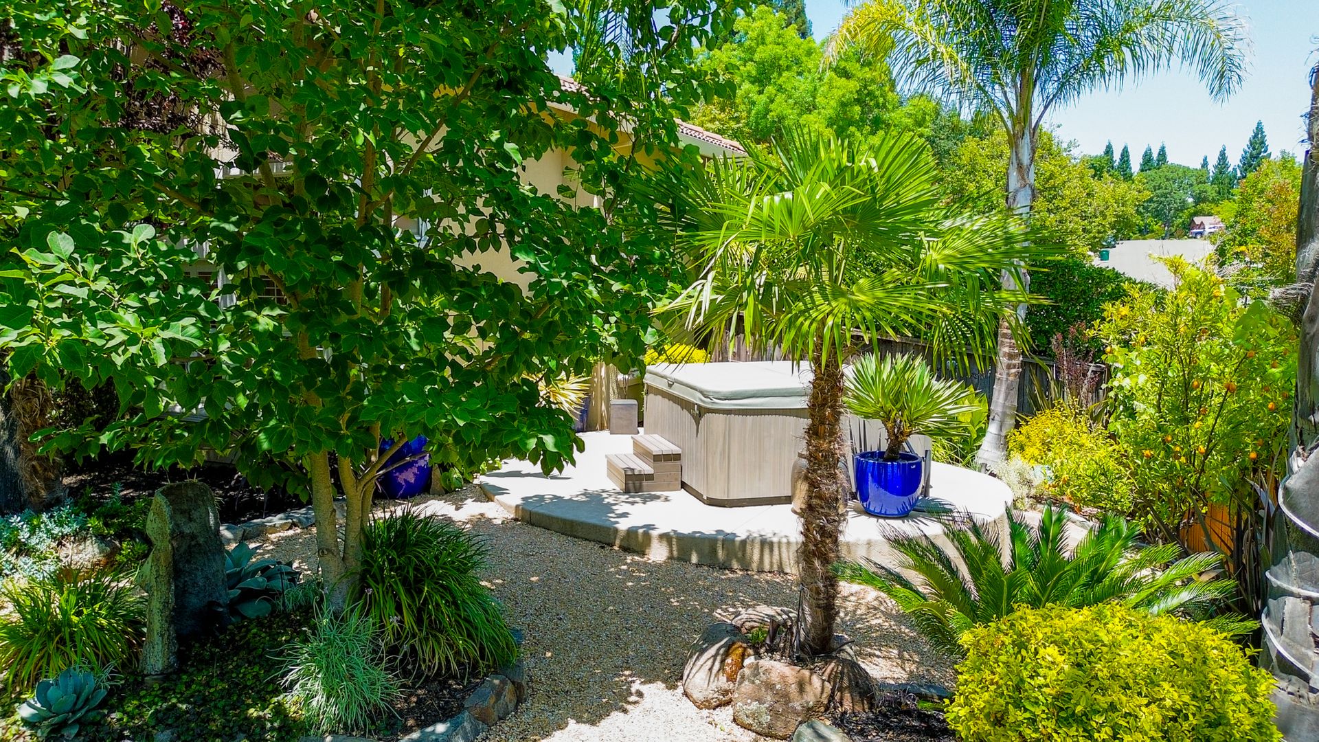 This stylish corner-lot home in Green Valley Hills offers privacy, location, and lifestyle. Just minutes from Folsom Lake and near top-rated schools, this home offers a balance of nature and convenience. With soaring ceilings and sunlit spaces, bay windows & bright rooms create a warm, welcoming vibe. The open layout invites movement from the living & dining areas. The kitchen and family room connect openly for everyday family living, and the breakfast nook offers serene backyard views. The landscaped yard feels like your own private park—complete with a large shady pergola, lush lawn, palm trees, peaceful walking path to a relaxing spa, and plenty of areas to BBQ and gather. The large primary suite is a relaxing retreat with scenic views and a spacious en-suite bath. It’s the ideal home base for your next adventure. No HOA, no Mello Roos. Near Folsom Lake, parks, shopping, restaurants, and top schools.