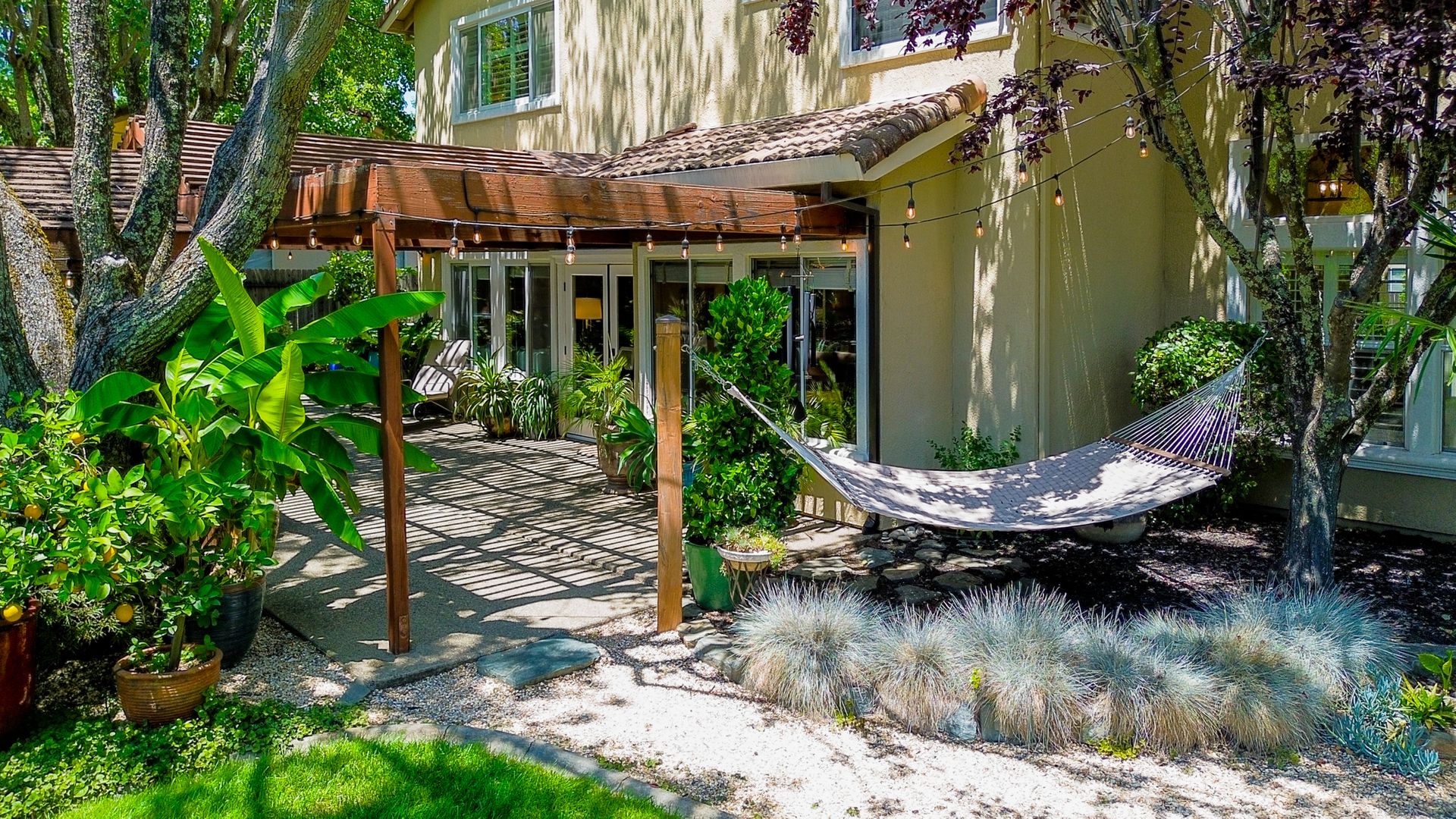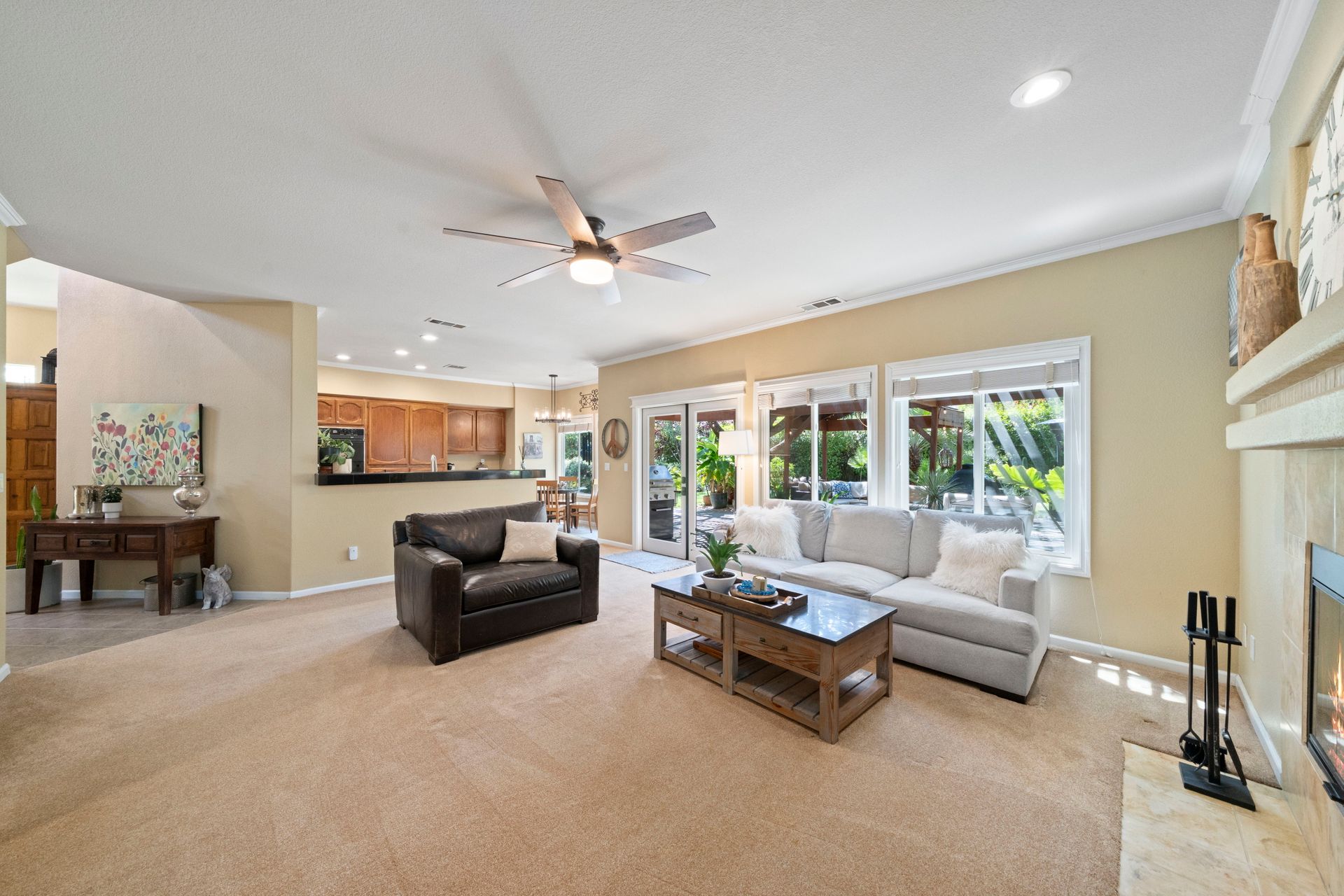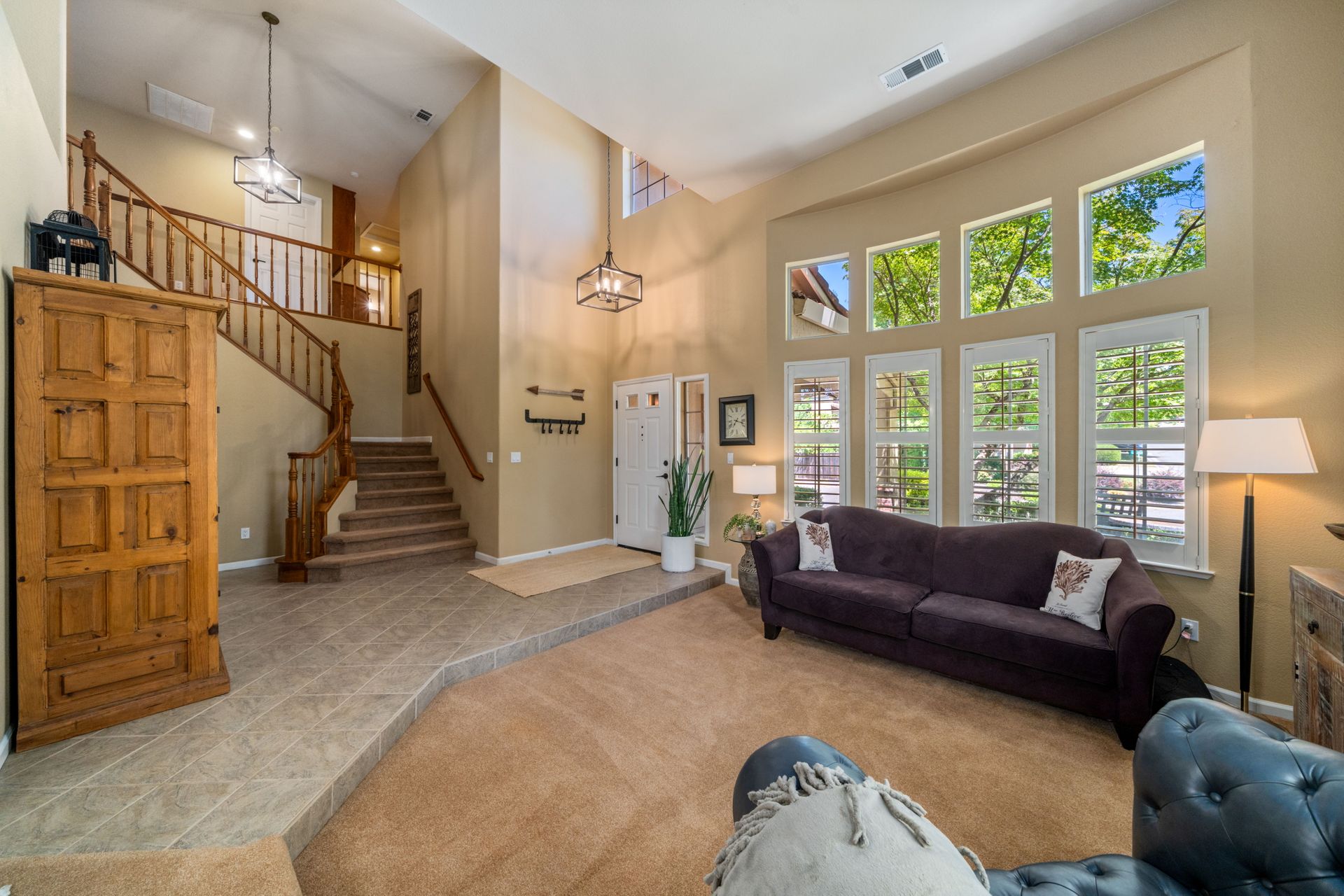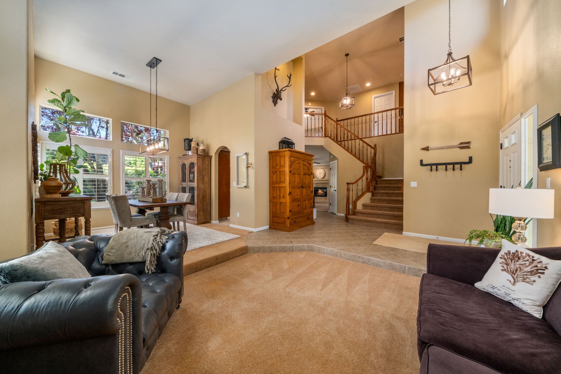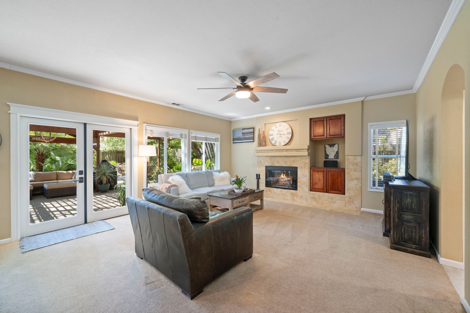 This stylish corner-lot home in Green Valley Hills offers privacy, location, and lifestyle. Just minutes from Folsom Lake and near top-rated schools, this home offers a balance of nature and convenience. With soaring ceilings and sunlit spaces, bay windows & bright rooms create a warm, welcoming vibe. The open layout invites movement from the living & dining areas. The kitchen and family room connect openly for everyday family living, and the breakfast nook offers serene backyard views. The landscaped yard feels like your own private park—complete with a large shady pergola, lush lawn, palm trees, peaceful walking path to a relaxing spa, and plenty of areas to BBQ and gather. The large primary suite is a relaxing retreat with scenic views and a spacious en-suite bath. It’s the ideal home base for your next adventure. No HOA, no Mello Roos. Near Folsom Lake, parks, shopping, restaurants, and top schools.