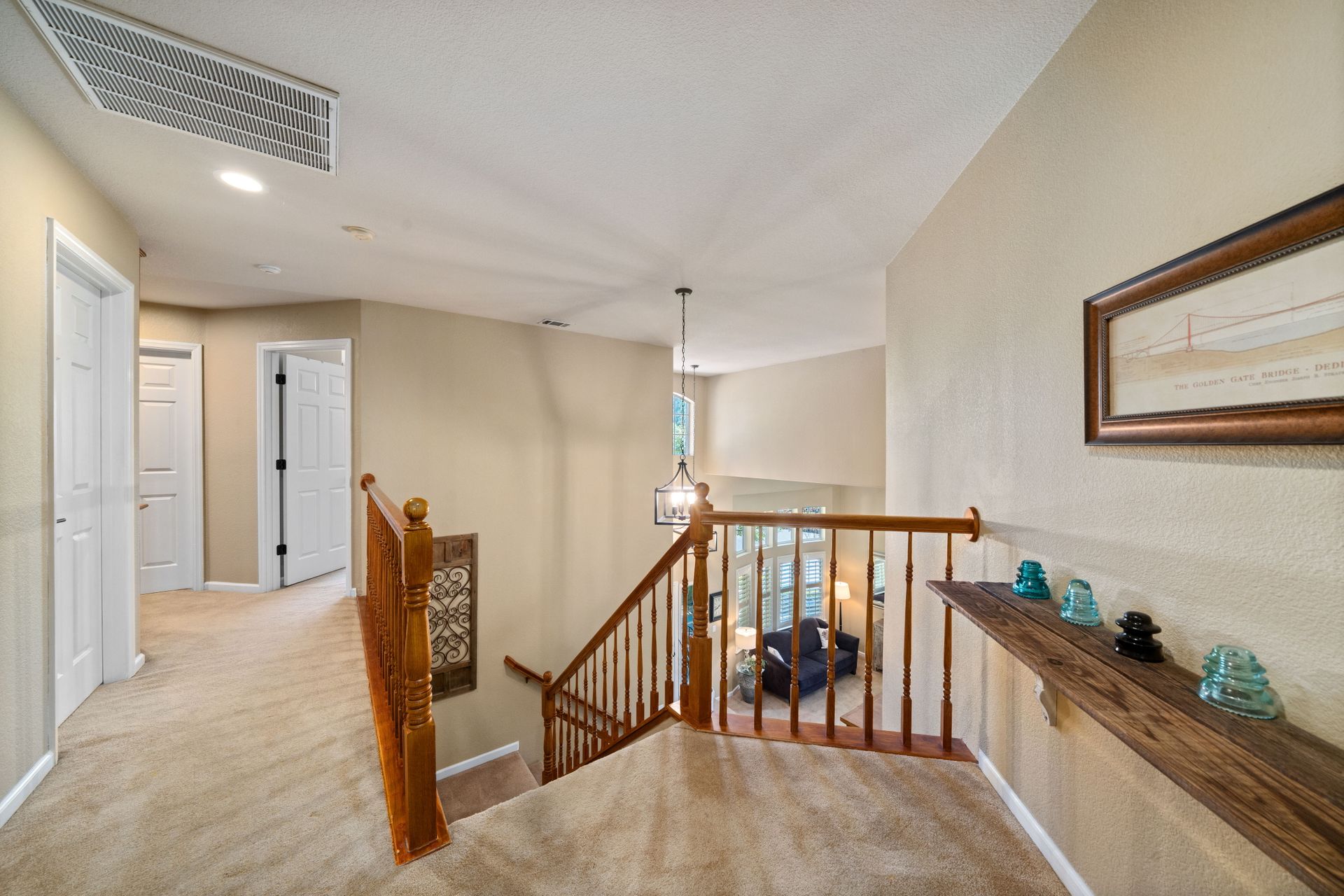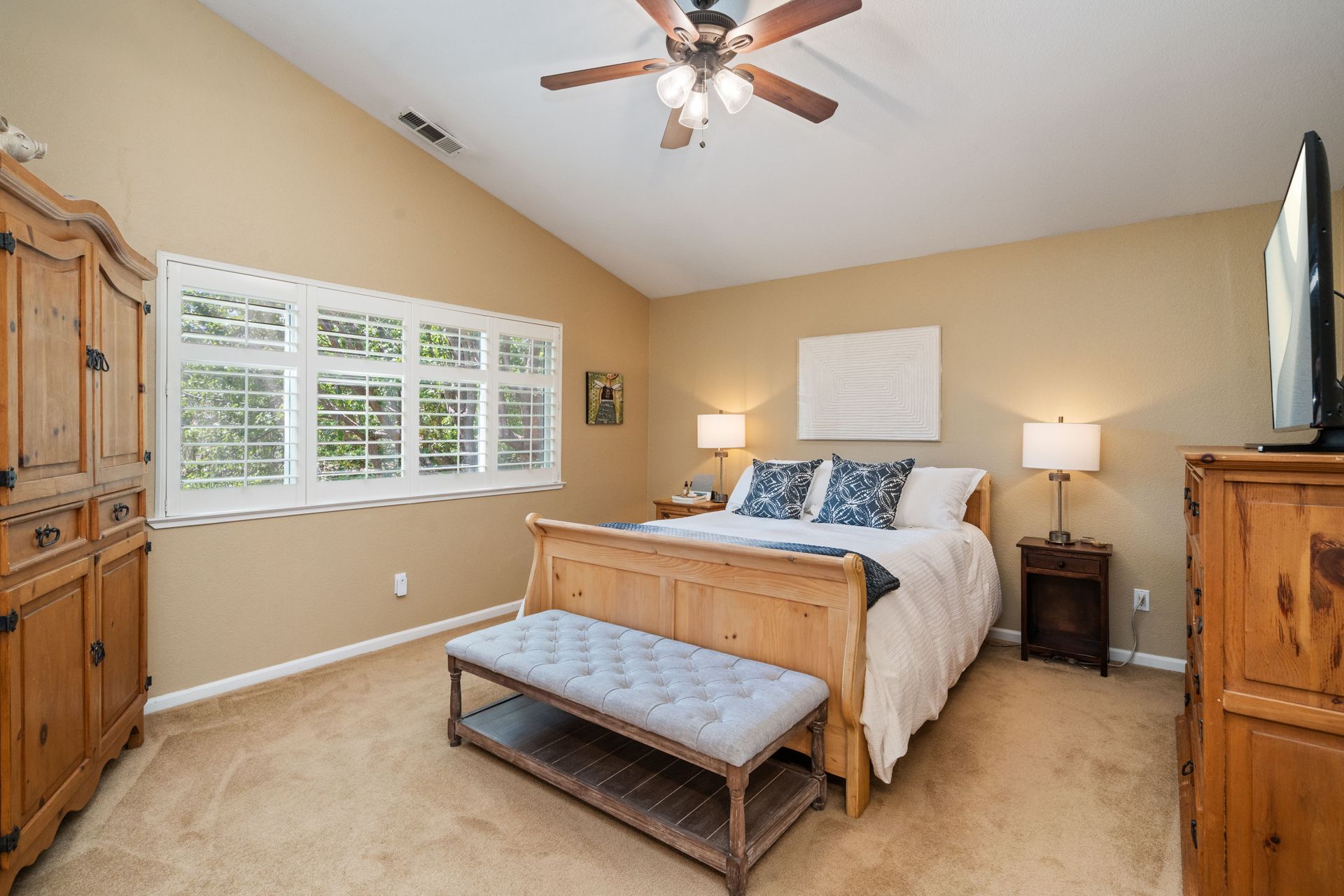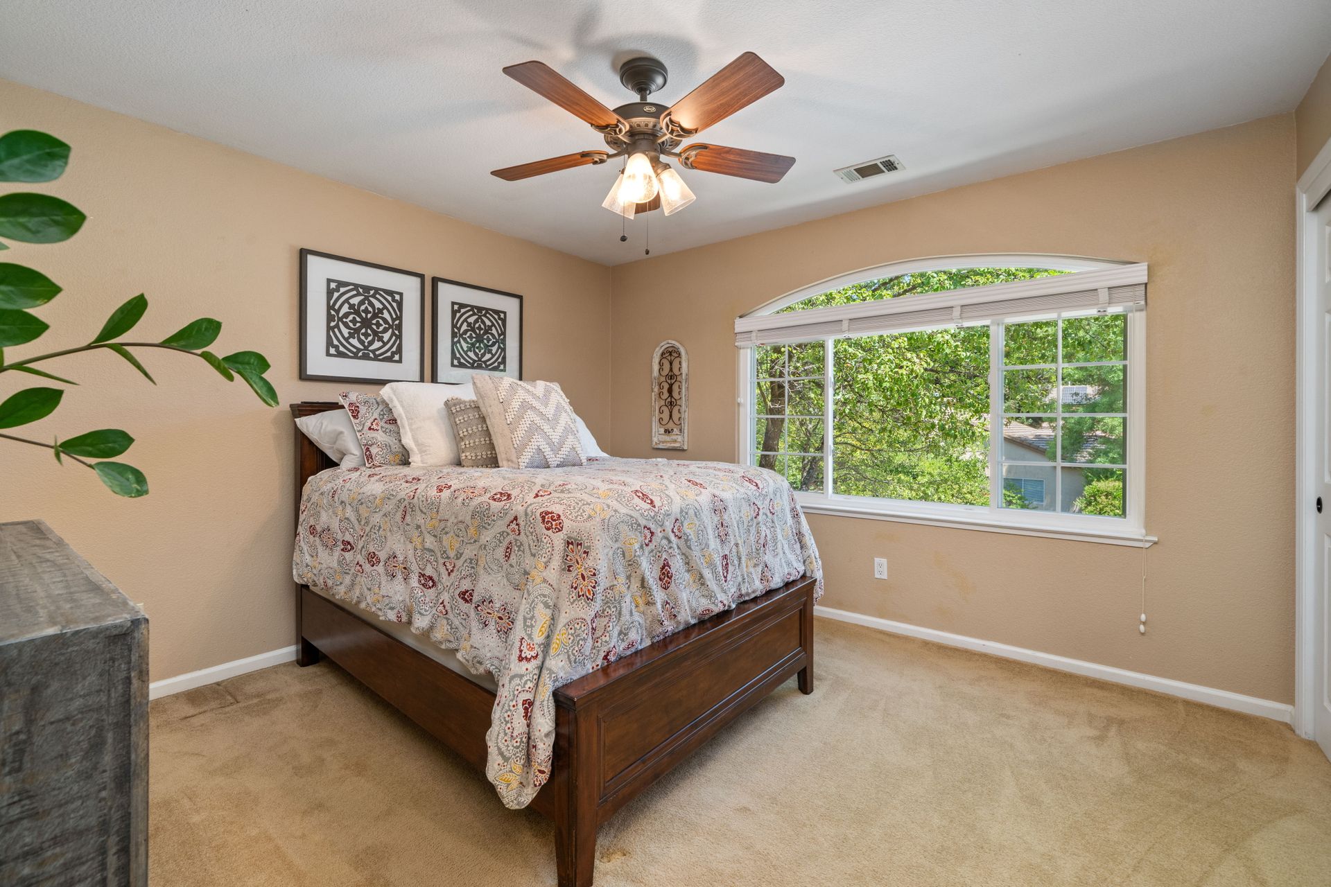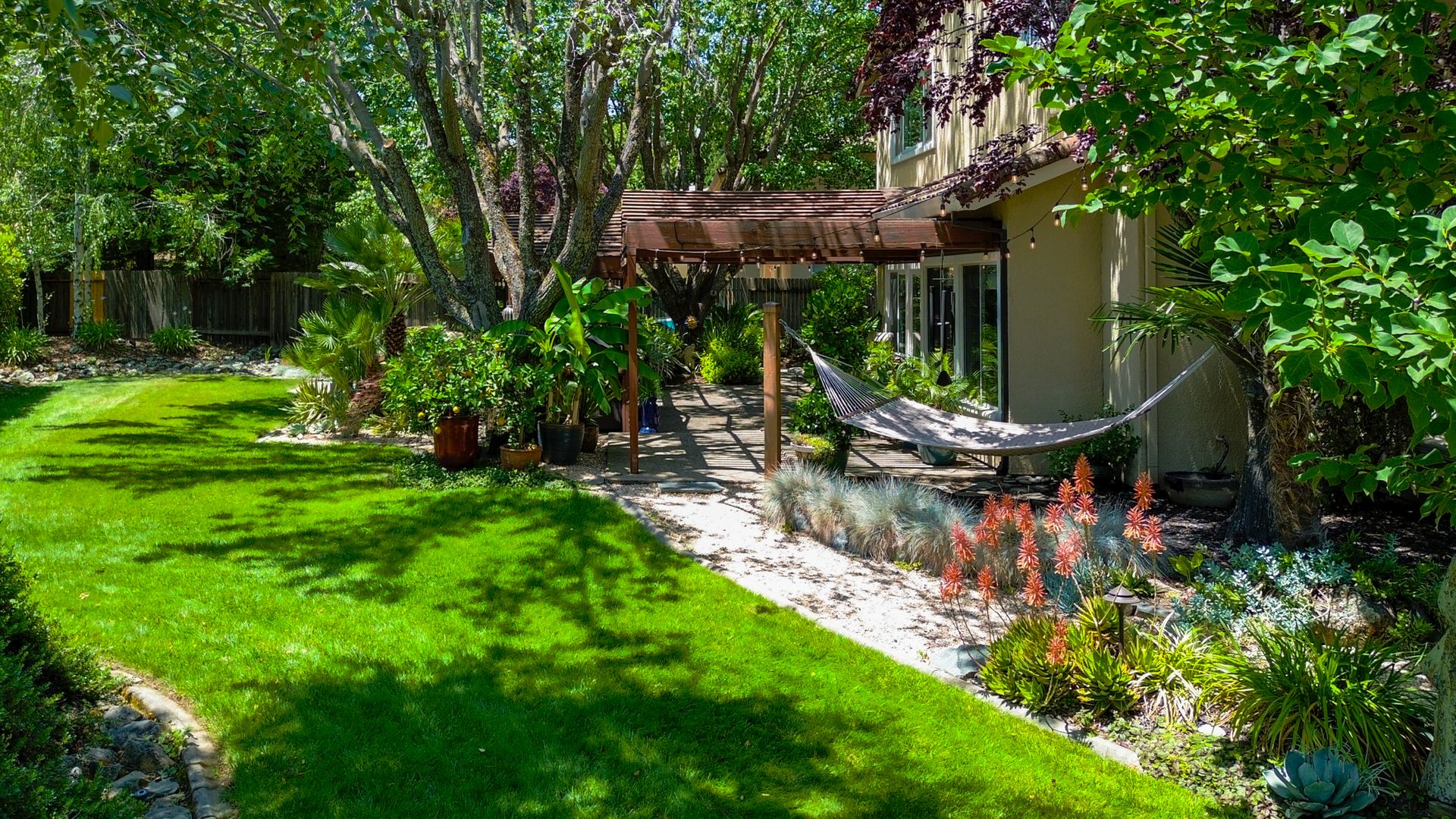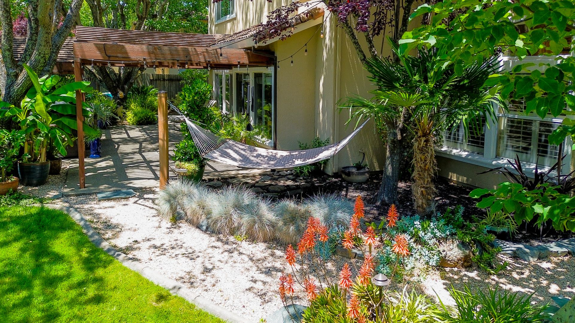 This stylish corner-lot home in Green Valley Hills offers privacy, location, and lifestyle. Just minutes from Folsom Lake and near top-rated schools, this home offers a balance of nature and convenience. With soaring ceilings and sunlit spaces, bay windows & bright rooms create a warm, welcoming vibe. The open layout invites movement from the living & dining areas. The kitchen and family room connect openly for everyday family living, and the breakfast nook offers serene backyard views. The landscaped yard feels like your own private park—complete with a large shady pergola, lush lawn, palm trees, peaceful walking path to a relaxing spa, and plenty of areas to BBQ and gather. The large primary suite is a relaxing retreat with scenic views and a spacious en-suite bath. It’s the ideal home base for your next adventure. No HOA, no Mello Roos. Near Folsom Lake, parks, shopping, restaurants, and top schools.