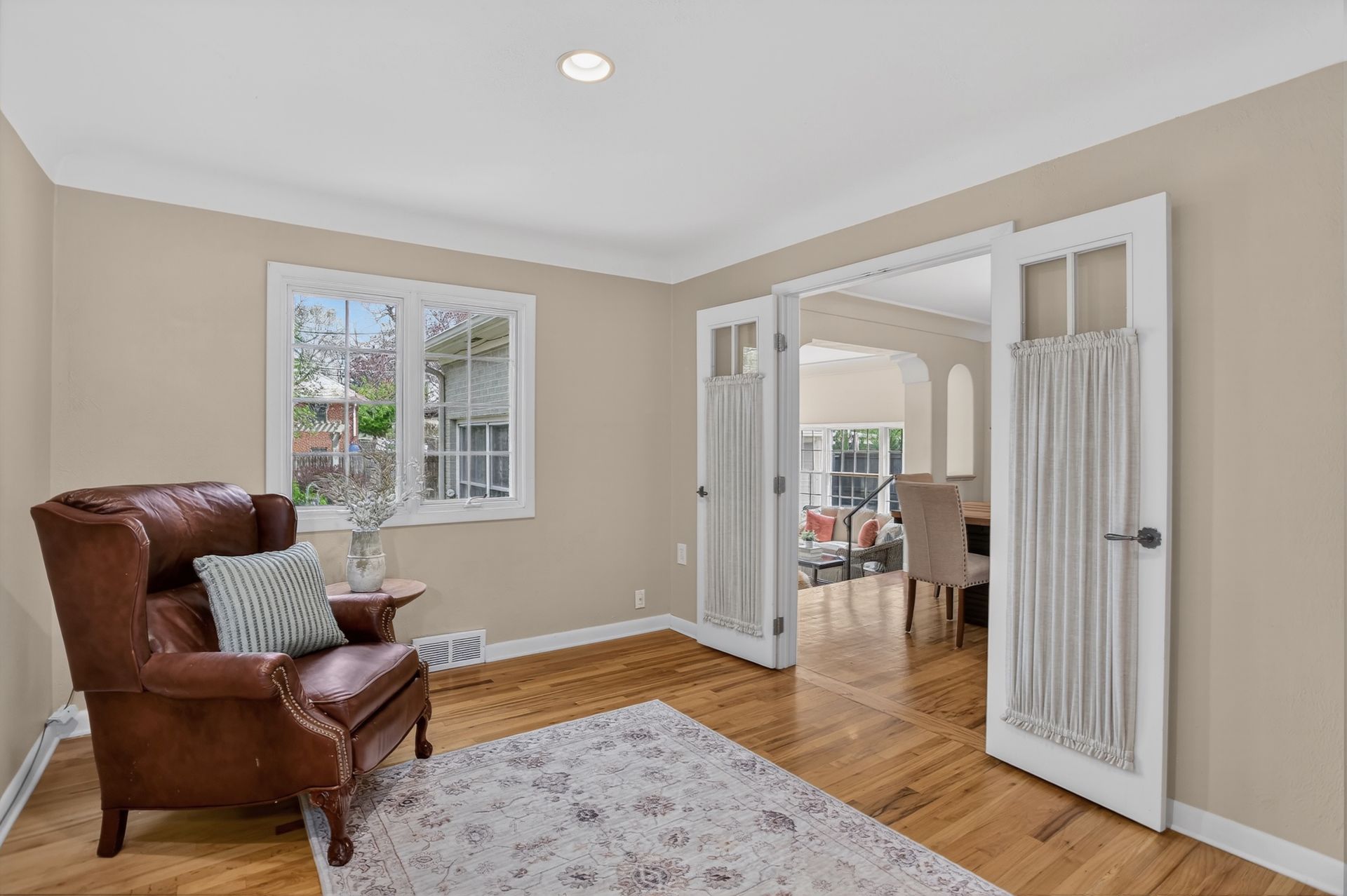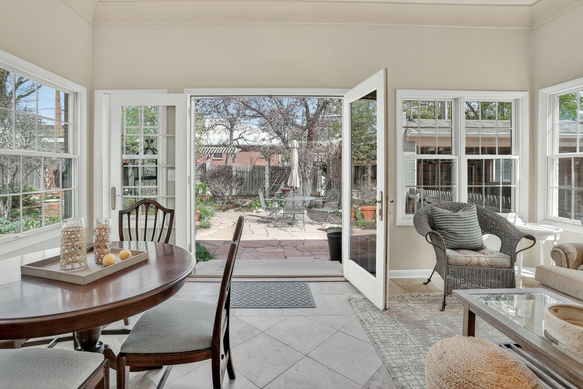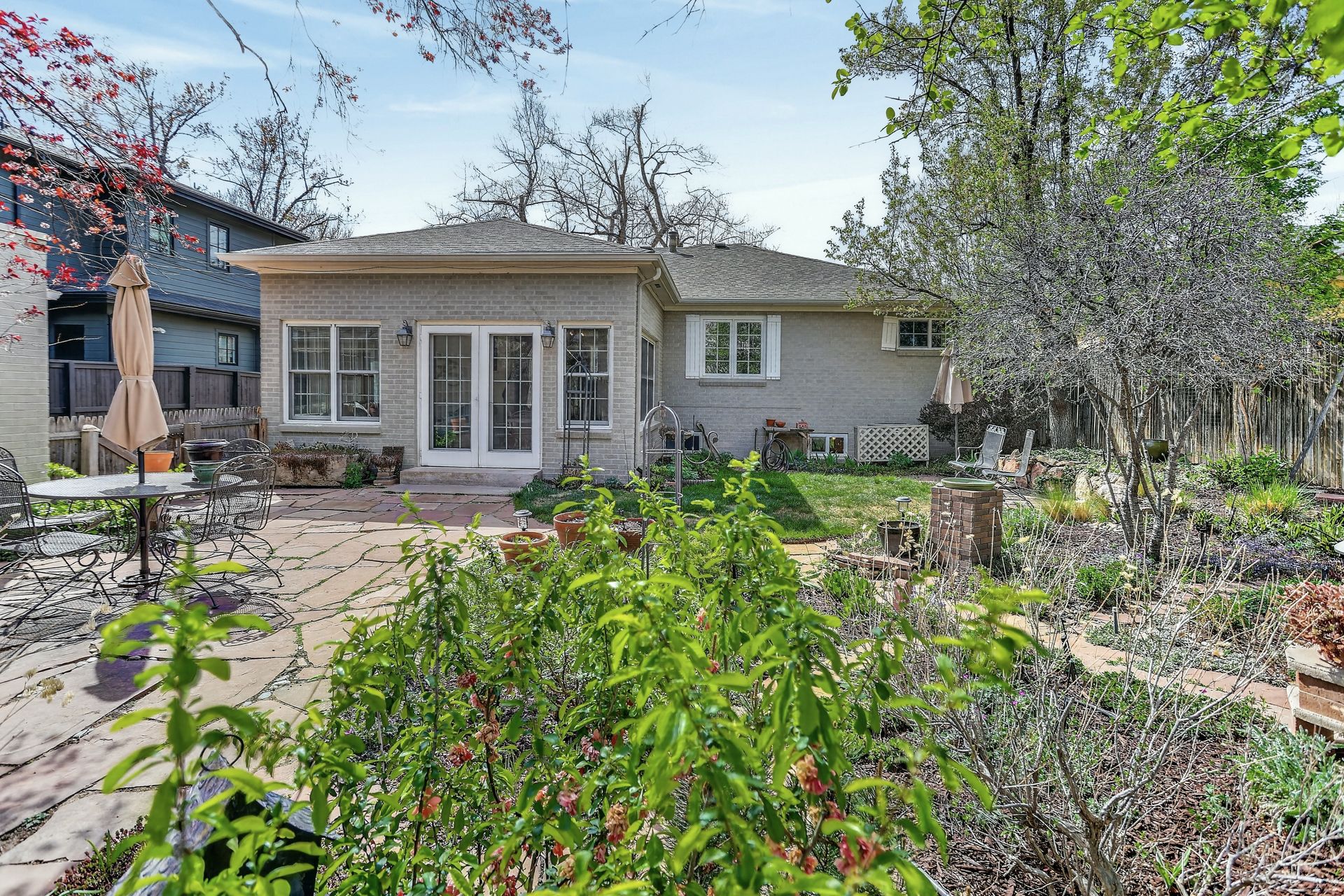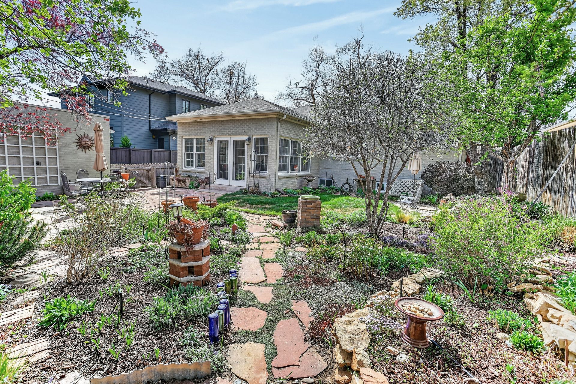 Welcome home to the beautiful neighborhood of Hilltop! Set on a peaceful, tree-lined street, this three-bed/ three-bath home offers the perfect balance of historic charm, thoughtful renovations, and everyday functionality. As you enter the front door, the living room is embellished with the classic cottage style details such as cove ceilings, arched doorways, and hardwood floors throughout. The chef’s kitchen showcases distressed maple cabinetry with a refined, white-washed finish and premium appliances. A breakfast nook filled with sunlight is an ideal spot for casual meals or your morning coffee. Adjacent to the kitchen, the formal dining room provides ample space for entertaining guests. Enter through the French doors into the main floor study, which features built-in cabinetry and can easily serve as a home office, fourth bedroom, or media room. Adjacent to the dining area, the generously sized family or patio room offers expansive windows on three sides, limestone flooring, recessed lighting, cove ceiling, and a Jøtul gas stove in addition to central heating and air conditioning. The main floor also includes two spacious bedrooms featuring ample closet storage, as well as both a full bathroom and a half bathroom. Maximize your lifestyle in the versatile lower level, where sprawling entertainment space meets thoughtful utility. Features include a non-conforming third bedroom and a three-quarter bath, alongside a laundry room and a "bonus" room ideal for a hobbyist’s retreat or an additional bedroom. Offering an abundance of hidden storage, this level is as functional as it is impressive. The backyard reveals a meticulously manicured English walking garden. Experience a location that is truly second to none, where the quiet charm of Hilltop meets the cosmopolitan energy of Cherry Creek. Close to acclaimed schools and scenic parkways. It is, quite simply, a rare invitation to own a piece of Denver’s most coveted neighborhood at an unbeatable price point.