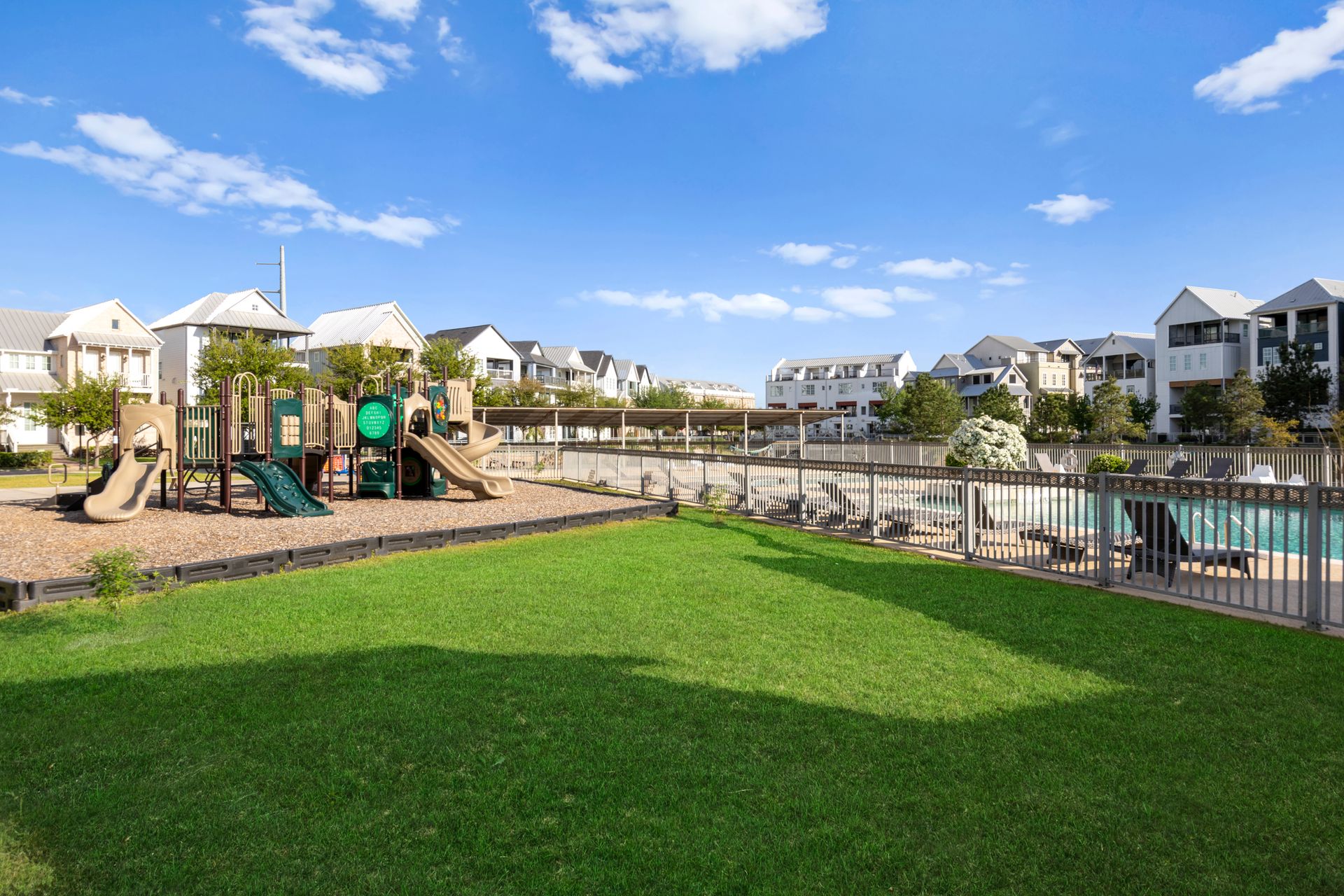 Venturing outside, the covered patio and surrounding lush greenery provide a tranquil retreat. The community amenities include a pool and a playground centered around a picturesque pond with a path.