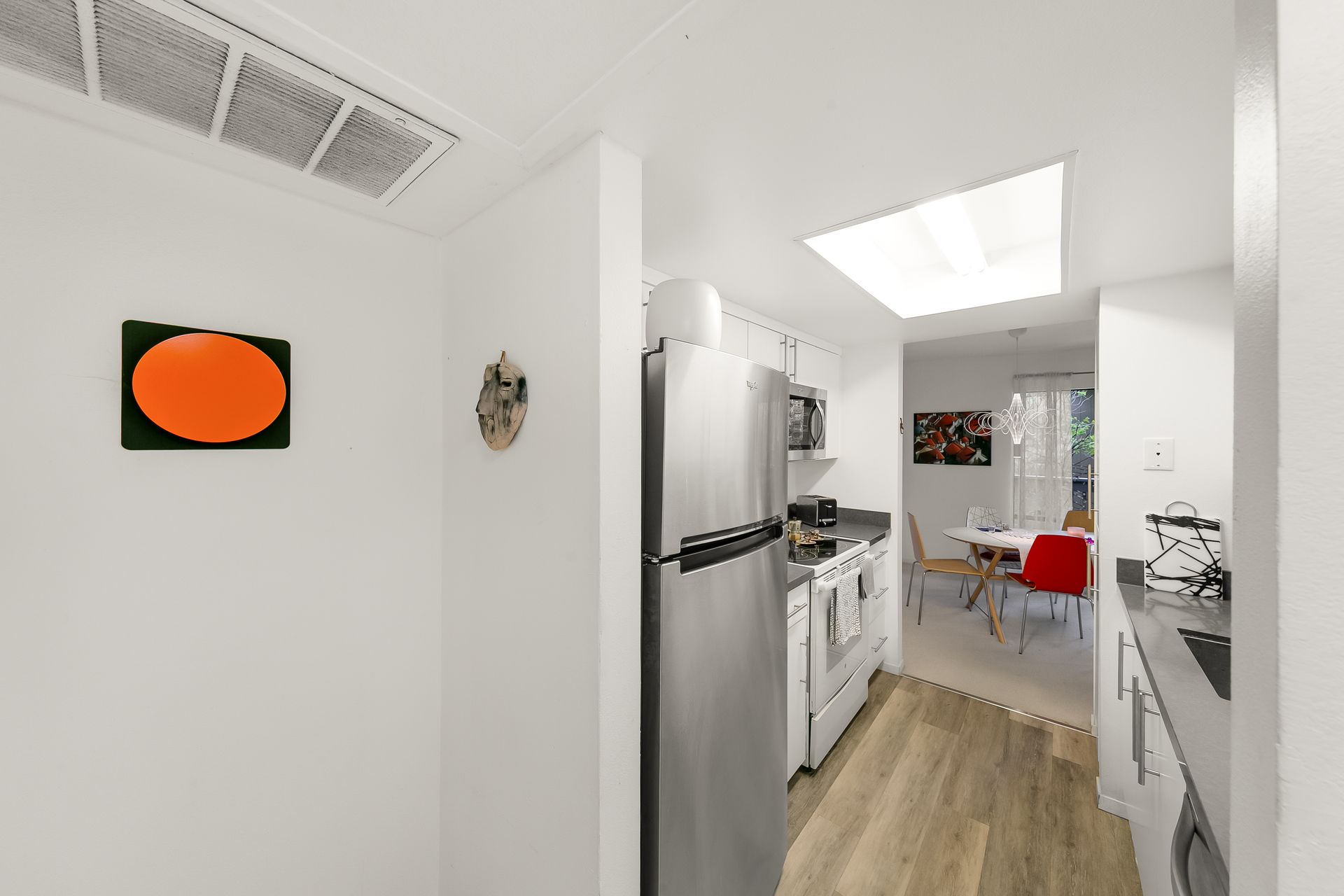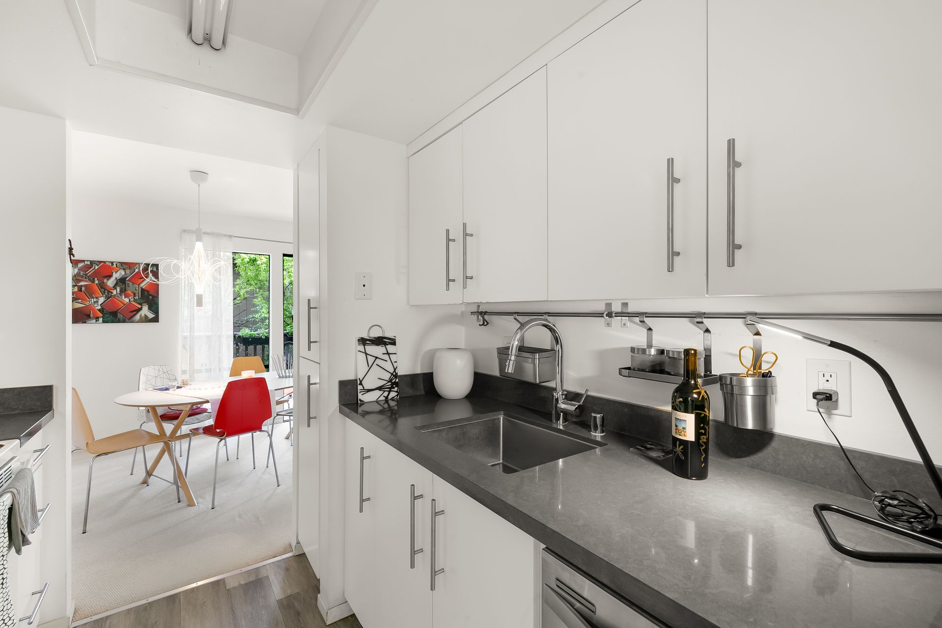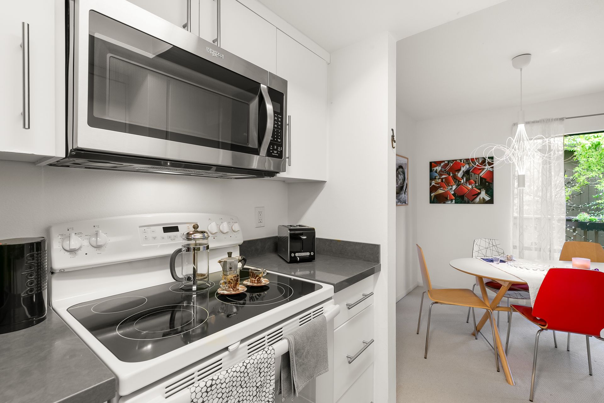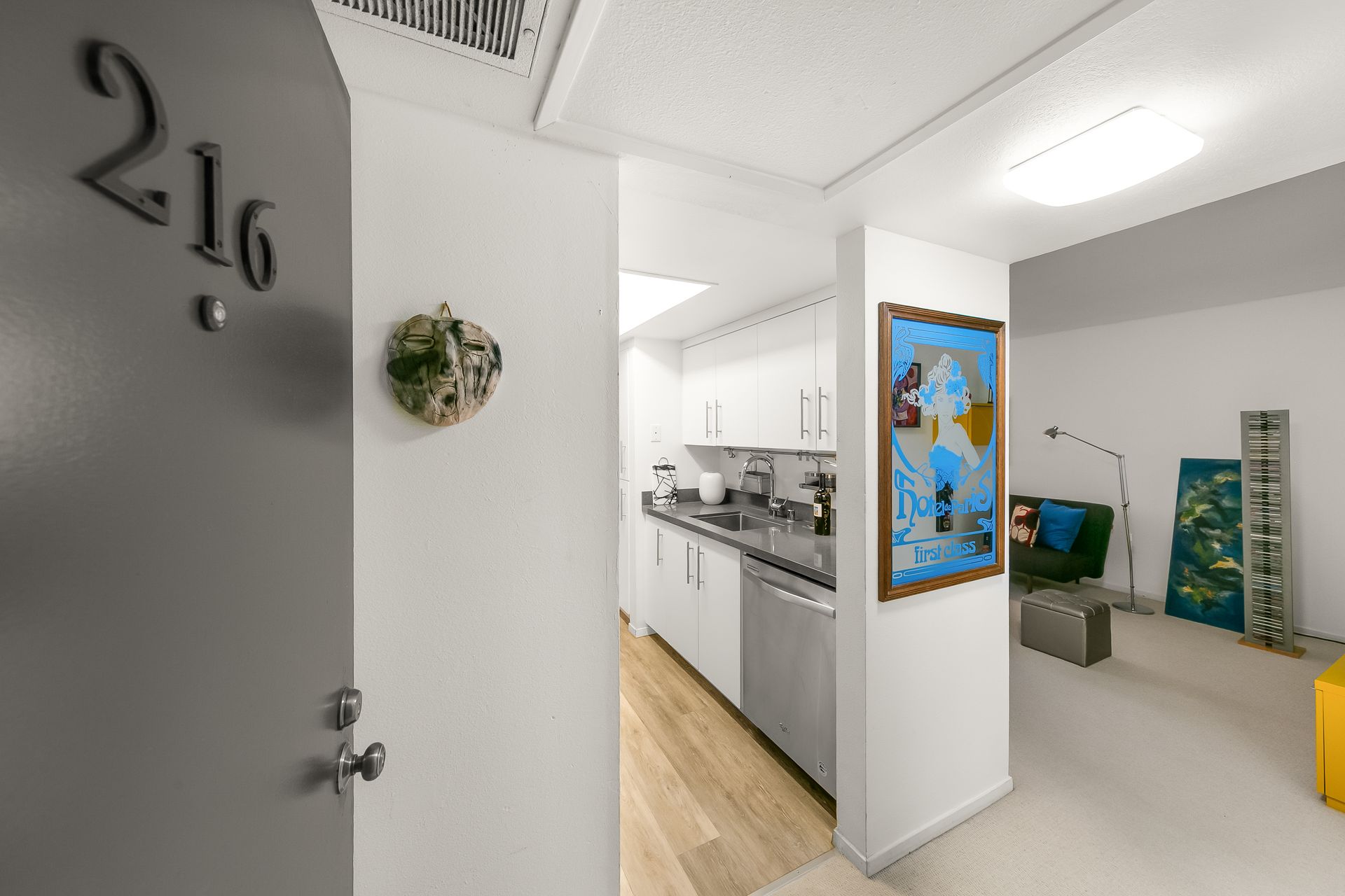 The kitchen has newer appliances with stainless steel sink and a GROHE faucet (appliances convey). The bathroom has a tub with a shower over and a Grohe faucet. Walls have newer paint. Newer bedroom/hallway closets enable abundant storage.