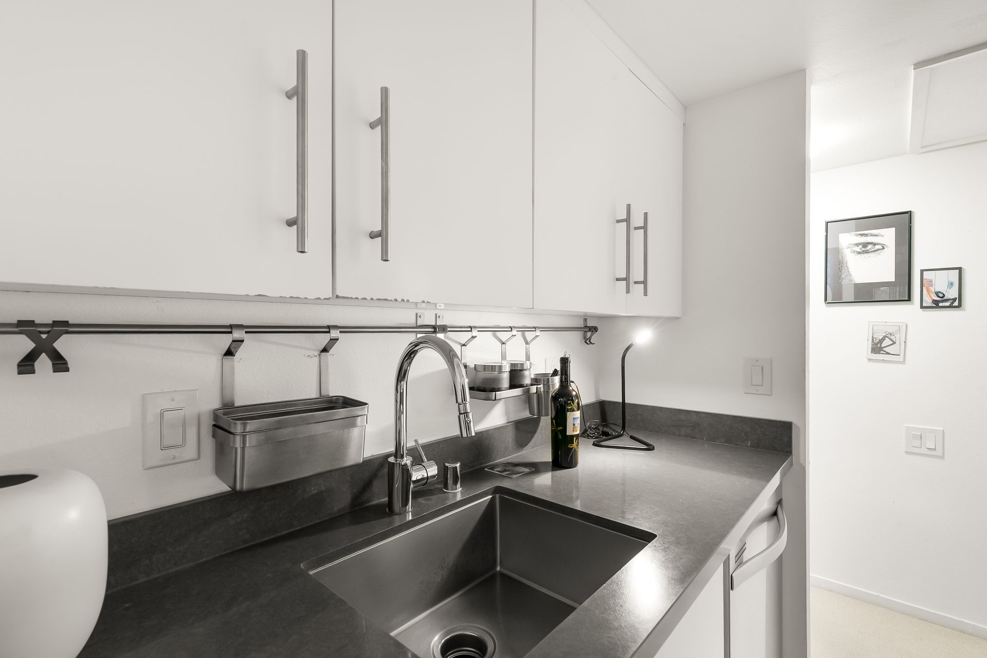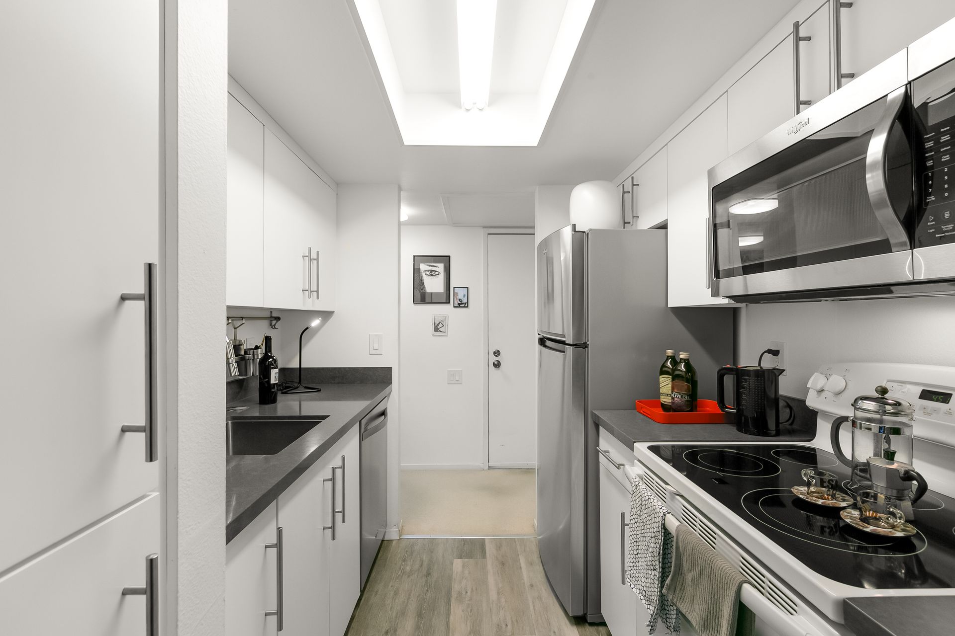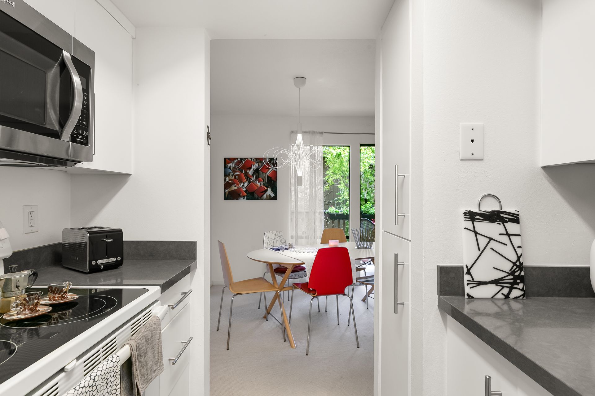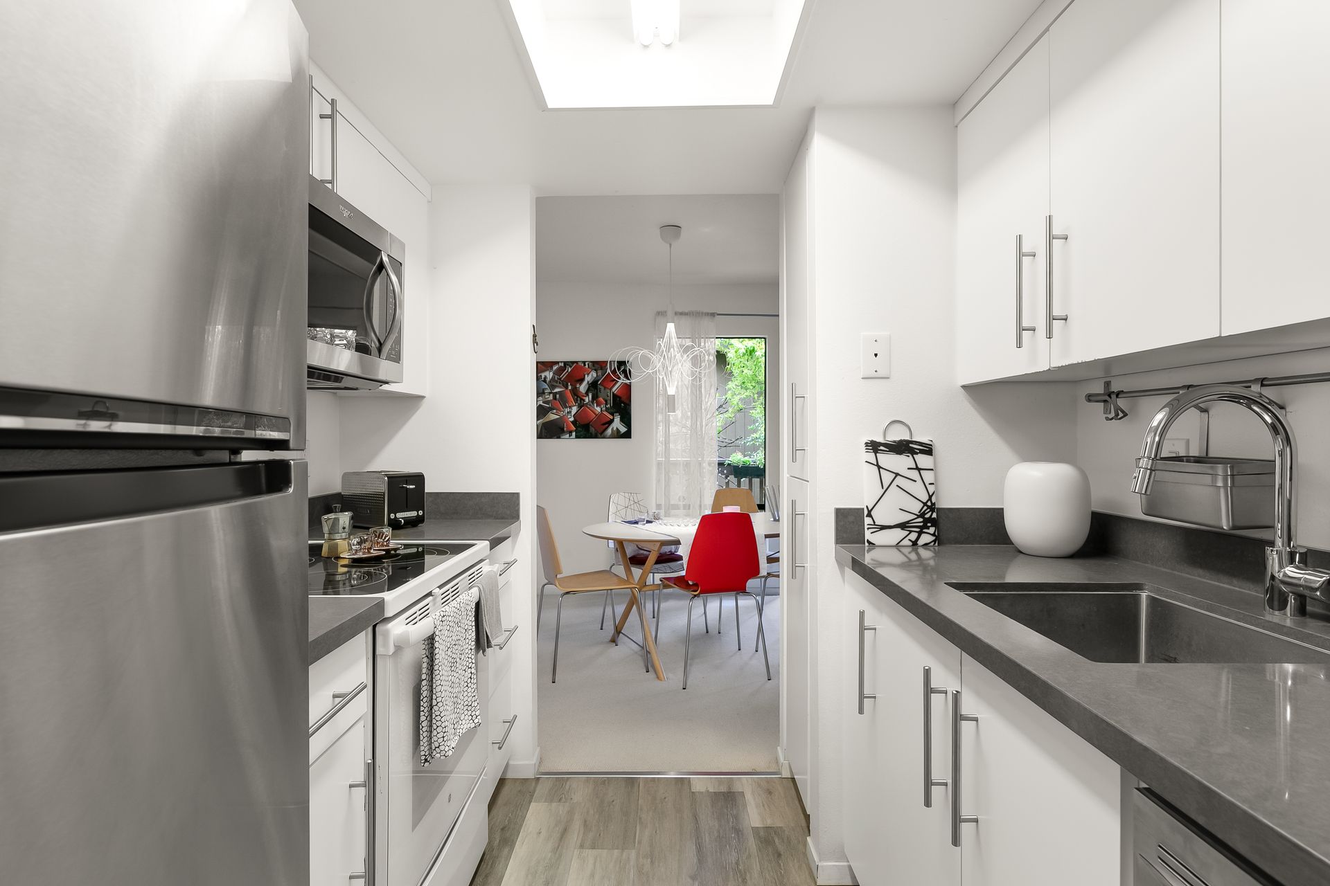 The kitchen has newer appliances with stainless steel sink and a GROHE faucet (appliances convey). The bathroom has a tub with a shower over and a Grohe faucet. Walls have newer paint. Newer bedroom/hallway closets enable abundant storage.