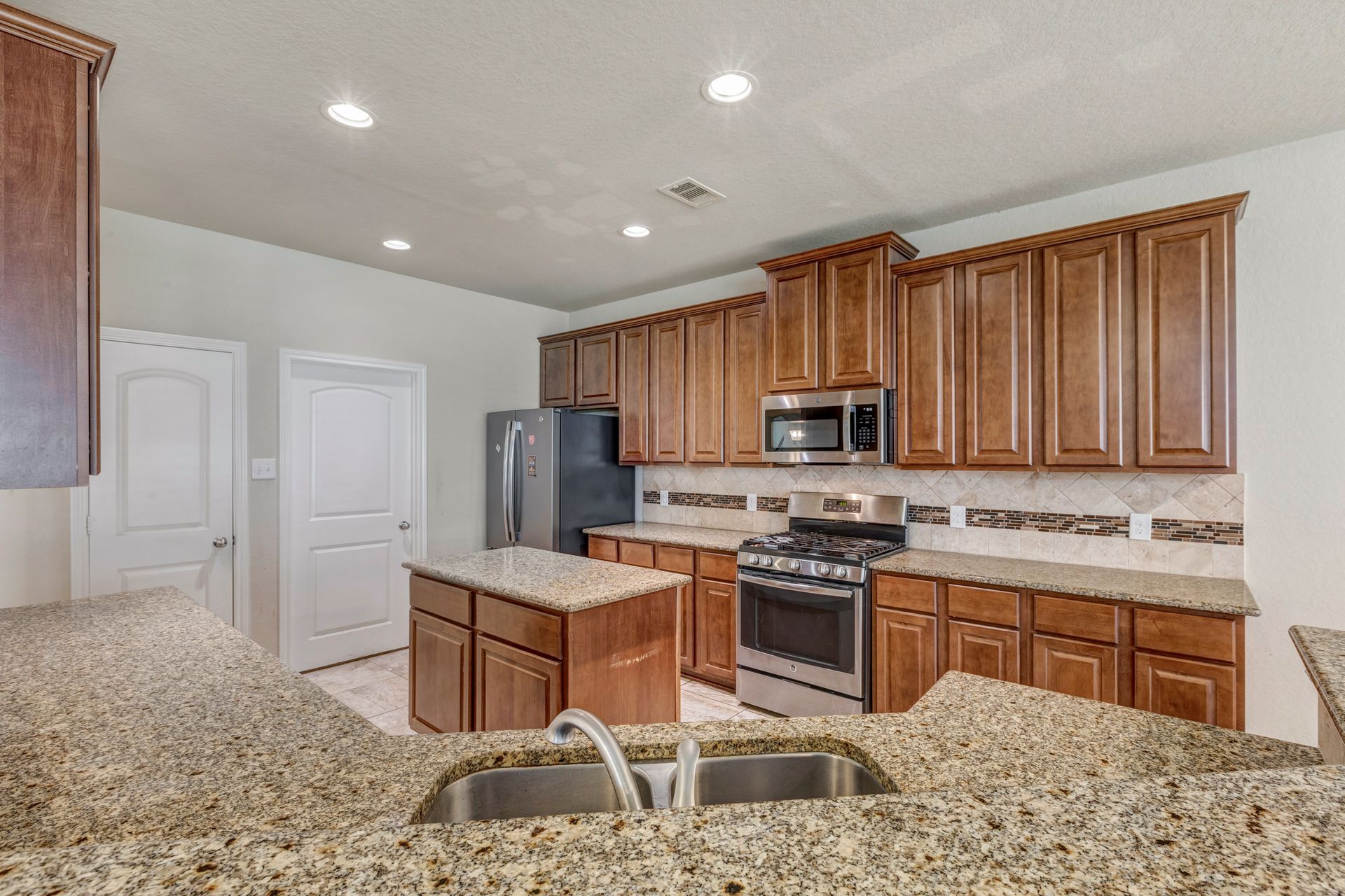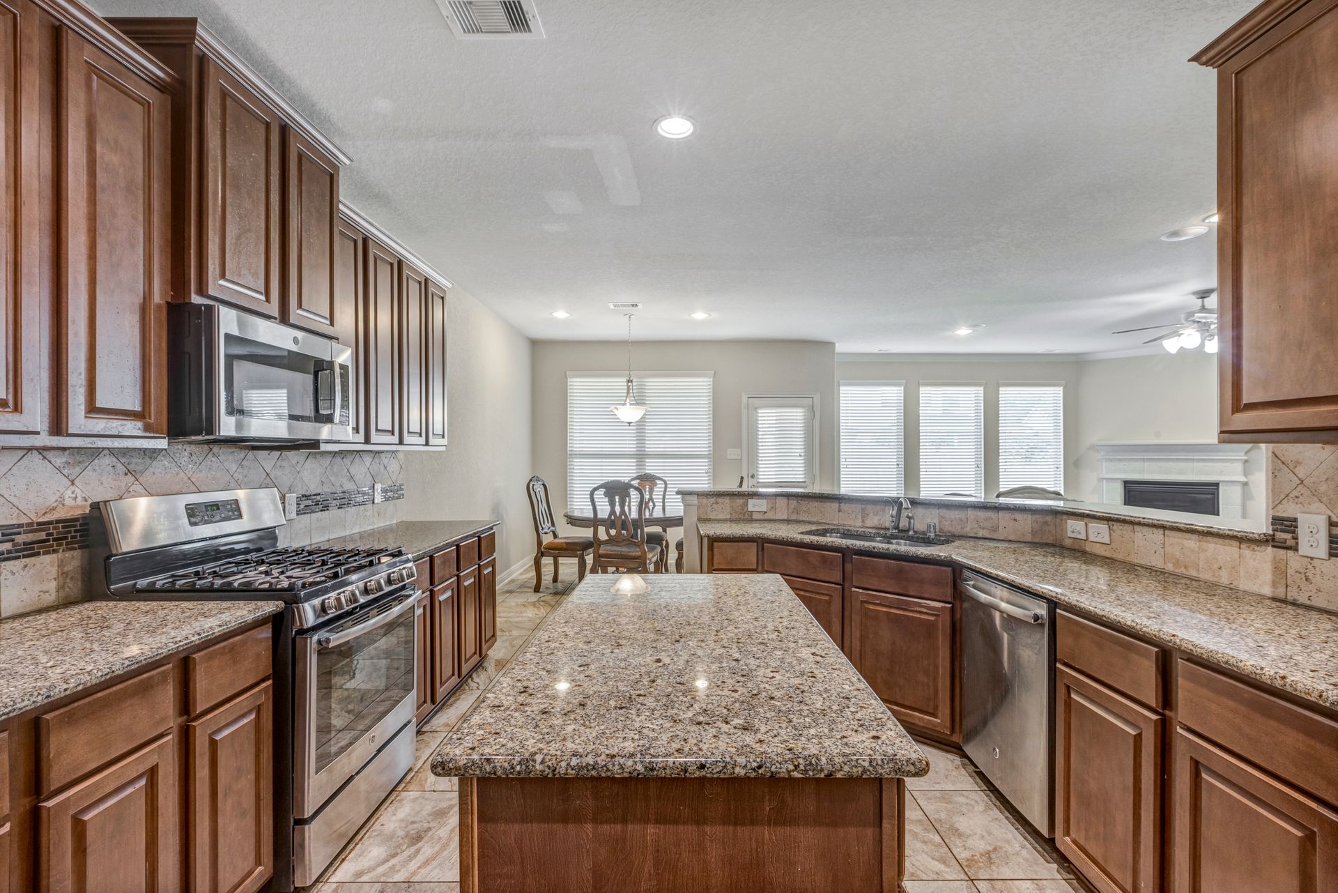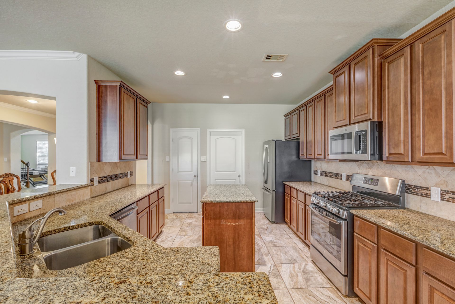 The kitchen is a true highlight, featuring granite countertops, abundant cabinetry, and a spacious layout perfect for meal preparation and entertaining. The adjacent bedrooms are generously sized, with elegant decor and ample lighting to create a serene and relaxing environment.
