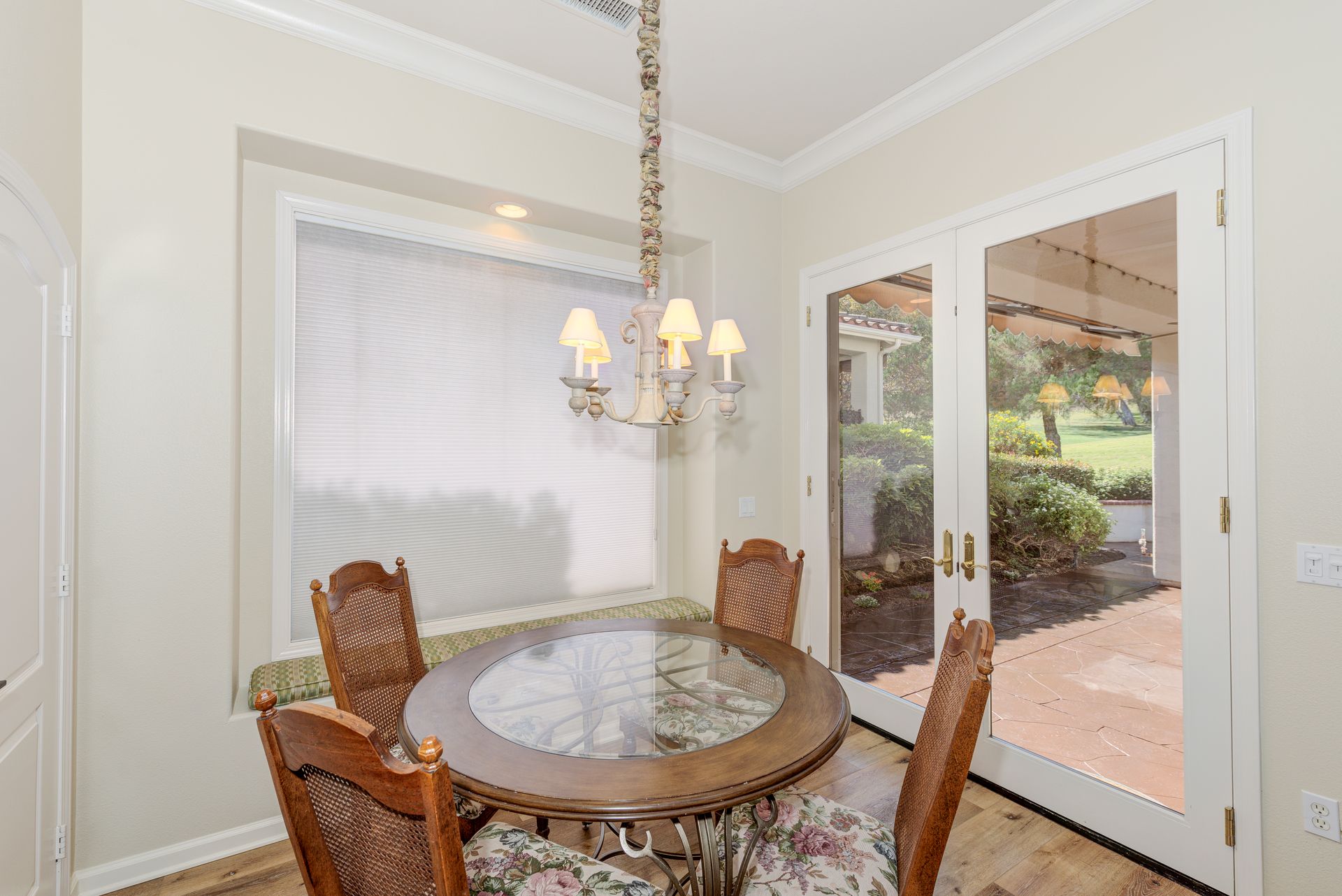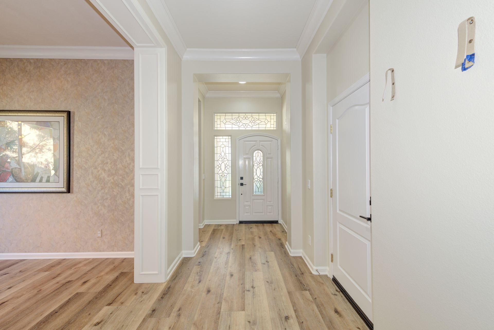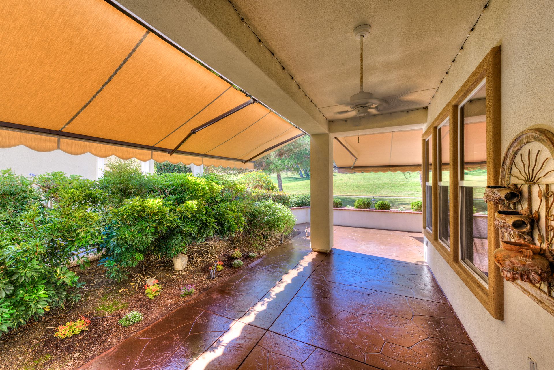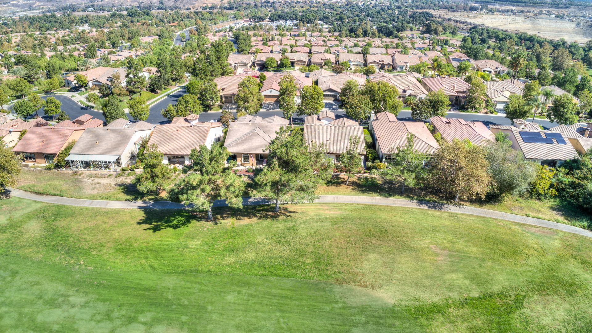 Enjoy resort-style living in this highly desired Manzanita model, perfectly situated on a premium 8th fairway golf course lot in the gated Trilogy at Glen Ivy community. Featuring new luxury vinyl plank flooring, fresh interior paint, and breathtaking golf and Cleveland National Forest mountain views from the main living areas and primary suite. This 10-foot ceilings, 8” crown molding, and an open-concept design ideal for entertaining. The chef’s kitchen includes an oversized breakfast bar, pull-out drawers, wine storage, and opens to the great room with custom built-ins, surround sound, a 50” Sony flat screen, and cozy fireplace. The primary suite features a custom-organized walk-in closet, private patio, and sit-down golf course views. Two covered patios, electric retractable awnings, and a gas BBQ hookup make outdoor living effortless. Recent upgrades include new plumbing fixtures, Amana HVAC system, smart thermostat, water heater, whole house fan, and new garage door opener. A low-maintenance lot with stamped concrete, tile roof, and shade trees completes the appeal.