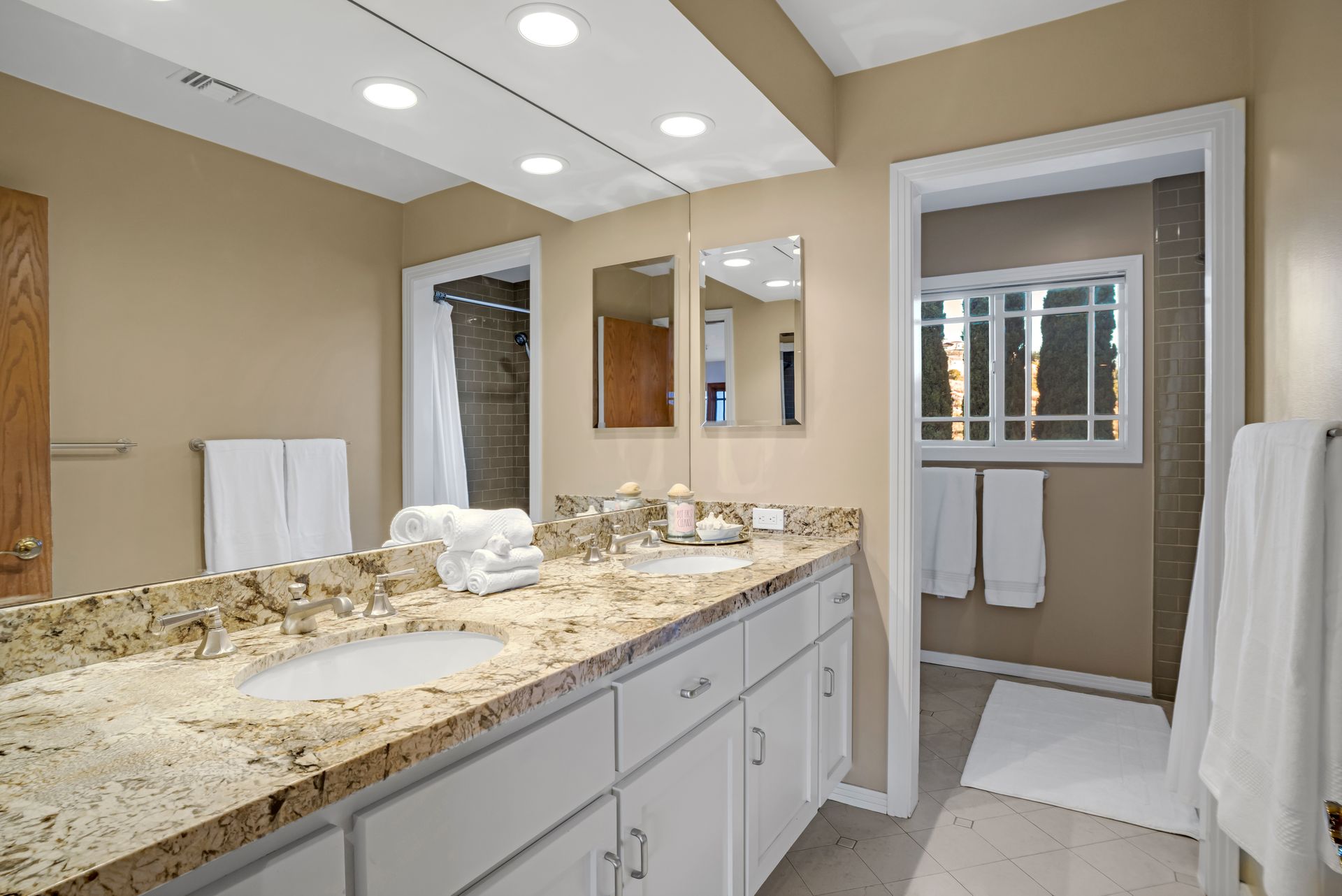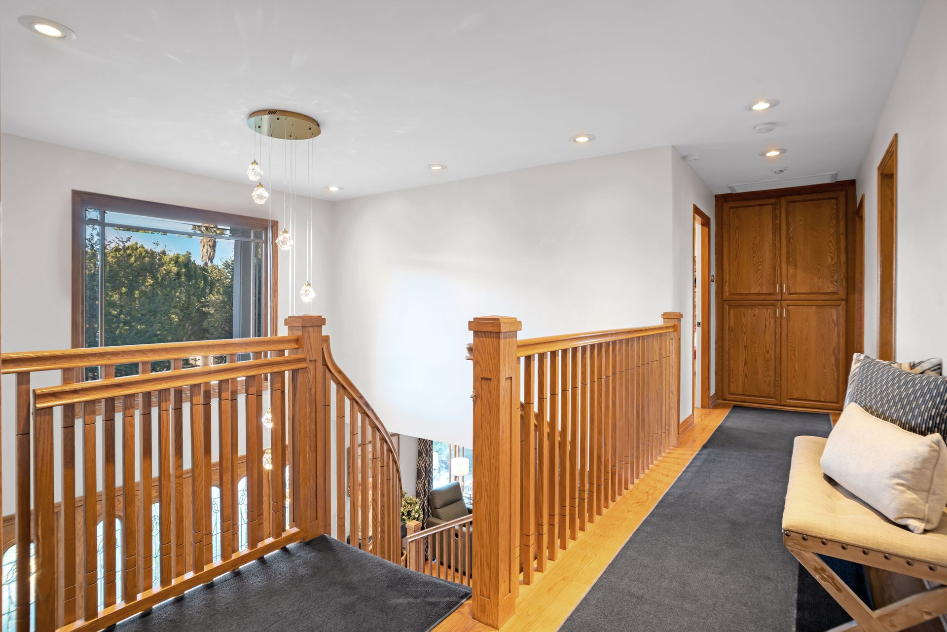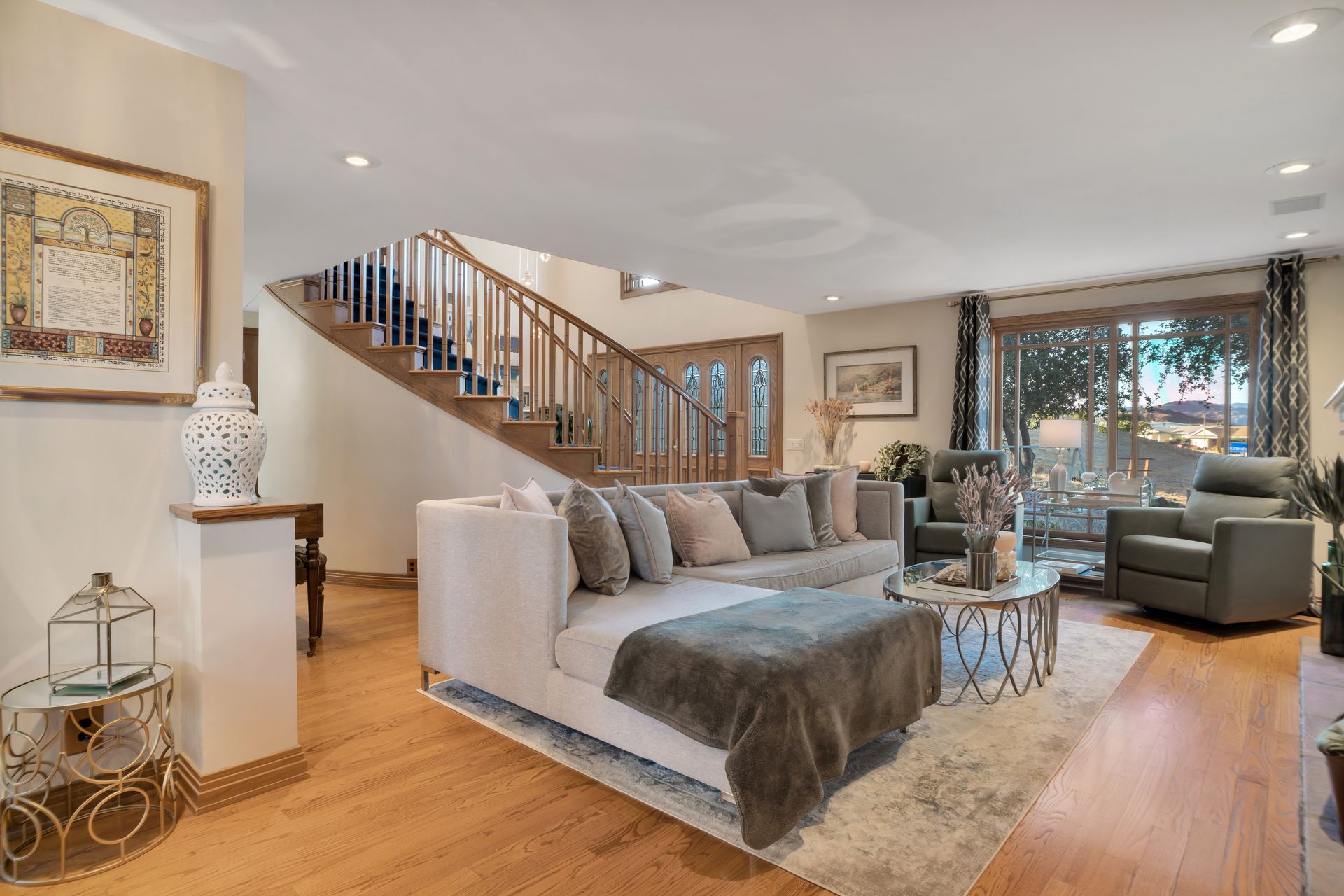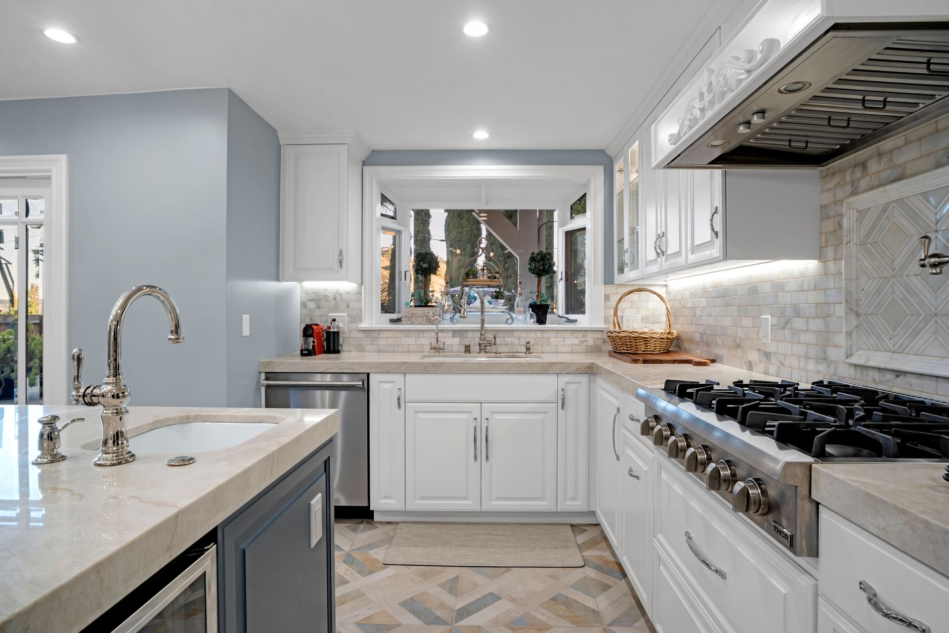 Tucked away at the top of a peaceful cul-de-sac and within the coveted Las Virgenes School district is West Hills’ highly sought-after Knapp Ranch community. This beautifully updated five-bedroom, three-bathroom home, offers the ideal balance of style, space and serenity. With approximately 3,116 square feet of living space on a generous approximately one-quarter-acre lot, this residence is thoughtfully designed for both relaxed everyday living and effortless entertaining. At the heart of the home is a magazine-worthy chef’s kitchen, showcasing a custom island, elegant Quartzite countertops, stainless steel appliances and a built-in bar—great for gathering with guests. The open floor plan flows seamlessly into light-filled dining and living areas, creating a spacious and inviting atmosphere throughout. Upstairs, you'll find four spacious bedrooms, including a luxurious primary suite complete with a private sunroom and sweeping views of the Valley. A convenient en-suite bedroom is located downstairs—ideal for guests or a home office. Smart, dual-zoned Nest thermostats provide energy saving comfort to any level of living space. Head outside and escape to your own resort-style backyard featuring a sparkling pool and spa, built-in outdoor kitchen and expansive decking with gorgeous views of the Valley. With only one neighboring home on the west side, newer ultra-quiet Chamberlain garage doors and a whole-house Ring system in place, the exterior space offers exceptional privacy, peace and safety. Additional highlights include: a three car garage wired for electric vehicle charging, paid-off solar, Las Virgenes daily pickup/drop-off, plus close proximity to trails, shopping and Knapp Ranch Park. Come view this property and experience a true community in the heart of West Hills!