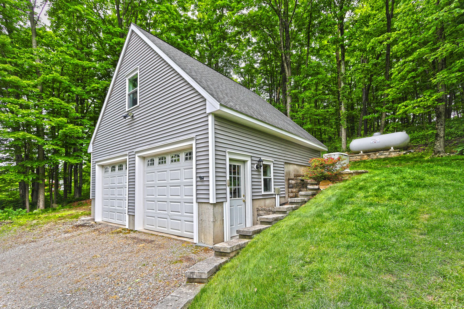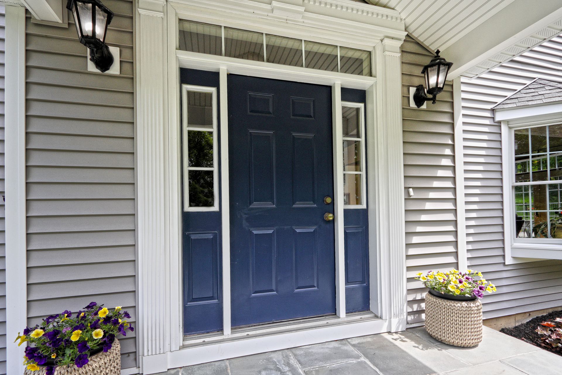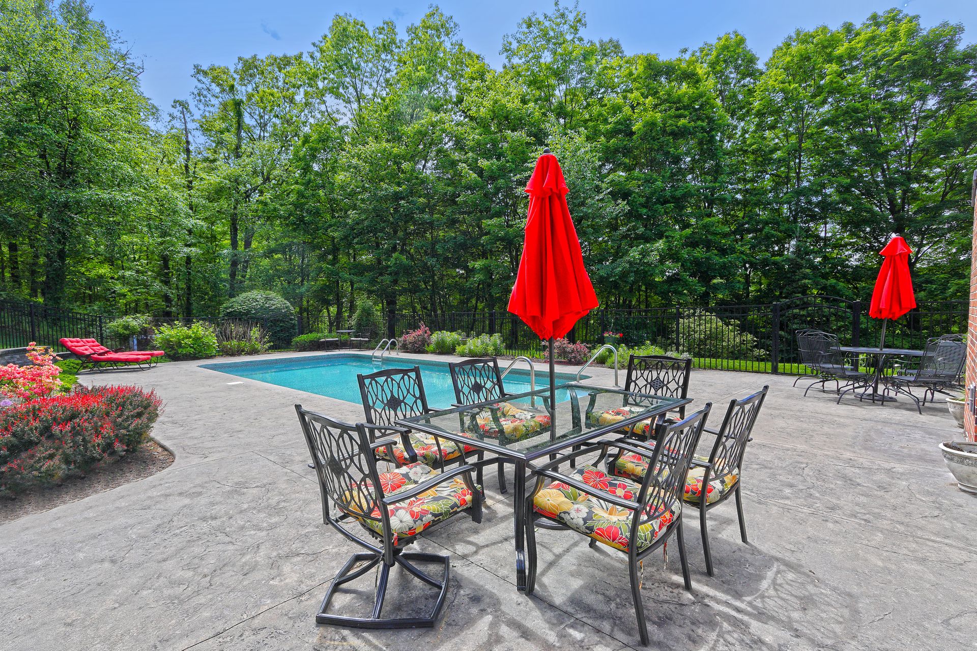 Private Northeast Bethany oasis! Quality craftsmanship throughout gracious property with approximately 4 acres, professionally landscaped lawn, woodland trail up on ridge. Lovely terrace and heated saltwater pool bring the expansive outdoors inside. Great flex and flow on main level. Enjoy cozy evenings by stunning floor-to-ceiling stone fireplace in Great Room, gatherings in Formal Dining Room with distinctive tile floor. Sunlight floods house through large windows, cook’s kitchen with Medallion cabinets, pop-up vented electric cook top, double wall ovens, and efficient layout includes eat-in area, den, walk-in pantry. Quietly carpeted upstairs offers primary suite with walk-in closet, full bath with whirlpool, and full walk-up attic access; three more large bedrooms, each with ceiling fans and large closets. Laundry room and second full bathroom complete the hall. Basement offers generous media room with built-ins, game room and workshop, accessed through kitchen and three car garage. Closets galore throughout, hardwood floors in Great Room and note beautiful inlay in front hall. Detached two car garage has attic that could be art studio, guest retreat, or more storage! Convenient to all area commerce, culture, farms, nature trails and Amity school district. Full-house generator, double Roth oil tanks, added efficiency with wood burning furnace as well as the hydro-air system, central air, central vacuum. Come see all that this property offers!