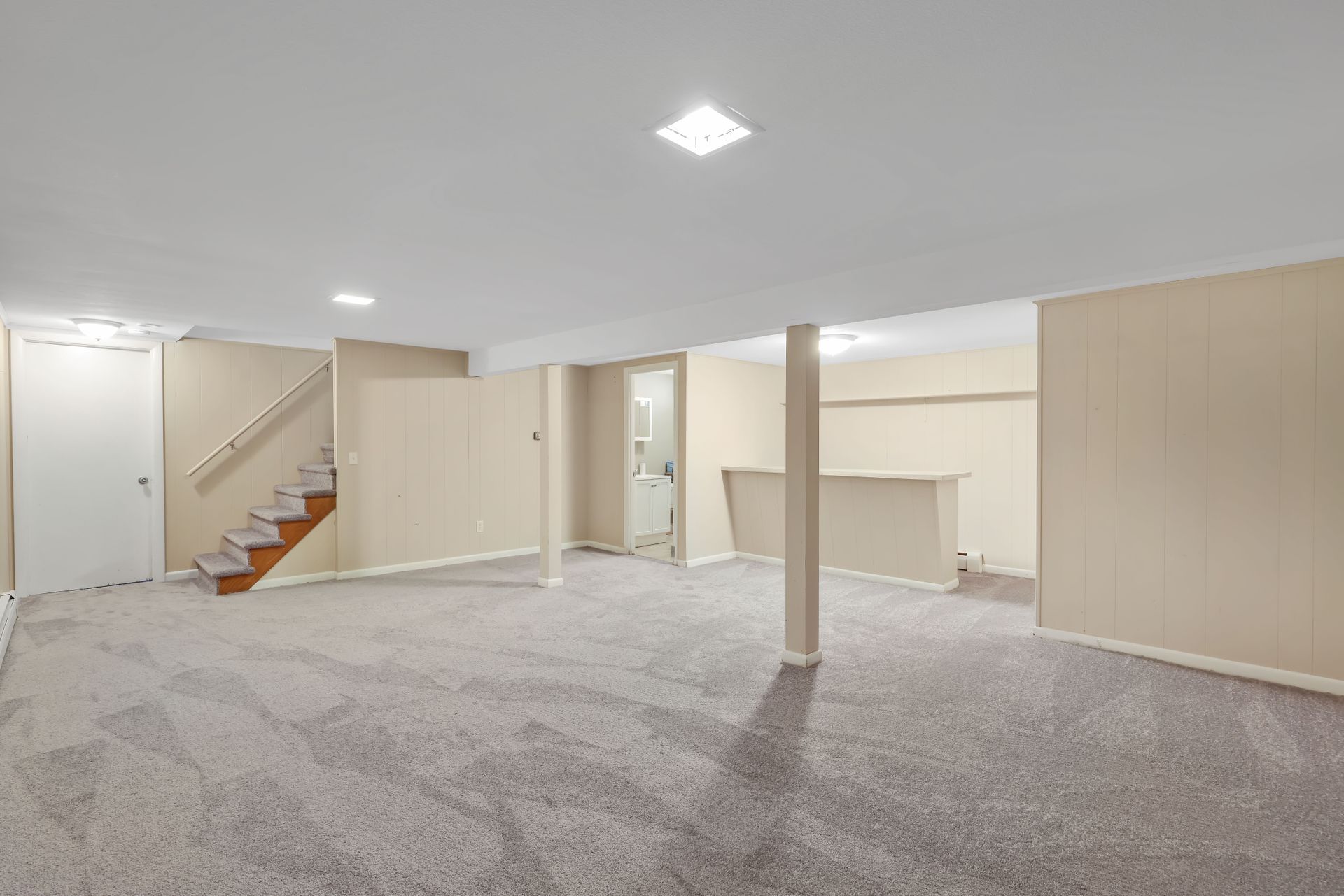 Ideally located at the end of a quiet cul-de-sac, this refreshed three-bedroom Ranch offers the perfect blend of convenience and comfort—just minutes from The Shoppes, top-rated schools and parks. Inside, enjoy refinished hardwood flooring, fresh paint throughout and new carpeting in the finished lower level. The sun-filled family room features an east-facing picture window, wood fireplace and flows seamlessly into the dining room. The kitchen has been updated with granite countertops, stainless steel appliances, cherry cabinets and tile flooring. Each of the three bedrooms are ample in size, including double closets for all. A full bath with granite vanity and tile flooring completes the main level. Downstairs you will find an additional 600 square feet of living space including a second fireplace, dry bar and half bath, leaving plenty of space for storage and laundry. Relax in the screened porch with access to the two-car garage while overlooking a level half-acre lot. This is a great value for this sought-after location!