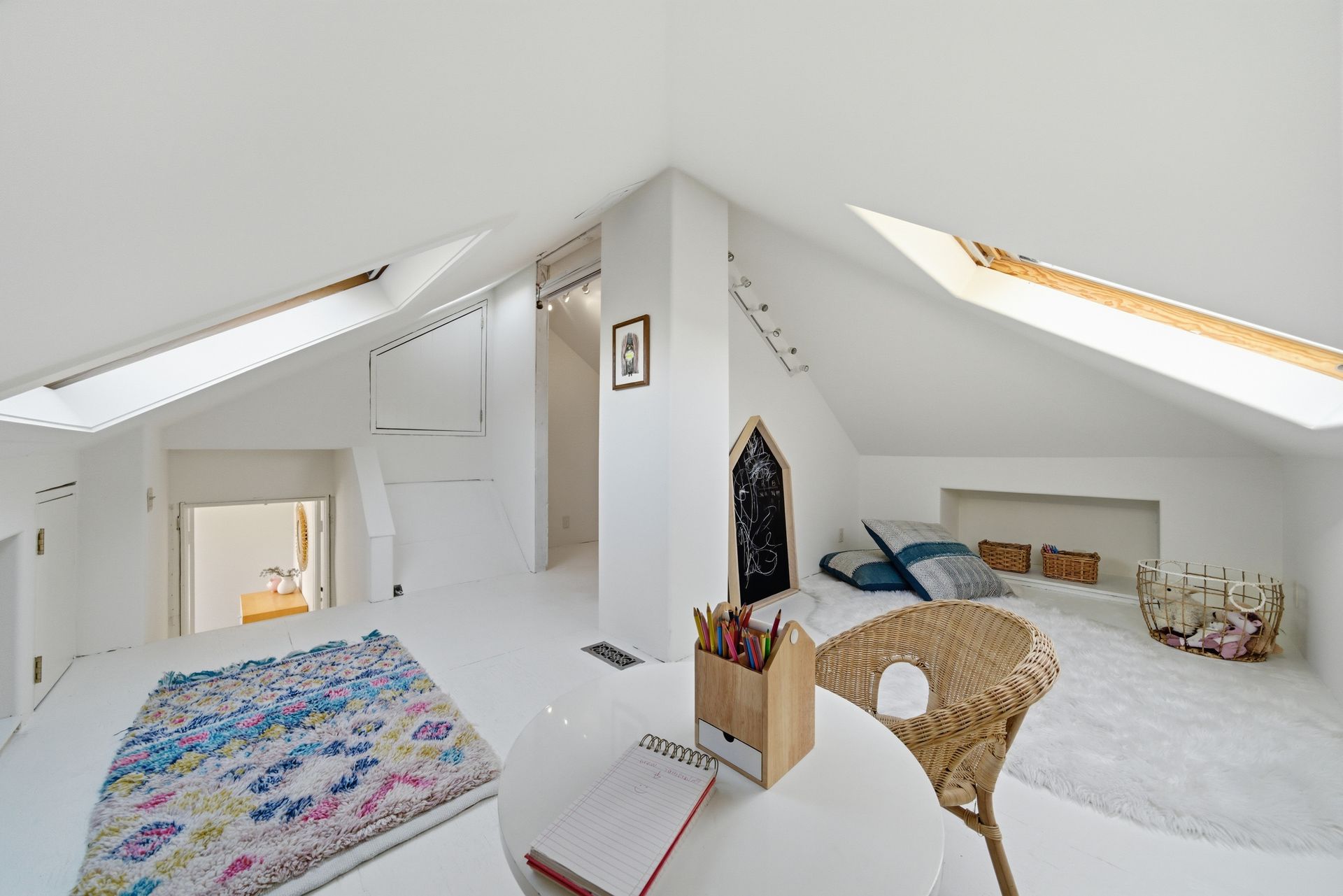 Originally built in 1926, vintage character and quality is present in every nook and cranny of this special property - original plaster fireplace, built-in book shelves, and intimate nooks. It has newly refinished hardwood floors, arched doorways, and an easy flow. The main level has a gracious living room, sun splashed kitchen with an eat-in dining room, a cozy office or den, and a full bath. Upstairs you will find two well proportioned bedrooms and off of the second bedroom is a door into a special attic space that offers room to grow, whether you're dreaming of a fun play space or extra storage. Downstairs is a large family room, full bath, and access to the utility/laundry area.
