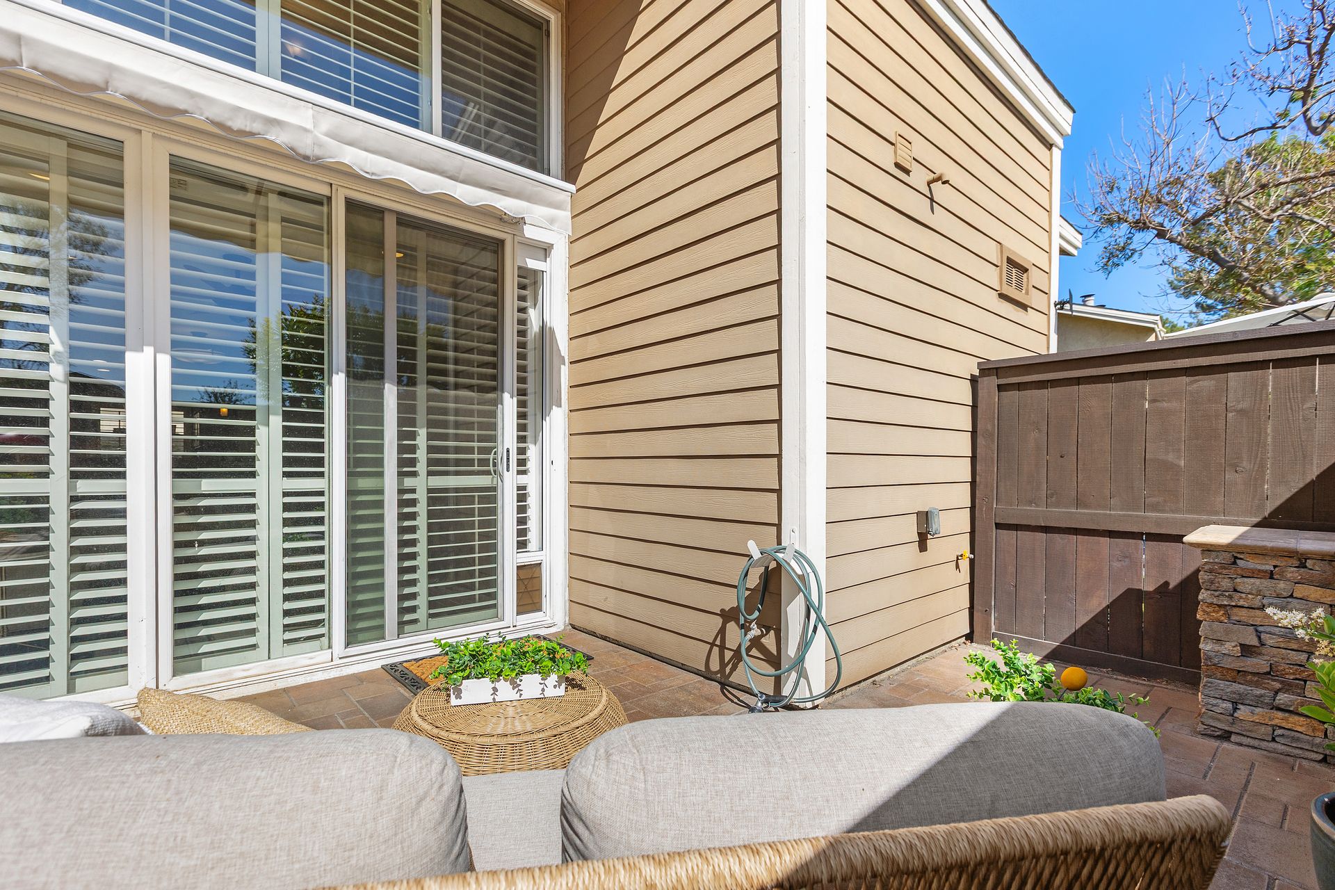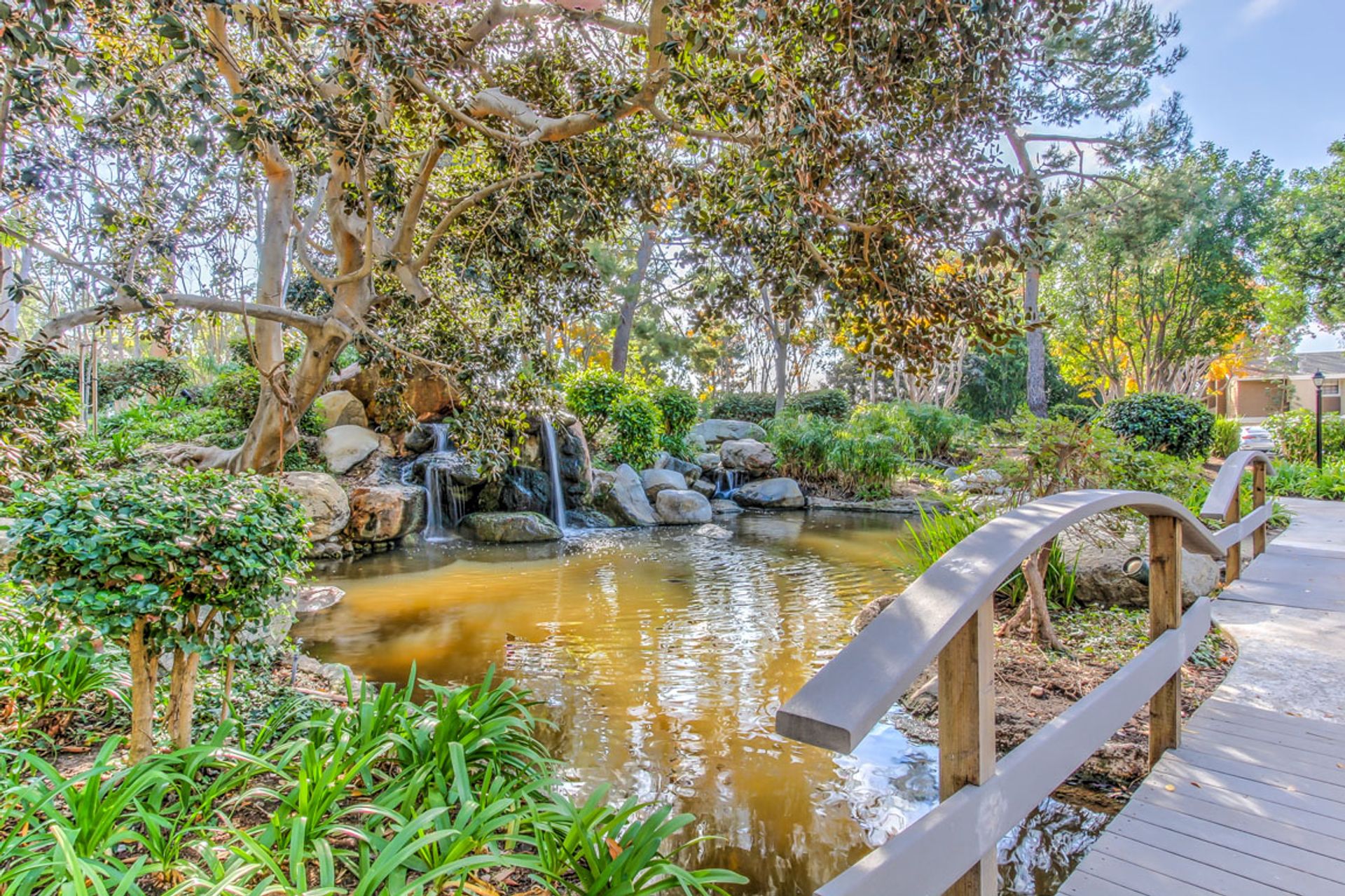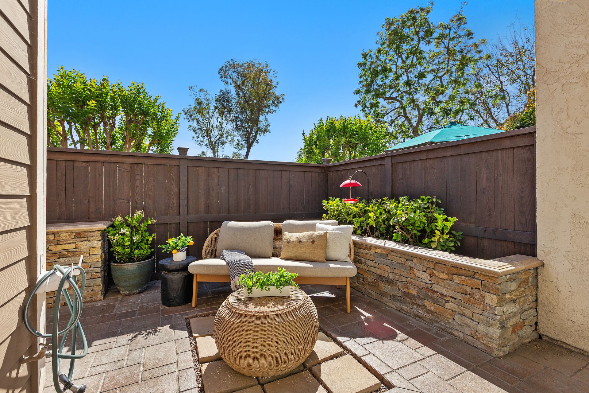 Nicely upgraded one-bedroom plus office townhome in The Lakes community of Irvine. This one-bedroom, one-and-one-half-bath home offers a rare upstairs office, private fenced patio, and plenty of improvements. The remodeled kitchen features granite countertops, stainless steel appliances, updated wood cabinetry, extra storage, floor-to-ceiling pantry space, breakfast bar, pendant lighting, and full porcelain tile backsplash. The main living areas offer hardwood floors, recessed lighting, smooth ceilings, plantation shutters, custom wainscoting, crown molding, paneled doors, and a boxed staircase with wrought iron railing. Ceiling fans upstairs and downstairs add comfort. Upstairs, the vaulted primary suite includes a skylight, a walk-in closet with an organizer, built-in wall cabinetry, and a remodeled bathroom with granite counters, an updated vanity with a modern vessel sink, stacked-stone backsplash, framed mirror, and a custom walk-in shower. The separate office adds valuable flex space for a variety of uses. The private fenced patio, one of only 30 in the community, offers paver hardscape, raised stone planter, mature landscaping, retractable awning, built-in BBQ counter, and permanent gas hookup. Additional features include updated HVAC, partial dual-pane windows, GE stackable laundry, smart thermostat, and designer two-tone paint. The Lakes is known for its streams, mature trees, and scenic surroundings, with community amenities that include pools, spas, tennis courts, and HOA dues that include water and trash service. Conveniently located near shopping, dining, trails, and freeway access. No Mello-Roos and low tax rate.