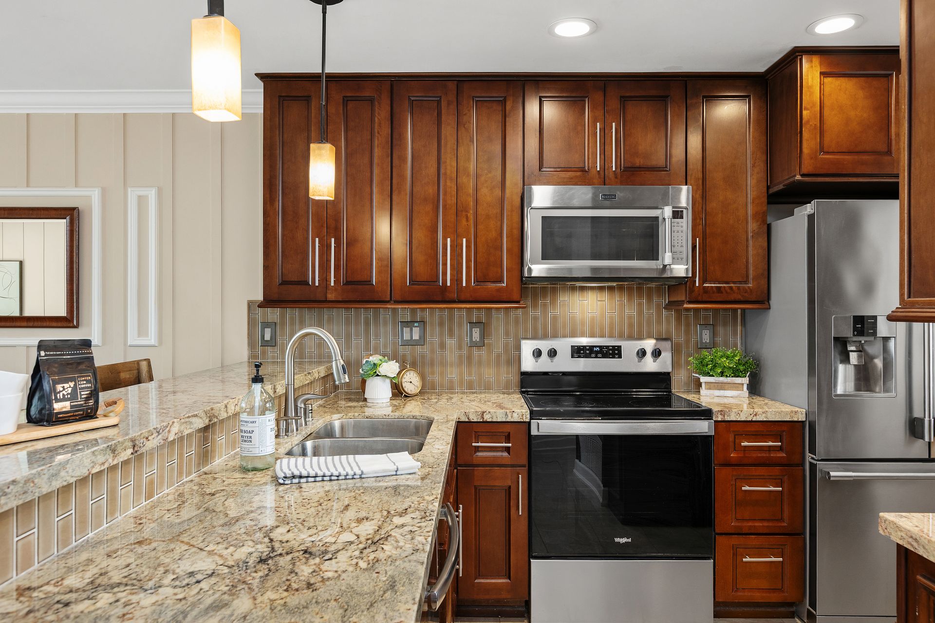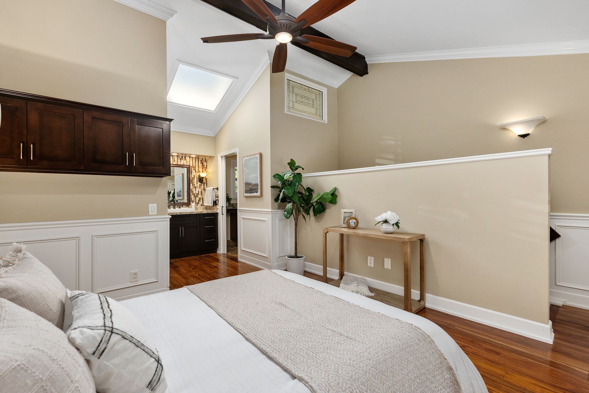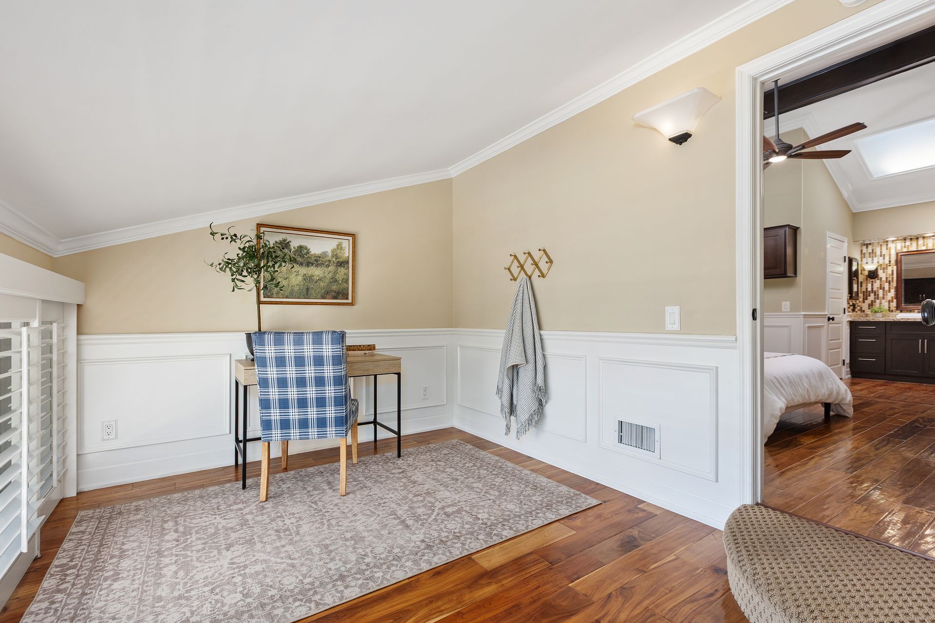 Nicely upgraded one-bedroom plus office townhome in The Lakes community of Irvine. This one-bedroom, one-and-one-half-bath home offers a rare upstairs office, private fenced patio, and plenty of improvements. The remodeled kitchen features granite countertops, stainless steel appliances, updated wood cabinetry, extra storage, floor-to-ceiling pantry space, breakfast bar, pendant lighting, and full porcelain tile backsplash. The main living areas offer hardwood floors, recessed lighting, smooth ceilings, plantation shutters, custom wainscoting, crown molding, paneled doors, and a boxed staircase with wrought iron railing. Ceiling fans upstairs and downstairs add comfort. Upstairs, the vaulted primary suite includes a skylight, a walk-in closet with an organizer, built-in wall cabinetry, and a remodeled bathroom with granite counters, an updated vanity with a modern vessel sink, stacked-stone backsplash, framed mirror, and a custom walk-in shower. The separate office adds valuable flex space for a variety of uses. The private fenced patio, one of only 30 in the community, offers paver hardscape, raised stone planter, mature landscaping, retractable awning, built-in BBQ counter, and permanent gas hookup. Additional features include updated HVAC, partial dual-pane windows, GE stackable laundry, smart thermostat, and designer two-tone paint. The Lakes is known for its streams, mature trees, and scenic surroundings, with community amenities that include pools, spas, tennis courts, and HOA dues that include water and trash service. Conveniently located near shopping, dining, trails, and freeway access. No Mello-Roos and low tax rate.
