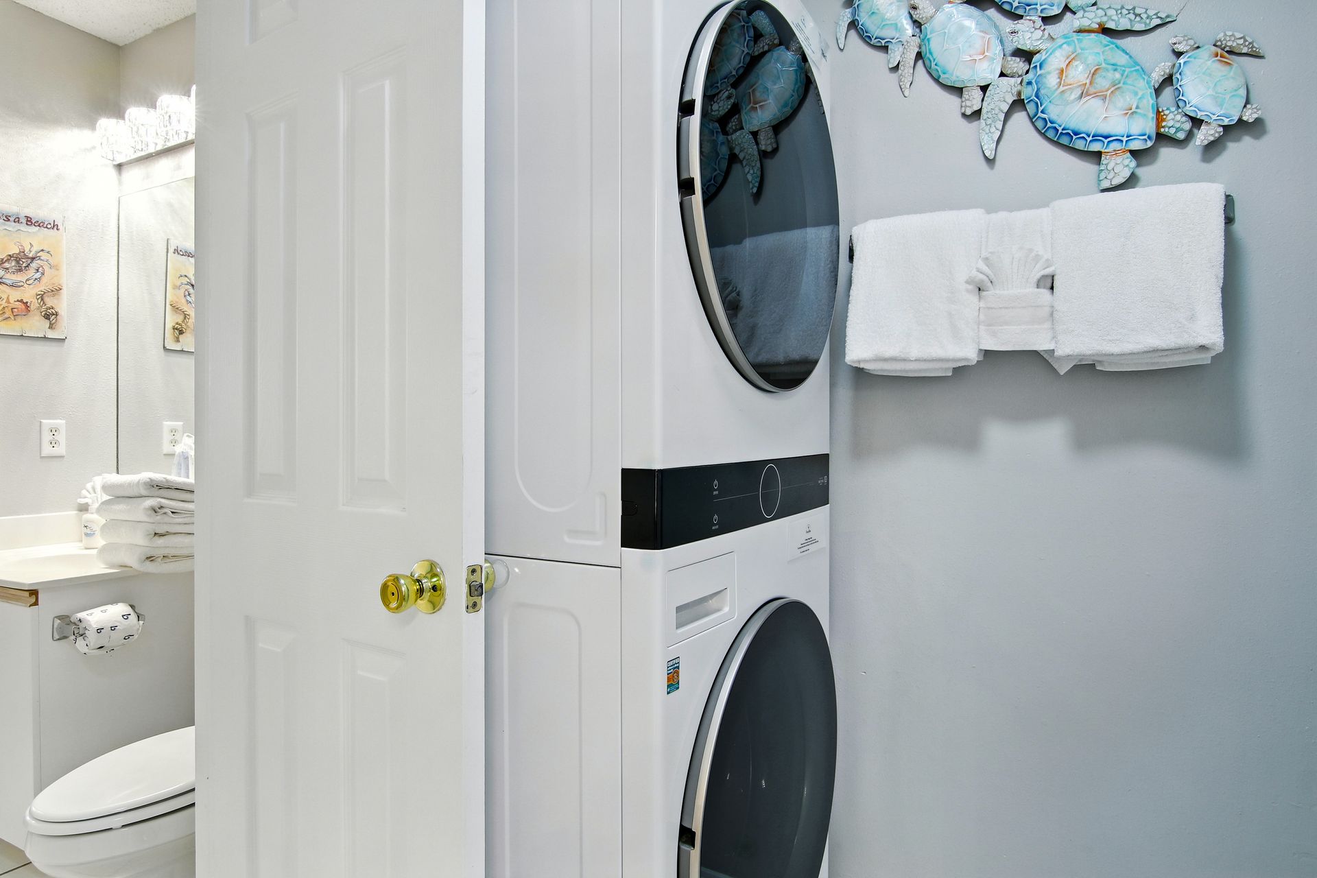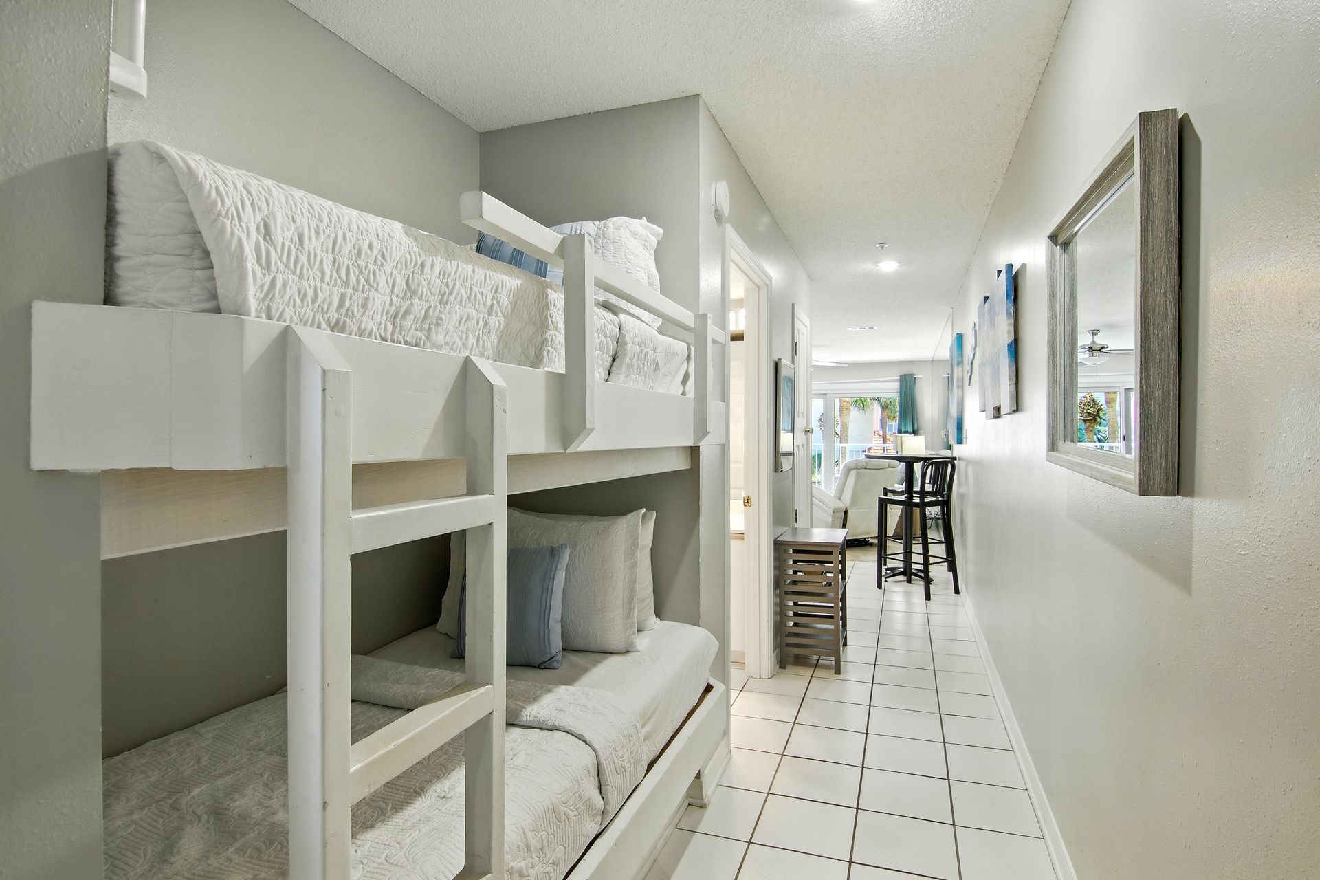 Inside, you'll find comfortable furnishings and modern appliances, creating a fresh and welcoming space for guests. There is a queen bed in the bedroom and 2 twin bunks in the hall. The bathrooms include 2 vanities/toilets and 1 shower with a full-sized washer and dryer inside the unit. Enjoy the fully-equipped kitchen, and a private balcony—ideal for sipping your morning coffee as the salt air breezes in from the Gulf. Conveniently, there is an elevator available to bring you to the 2nd floor where this condo is located. Nestled in a gated community, the complex is located across from the private beach on the Gulf and has amenities such as an exercise room, pool, bikes, tennis courts, cornhole, and more. Just steps from popular local spots like Captain Dave's and Kenny D's, you're also a short bike ride from The Carb Trap and local coffee shops. Whether you're enjoying a day on the beach, dining out, or relaxing on the balcony, everything you need is right here. If you're looking to grow your rental portfolio or secure a dreamy beachside getaway, this condo is sold furnished and offers turnkey convenience, strong rental performance, and all the charm of Miramar Beach living.