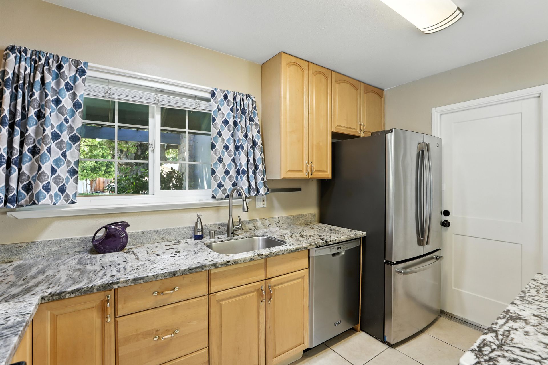 Welcome to this beautifully maintained three bedroom, two bathroom home offering approximately 1,364 square feet of comfortable livable space on a roughly 0.14 acre lot. With an open floorplan, abundant natural light, and thoughtful updates throughout, this home is move-in ready and ideal for both relaxing and entertaining. Enter inside to find a remodeled kitchen featuring a center island, granite counters and stainless-steel appliances—ideal for cooking and gathering. The separate family and living rooms provide versatile spaces, while the wood-burning fireplace adds a cozy touch. Enjoy year-round comfort with a newly installed HVAC system (installed in 2020), dual pane windows, and ceiling fans for energy efficiency. The remodeled hall bathroom brings a fresh, modern feel, and the indoor laundry room adds convenience. Outside, the large backyard offers endless opportunities—whether you’re enjoying the enclosed back patio for dining or entertaining, storing tools in the large storage shed, or simply relaxing in the sunshine. Additional highlights include a two-car garage and a spacious lot ideal for gardening, play, or outdoor projects. This home blends comfort, style, and practicality—ready for you to make it your own right next to all the perks of the College-Glen neighborhood: “Cabana Club” - College Greens Swim & Racquet club, Raley’s shopping center, CMP school, and Oki Park & Brancroft Elementary. Enjoy easy access to American River Parkway/Bike Trail, shops, restaurants, the light rail, Sac State and downtown Sacramento.