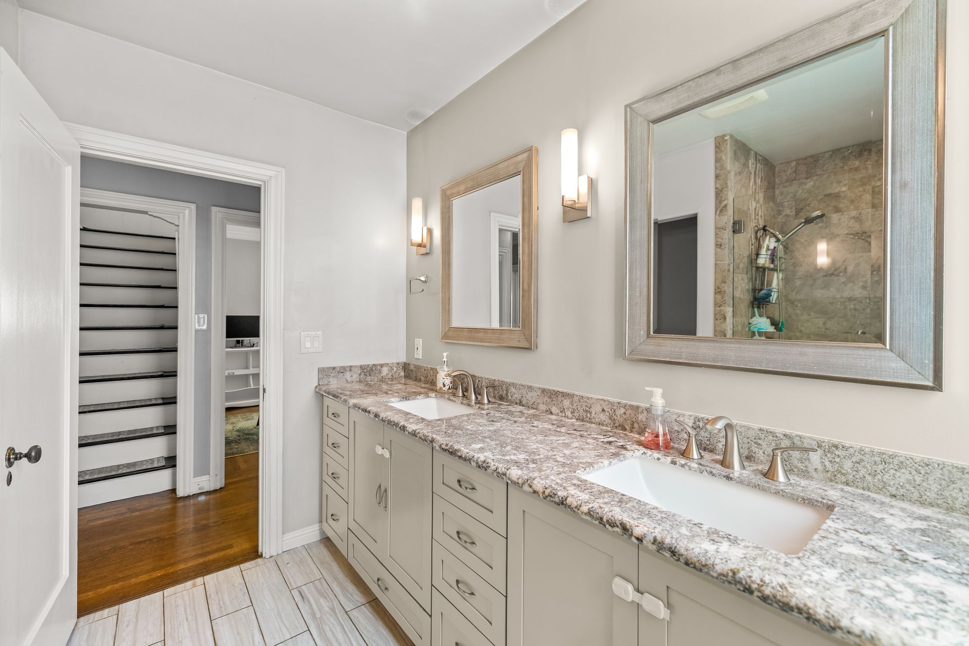 Versatility shines with 2 bedrooms downstairs and 2 upstairs. The downstairs ensuite bedroom offers flexibility as a primary suite, guest room, or home office. Upstairs, a generously sized bedroom can serve as a primary retreat or additional living space, complemented by a cozy nook ideal for a desk or reading area.