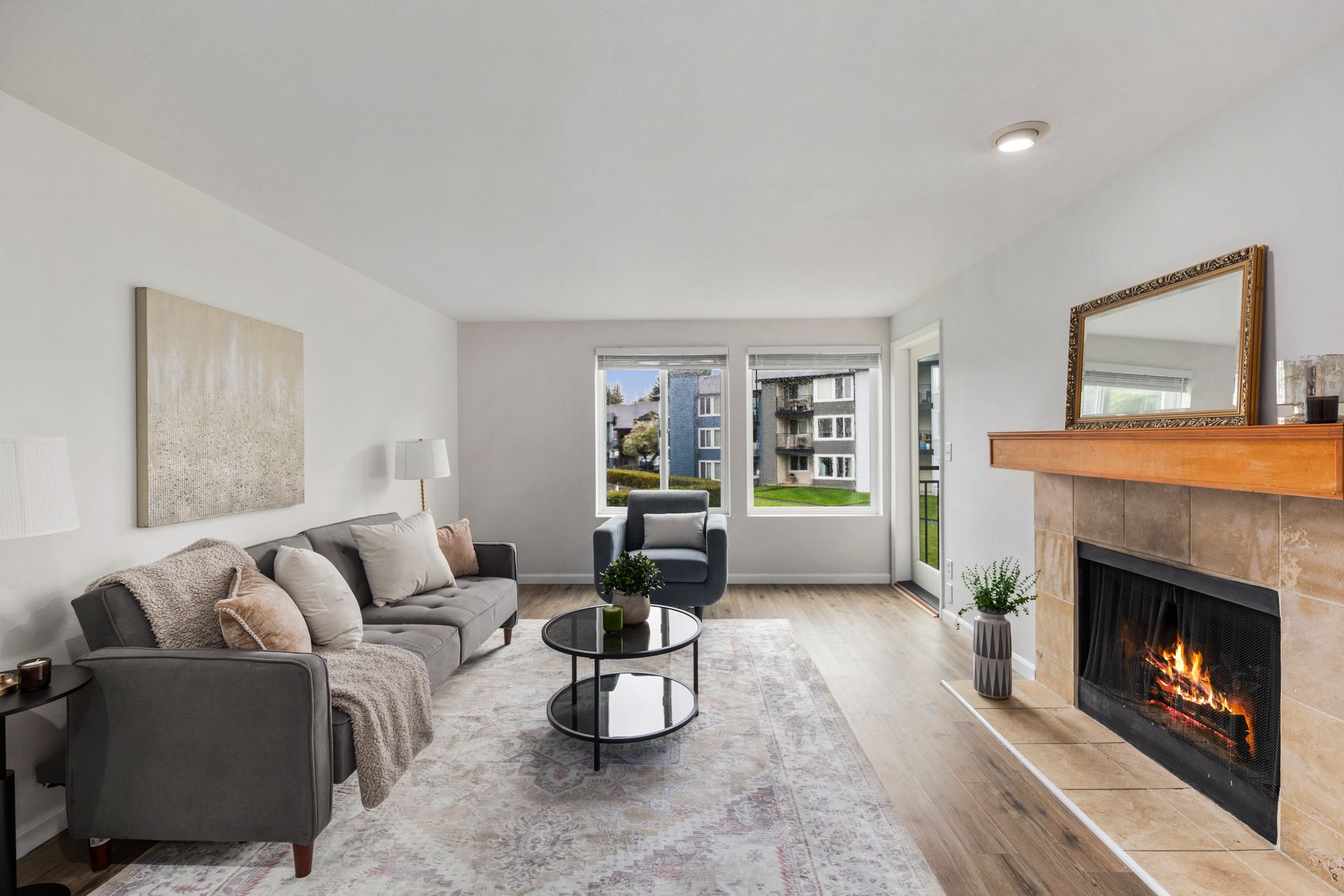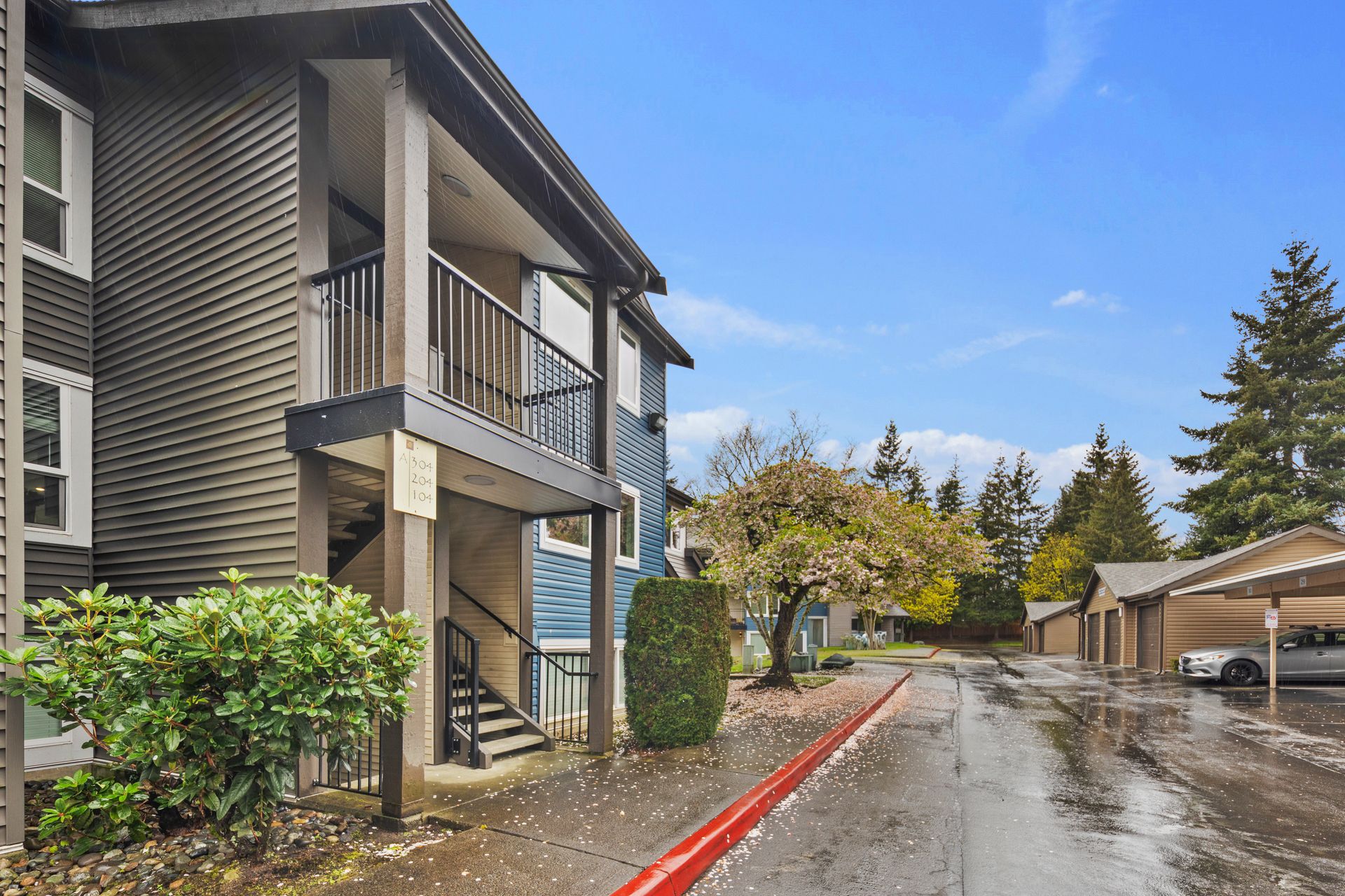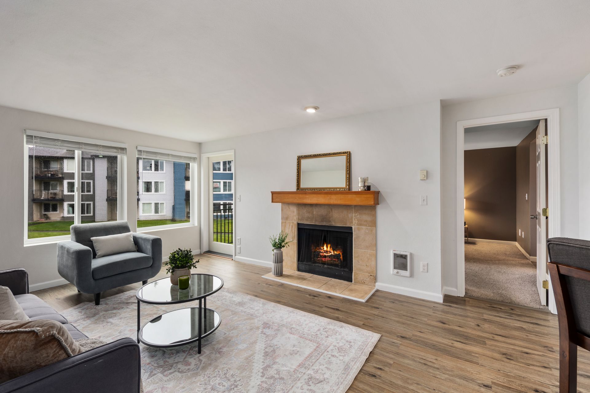 Welcome Home! This cheerful, 2nd-floor condo in coveted Aspen Grove has a lovely open-concept w/comfortable & convenient living, in a super East Hill location. Newer updates incl hard-surface laminate-wood flooring & fresh paint throughout main areas. The kitchen features ample counter space, SS appliances, a breakfast bar + a dedicated dining room. Cozy-up by the wood-burning fireplace in a spacious family room that flows to a covered private patio overlooking a lovely green courtyard - perfect for PNW-living all year! Your primary suite offers a 3/4 ensuite w/DBL sinks, slab counters, a separate water closet & Large walk-in-closet. Find the second bedroom & full bath thoughtfully positioned in a separate hall, providing excellent flexibility for guests, a home office, or rental potential. Additional highlights include full-size washer & dryer, extra storage & dedicated carport parking. Recent extensive exterior updates with new siding, trim, railings, Milgard windows & patio sliders, gutters & security lighting offer peace of mind for ownership. The outdoor pools, playground, large cabana, game room, exercise room & beautifully maintained courtyards add to the community perks. Conveniently located near Valley Medical Center, shopping, restaurants, parks, schools, YMCA, Trader Joe's & close Transit w/1-stop to Kent Station with easy DT Seattle access. No Rental Cap, Easy Commute & Great Location! This is a fantastic opportunity to get started or invest. Come claim this gem!