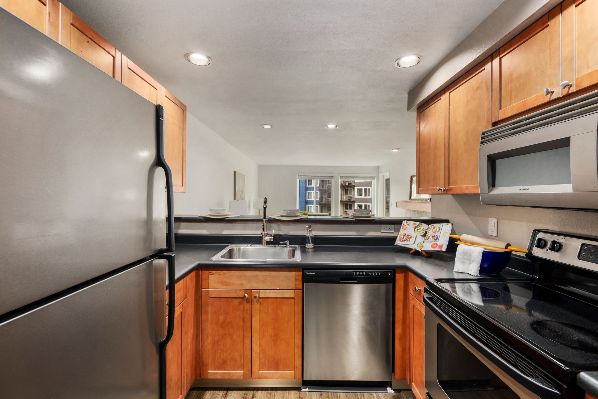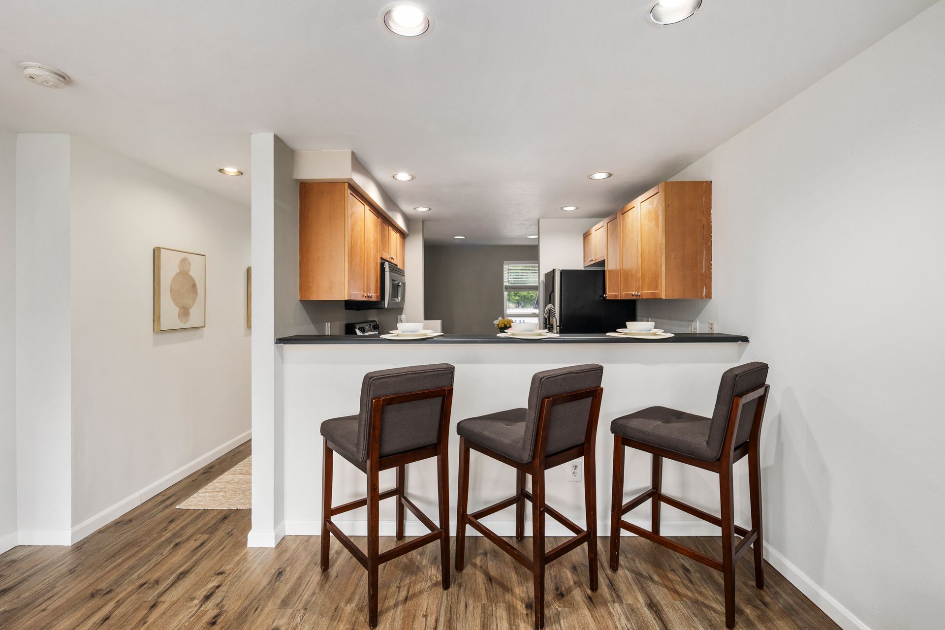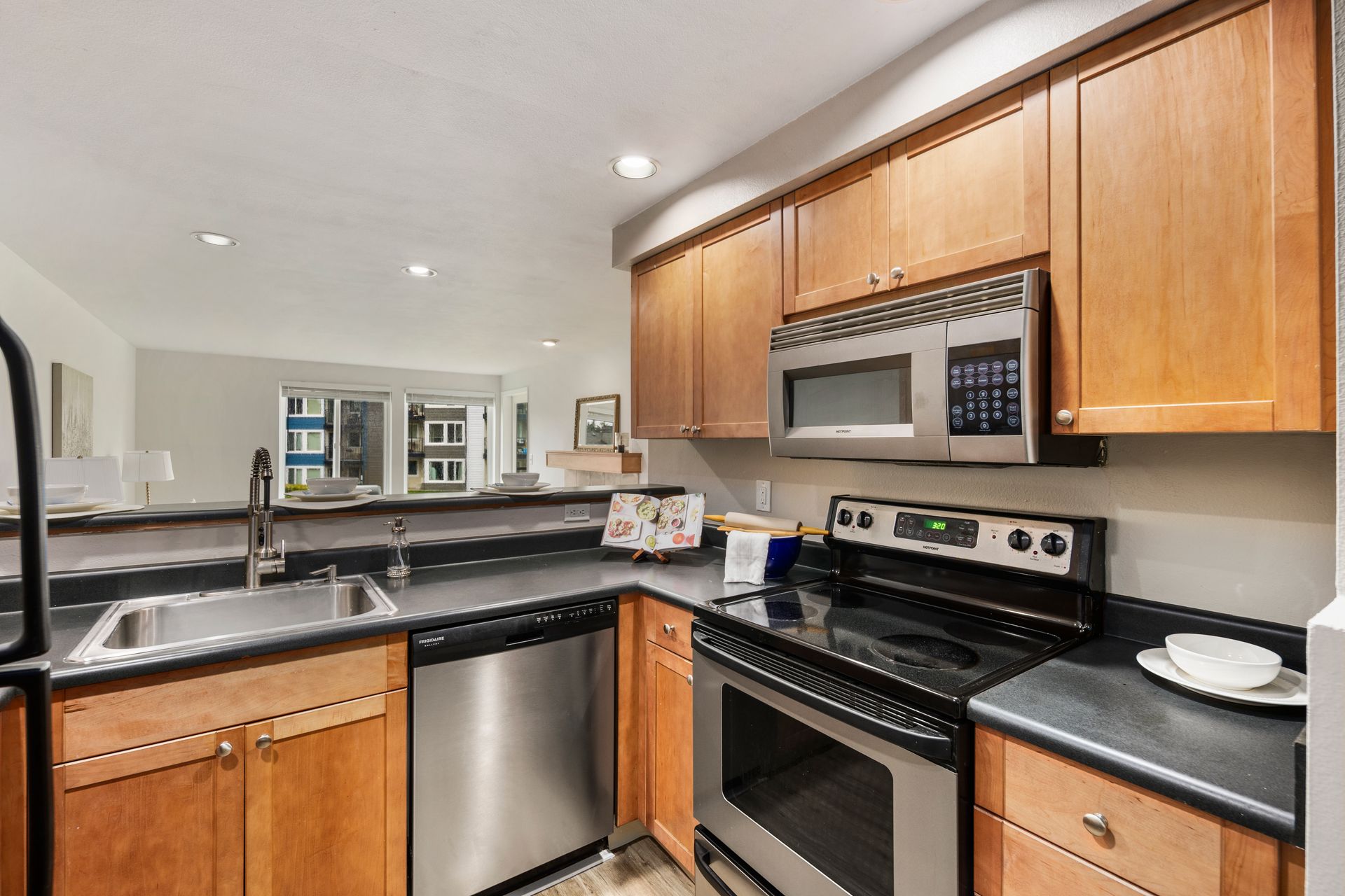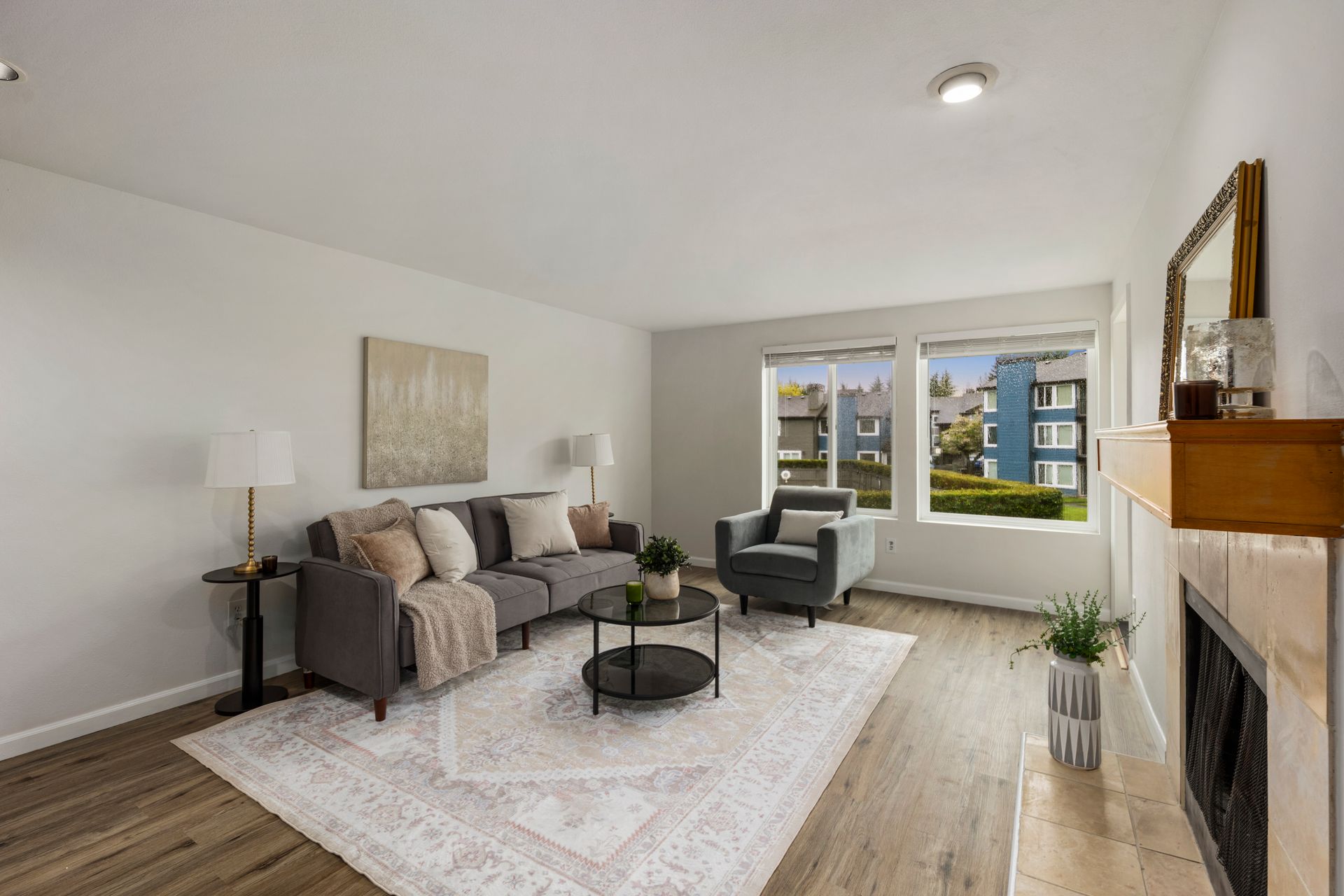 Welcome Home! This cheerful, 2nd-floor condo in coveted Aspen Grove has a lovely open-concept w/comfortable & convenient living, in a super East Hill location. Newer updates incl hard-surface laminate-wood flooring & fresh paint throughout main areas. The kitchen features ample counter space, SS appliances, a breakfast bar + a dedicated dining room. Cozy-up by the wood-burning fireplace in a spacious family room that flows to a covered private patio overlooking a lovely green courtyard - perfect for PNW-living all year! Your primary suite offers a 3/4 ensuite w/DBL sinks, slab counters, a separate water closet & Large walk-in-closet. Find the second bedroom & full bath thoughtfully positioned in a separate hall, providing excellent flexibility for guests, a home office, or rental potential. Additional highlights include full-size washer & dryer, extra storage & dedicated carport parking. Recent extensive exterior updates with new siding, trim, railings, Milgard windows & patio sliders, gutters & security lighting offer peace of mind for ownership. The outdoor pools, playground, large cabana, game room, exercise room & beautifully maintained courtyards add to the community perks. Conveniently located near Valley Medical Center, shopping, restaurants, parks, schools, YMCA, Trader Joe's & close Transit w/1-stop to Kent Station with easy DT Seattle access. No Rental Cap, Easy Commute & Great Location! This is a fantastic opportunity to get started or invest. Come claim this gem!