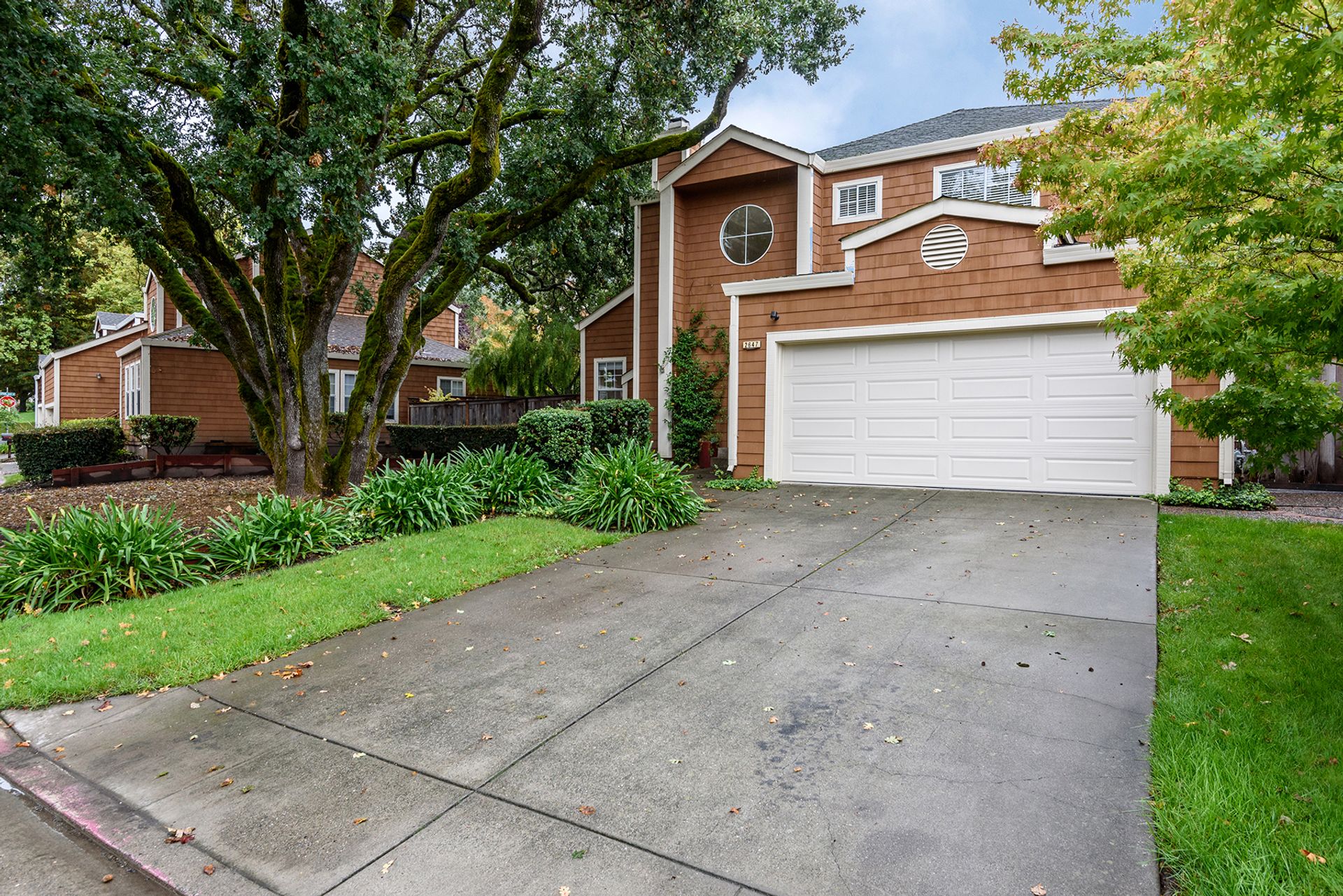 Stunning four bedroom, two and one-half bath home located in the highly desirable Vista Del Lago community in Santa Rosa's sought-after Bennett Valley. Just minutes from BVGC and Galvin Community Park, this beautifully maintained, move-in-ready home offers comfort, convenience, and a vibrant lifestyle. Enter inside to a light-filled living room with soaring cathedral ceilings and a cozy gas fireplace ideal for both relaxing and entertaining. The dining area flows into the beautifully updated open kitchen, complete with stone countertops, stainless steel appliances, and direct access to a spacious backyard featuring newly upgraded hardscape and drainage ideal for outdoor gatherings and everyday enjoyment. Upstairs, the generous primary suite boasts an updated ensuite with a stall shower, separate soaking tub, dual vanities, and a large walk-in closet. Three additional bedrooms (one on the main level) and a well-appointed full bath provide space for loved ones, guests, or a home office. HOA amenities include a clubhouse, pools, tennis and basketball courts, playground, and a scenic pond with water features. Enjoy being located on one of the largest lots in Vista Del Lago, with an expansive driveway for extra off-street parking, plus an attached two-car garage. Don't miss this exceptional opportunity in Bennett Valley!