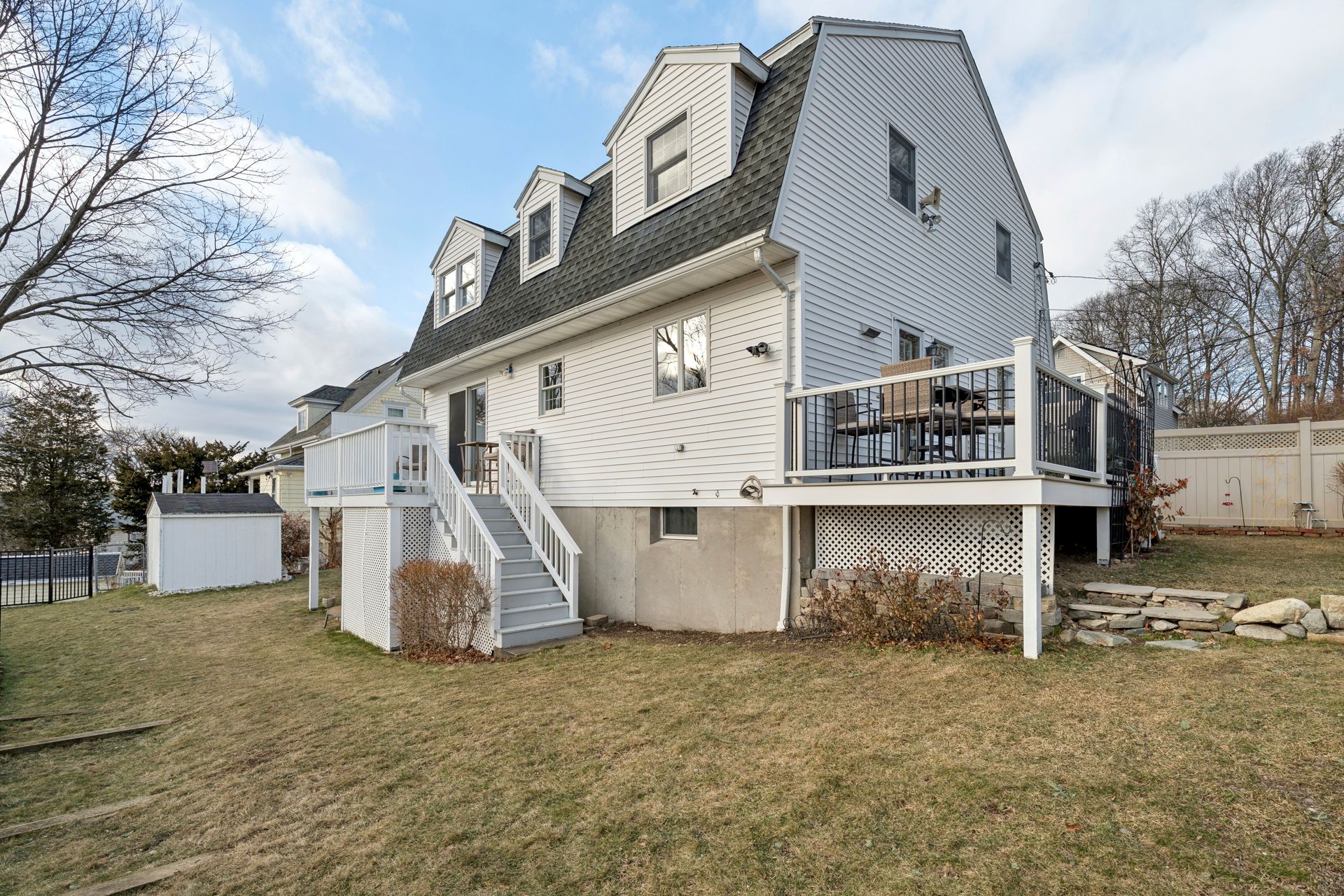 Welcome to this charming Gambrel–style home set in a quiet neighborhood and perfectly perched to capture breathtaking views of the Boston skyline. Offering 3+ bedrooms and 3 full baths across three finished levels, this well‑maintained property blends comfort and versatility. The first floor features an open layout with a kitchen boasting new stainless steel appliances, granite counters, a breakfast bar, and seamless flow to the dining room and composite deck. A sun‑filled front‑to‑back living room with slider to a second deck overlooking the yard and skyline with a full bath complete this level. Upstairs are three spacious bedrooms with ample closets and a full bath. The walk‑out lower level with a separate entrance adds exceptional flexibility, offering two finished rooms ideal for a fourth bedroom, office, or den, plus a full bath and workshop. Close to walking trails, downtown Melrose, Melrose Common and Hoover School. With its spacious layout, prime location, and breathtaking views, this home is a must see!