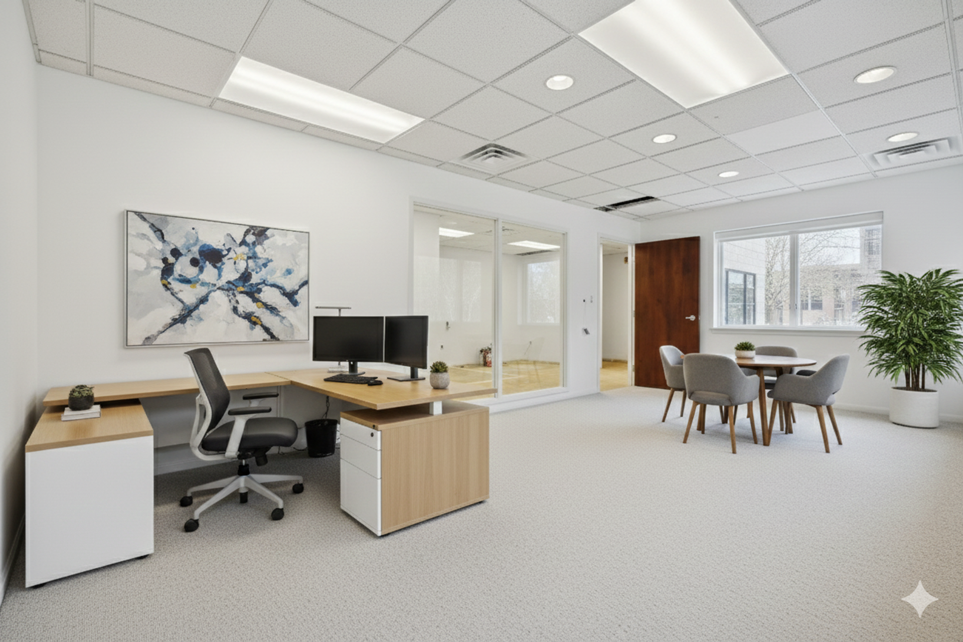 The space itself is thoughtfully designed and features a welcoming reception area, a kitchenette, a conference room, multiple private offices, an open work area, and a dedicated training space. The layout is versatile and ideal for a variety of professional uses, including medical practices, administrative offices, insurance agencies, clerical operations, or other office-based businesses. With its combination of functionality, modern amenities, and a highly desirable location, this property provides the perfect environment for your company’s operations, client meetings, and staff productivity, while offering an excellent long-term investment opportunity in a thriving business corridor.