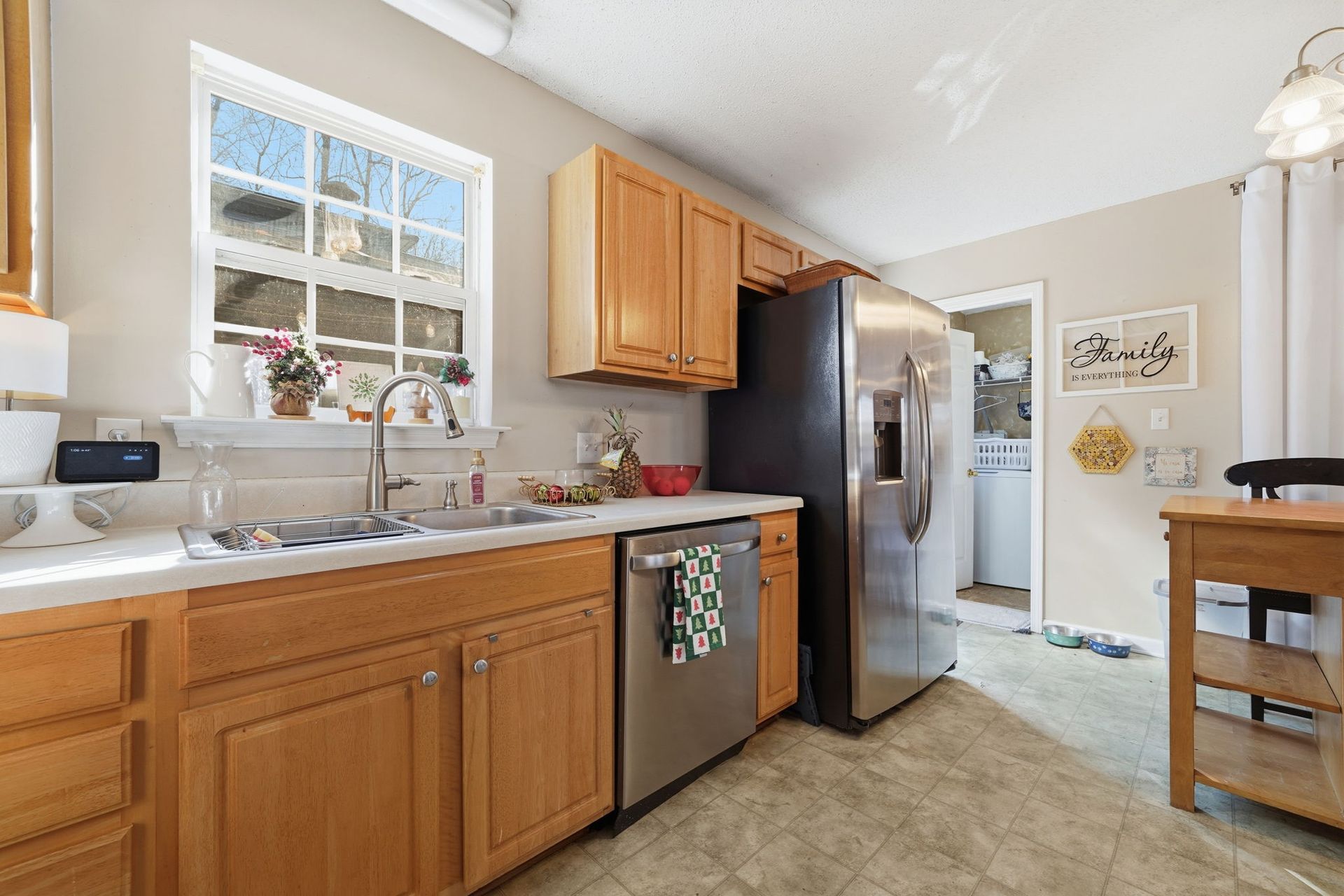 Charming 3-bedroom, 2-bathroom single-story home in the Saddlewood subdivision with no HOA and fresh interior paint completed within the last two years. Originally a 4-bedroom layout—with the dining room previously serving as the 4th bedroom—the home can easily be converted back if desired. Features include updated vinyl plank flooring (2023) and a spacious backyard with a 2-year-old deck perfect for outdoor living. The roof is approximately 5 years old, and the HVAC system is about 8 years old, and the home is to be sold in its current condition. Washer and dryer do not convey—an excellent starter home with flexible space and solid updates throughout.