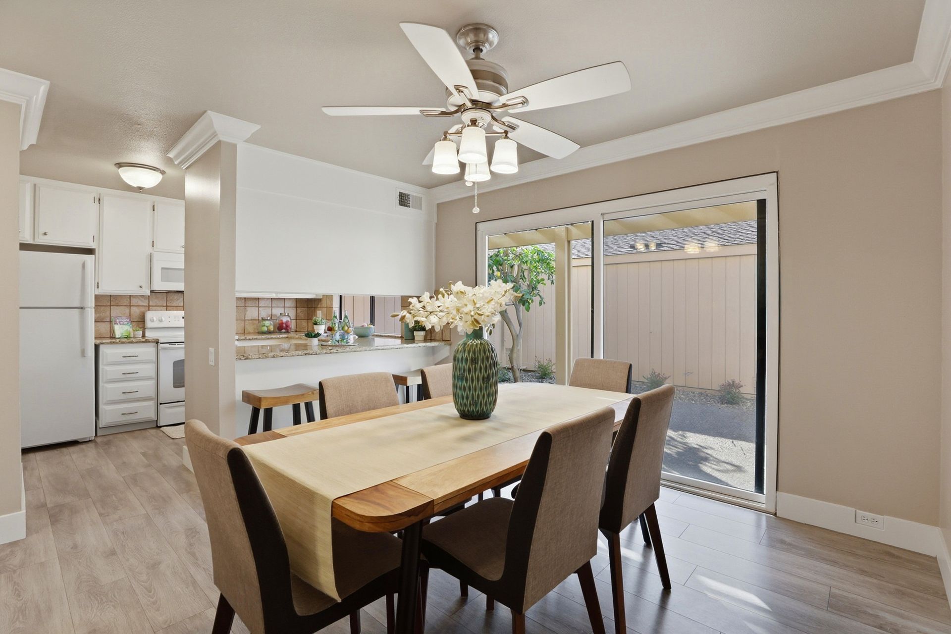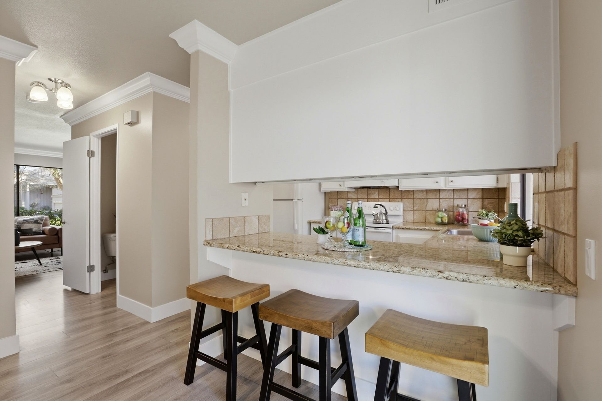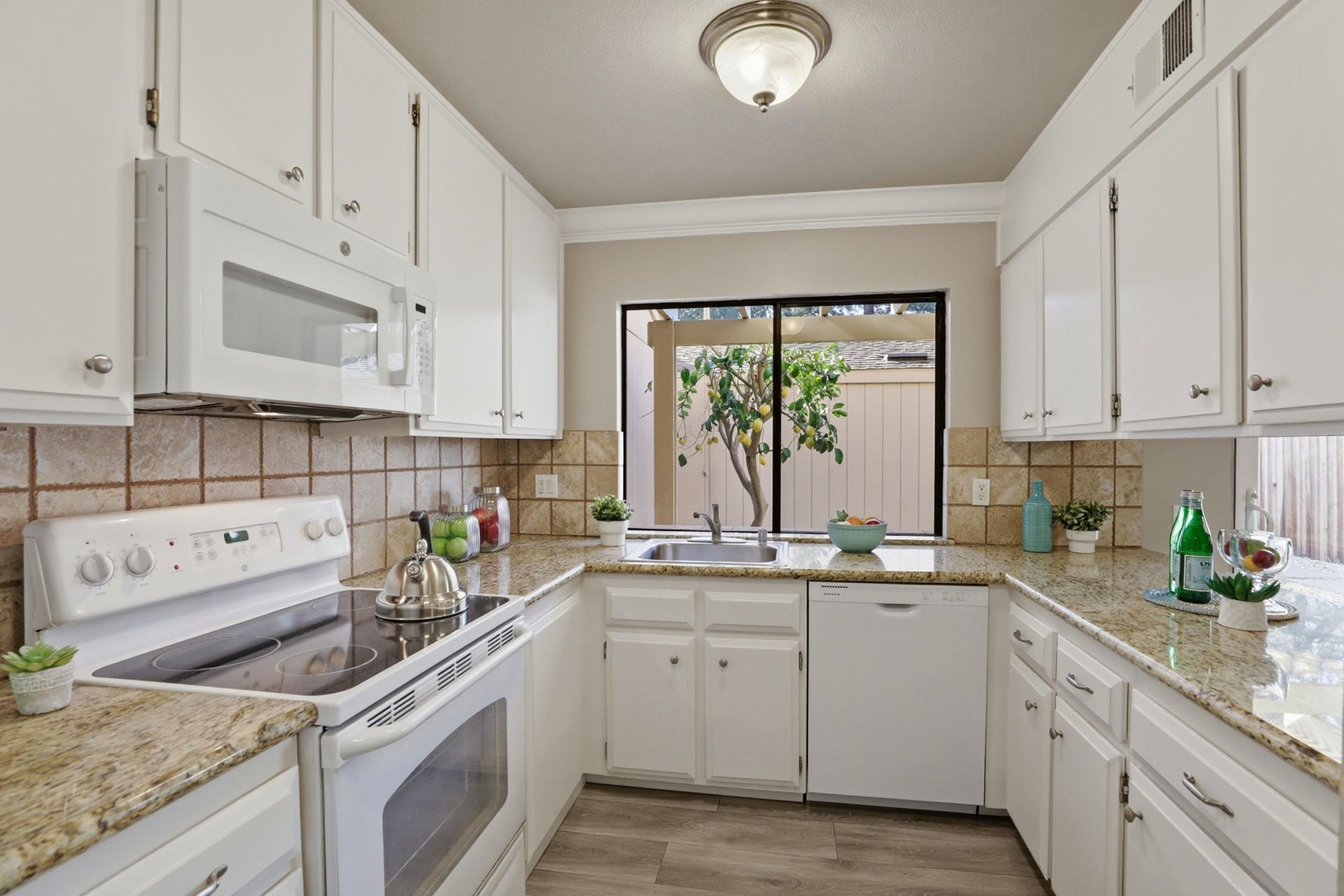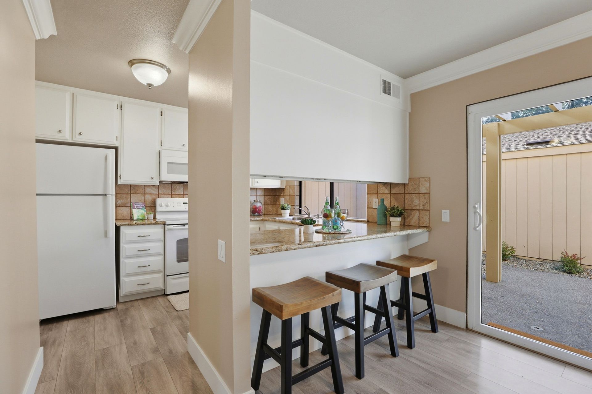 There’s nothing sweeter than having a home conveniently located, designed for easy living and maximum community resources all in one package. This three-bedroom, two story condo in Campus Commons is it! Enter through the brand-new front door to find the living room that features a wood burning fireplace, a wood feature wall and a panoramic view of the landscaped cul de sac, not another wall. The nearby formal dining room is adjacent to the kitchen with a pass-through window to the patio. Both rooms look out onto the newly landscaped covered patio, plus the detached two-car garage. The efficient kitchen boasts a newer dishwasher and microwave plus the refrigerator and stove. The laundry with pantry storage space is adjacent and includes the washer/dryer. Up the newly carpeted stairs are the primary suite with ensuite bath and walk-in closet plus the two guest rooms, each with a large closet plus the third bath. Also a short walk away are the community recreational facilities which include the Clubhouse, swimming pools, tennis courts and more all of which are managed and maintained by the Association just as is the exterior siding, roofs and the public landscaping surrounding the homes. Finally there is also the surrounding City amenities including notable retail such as stores located at Pavilions, Loehman’s Plaza, tons of restaurants, services. The entire Campus Commons community is literally just minutes from the 50 freeway and CSUS and more. See it today.