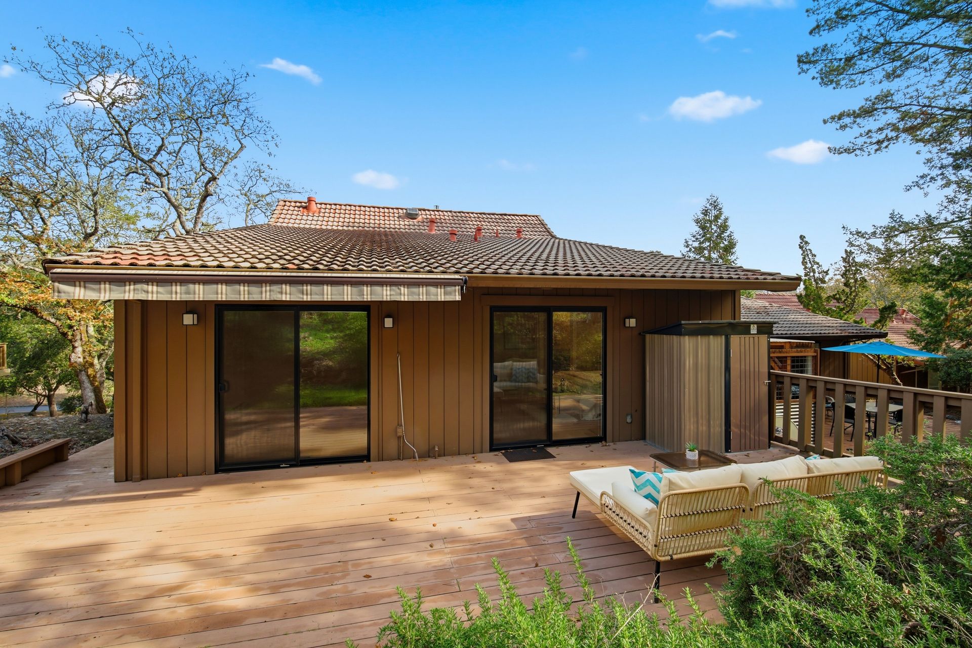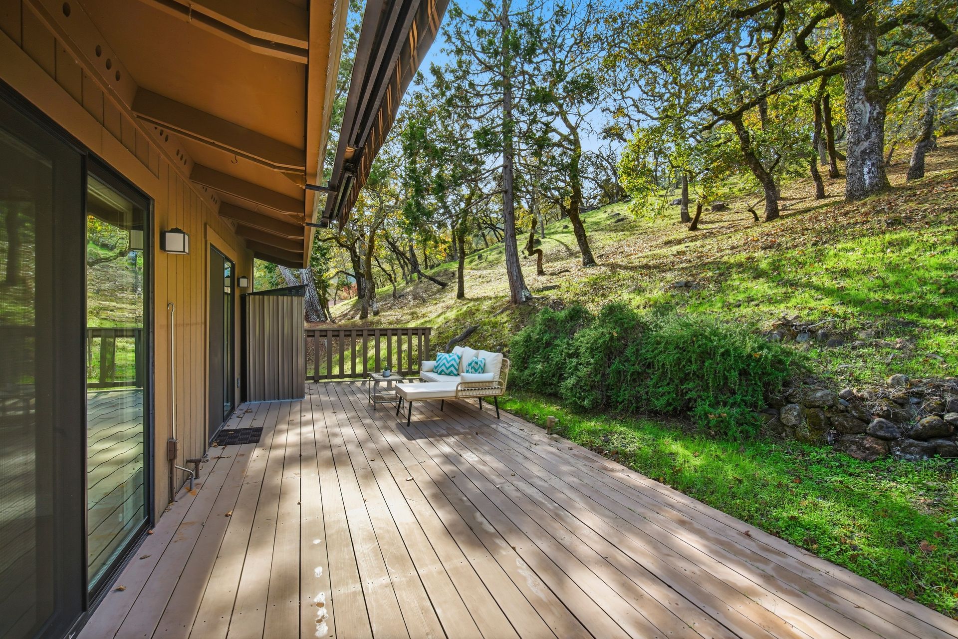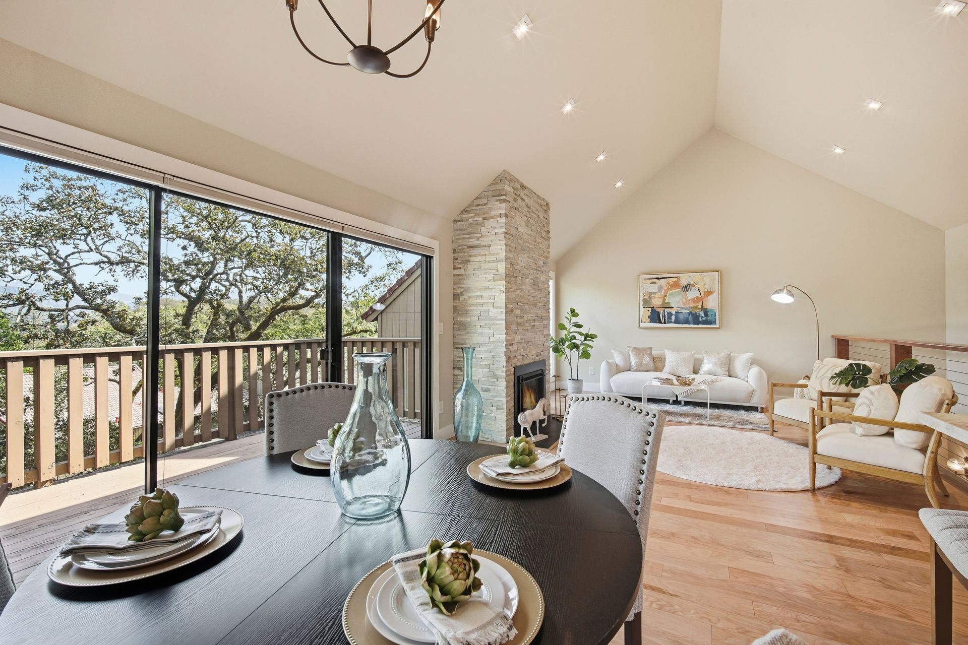 The open and tastefully remodeled kitchen is a true highlight of this home, including stone countertops, tile backsplash, wine refrigerator, breakfast bar, and 6-burner Thermador gas range. Warm hardwood flooring is featured throughout the living areas. Cool winter evenings will be warmed by the gas fireplace which is a centerpiece of the living room. Each bedroom has its own access to the back deck which offers retractable sunshade and views of the oak-studded hillside. This is a truly fantastic opportunity. The homes in this community rarely come to market, and this home has been in the same family for more than 25 years. Just minutes from all the amenities Oakmont and the Wine Country has to offer. Where the deer roam, you will find a peaceful setting to call home. Welcome home to Oak Forest!