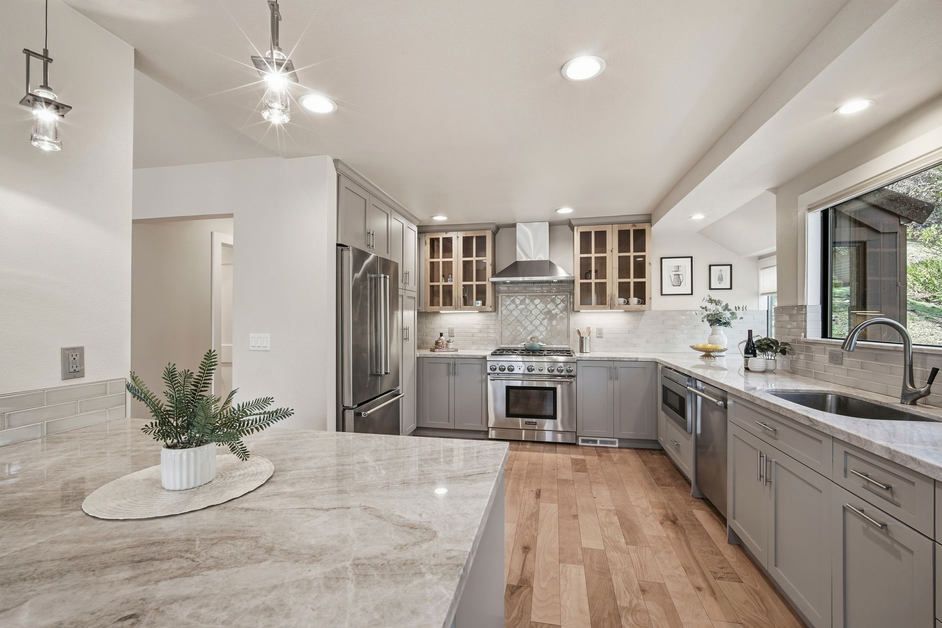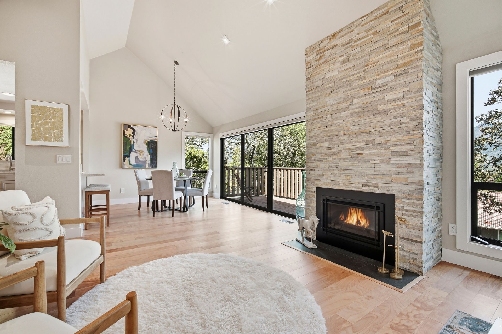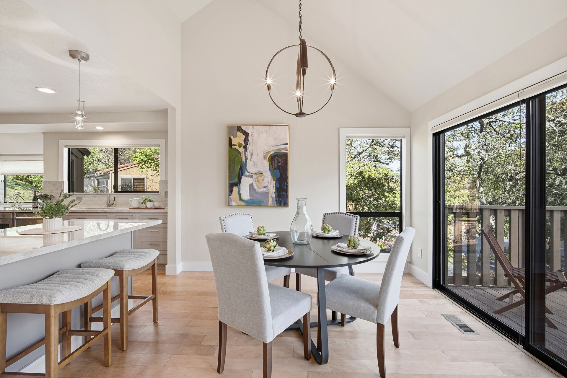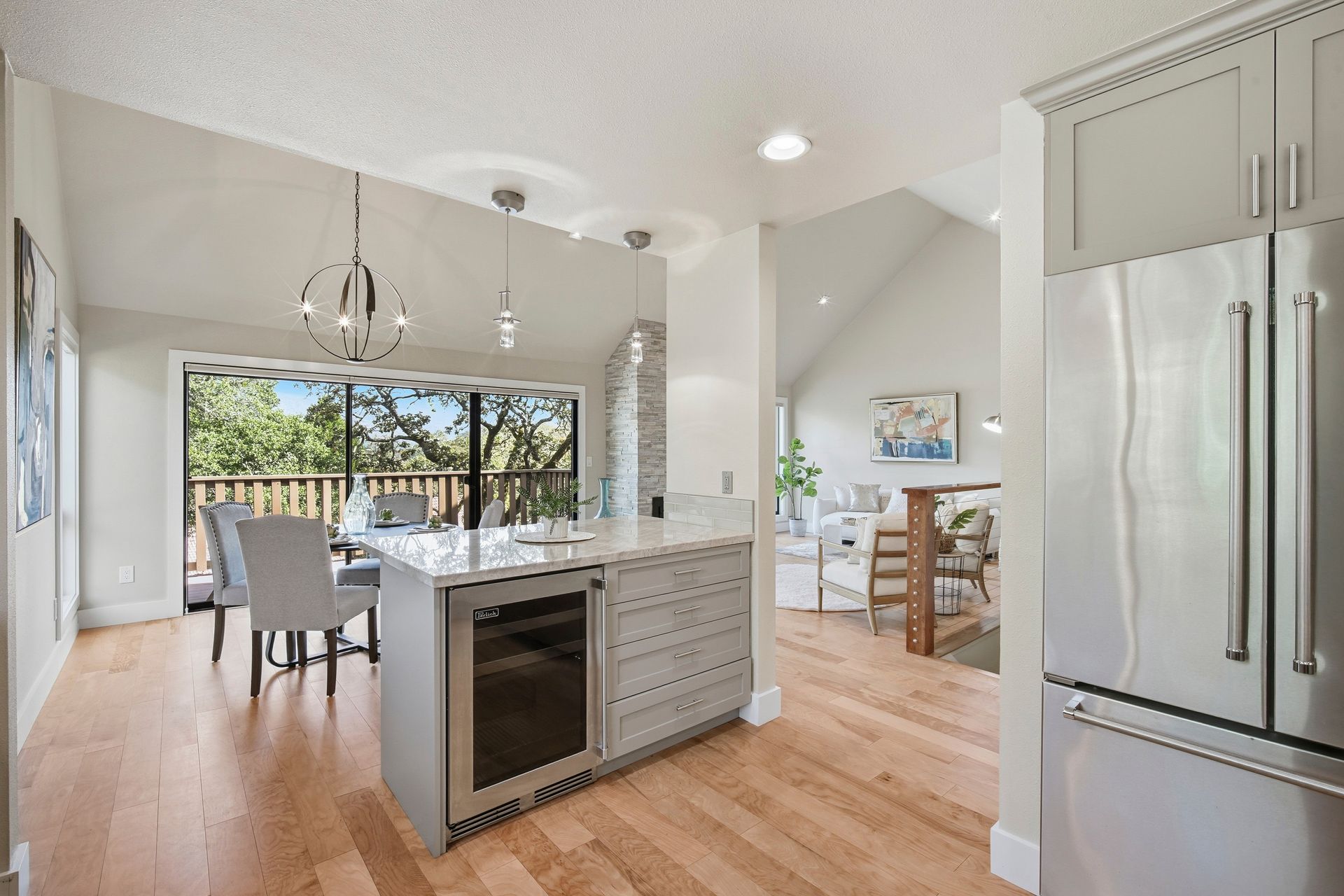 The open and tastefully remodeled kitchen is a true highlight of this home, including stone countertops, tile backsplash, wine refrigerator, breakfast bar, and 6-burner Thermador gas range. Warm hardwood flooring is featured throughout the living areas. Cool winter evenings will be warmed by the gas fireplace which is a centerpiece of the living room. Each bedroom has its own access to the back deck which offers retractable sunshade and views of the oak-studded hillside. This is a truly fantastic opportunity. The homes in this community rarely come to market, and this home has been in the same family for more than 25 years. Just minutes from all the amenities Oakmont and the Wine Country has to offer. Where the deer roam, you will find a peaceful setting to call home. Welcome home to Oak Forest!