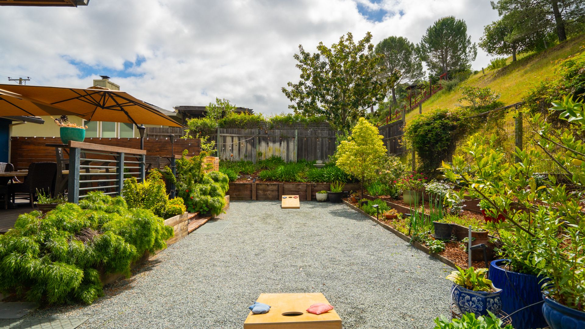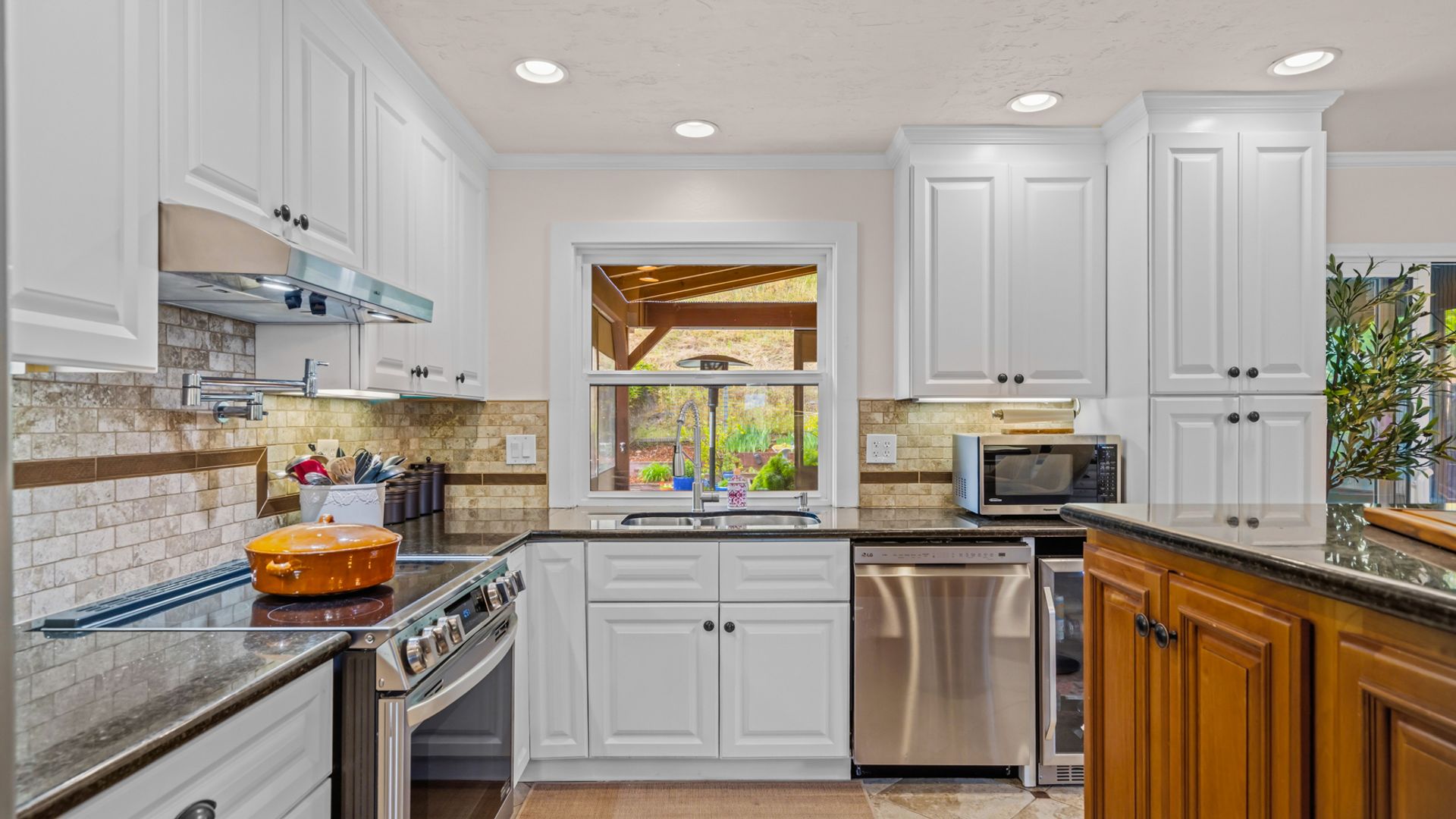 Gorgeous and dramatic, this Terra Linda view home backs up to open space, providing an outdoor Oasis for extreme California living. Embracing its surroundings, the layout offers a seamless flow between indoor spaces flooded with natural light and multiple outdoor spaces, including a spectacular vaulted Pavilion for outdoor entertainment and gatherings. The main floor centers around a beautiful eat-in chef’s kitchen with stone counters, newer stainless-steel appliances, a large center island, and newer porcelain tile floors. All flowing out to the backyard through dual-pane sliding doors. The kitchen leads into a sizeable family room with incredible vistas of the surrounding hills anchored by a cozy wood burning fireplace, relaxing at the end of the day. Additionally, you will find three sizeable bedrooms and two remodeled bathrooms on the main level, including a well-appointed Primary suite complete with a remodeled bathroom and walk-in closet.