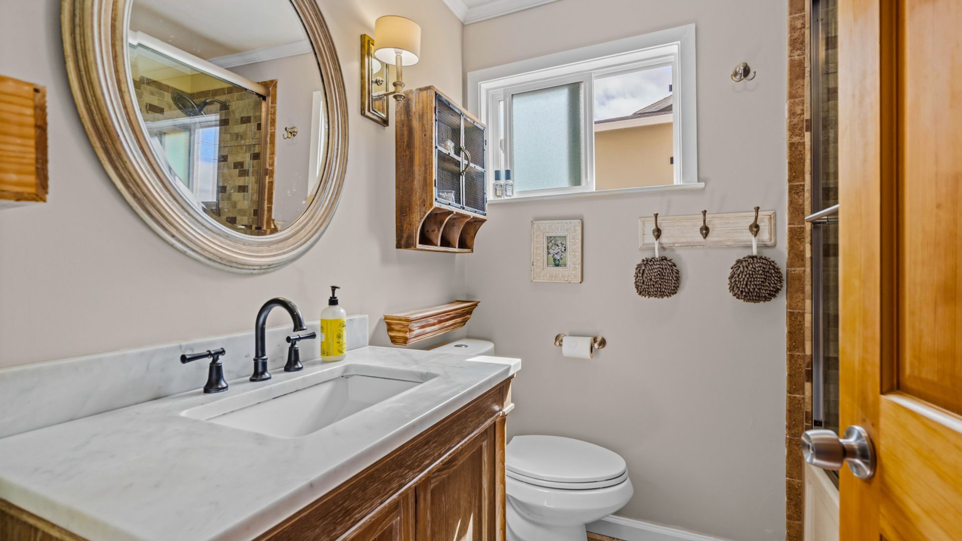 Downstairs, you will find a fantastic multi-purpose family room/ 4th bedroom/Gym boasting its own third remodeled bathroom and closet.