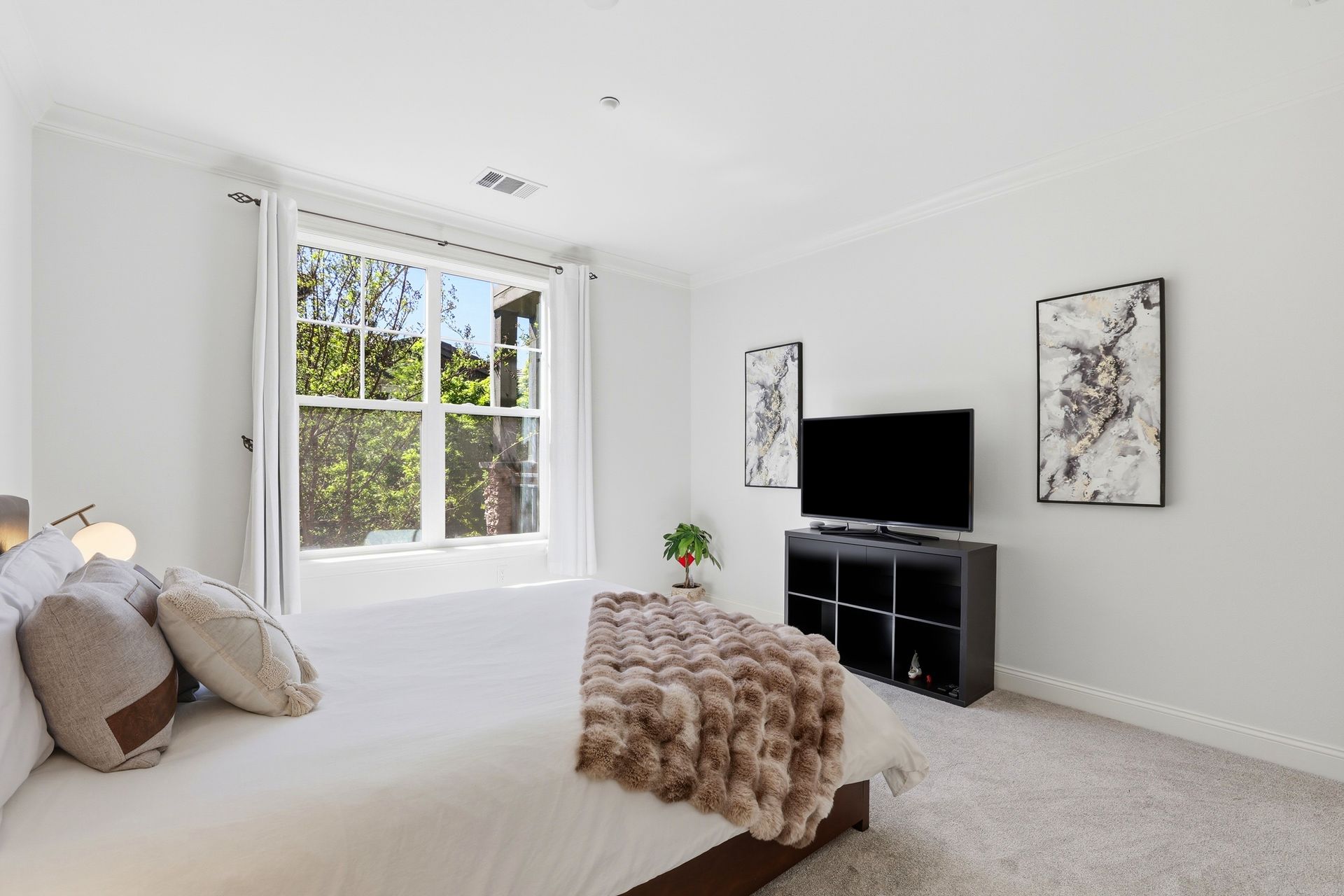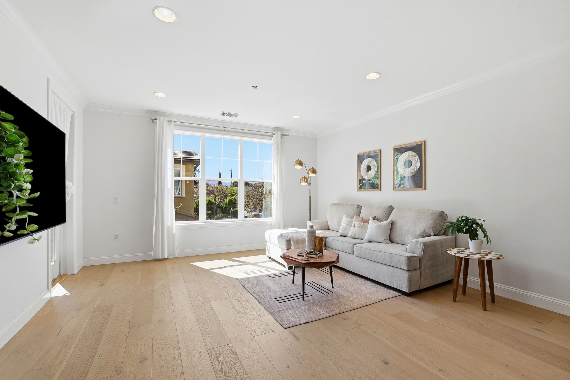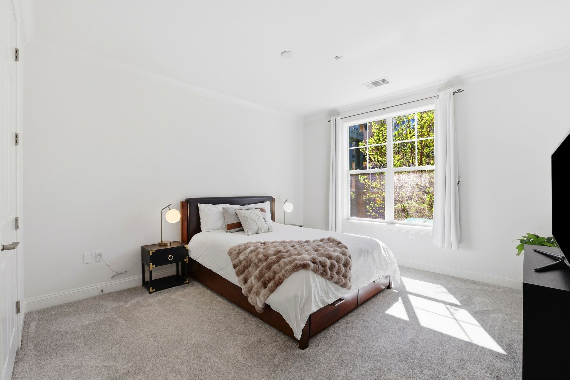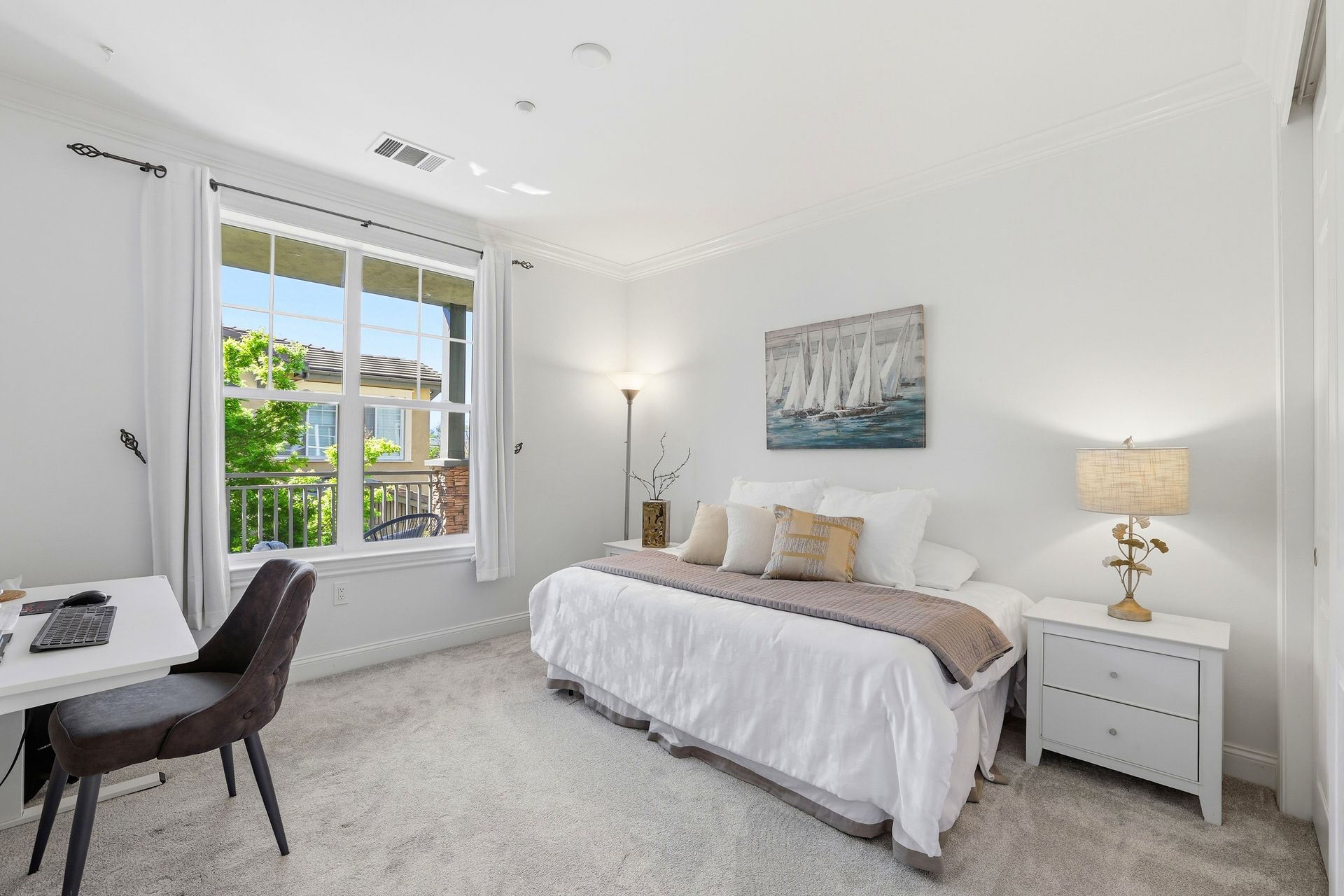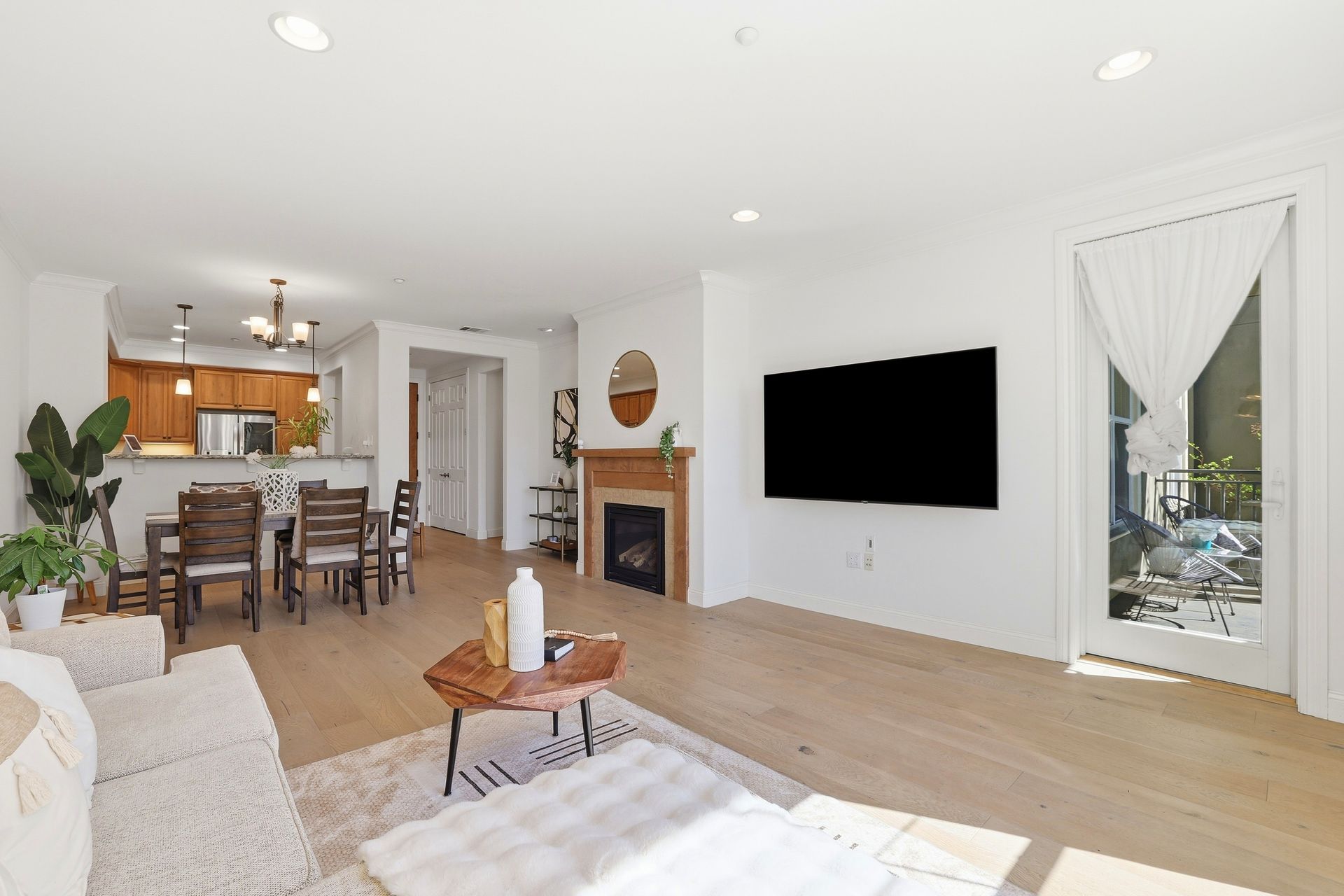 Thoughtfully updated high-end 2-bed, 2-bath home, features modern wide oak plank hardwood flooring, plush new carpets, refreshed spa-like bathrooms with new shower & fixtures. Enjoy premium kitchen appliances: BOSCH range and oven, THERMADOR smart built-in dishwasher, LG Smart InstaView French door refrigerator, a ZEPHYR exhaust hood and a NEST thermostat. The light-filled living space features soaring 10-foot ceilings providing an open-concept design connecting the living, dining, and kitchen areas creating an airy flow. Offering generous NATURAL LIGHT while enhancing privacy and openness. This open layout features two generous sun-filled bedrooms, and the primary suite enjoying its own en-suite bathroom. Enjoy a private, BBQ-friendly balcony as well. Two assigned parking spaces near the elevator, plus bike storage and a private storage unit. The HOA offers exceptional value, covering: Trash, Gas, Hot Water, Landscaping, Roof and Exterior Maintenance. Desirable on-site amenities: gym, pool, hot tub, and a clubhouse. Walkable to stores, restaurants, & EV charging stations. Two parks Doerr and Kirk within a 10-minute walk, one includes tennis courts. A rare opportunity for turnkey living and long-term ownership in one of Willow Glen's most sought-after communities.