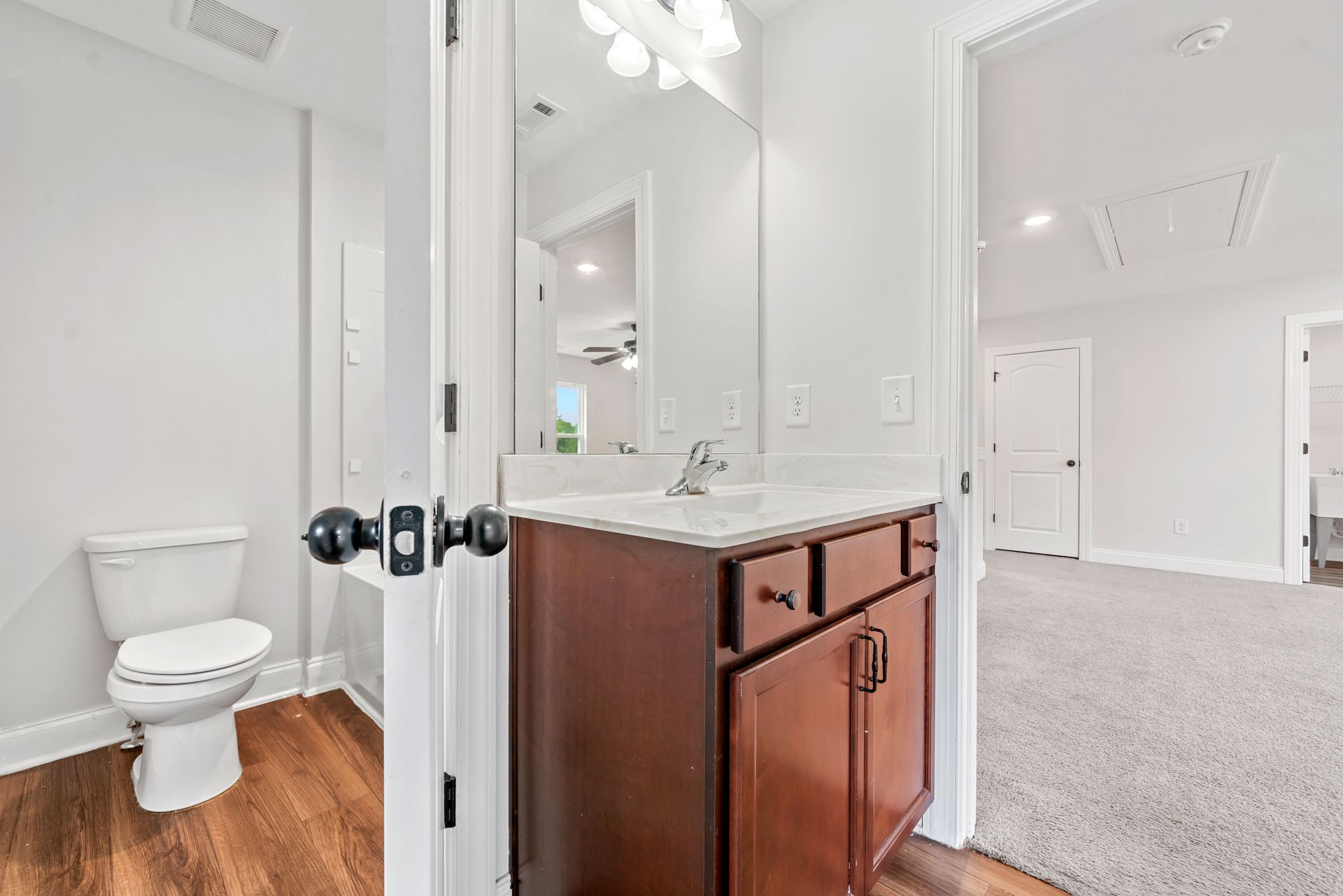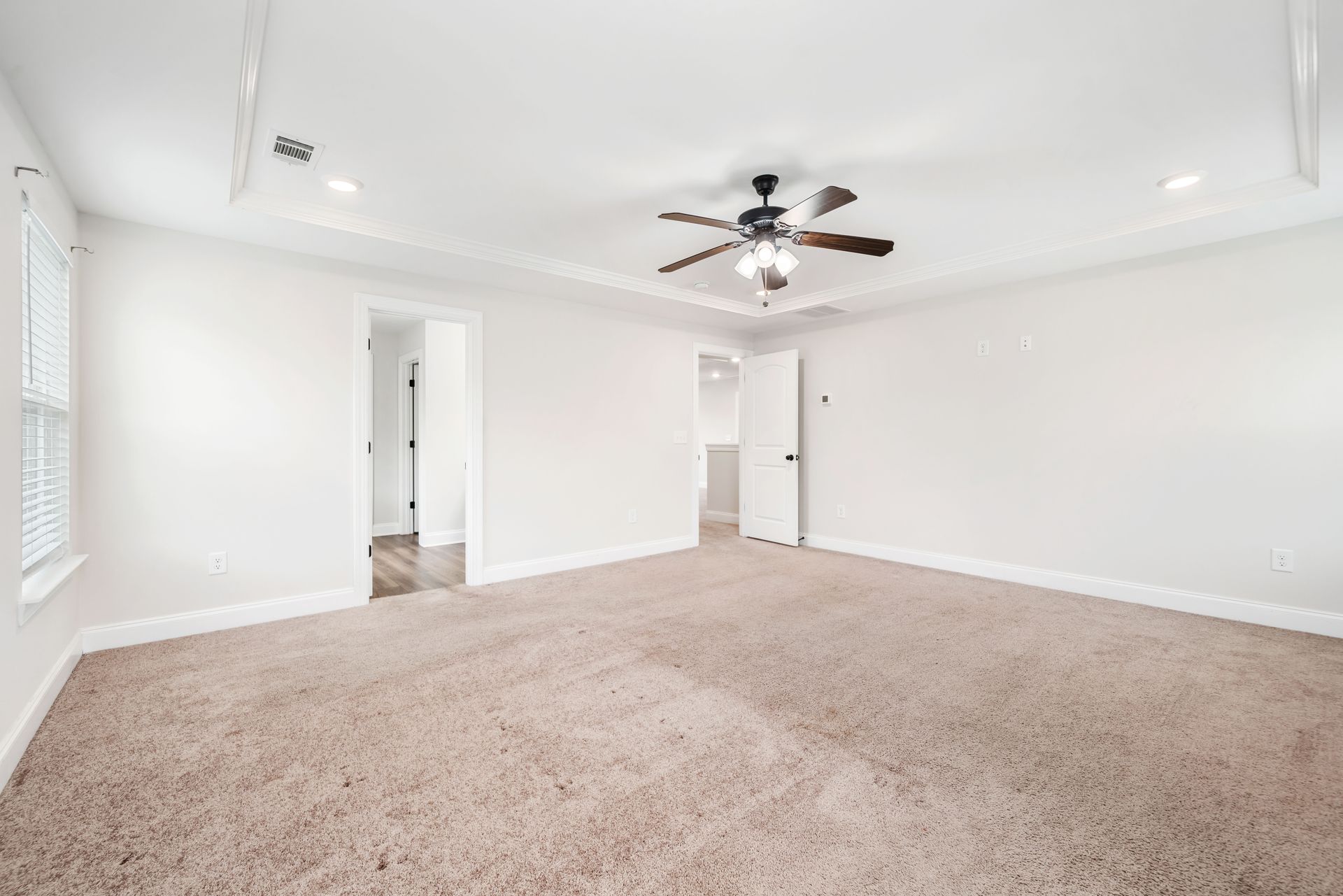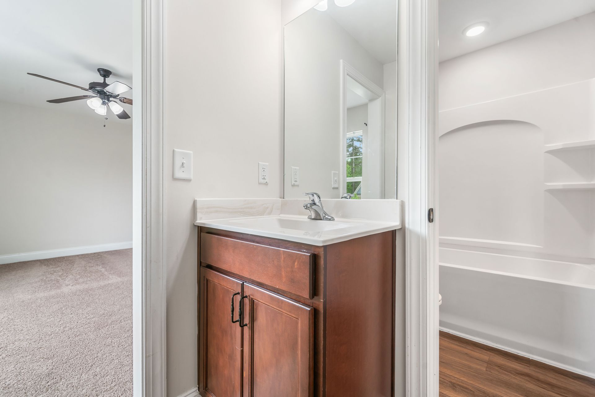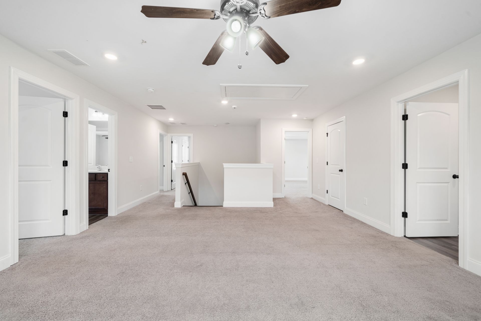 Upstairs, the loft/den offers extra living space. The primary bedroom includes a large walk-in closet and an oversized tub. Bedrooms feature a dual-entry bathroom designed with separate vanities for privacy and convenience.