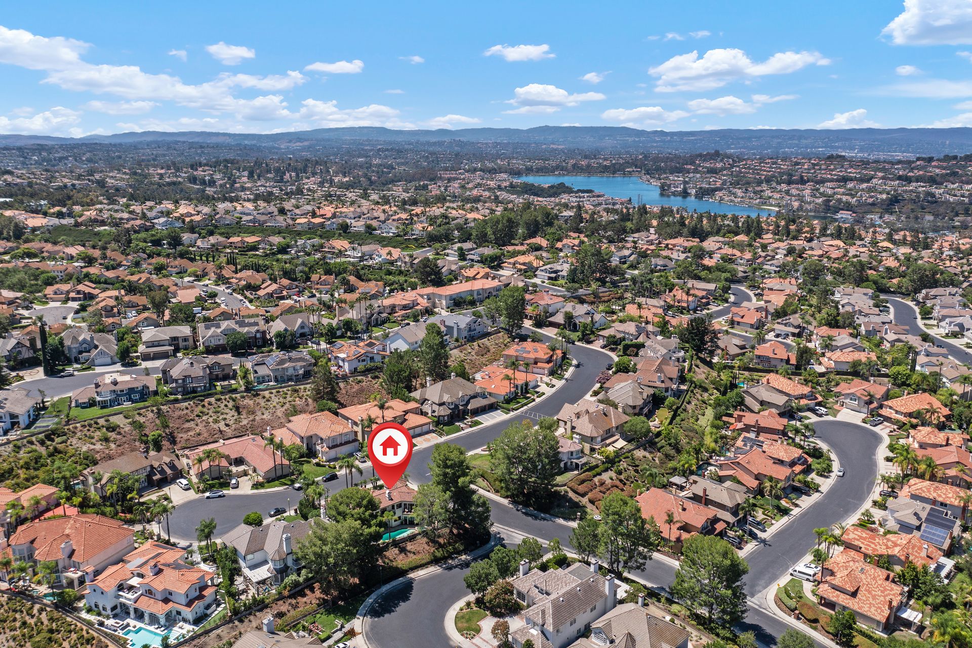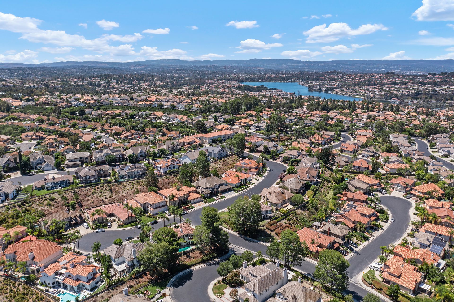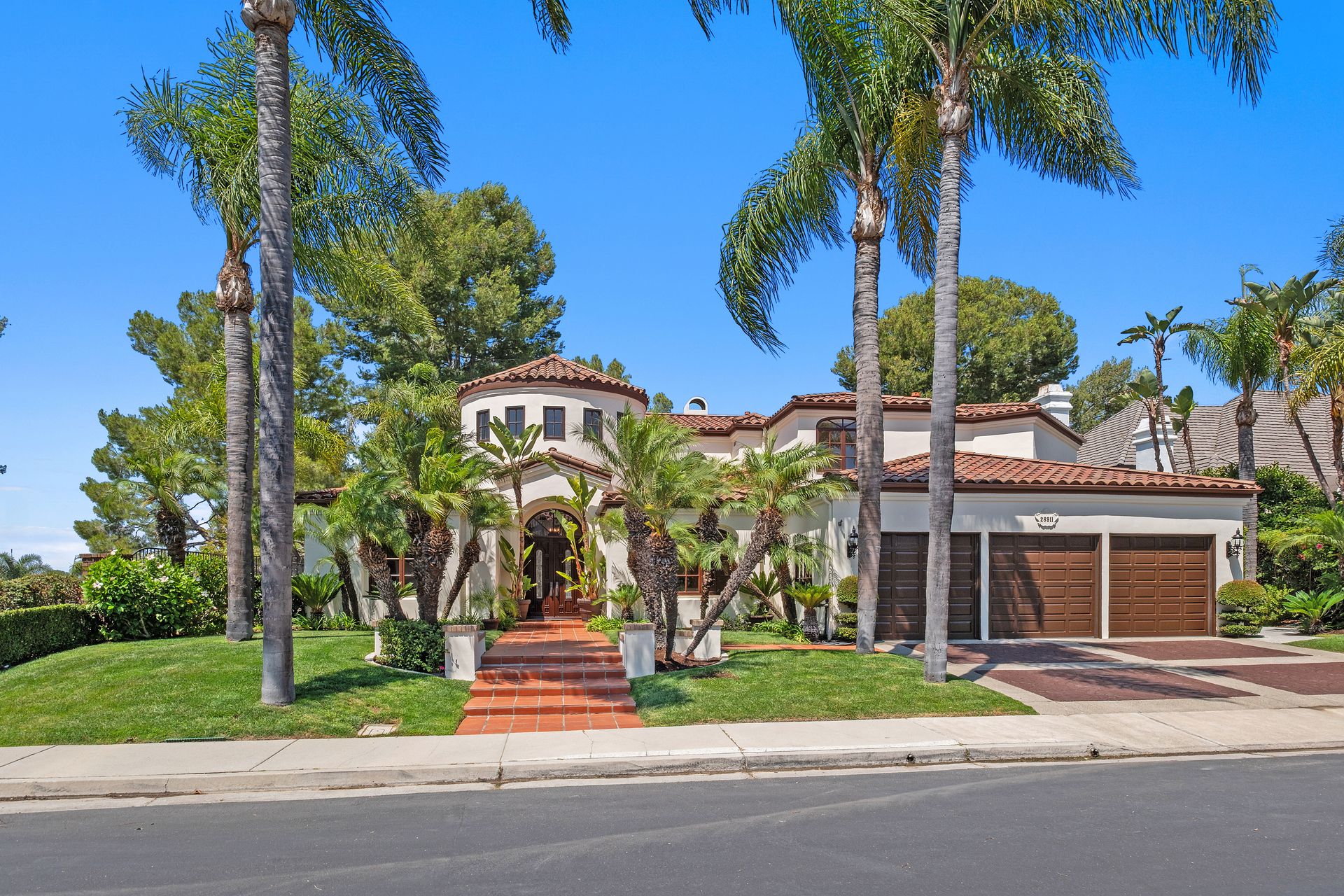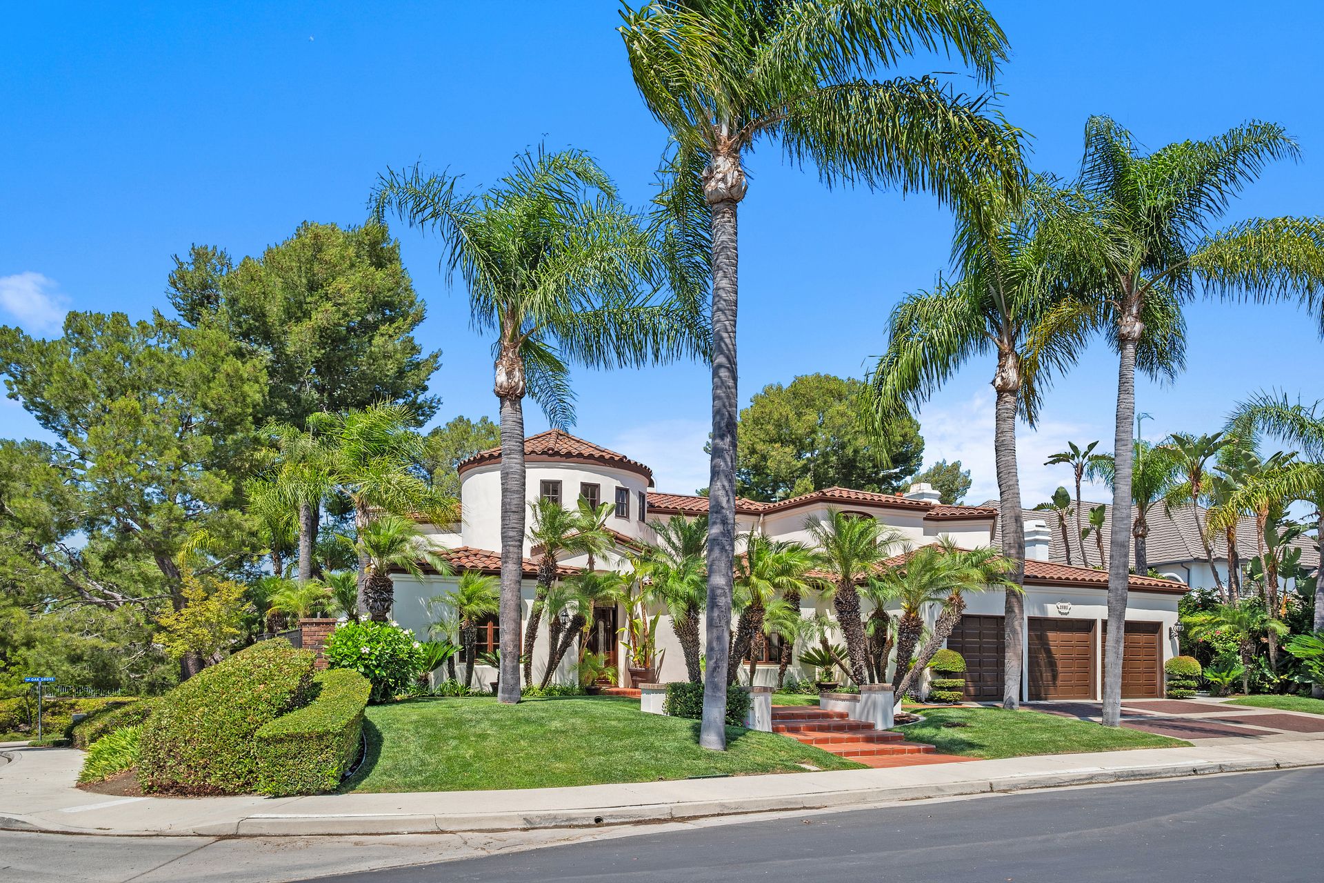 Stunningly sophisticated, this elegant, Spanish-style, custom-built estate home makes all of your Dulce Vida dreams come true! This architectural “one of a kind” masterpiece offers pure quality and has often been described by some local homeowners to be “amongst the most beautiful homes in the entire city of Mission Viejo.” Add that to a premium-size, elevated and private corner lot on a small cul-de-sac, with only one immediately adjacent neighboring home and a direct view of Saddleback Mountain. Featuring an incredible entertainer’s dream backyard complete with a private in-ground pool and spa, built-in BBQ, professional hardscape and lush, mature, well-manicured landscaping. Upon entering the custom front entrance doors, you will marvel at the grand foyer with soaring high ceilings and a beautiful custom curved staircase that will surely impress. This elegant and functional floor plan consists of approximately 4,650 square feet of livable space which includes five bedrooms (three include en-suite bathrooms, two of which are located on the first level, an extremely rare and attractive feature), two home offices, formal living room, large formal dining room, separate family room and a spacious chef’s kitchen with granite counters, center island, quality appliances and a spacious breakfast nook. The large primary suite is complemented by a cozy retreat, double-sided fireplace, large walk-in closet and French doors which open to a romantic balcony with sweeping views. Enjoy access to Lake MV membership private lake community with access to various boating options, fishing, sailing, paddle boarding, swimming, gorgeous private beaches, summertime concerts, movies, and more! Canyon Crest Estates is a multi-million dollar gated community that includes a clubhouse, three pools, spa, state-of-the-art gym, four tennis courts, basketball, volleyball, pickleball court, playground and 24-hour guard-gated security.