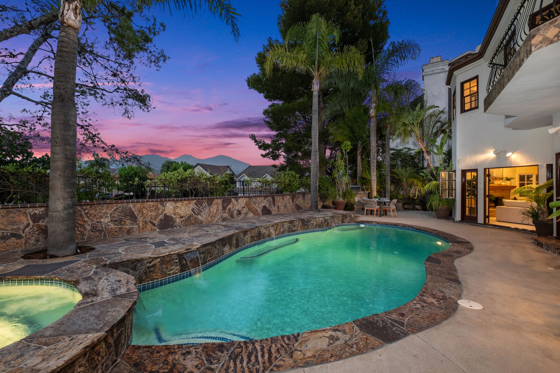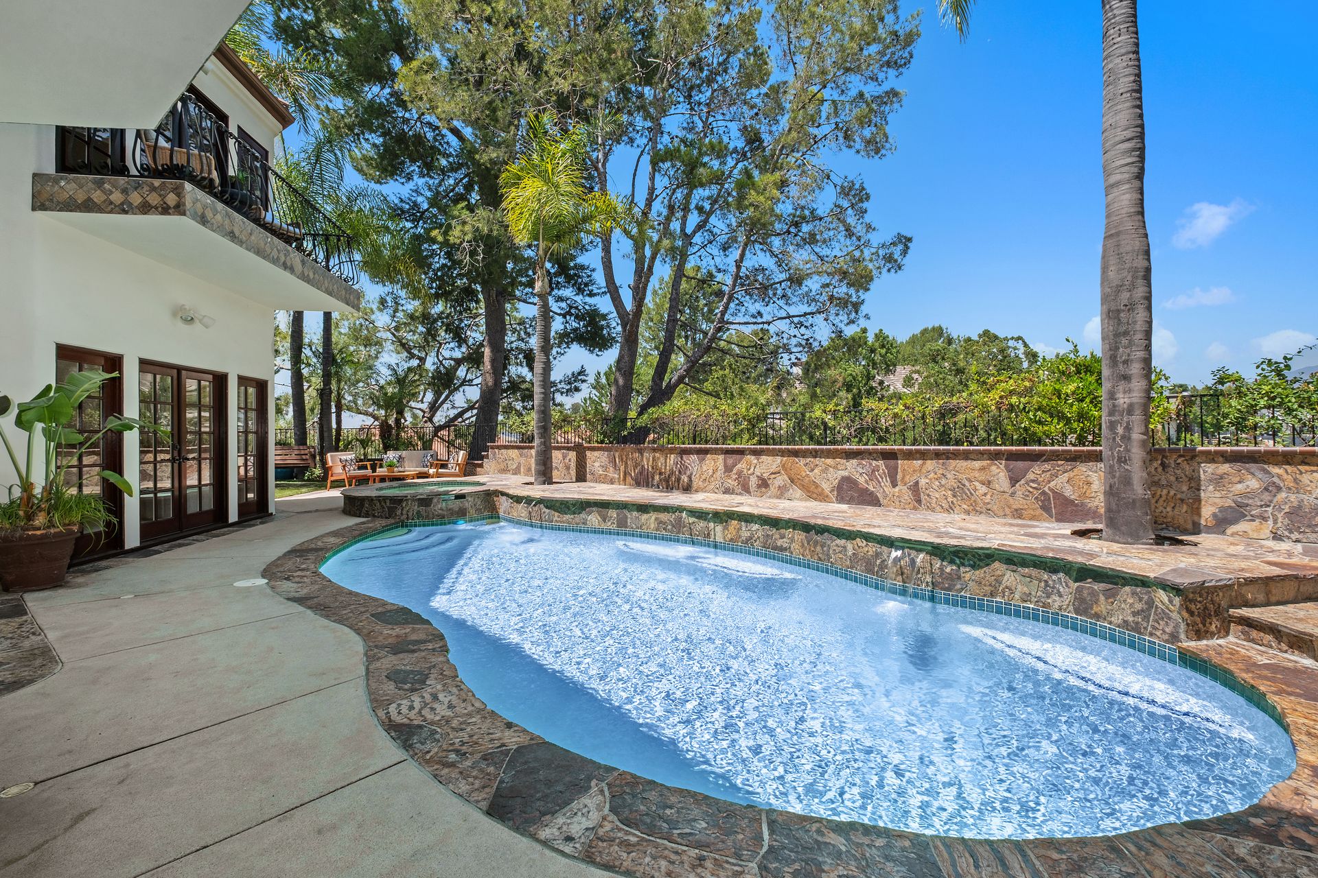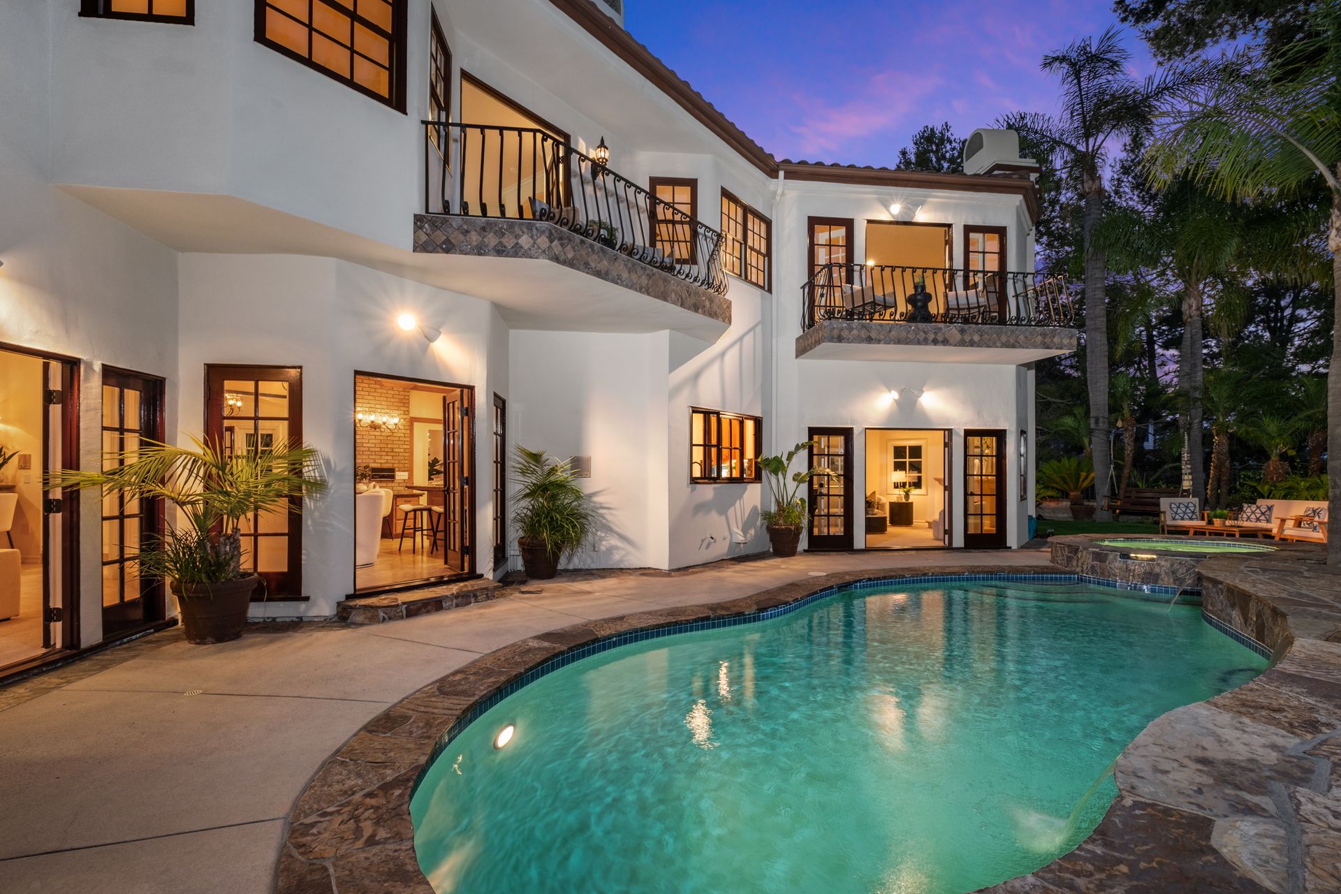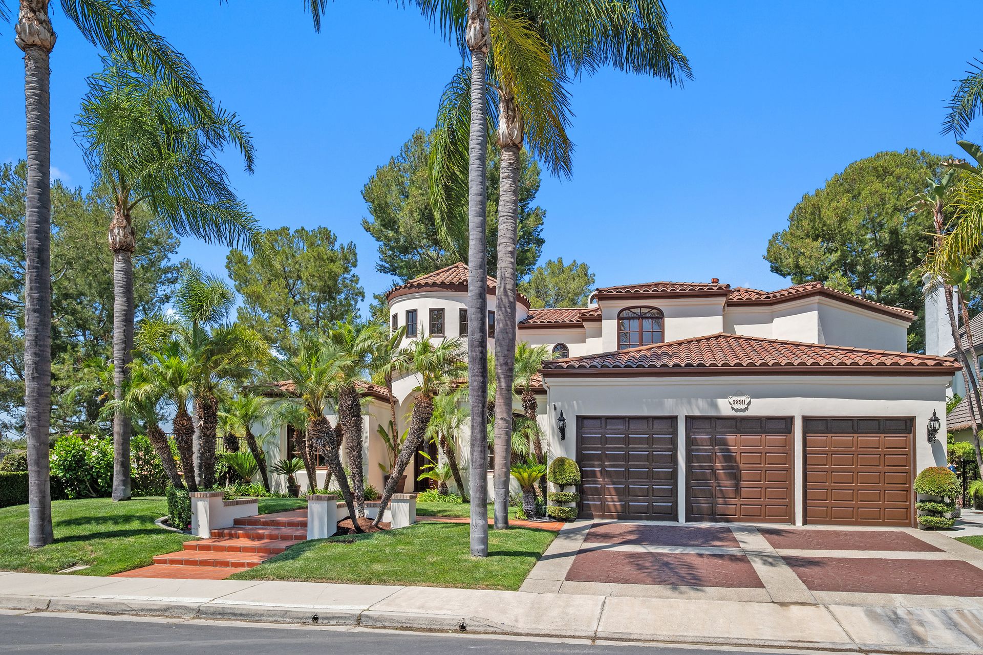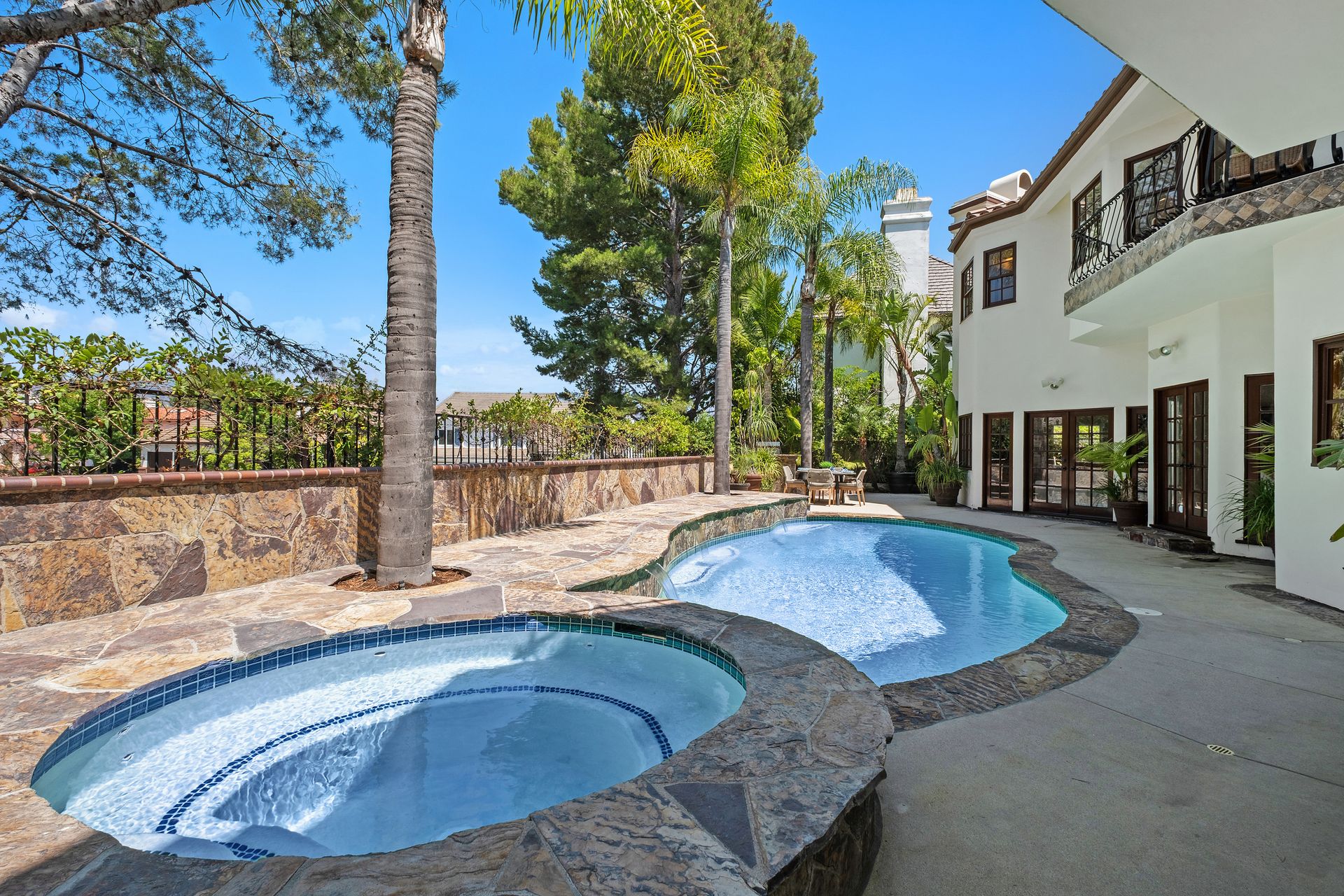 Stunningly sophisticated, this elegant, Spanish-style, custom-built estate home makes all of your Dulce Vida dreams come true! This architectural “one of a kind” masterpiece offers pure quality and has often been described by some local homeowners to be “amongst the most beautiful homes in the entire city of Mission Viejo.” Add that to a premium-size, elevated and private corner lot on a small cul-de-sac, with only one immediately adjacent neighboring home and a direct view of Saddleback Mountain. Featuring an incredible entertainer’s dream backyard complete with a private in-ground pool and spa, built-in BBQ, professional hardscape and lush, mature, well-manicured landscaping. Upon entering the custom front entrance doors, you will marvel at the grand foyer with soaring high ceilings and a beautiful custom curved staircase that will surely impress. This elegant and functional floor plan consists of approximately 4,650 square feet of livable space which includes five bedrooms (three include en-suite bathrooms, two of which are located on the first level, an extremely rare and attractive feature), two home offices, formal living room, large formal dining room, separate family room and a spacious chef’s kitchen with granite counters, center island, quality appliances and a spacious breakfast nook. The large primary suite is complemented by a cozy retreat, double-sided fireplace, large walk-in closet and French doors which open to a romantic balcony with sweeping views. Enjoy access to Lake MV membership private lake community with access to various boating options, fishing, sailing, paddle boarding, swimming, gorgeous private beaches, summertime concerts, movies, and more! Canyon Crest Estates is a multi-million dollar gated community that includes a clubhouse, three pools, spa, state-of-the-art gym, four tennis courts, basketball, volleyball, pickleball court, playground and 24-hour guard-gated security.