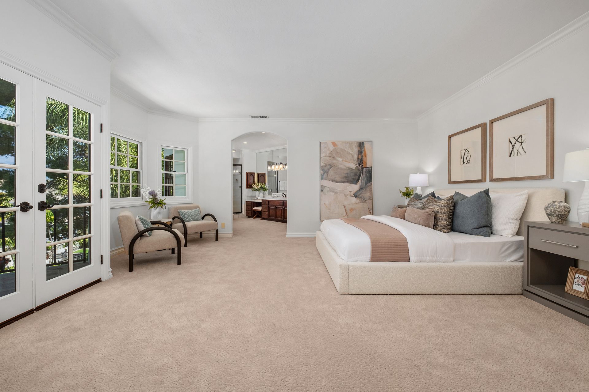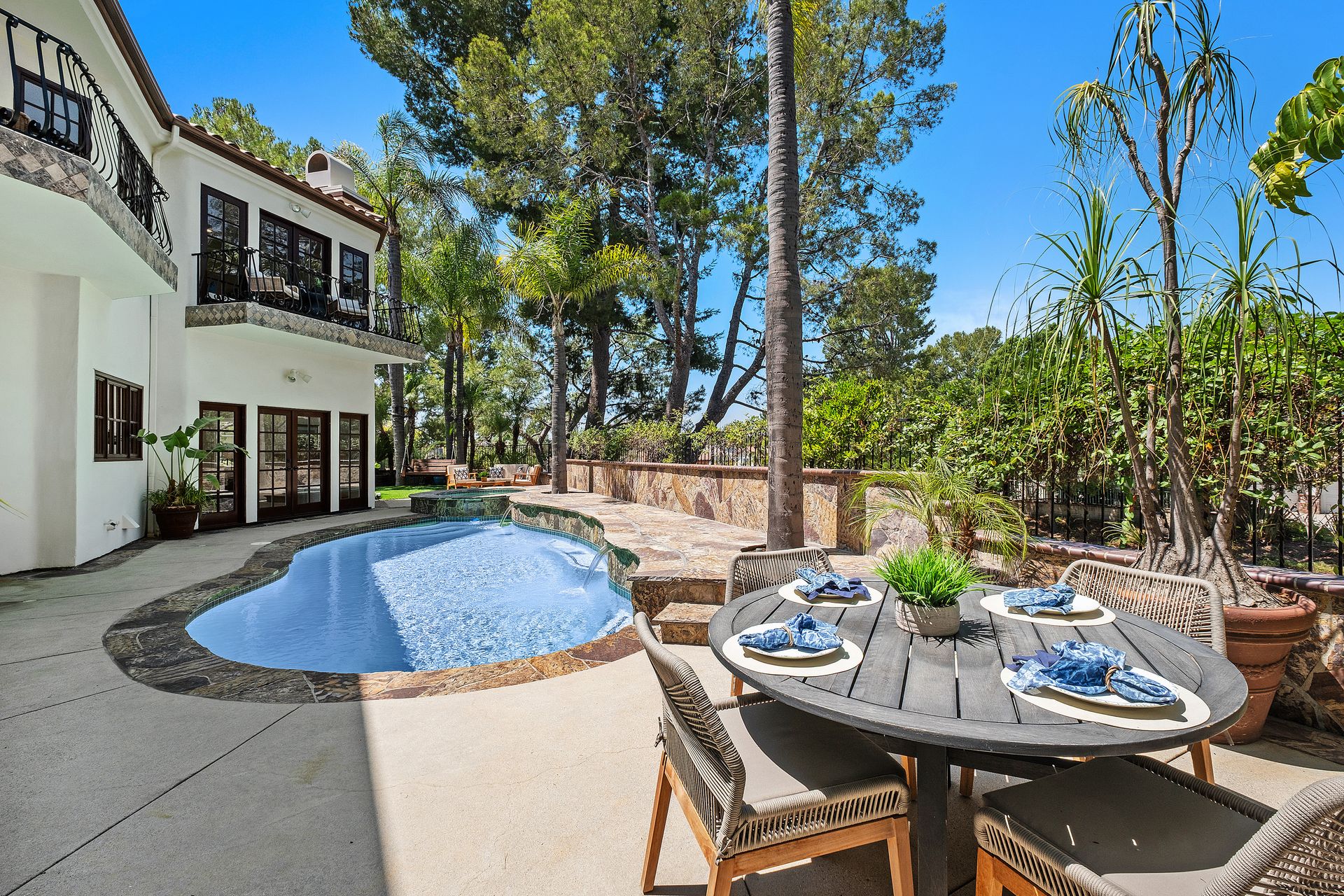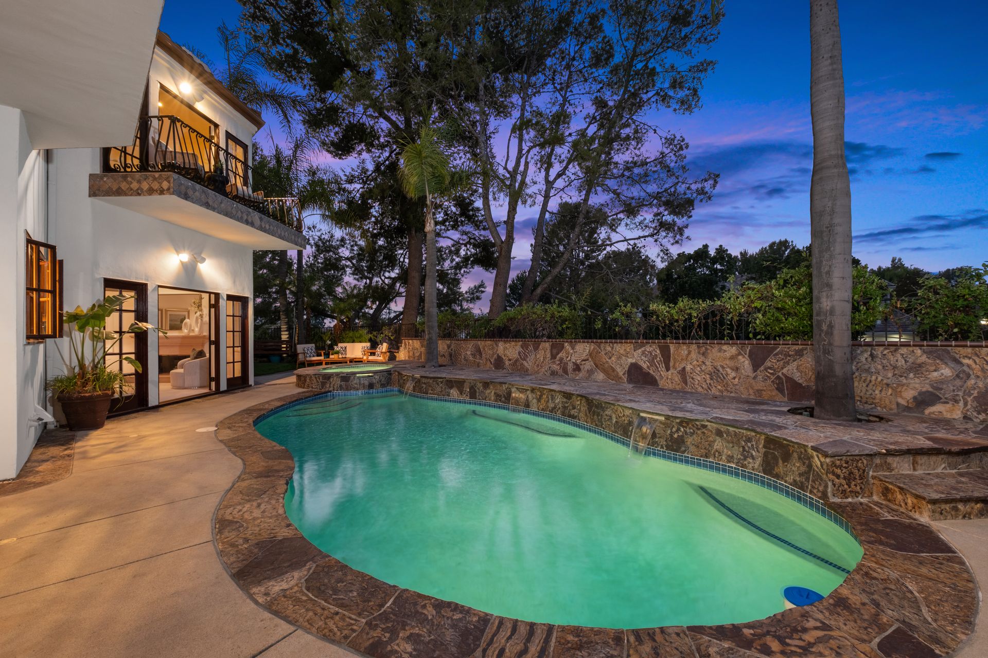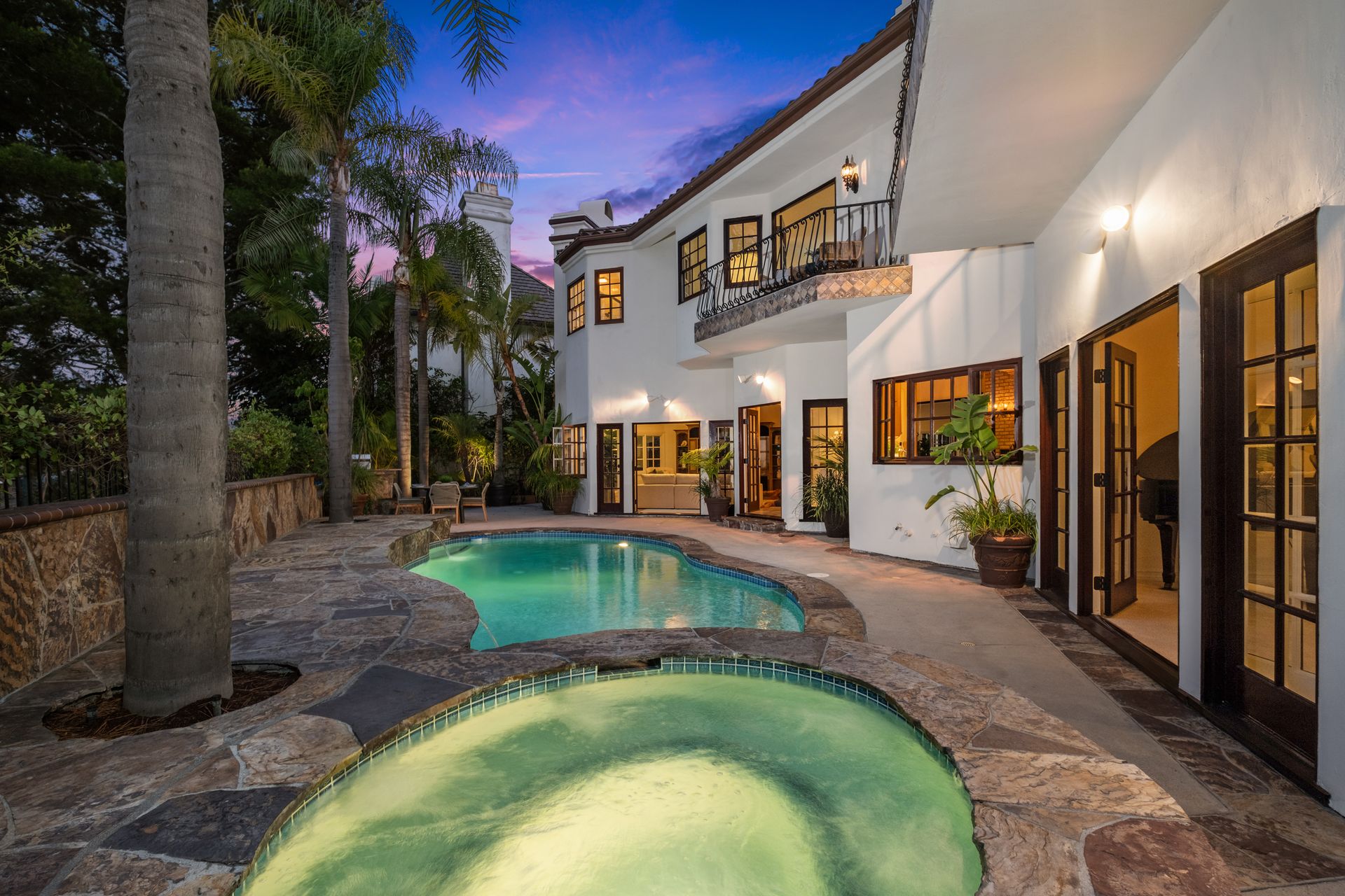 Stunningly sophisticated, this elegant, Spanish-style, custom-built estate home makes all of your Dulce Vida dreams come true! This architectural “one of a kind” masterpiece offers pure quality and has often been described by some local homeowners to be “amongst the most beautiful homes in the entire city of Mission Viejo.” Add that to a premium-size, elevated and private corner lot on a small cul-de-sac, with only one immediately adjacent neighboring home and a direct view of Saddleback Mountain. Featuring an incredible entertainer’s dream backyard complete with a private in-ground pool and spa, built-in BBQ, professional hardscape and lush, mature, well-manicured landscaping. Upon entering the custom front entrance doors, you will marvel at the grand foyer with soaring high ceilings and a beautiful custom curved staircase that will surely impress. This elegant and functional floor plan consists of approximately 4,650 square feet of livable space which includes five bedrooms (three include en-suite bathrooms, two of which are located on the first level, an extremely rare and attractive feature), two home offices, formal living room, large formal dining room, separate family room and a spacious chef’s kitchen with granite counters, center island, quality appliances and a spacious breakfast nook. The large primary suite is complemented by a cozy retreat, double-sided fireplace, large walk-in closet and French doors which open to a romantic balcony with sweeping views. Enjoy access to Lake MV membership private lake community with access to various boating options, fishing, sailing, paddle boarding, swimming, gorgeous private beaches, summertime concerts, movies, and more! Canyon Crest Estates is a multi-million dollar gated community that includes a clubhouse, three pools, spa, state-of-the-art gym, four tennis courts, basketball, volleyball, pickleball court, playground and 24-hour guard-gated security.