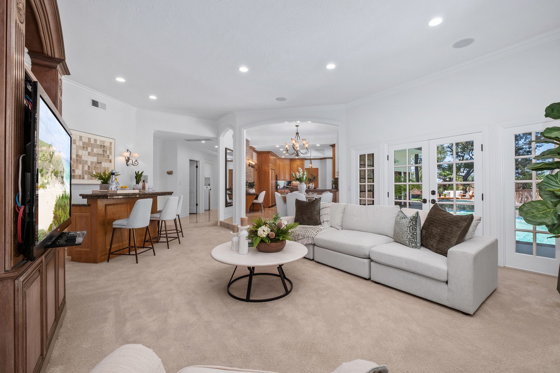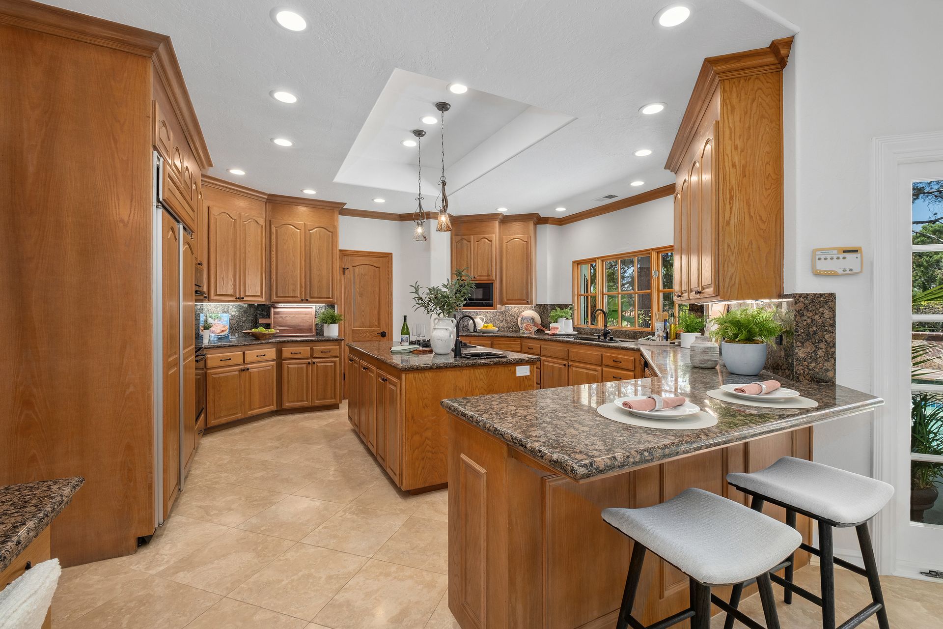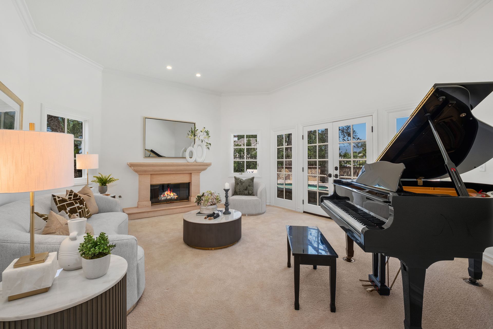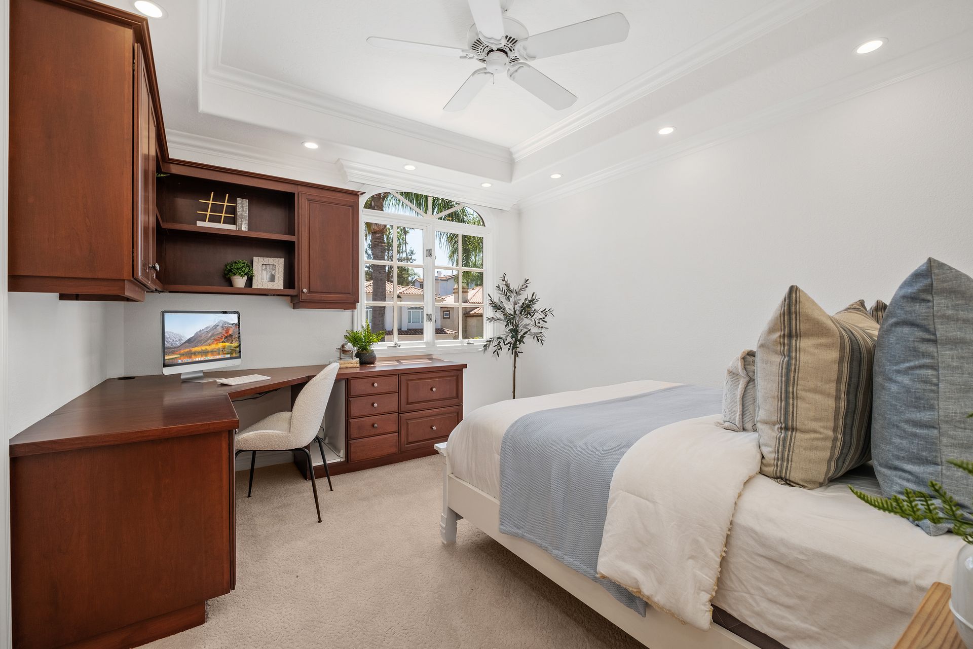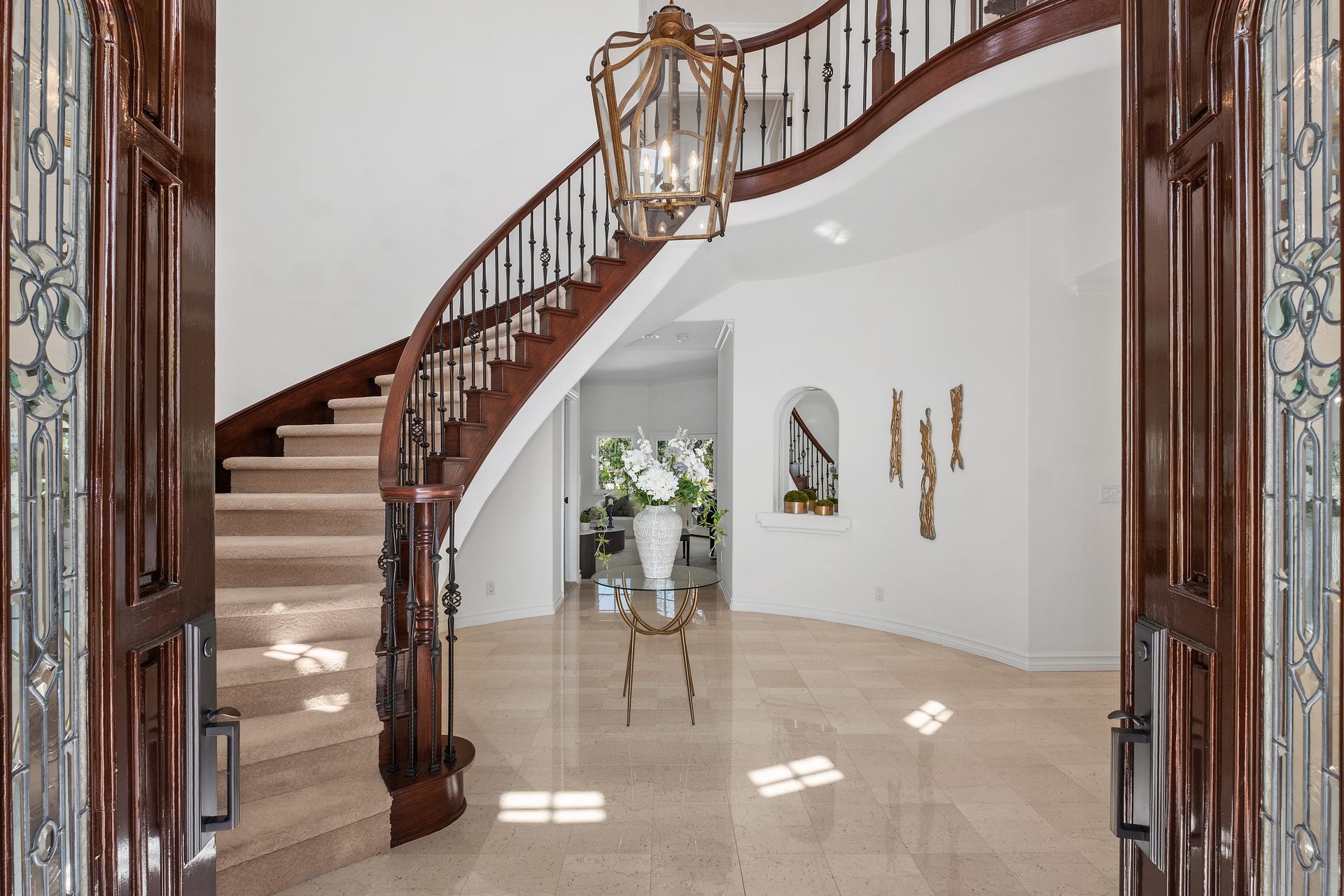 Stunningly sophisticated, this elegant, Spanish-style, custom-built estate home makes all of your Dulce Vida dreams come true! This architectural “one of a kind” masterpiece offers pure quality and has often been described by some local homeowners to be “amongst the most beautiful homes in the entire city of Mission Viejo.” Add that to a premium-size, elevated and private corner lot on a small cul-de-sac, with only one immediately adjacent neighboring home and a direct view of Saddleback Mountain. Featuring an incredible entertainer’s dream backyard complete with a private in-ground pool and spa, built-in BBQ, professional hardscape and lush, mature, well-manicured landscaping. Upon entering the custom front entrance doors, you will marvel at the grand foyer with soaring high ceilings and a beautiful custom curved staircase that will surely impress. This elegant and functional floor plan consists of approximately 4,650 square feet of livable space which includes five bedrooms (three include en-suite bathrooms, two of which are located on the first level, an extremely rare and attractive feature), two home offices, formal living room, large formal dining room, separate family room and a spacious chef’s kitchen with granite counters, center island, quality appliances and a spacious breakfast nook. The large primary suite is complemented by a cozy retreat, double-sided fireplace, large walk-in closet and French doors which open to a romantic balcony with sweeping views. Enjoy access to Lake MV membership private lake community with access to various boating options, fishing, sailing, paddle boarding, swimming, gorgeous private beaches, summertime concerts, movies, and more! Canyon Crest Estates is a multi-million dollar gated community that includes a clubhouse, three pools, spa, state-of-the-art gym, four tennis courts, basketball, volleyball, pickleball court, playground and 24-hour guard-gated security.