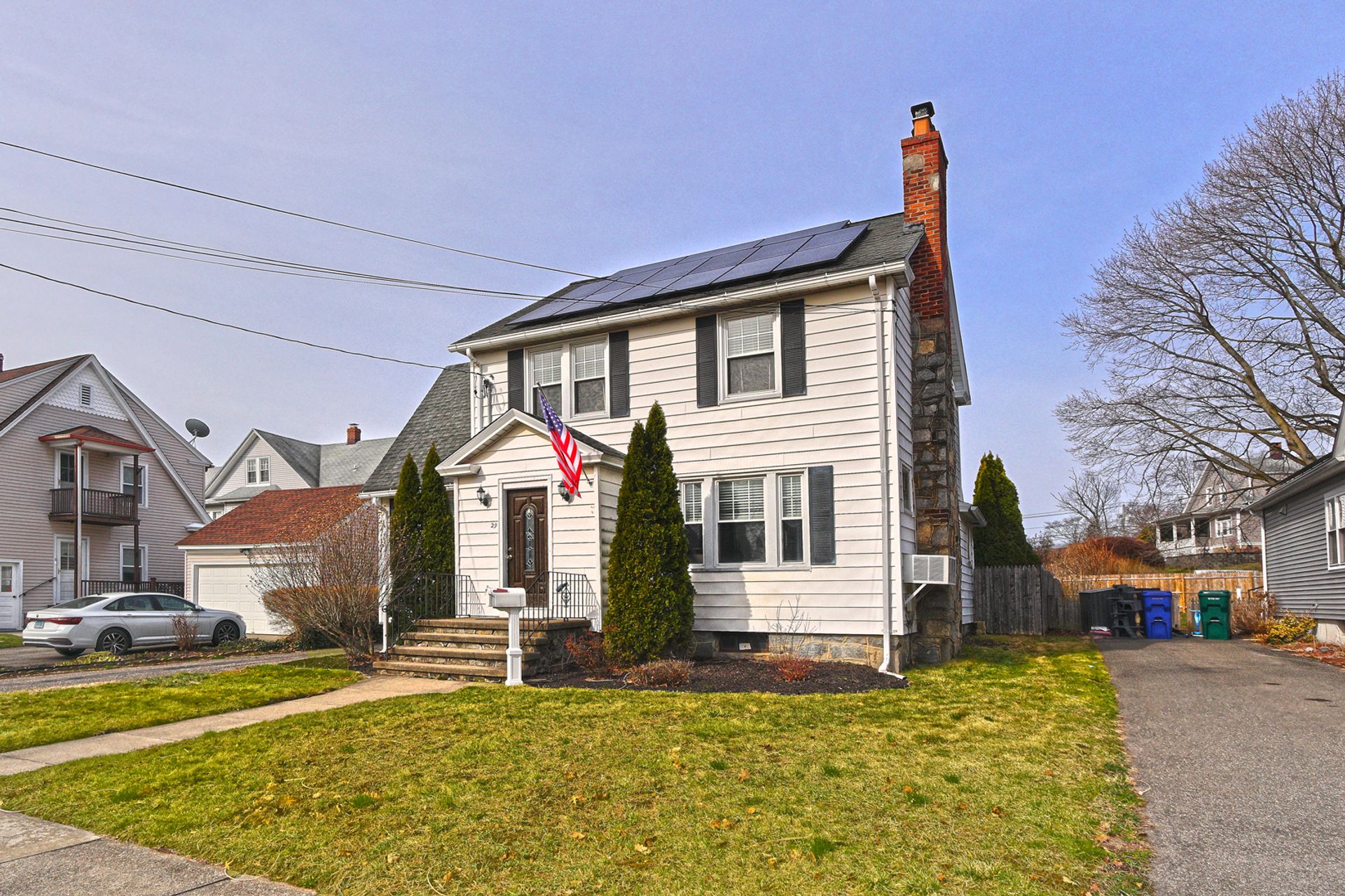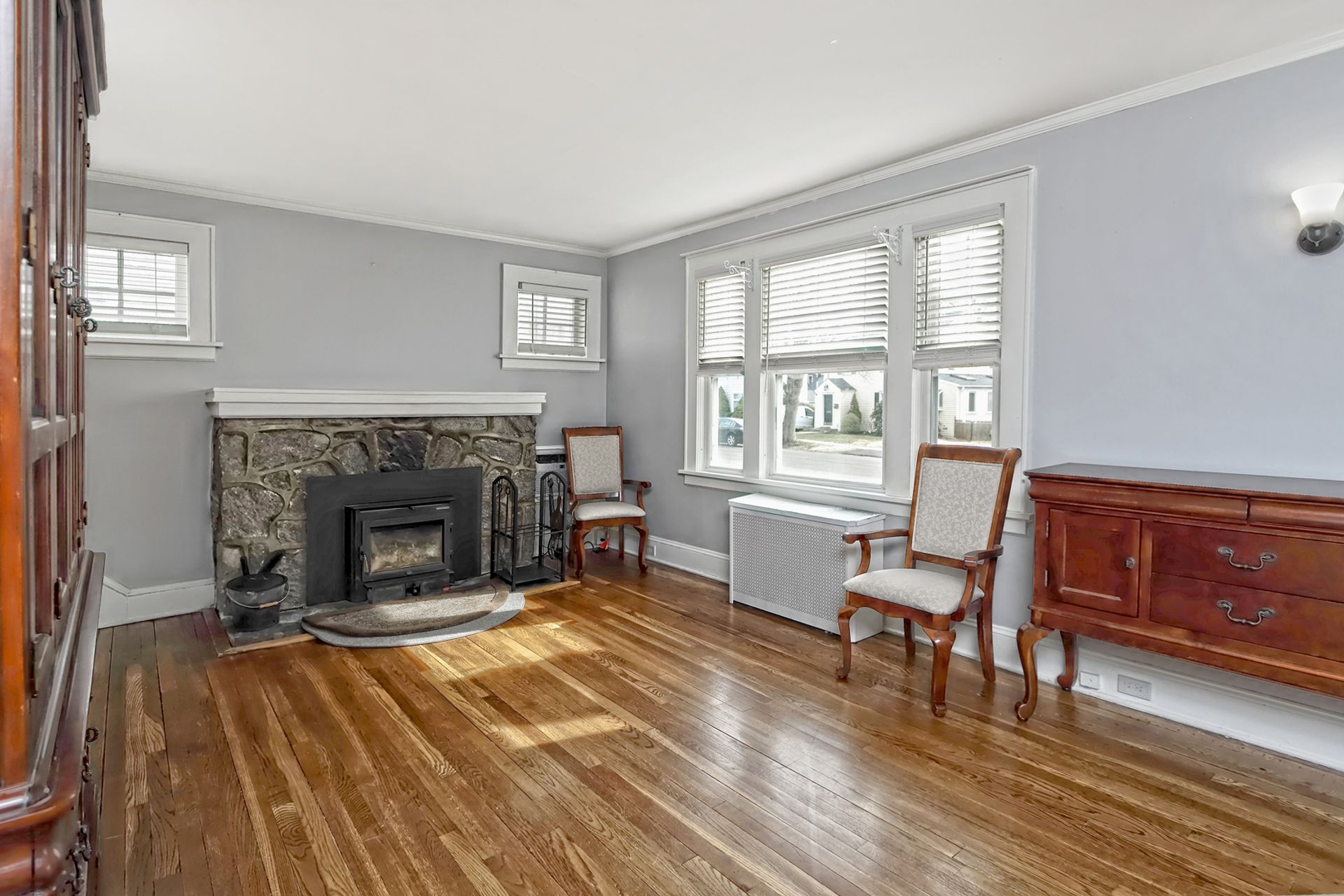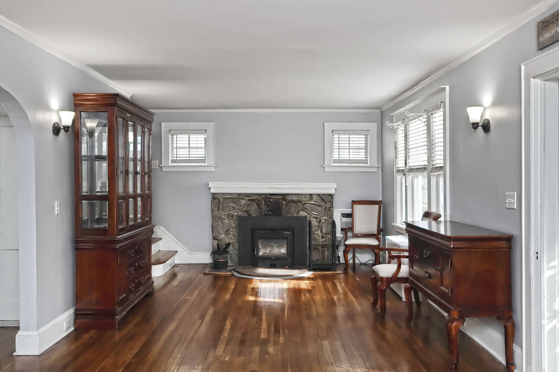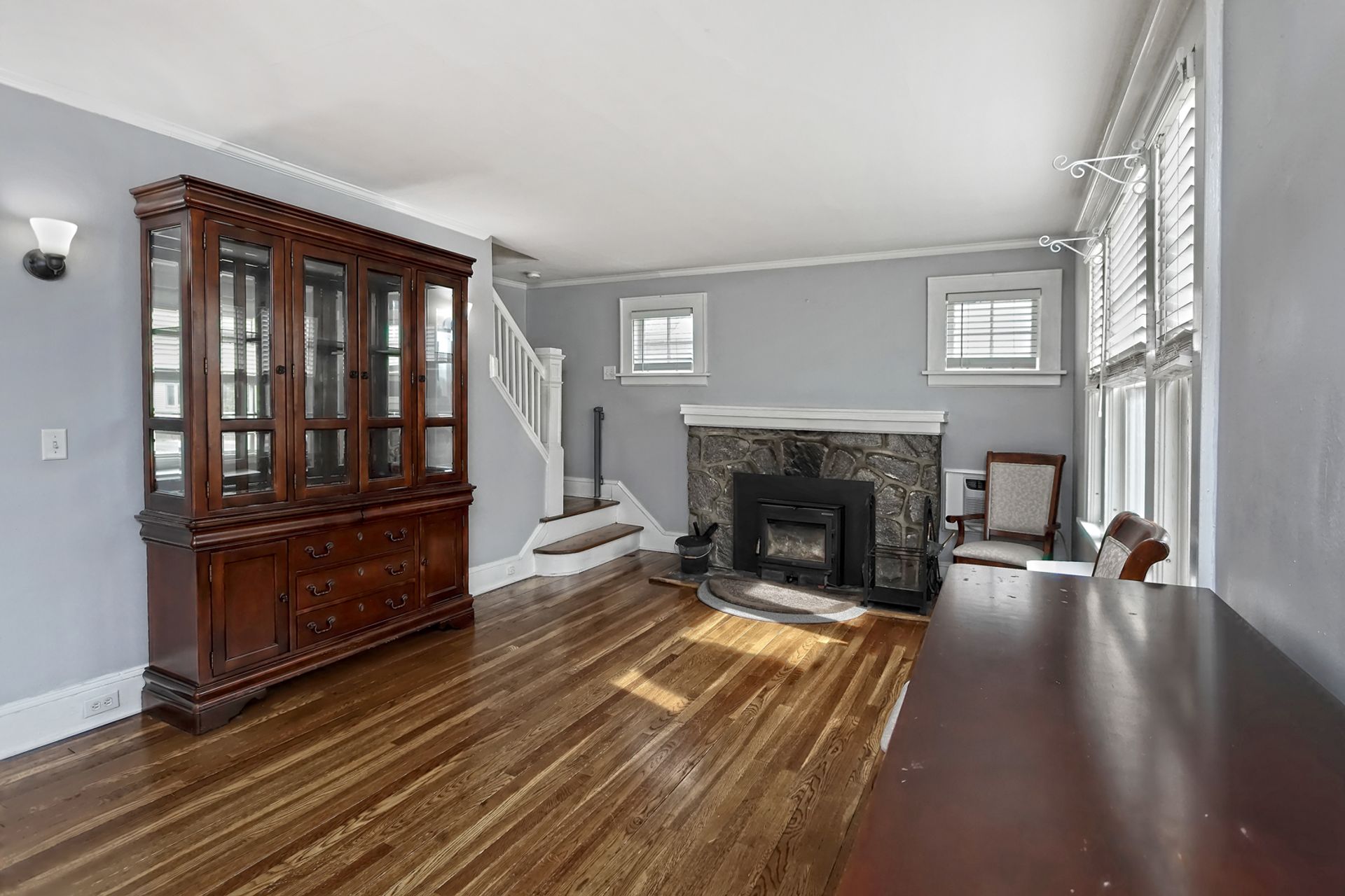 Sought after "Paradise Green" area! Walk to Stratford's beautiful green with vibrant shops and restaurants, and just minutes to Stratford's train station. Move right into this beautifully updated, classic, and spacious colonial with a desirable first floor open floor plan. The main floor boasts a spacious living room filled with natural light, beautiful hardwood floors, built ins, and woodburning stone fireplace. A formal dining area provides the perfect setting for entertaining family and guests. The updated kitchen shines with granite countertops, a breakfast bar, stainless steel appliances, and a large rear pantry area! Just off the dining room is a warm, versatile, heated sunroom/office area, ideal for working from home or enjoying a quiet retreat. Completing the main floor is a convenient half bath. Upstairs features beautiful hardwood floors, three spacious bedrooms with generous closet space, and a beautifully updated full bathroom with a walk-in shower that is easily accessible from all bedrooms. Outside, enjoy a level, fully fenced backyard, perfect for outdoor gatherings, gardening, or pets, complete with a deck for relaxing or entertaining. Notable mentions include a walkup attic area for storage or a playroom, a full, clean basement with plenty of storage space, and a detached two car garage. This charming colonial is a must see! Perfectly located, updated, offering flexible living spaces, and full of charm, making it a wonderful place to call home.
