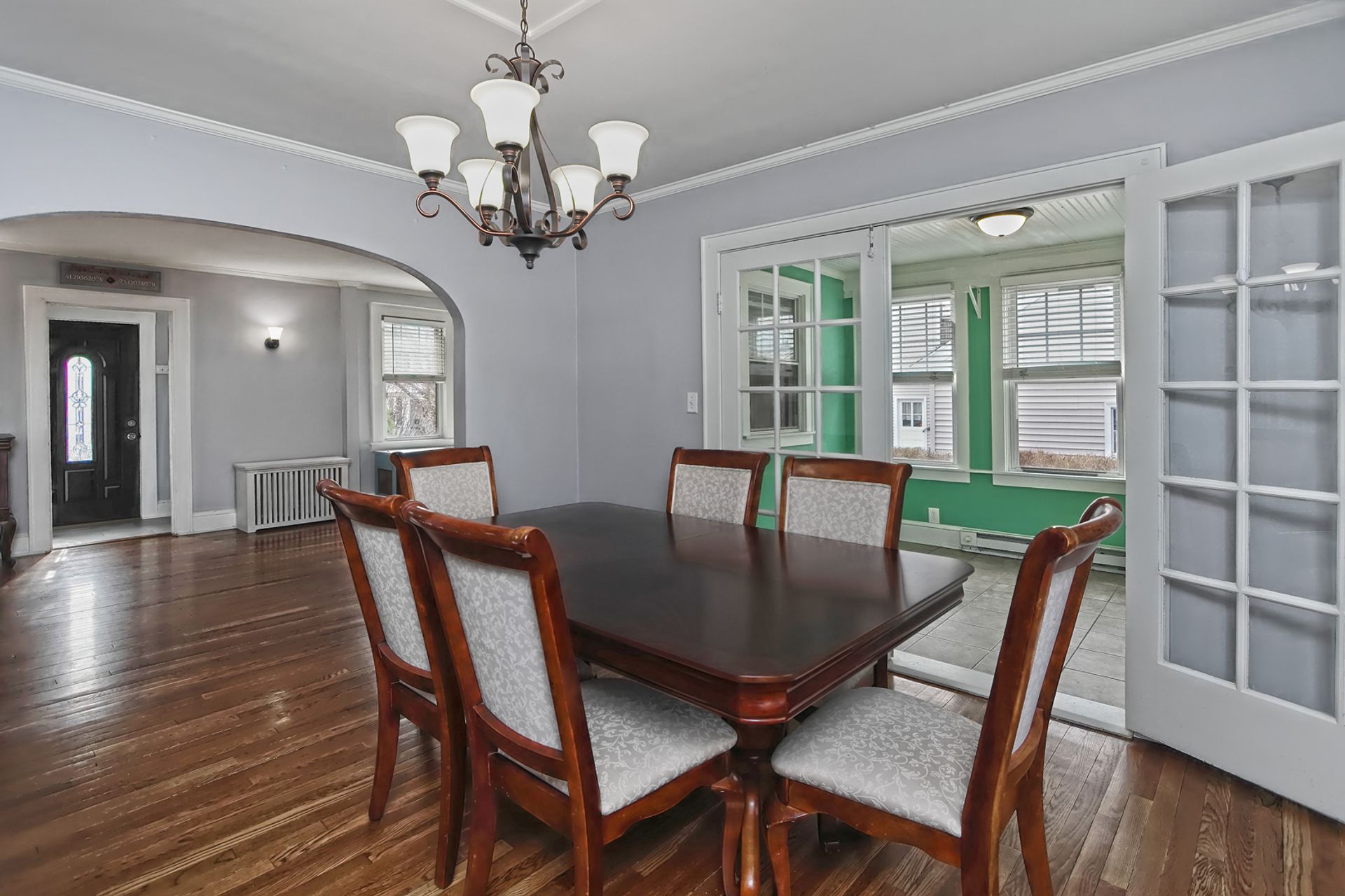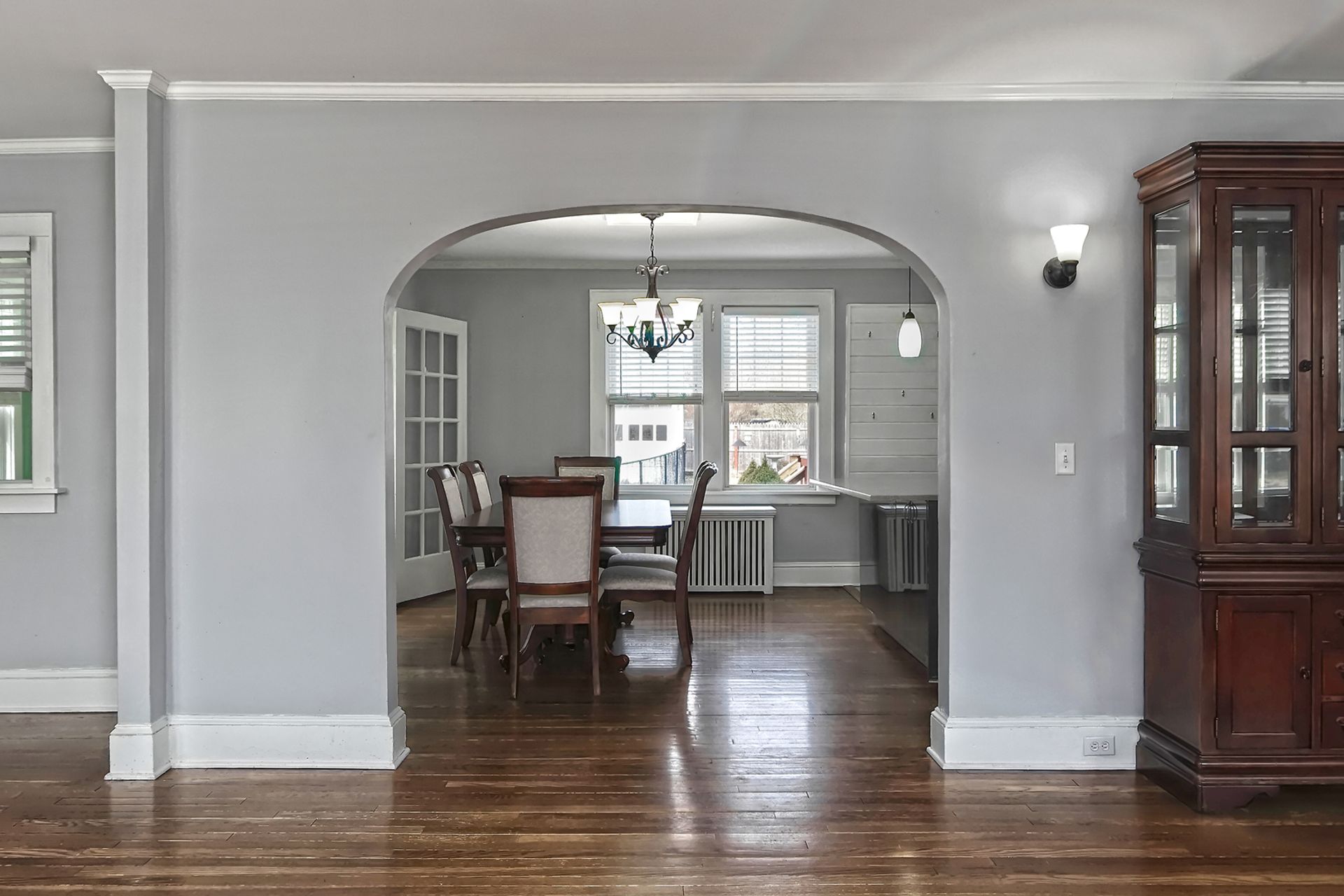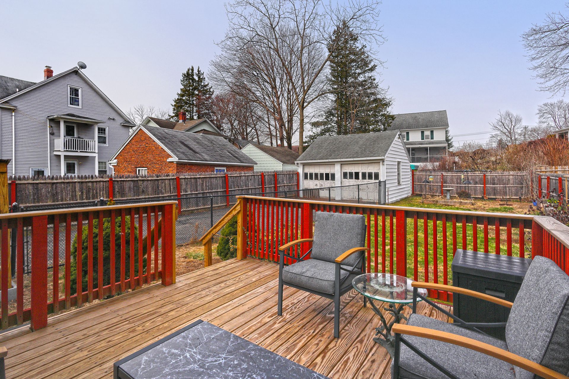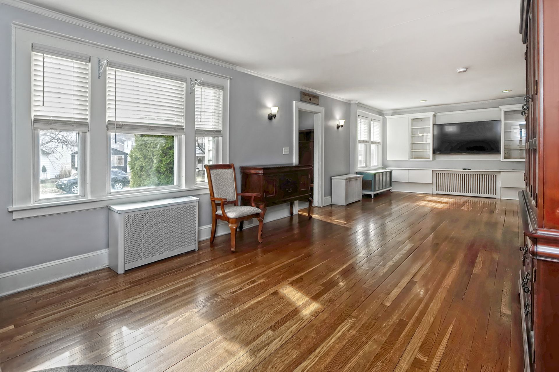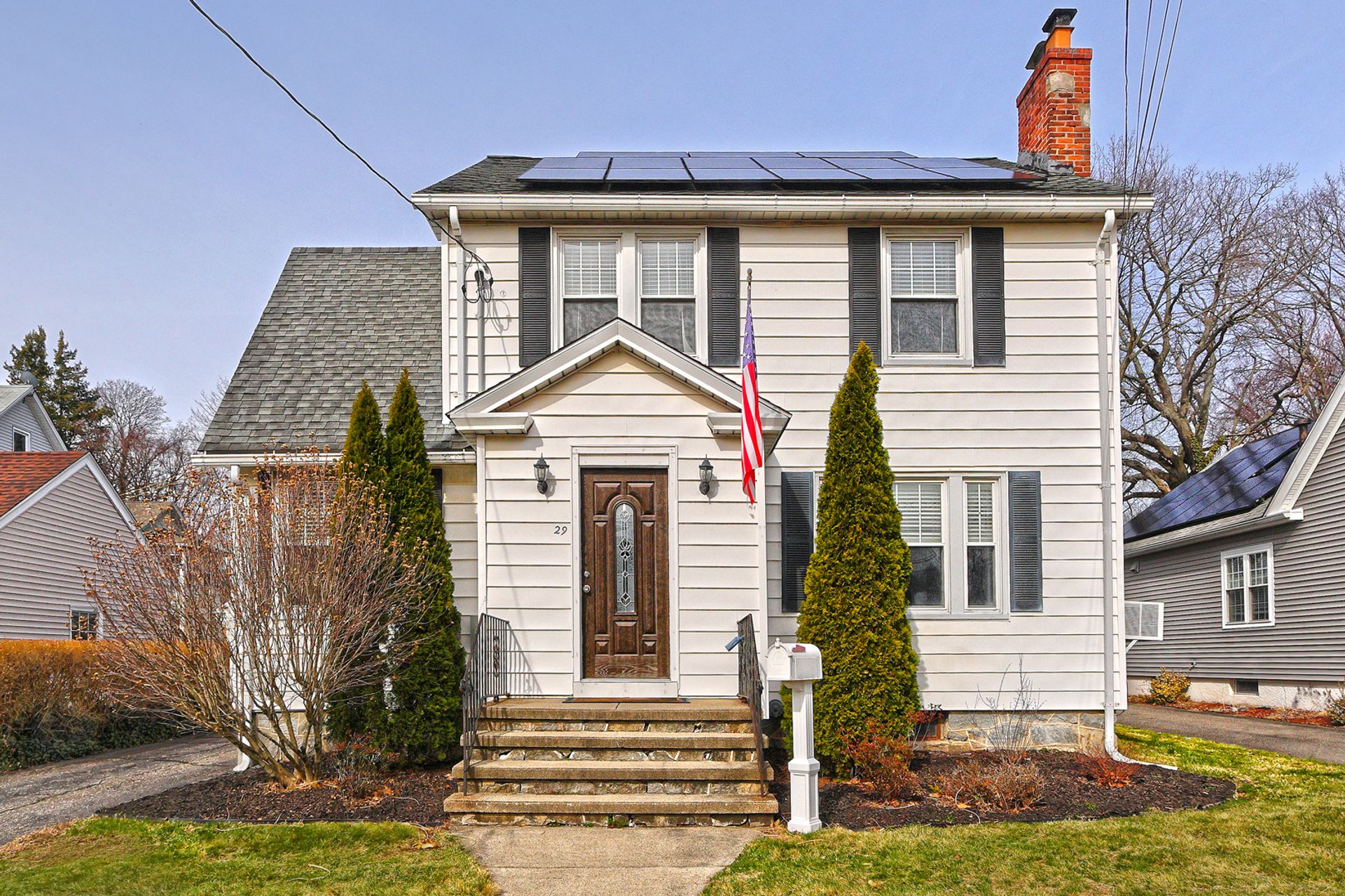 Sought after "Paradise Green" area! Walk to Stratford's beautiful green with vibrant shops and restaurants, and just minutes to Stratford's train station. Move right into this beautifully updated, classic, and spacious colonial with a desirable first floor open floor plan. The main floor boasts a spacious living room filled with natural light, beautiful hardwood floors, built ins, and woodburning stone fireplace. A formal dining area provides the perfect setting for entertaining family and guests. The updated kitchen shines with granite countertops, a breakfast bar, stainless steel appliances, and a large rear pantry area! Just off the dining room is a warm, versatile, heated sunroom/office area, ideal for working from home or enjoying a quiet retreat. Completing the main floor is a convenient half bath. Upstairs features beautiful hardwood floors, three spacious bedrooms with generous closet space, and a beautifully updated full bathroom with a walk-in shower that is easily accessible from all bedrooms. Outside, enjoy a level, fully fenced backyard, perfect for outdoor gatherings, gardening, or pets, complete with a deck for relaxing or entertaining. Notable mentions include a walkup attic area for storage or a playroom, a full, clean basement with plenty of storage space, and a detached two car garage. This charming colonial is a must see! Perfectly located, updated, offering flexible living spaces, and full of charm, making it a wonderful place to call home.