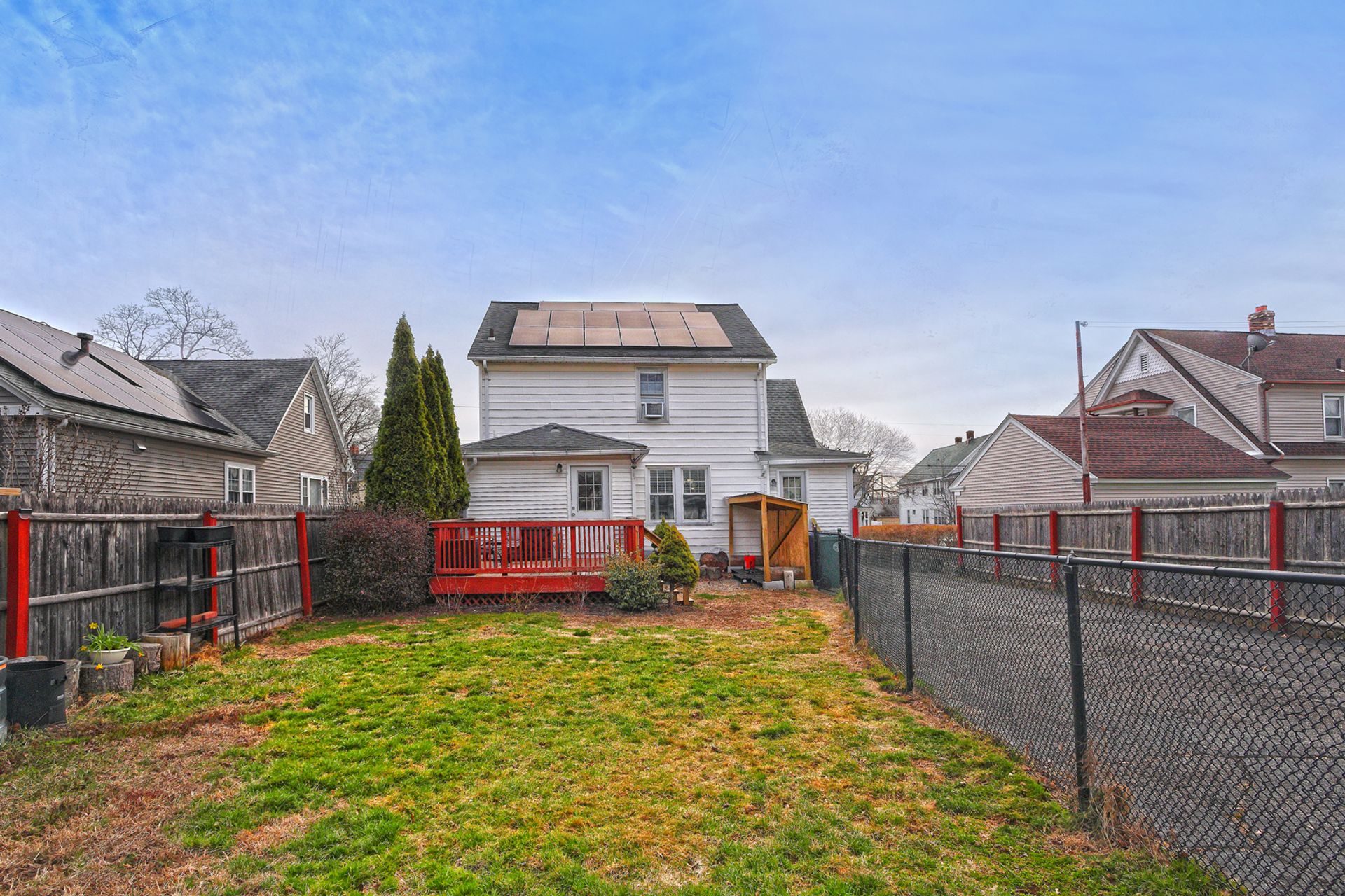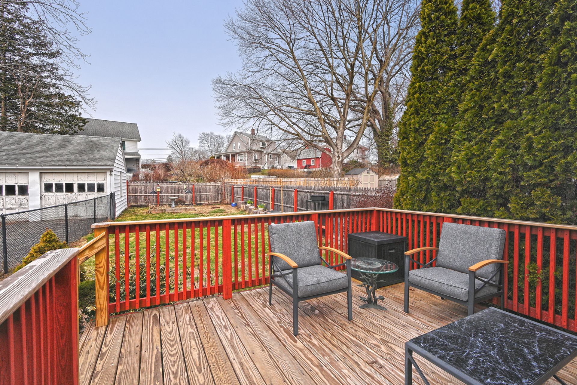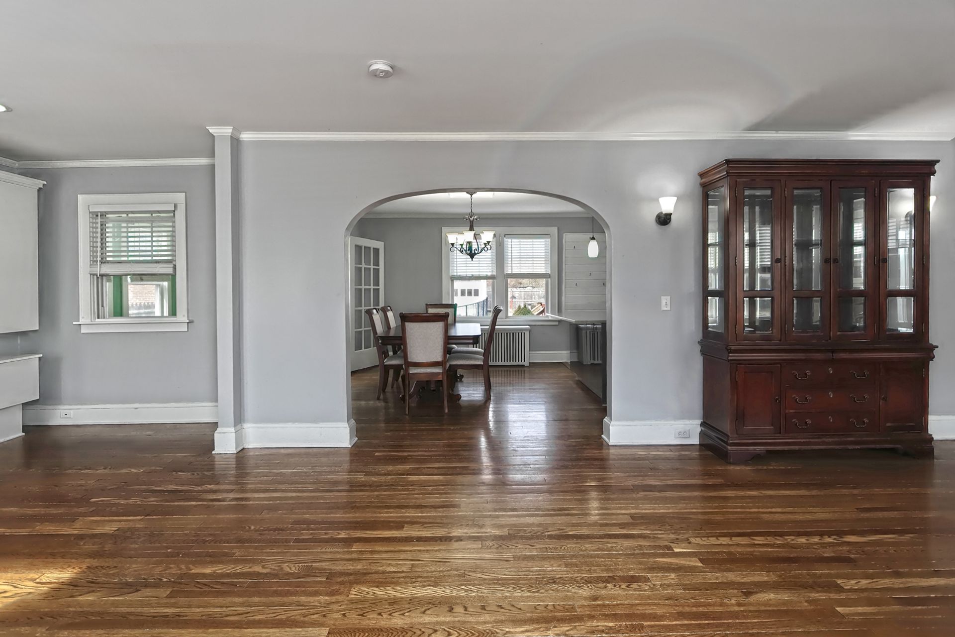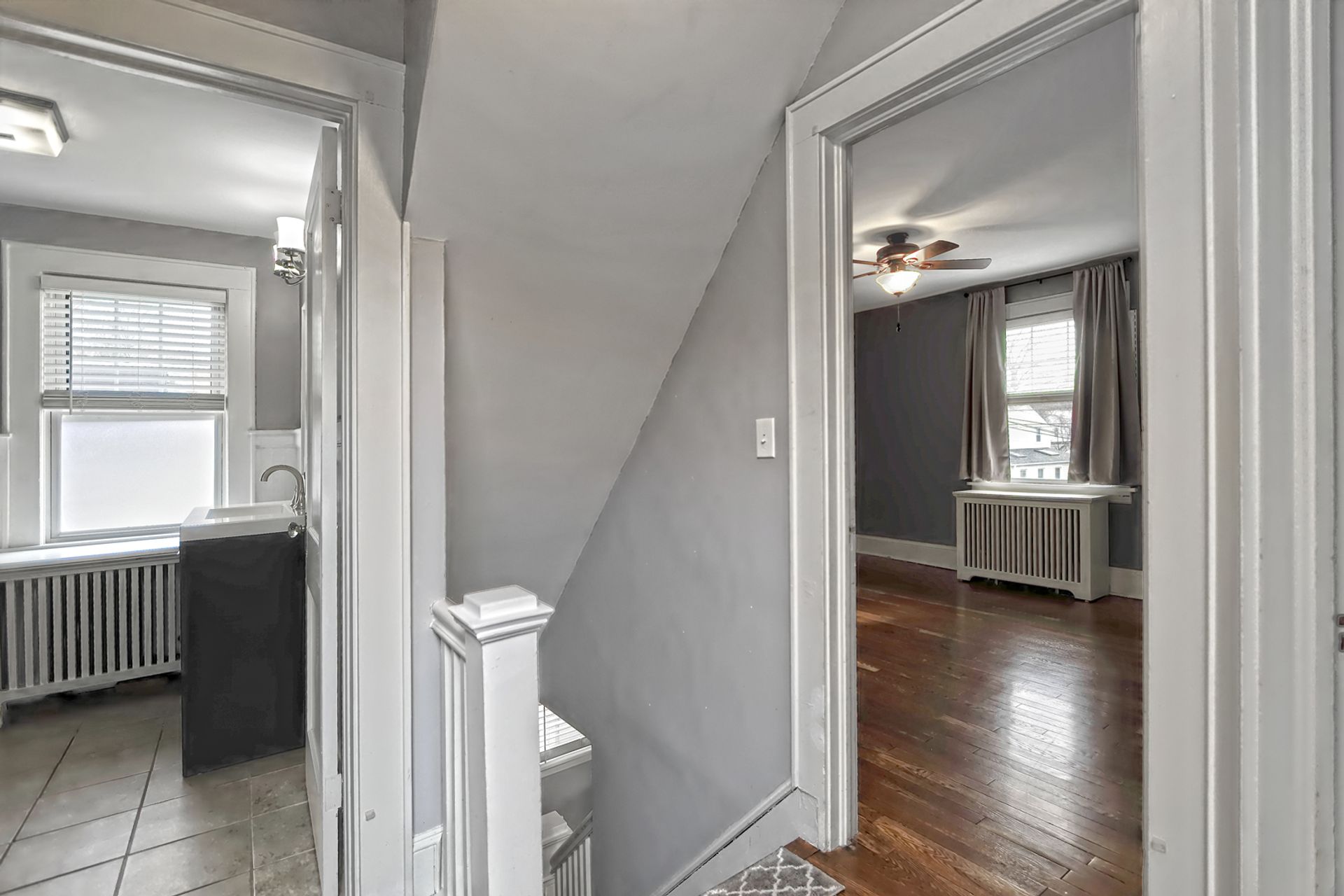 Sought after "Paradise Green" area! Walk to Stratford's beautiful green with vibrant shops and restaurants, and just minutes to Stratford's train station. Move right into this beautifully updated, classic, and spacious colonial with a desirable first floor open floor plan. The main floor boasts a spacious living room filled with natural light, beautiful hardwood floors, built ins, and woodburning stone fireplace. A formal dining area provides the perfect setting for entertaining family and guests. The updated kitchen shines with granite countertops, a breakfast bar, stainless steel appliances, and a large rear pantry area! Just off the dining room is a warm, versatile, heated sunroom/office area, ideal for working from home or enjoying a quiet retreat. Completing the main floor is a convenient half bath. Upstairs features beautiful hardwood floors, three spacious bedrooms with generous closet space, and a beautifully updated full bathroom with a walk-in shower that is easily accessible from all bedrooms. Outside, enjoy a level, fully fenced backyard, perfect for outdoor gatherings, gardening, or pets, complete with a deck for relaxing or entertaining. Notable mentions include a walkup attic area for storage or a playroom, a full, clean basement with plenty of storage space, and a detached two car garage. This charming colonial is a must see! Perfectly located, updated, offering flexible living spaces, and full of charm, making it a wonderful place to call home.
