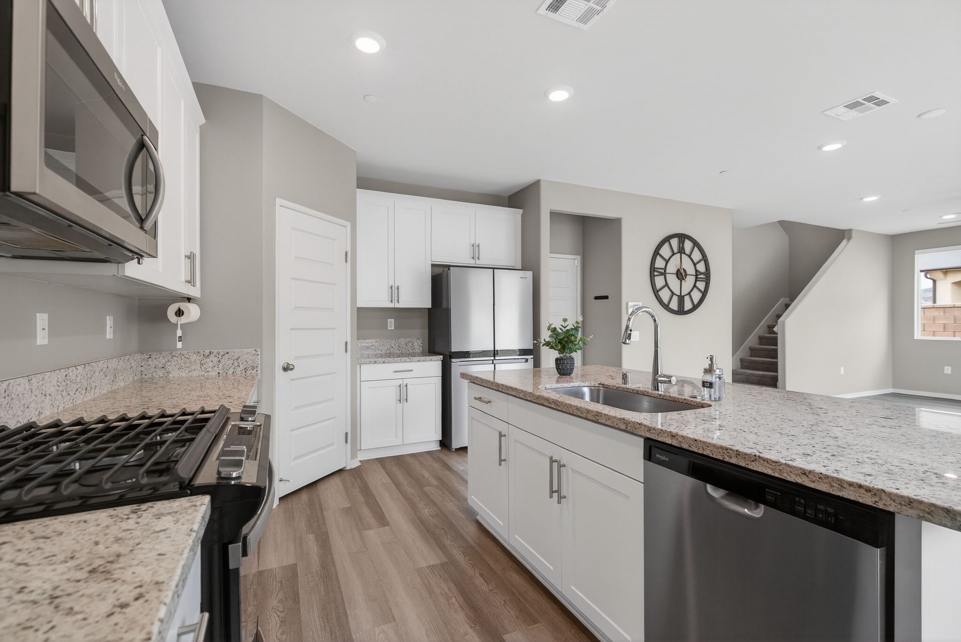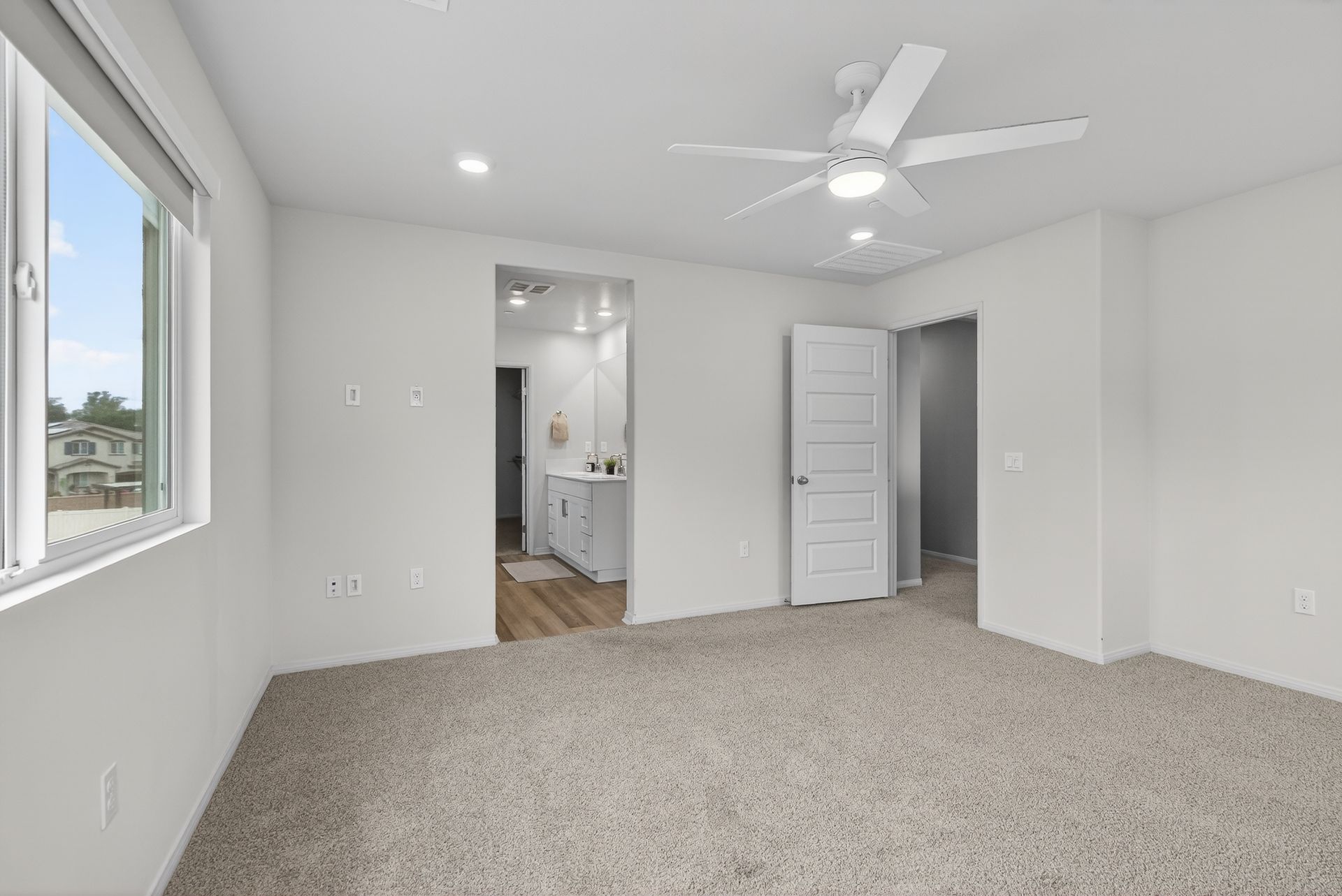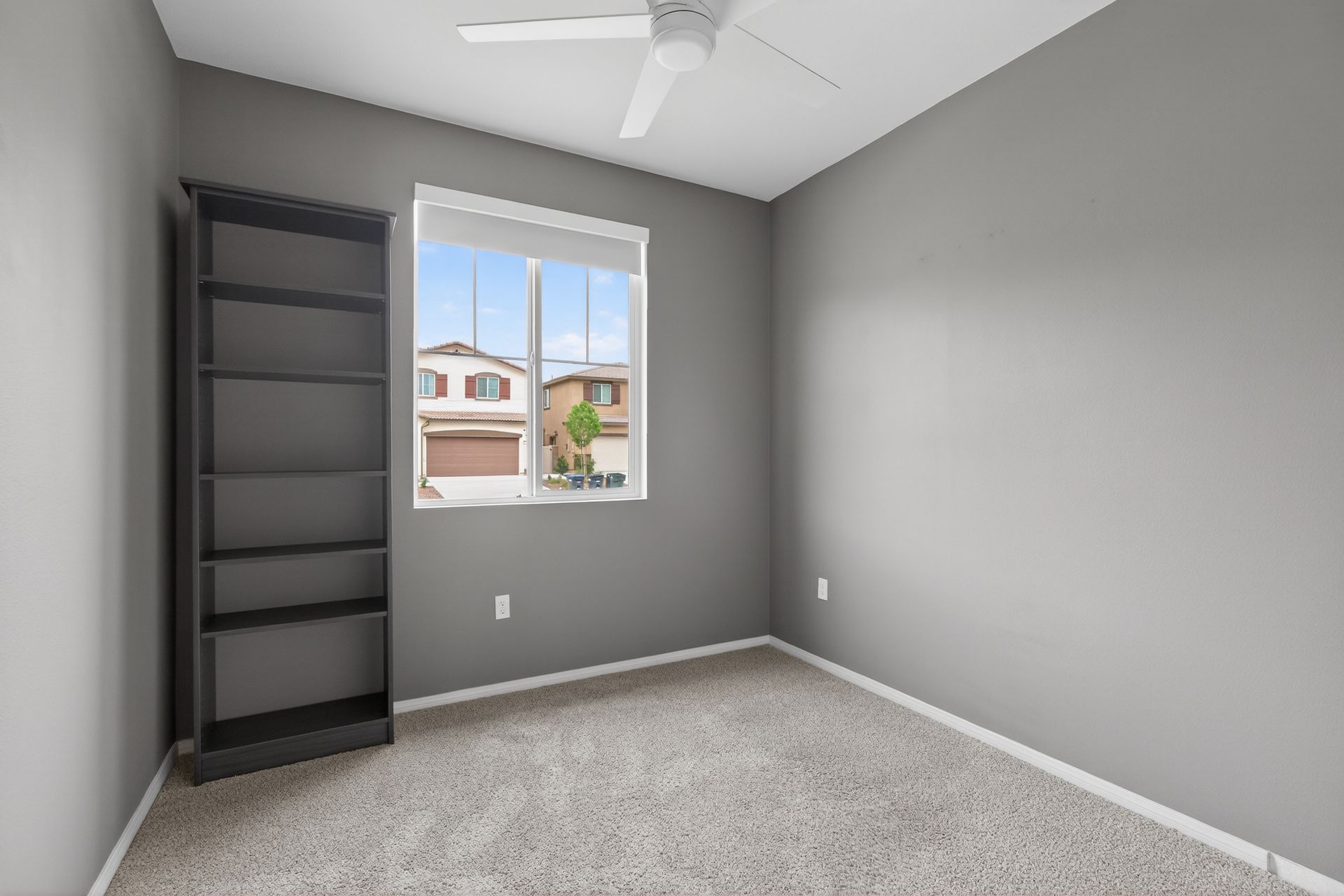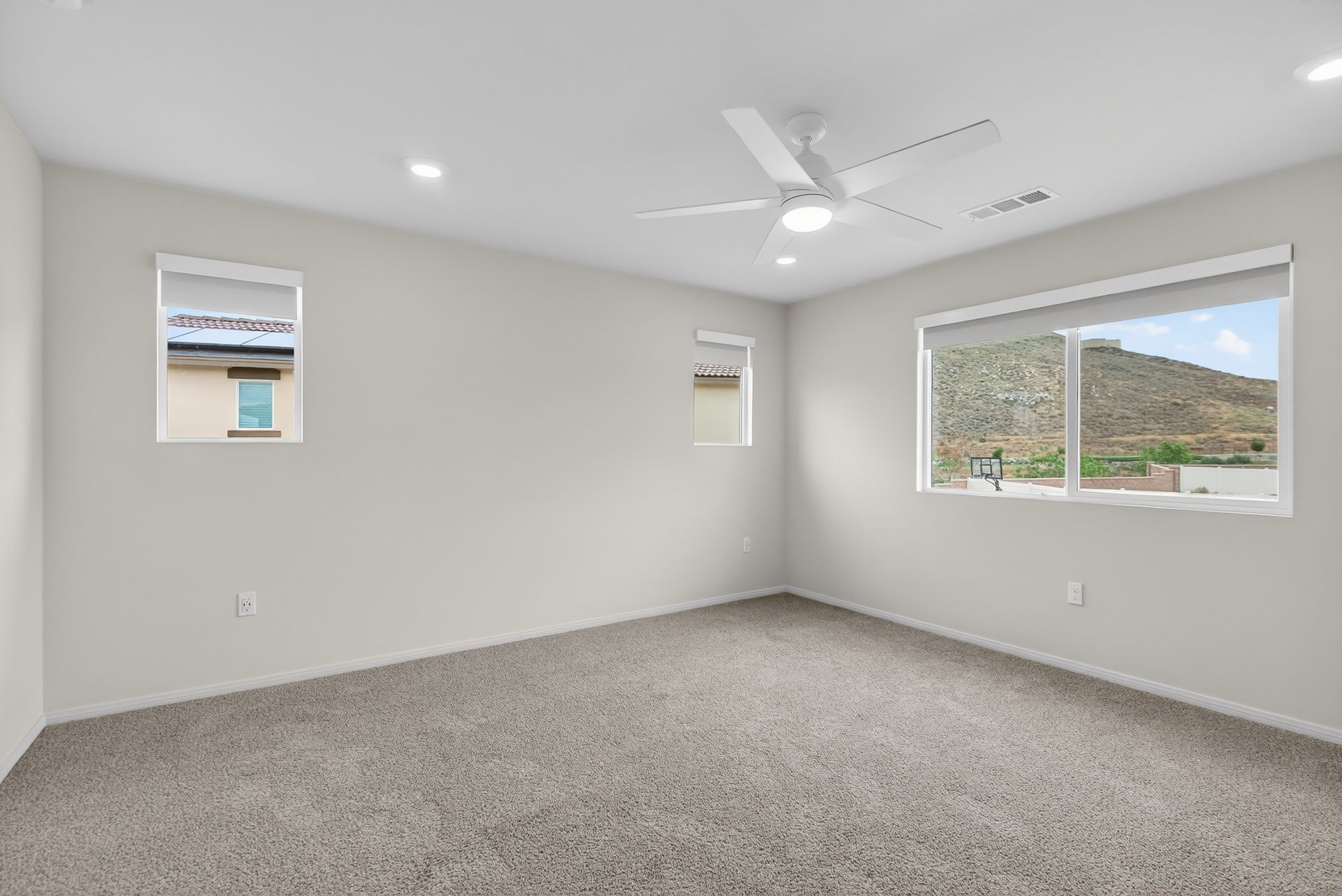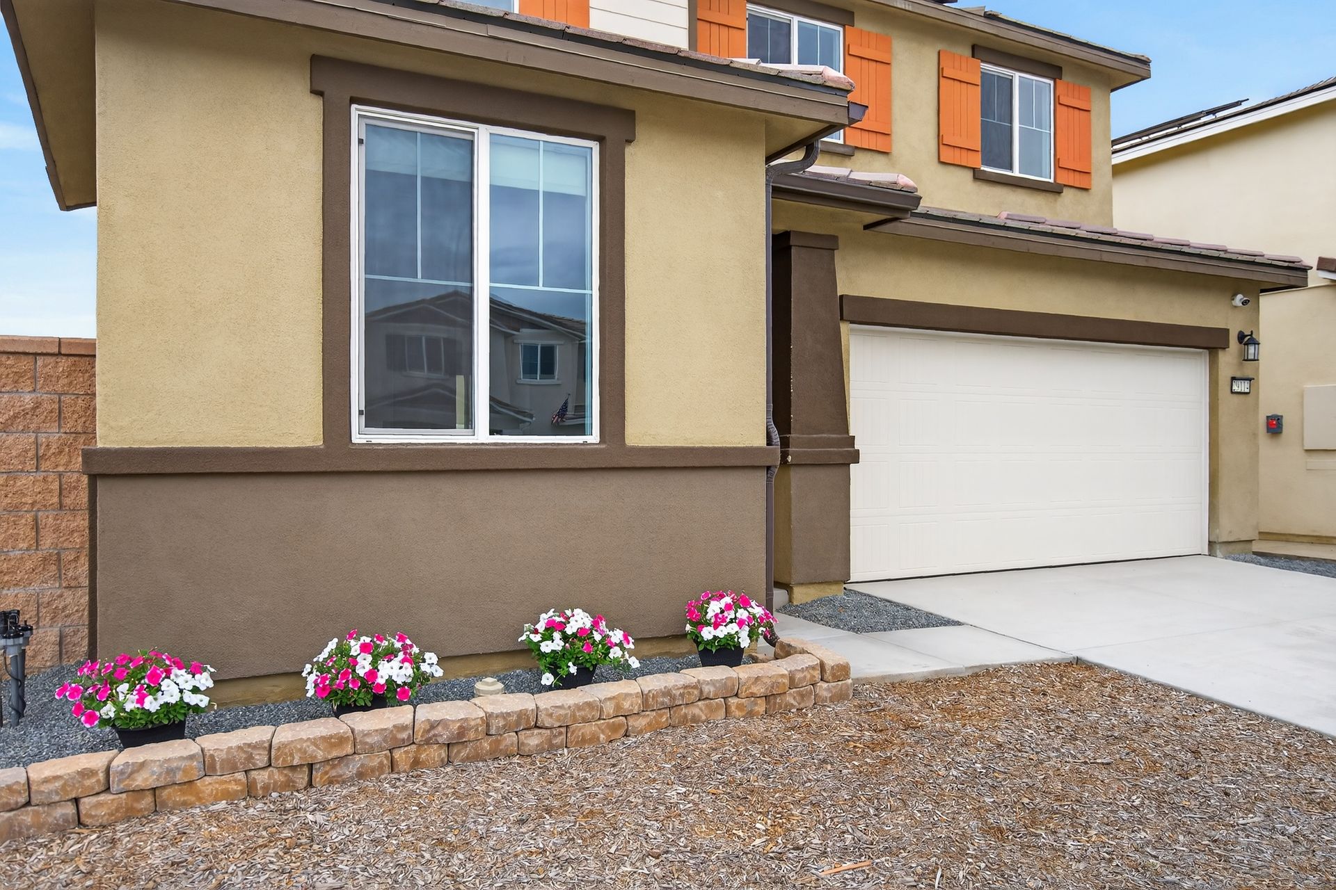 Welcome to this move‑in‑ready 2024 energy‑efficient home located in a quiet cul‑de‑sac at Highland at Nichols Ranch. Situated on a premium view lot and featuring owned solar panels, this modern home delivers comfort, performance, and long‑term savings. The thoughtfully designed open floor plan is filled with abundant natural light and includes a first‑floor bedroom with a full bathroom, ideal for guests, multigenerational living, or a home office. Interior upgrades showcase crisp white cabinetry, white and gray speckled granite countertops, gray‑toned Lighthouse EVP flooring, and stylish speckled carpet upstairs, creating a clean, modern aesthetic throughout. Retreat to the expansive primary suite, offering generous space to relax and unwind. All secondary bedrooms are privately positioned in separate hallways, providing privacy and quiet. A spacious upstairs loft is perfect for studying, game nights, or relaxing family time. Step outside to an oversized backyard, a blank canvas ready for outdoor entertaining, a pool, play space, or garden design. This energy‑efficient home features multi‑speed HVAC systems, spray‑foam insulation, and high‑performance air filtration, designed to support lower utility costs, improved indoor air quality, year‑round comfort, and peace of mind. Conveniently located near shopping, dining, parks, and major freeways, this home combines efficiency, style, and location. Solar panels included — no lease, no extra cost. Don’t miss this exceptional, modern, energy‑efficient home.