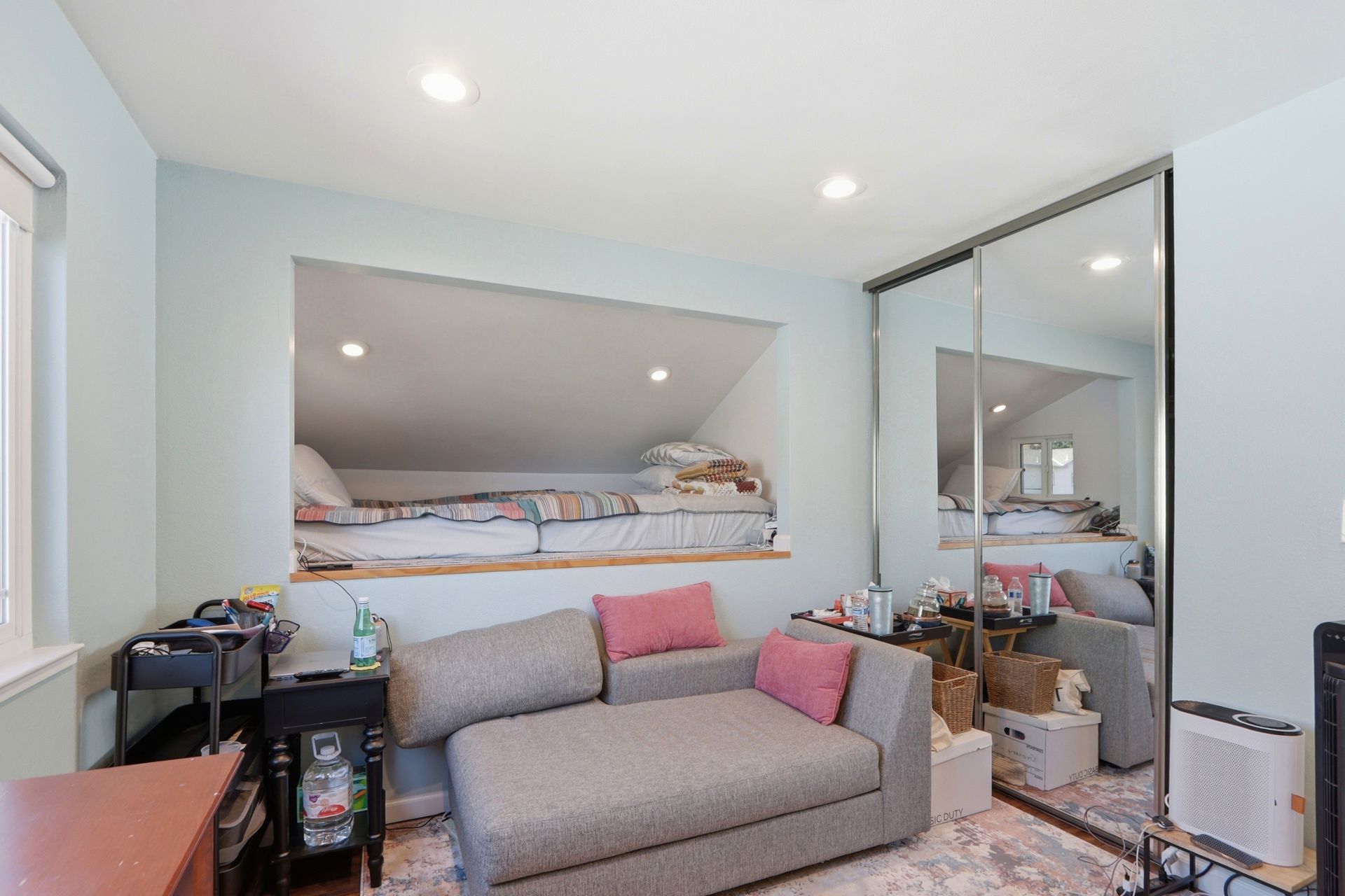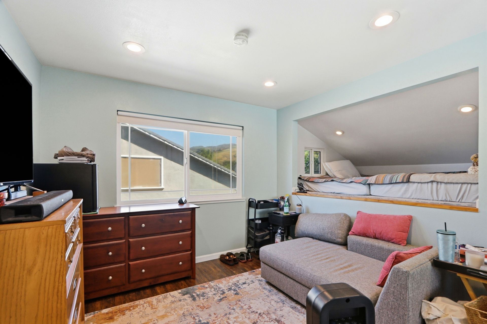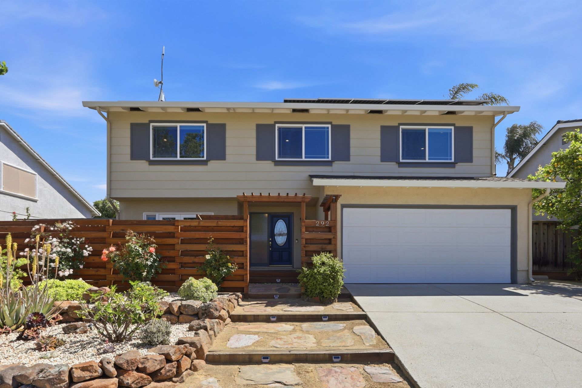 Upstairs, an operable skylight enhances the natural light and creates a warm and inviting ambiance leading to the four bedrooms. One of the bedrooms includes a fun sleeping loft! Both upstairs bathrooms have been remodeled. The hall bathroom offers a shower over tub and the primary bedroom offers a private bathroom with stall shower, as well as a walk-in closet. And solar panels - already paid off!