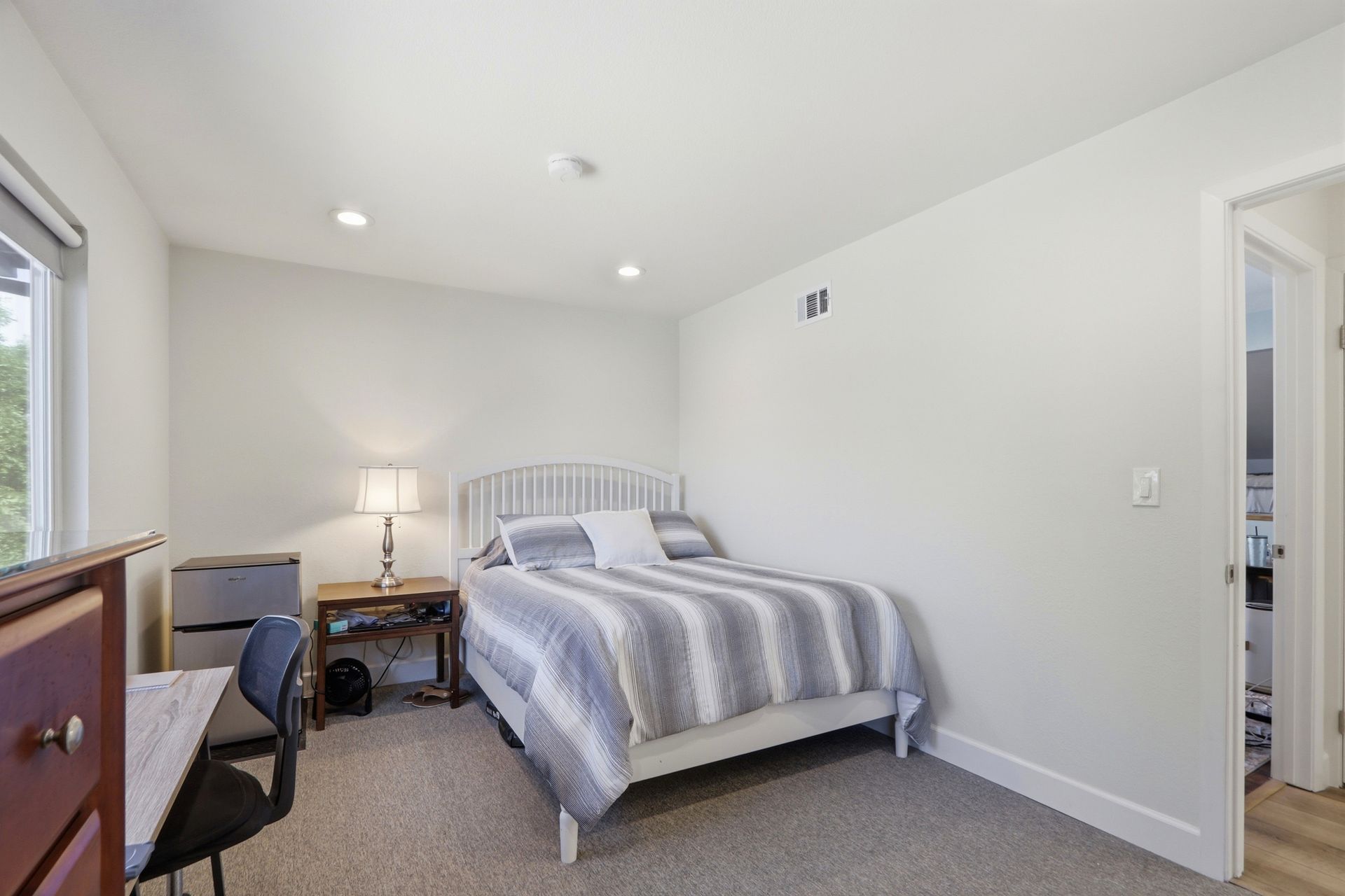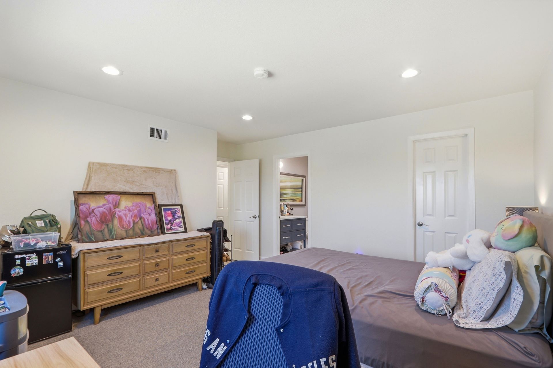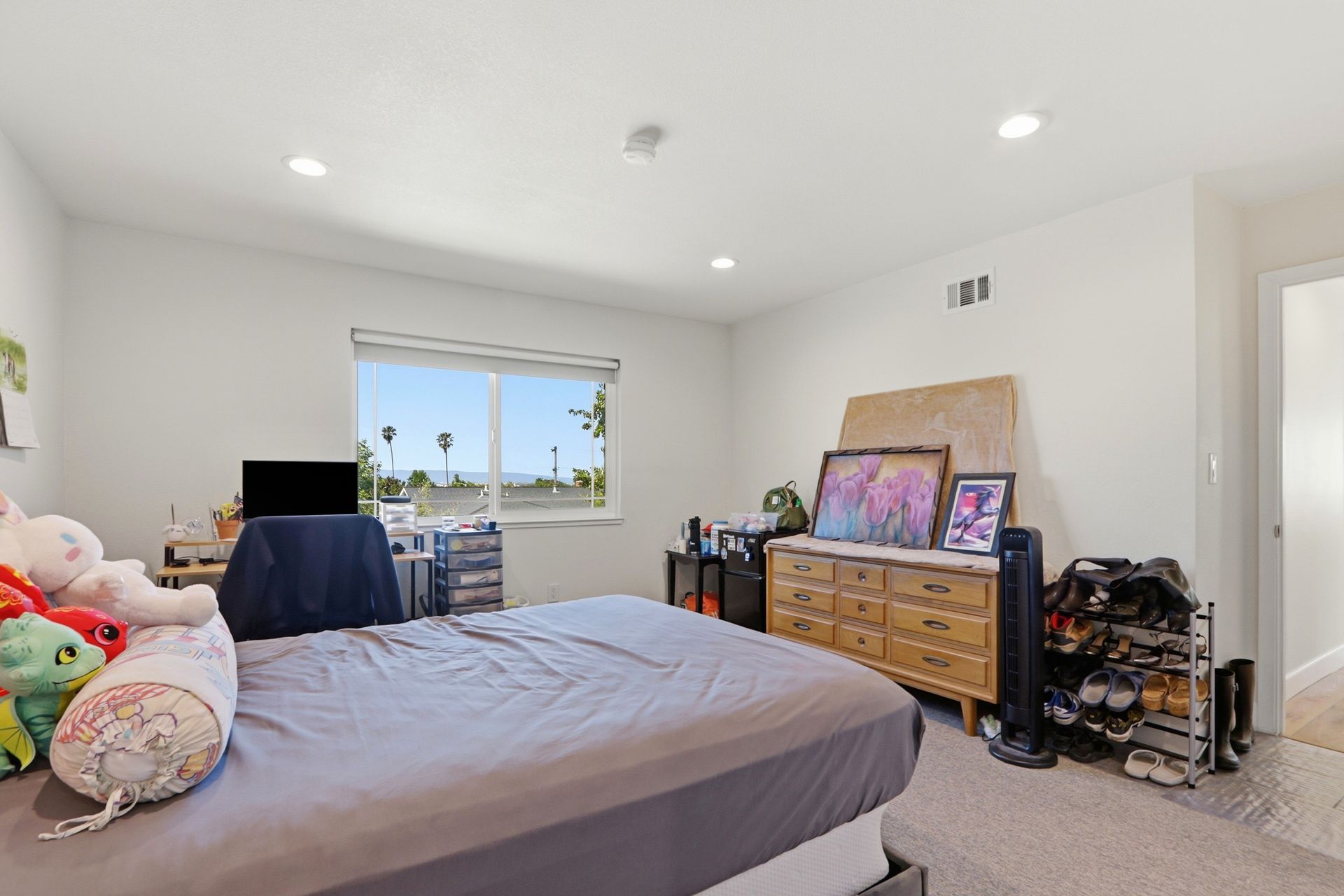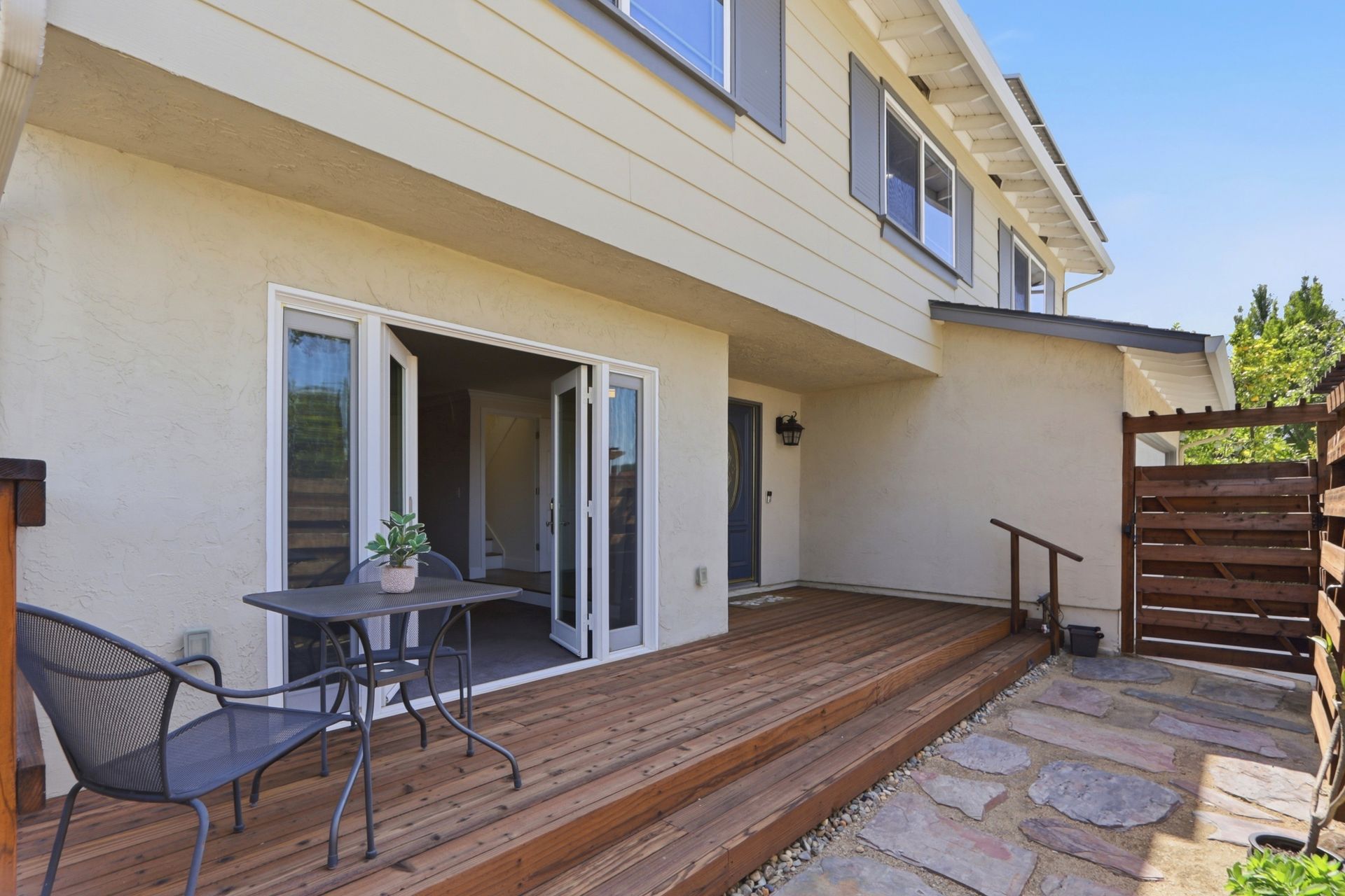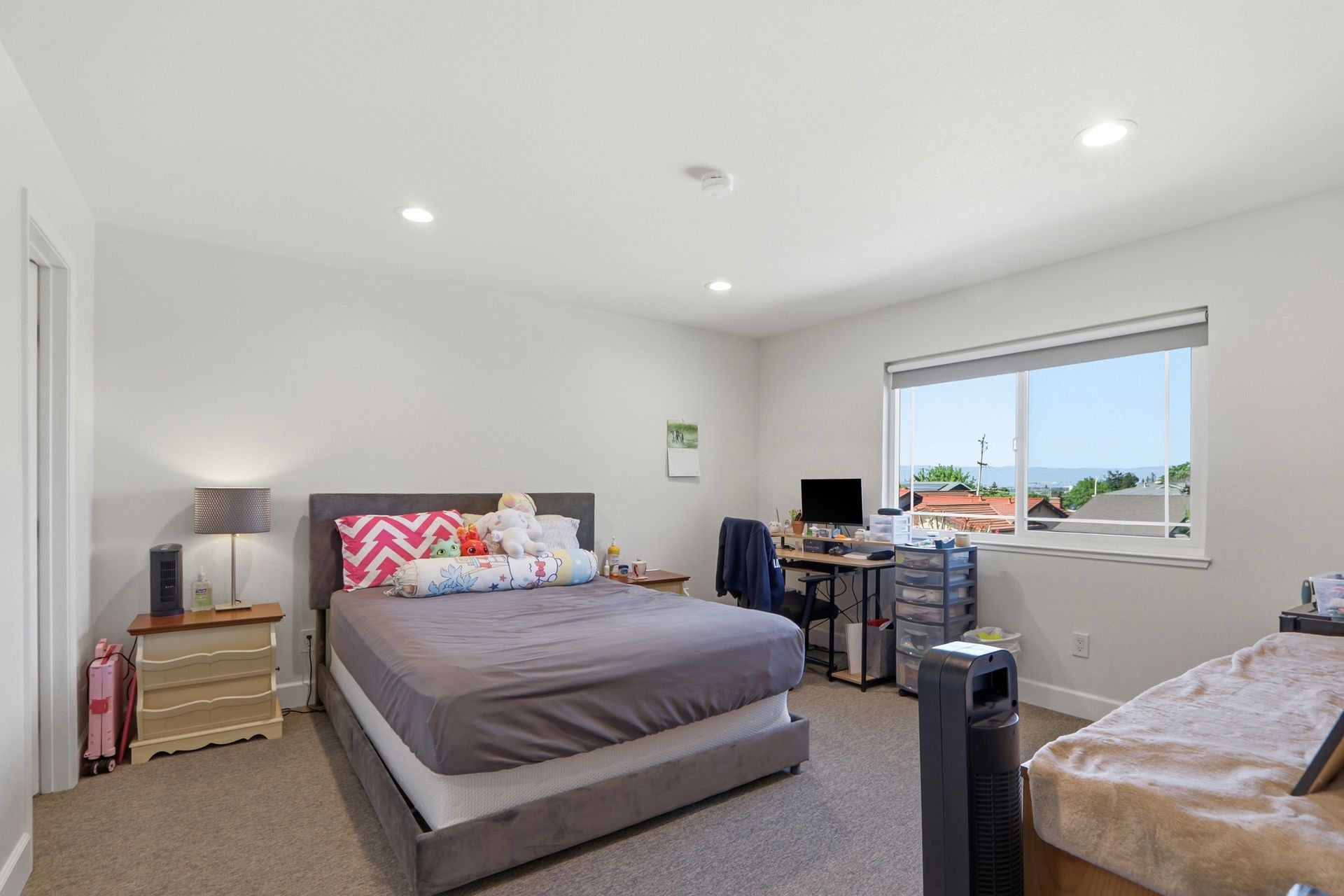 The property's versatile outdoor living spaces are a highlight. The covered patio connects to the kitchen and family room, creating a seamless indoor-outdoor entertaining experience when the doors are open. If it gets chilly outside, full length patio shades can be rolled down to enclose the area. The large, fenced backyard features a fire pit, heater, and a designated dog run area. The drought-tolerant landscaping and automatic sprinklers make outdoor upkeep effortless, and a built-in gas line for the BBQ makes it easy to cook outside year-round.